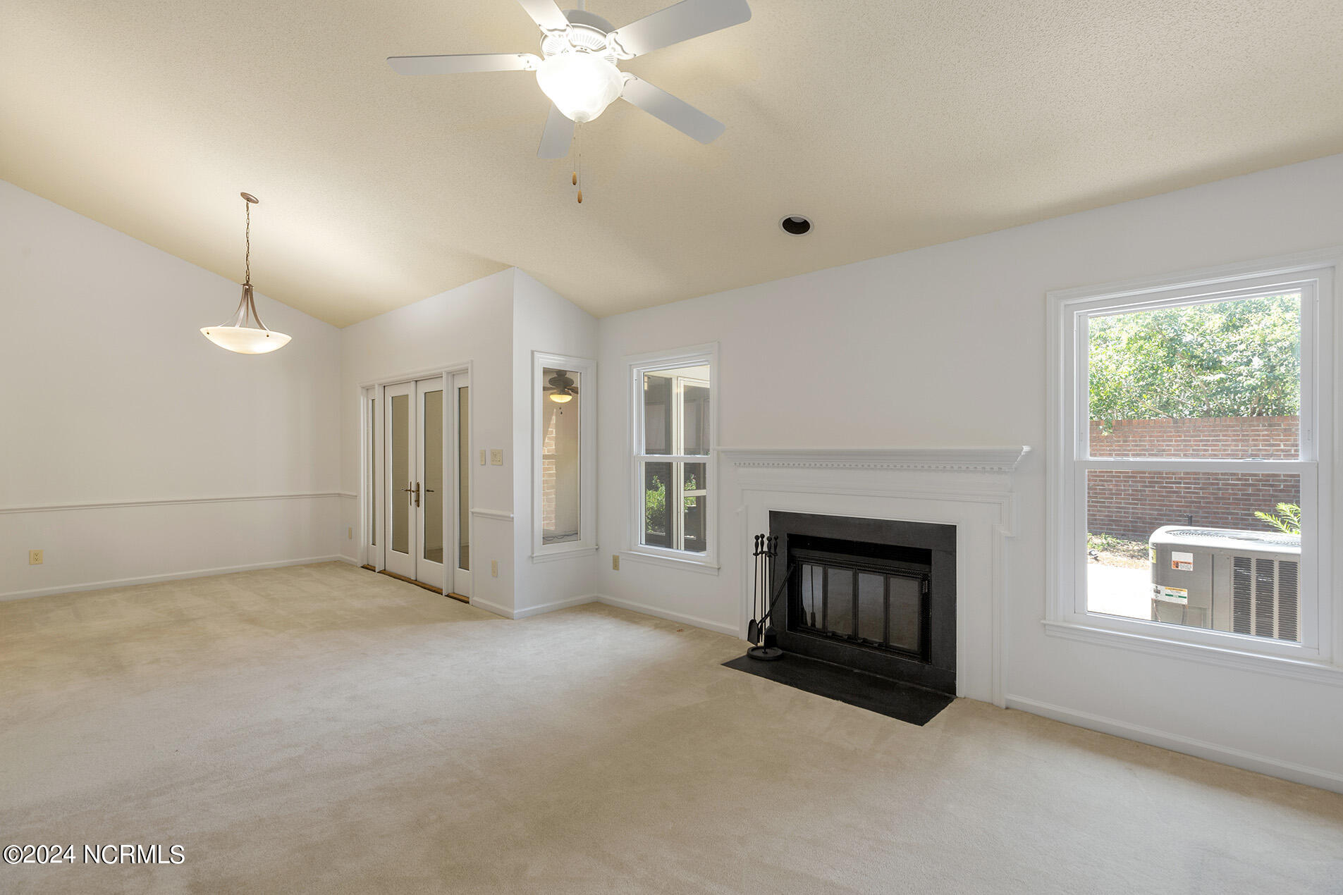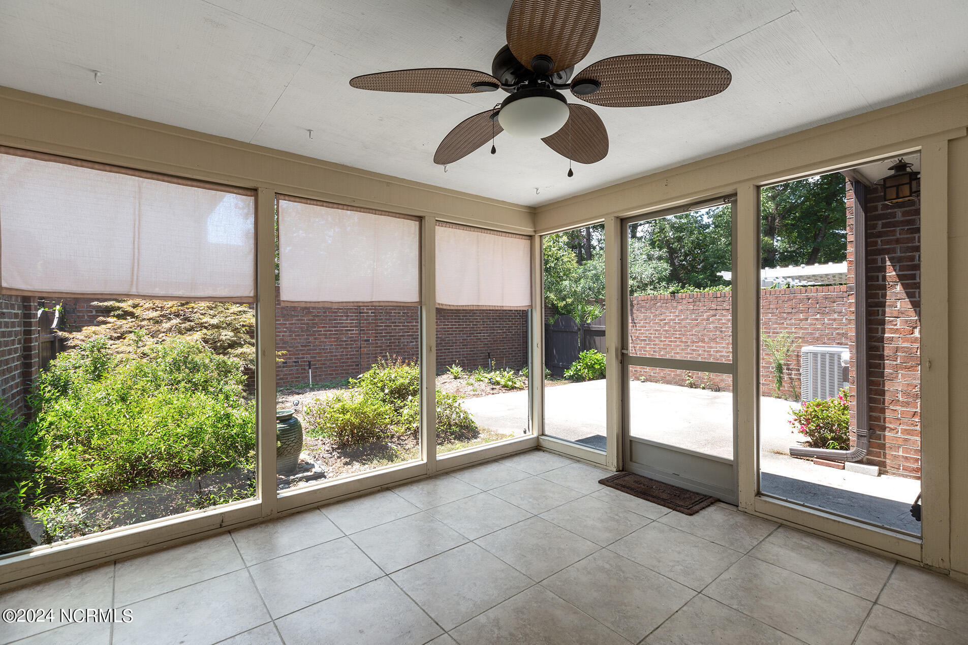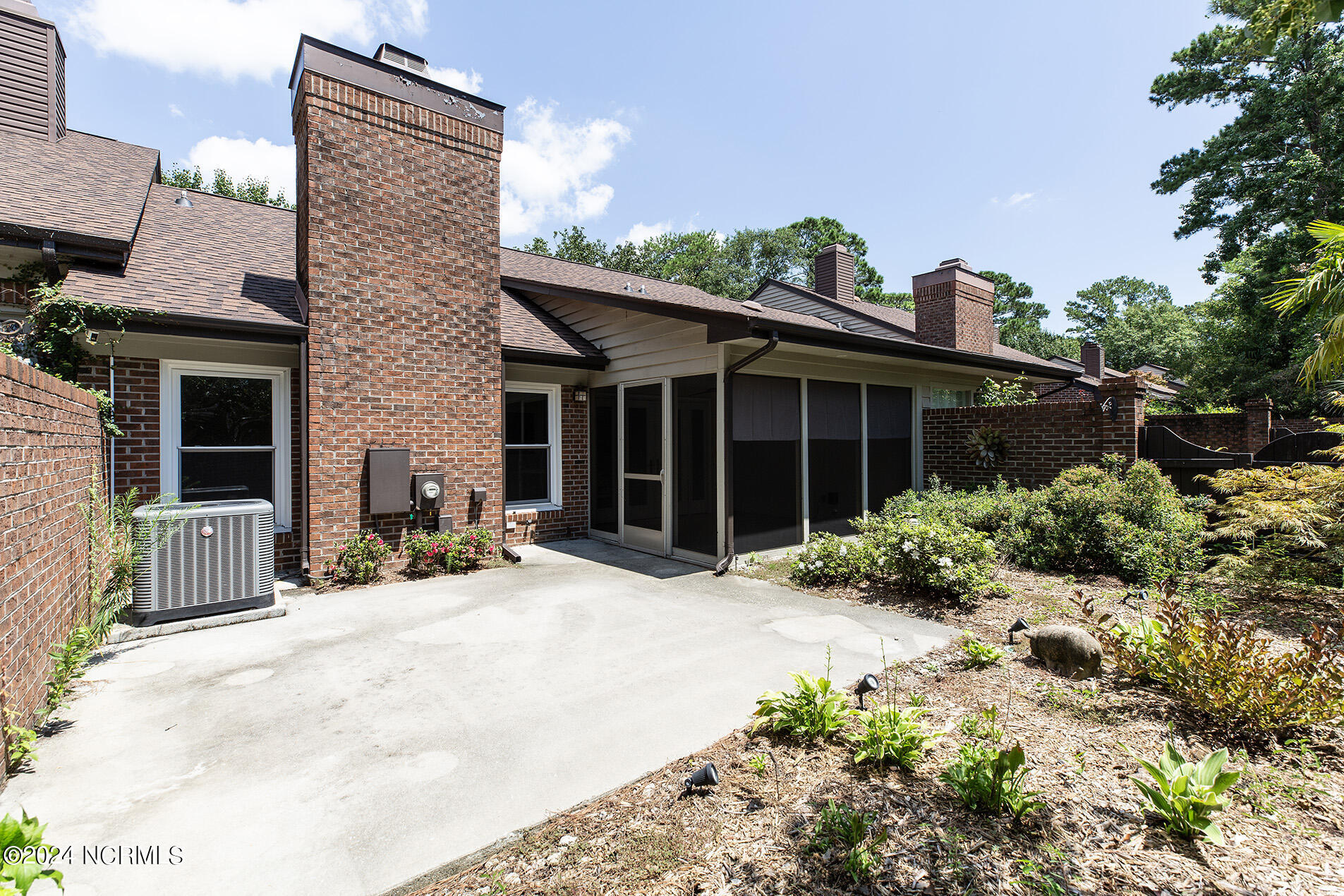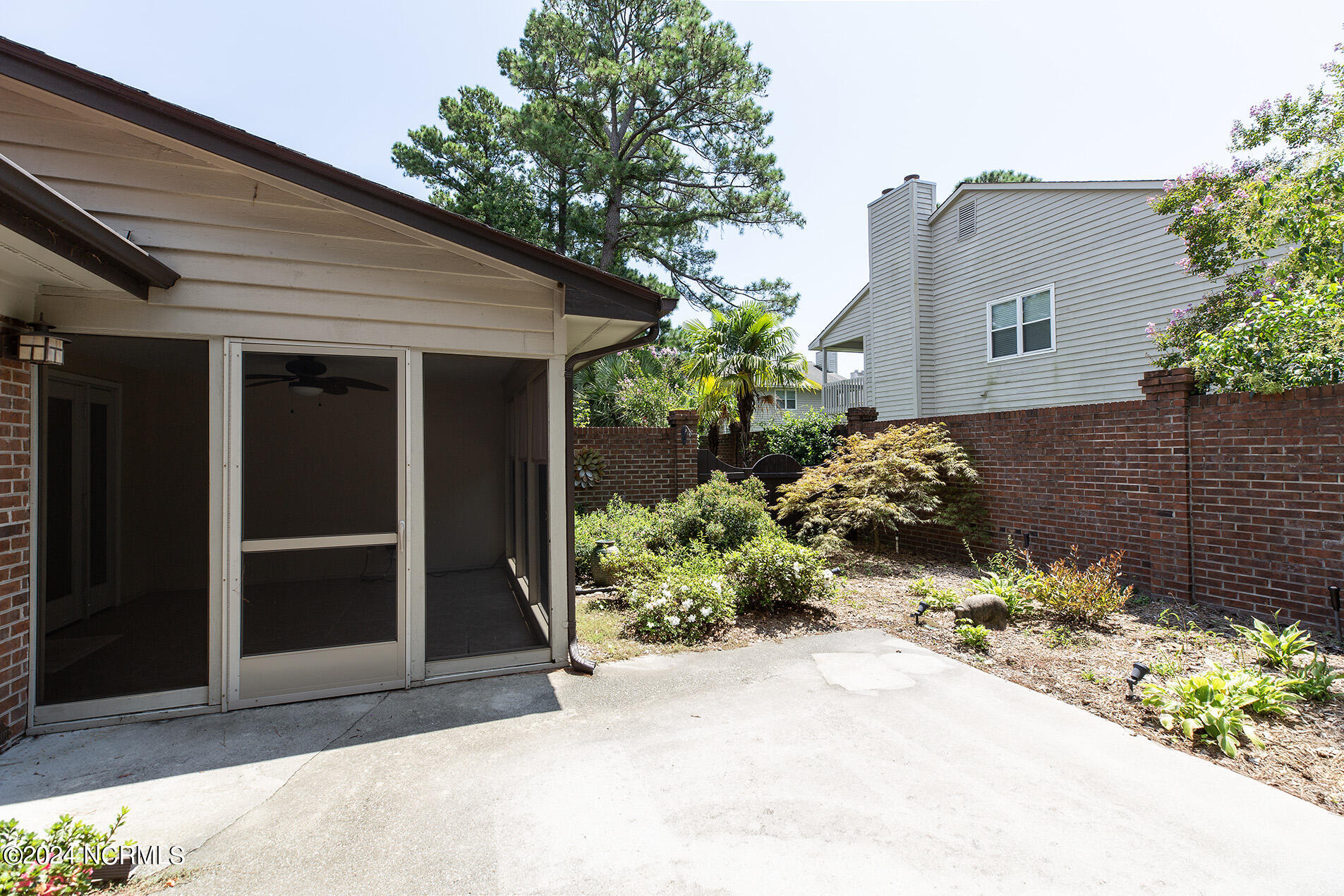 This well-maintained two-bedroom, two-bath home offers comfort, functionality, and proximity to everything Wilmington has to offer. Centrally located, you're minutes from downtown, Novant Health, UNCW, and beautiful beaches for endless sun and surf. The stylish kitchen features wood cabinetry, granite countertops, a sleek induction stove, and a premium Bosch dishwasher—perfect for casual meals or entertaining. The private courtyard with a screened porch offers a peaceful retreat for outdoor relaxation, rain or shine. The open living area boasts high ceilings, fresh paint, and a cozy wood-burning fireplace, creating a warm atmosphere for gatherings or quiet evenings. The primary bedroom includes an en-suite bathroom, while the flexible second bedroom can serve as a home office, guest room, or hobby space. Additional highlights include a one-car garage, visitor parking, and access to the community's saltwater pool and clubhouse. This home blends modern updates with a prime location for comfort and convenience.