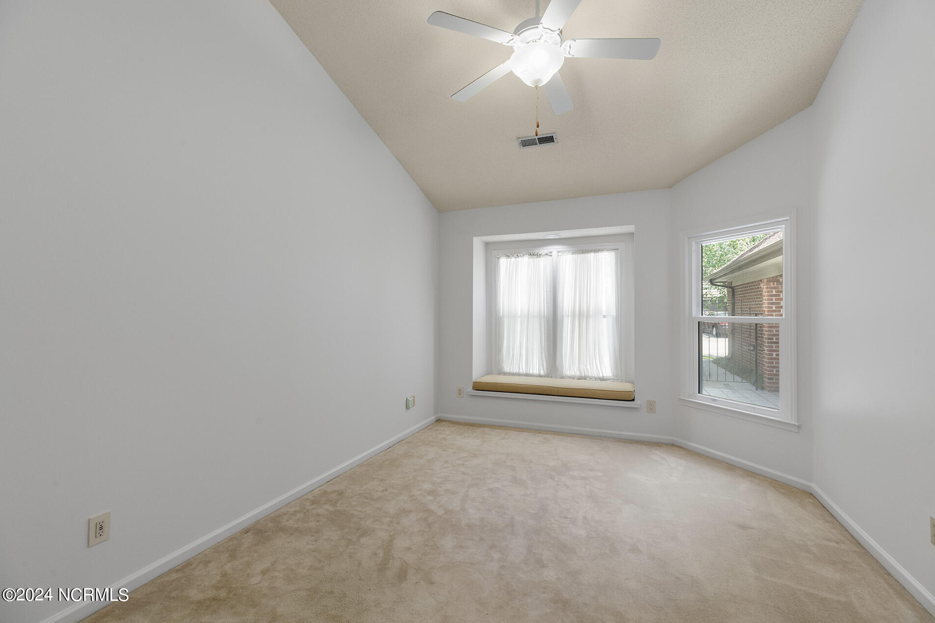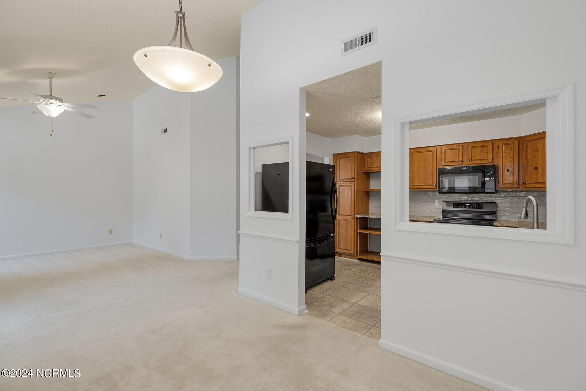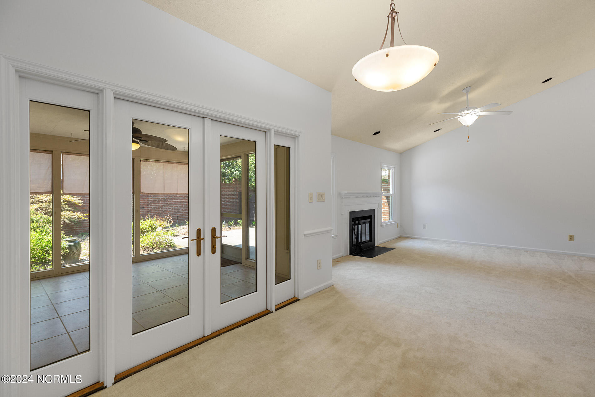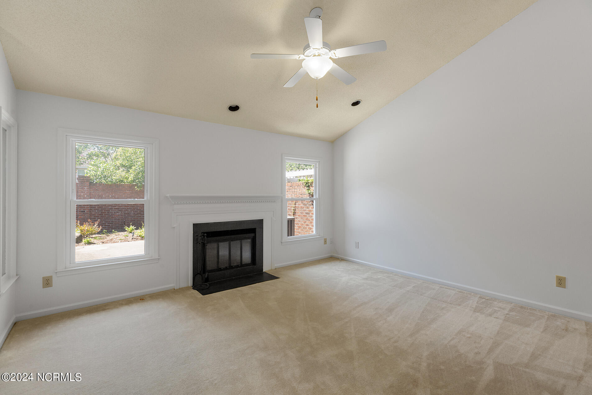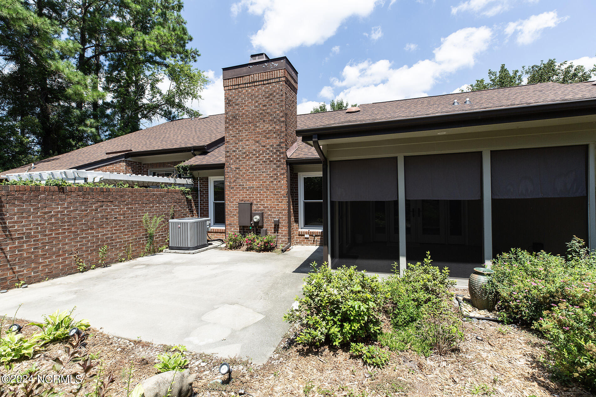 This well-maintained two-bedroom, two-bath home offers comfort, functionality, and proximity to everything Wilmington has to offer. Centrally located, you're minutes from downtown, Novant Health, UNCW, and beautiful beaches for endless sun and surf. The stylish kitchen features wood cabinetry, granite countertops, a sleek induction stove, and a premium Bosch dishwasher—perfect for casual meals or entertaining. The private courtyard with a screened porch offers a peaceful retreat for outdoor relaxation, rain or shine. The open living area boasts high ceilings, fresh paint, and a cozy wood-burning fireplace, creating a warm atmosphere for gatherings or quiet evenings. The primary bedroom includes an en-suite bathroom, while the flexible second bedroom can serve as a home office, guest room, or hobby space. Additional highlights include a one-car garage, visitor parking, and access to the community's saltwater pool and clubhouse. This home blends modern updates with a prime location for comfort and convenience.