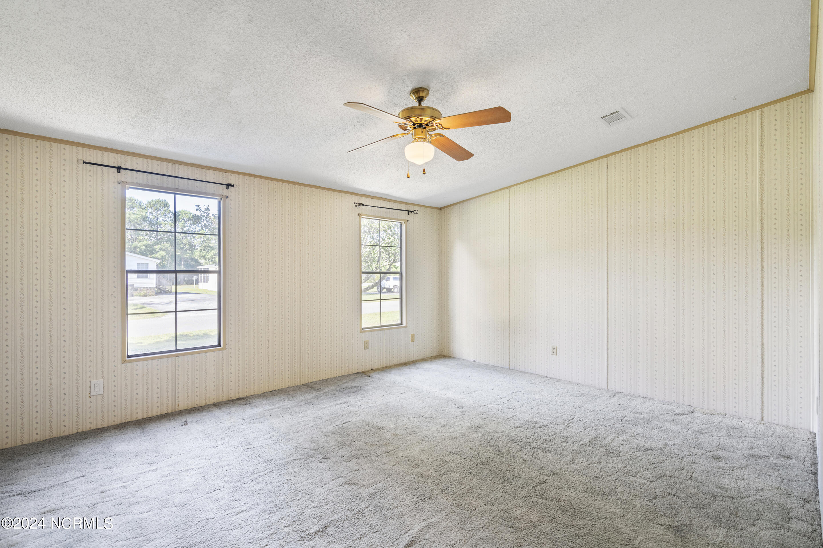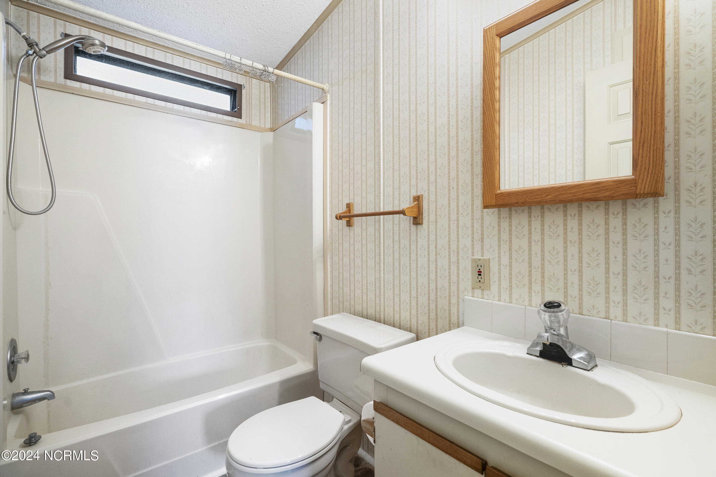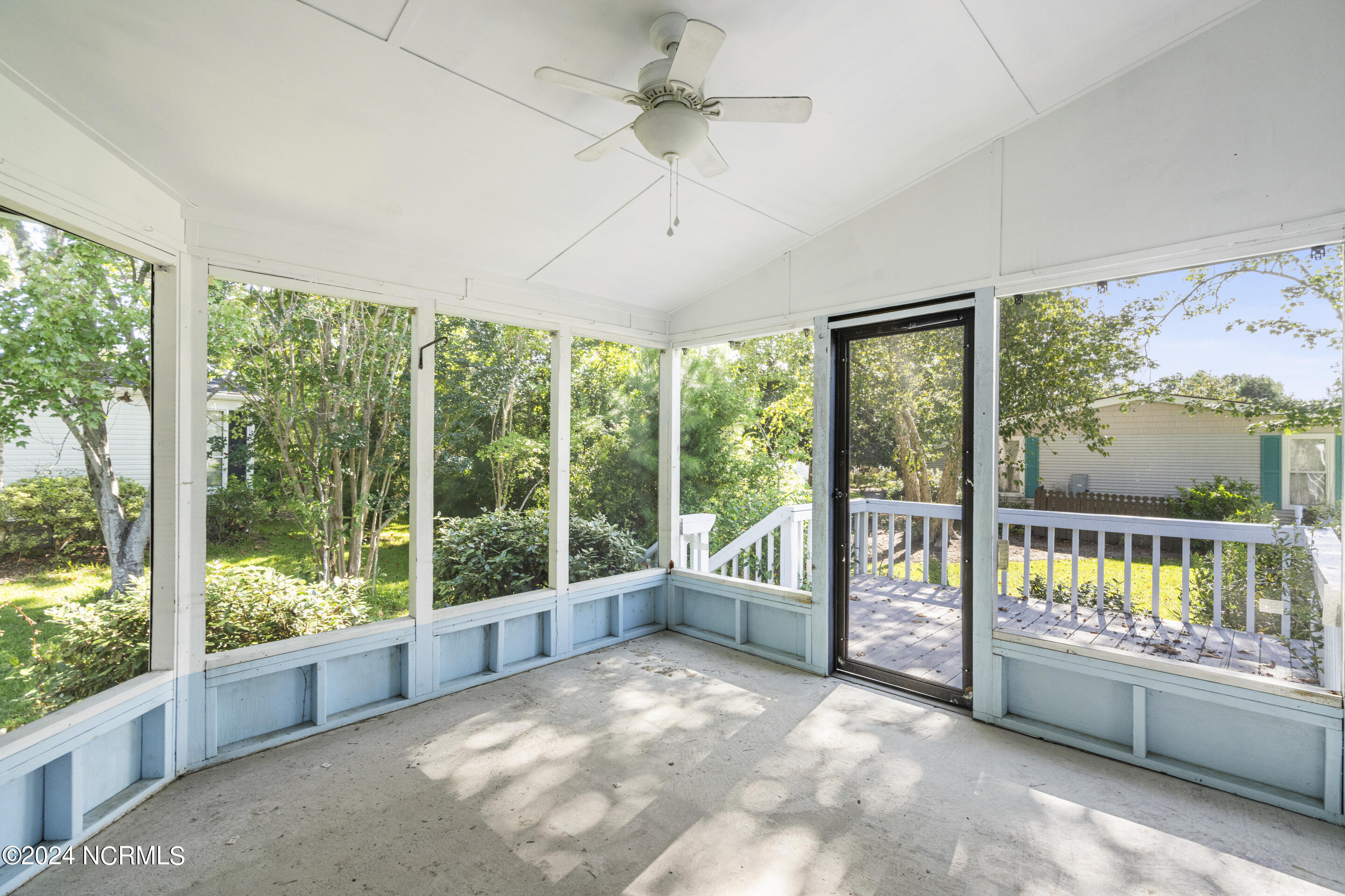 Discover the perfect blend of comfort and convenience in this charming, well-maintained home, right across from the fishing pond! Located in the peaceful community of Topsail Greens and centrally located in the coveted Topsail School District, just minutes away from the stunning beaches of Topsail Island and the vibrant life of downtown Wilmington. As you step inside, you'll be greeted by a spacious living room that invites relaxation and togetherness. The kitchen with pantry opens to a dining room with a bay window. The primary bedroom suite features a walk-in closet and a full bathroom. The home also includes a dedicated laundry room, with a washer and dryer, and an outdoor covered storage shed adds convenience. End your day in bliss on the large, covered porch or in the rear screened room — a perfect spot to unwind and soak in the tranquility of your surroundings, enjoying our beautiful sunsets reflecting off the pond across the street,. Whether you're sipping your morning coffee or enjoying an evening breeze, this outdoor space will quickly become your favorite retreat. Don't miss out on this exceptional opportunity to own a piece of paradise in Topsail Greens! Since the pictures have been taken, the house has been completely cleaned, carpets steamed cleaned, deck railings and steps replaced with new wood. Home is being sold ''As-Is''
