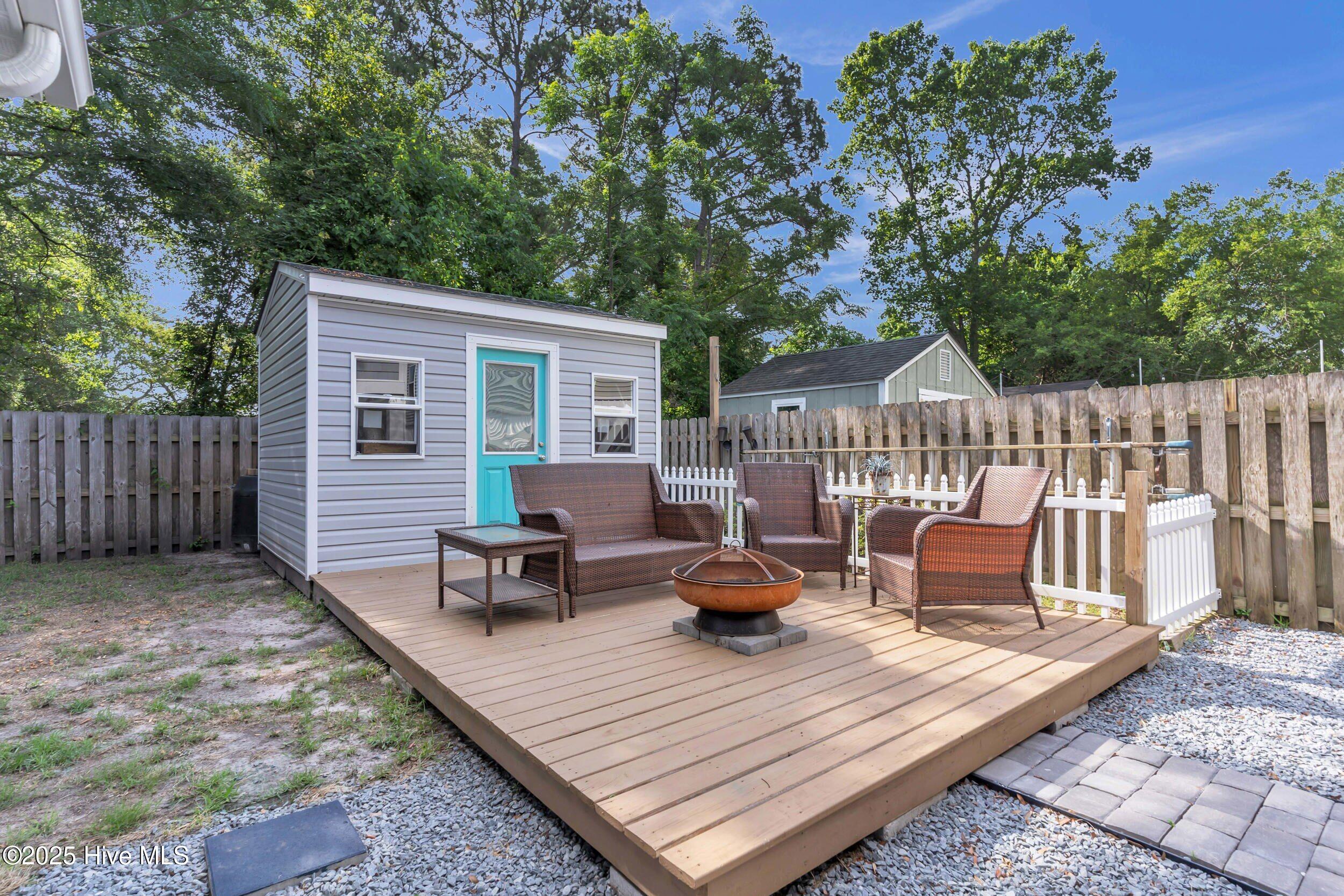 Rare Island Opportunity - 2 Homes in 1 Across from Carolina Beach State Park! This one-of-a-kind coastal property offers TWO full living spaces under one roof—perfect for multi-generational living, rental income, or a luxurious personal retreat. The main home is flooded with natural light and features an open-concept layout with a chef's kitchen, gas appliances, spacious pantry, and elegant finishes throughout. Step out onto the covered composite deck to enjoy ocean air and evening breezes in style. The owner's suite is a sanctuary, with a spa-like soaking tub, walk-in shower, dual vanities, and a custom closet. Two additional bedrooms and a dual-vanity guest bath offer space and comfort for family or guests. Downstairs, a fully independent 2-bedroom, 1-bath apartment with its own private entry, kitchen, laundry, and patio delivers flexibility and value—ideal as a short-term rental, in-law suite, or long-term tenant setup. Outside, you'll find a beautifully landscaped yard with hardscaping, an outdoor shower, deck, storage space, and even a workshop/flex building. All of this sits just across from Carolina Beach State Park on quiet, sought-after Old Dow Road—offering peace, privacy, and unbeatable access to nature and town. Two full living spaces = unmatched flexibility Live in one, rent the other Separate workshop or creative space Minutes from the beach, steps to the State Park Outdoor shower, multiple decks, and custom finishes throughout A truly rare find—schedule your private tour today and step into your island lifestyle!