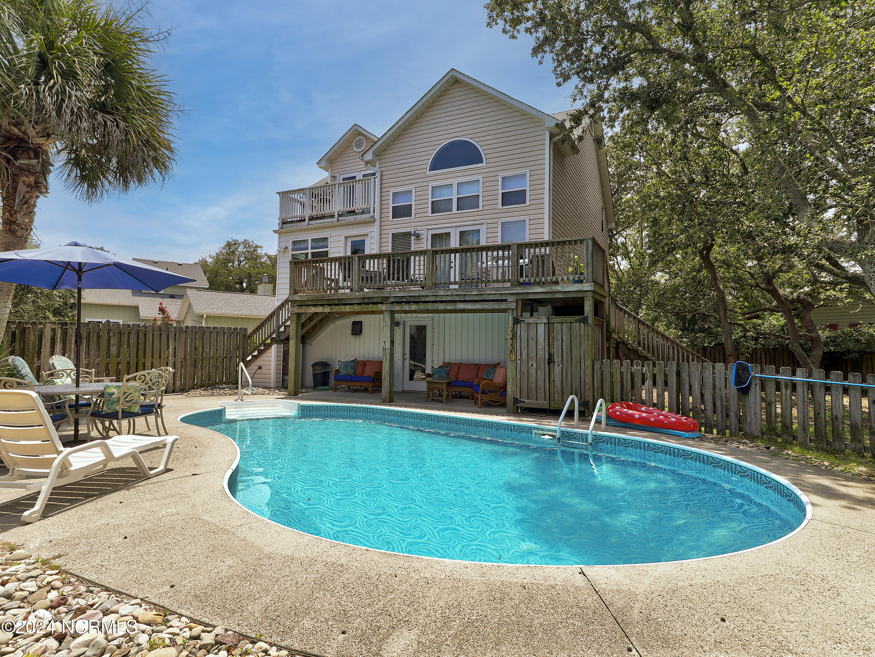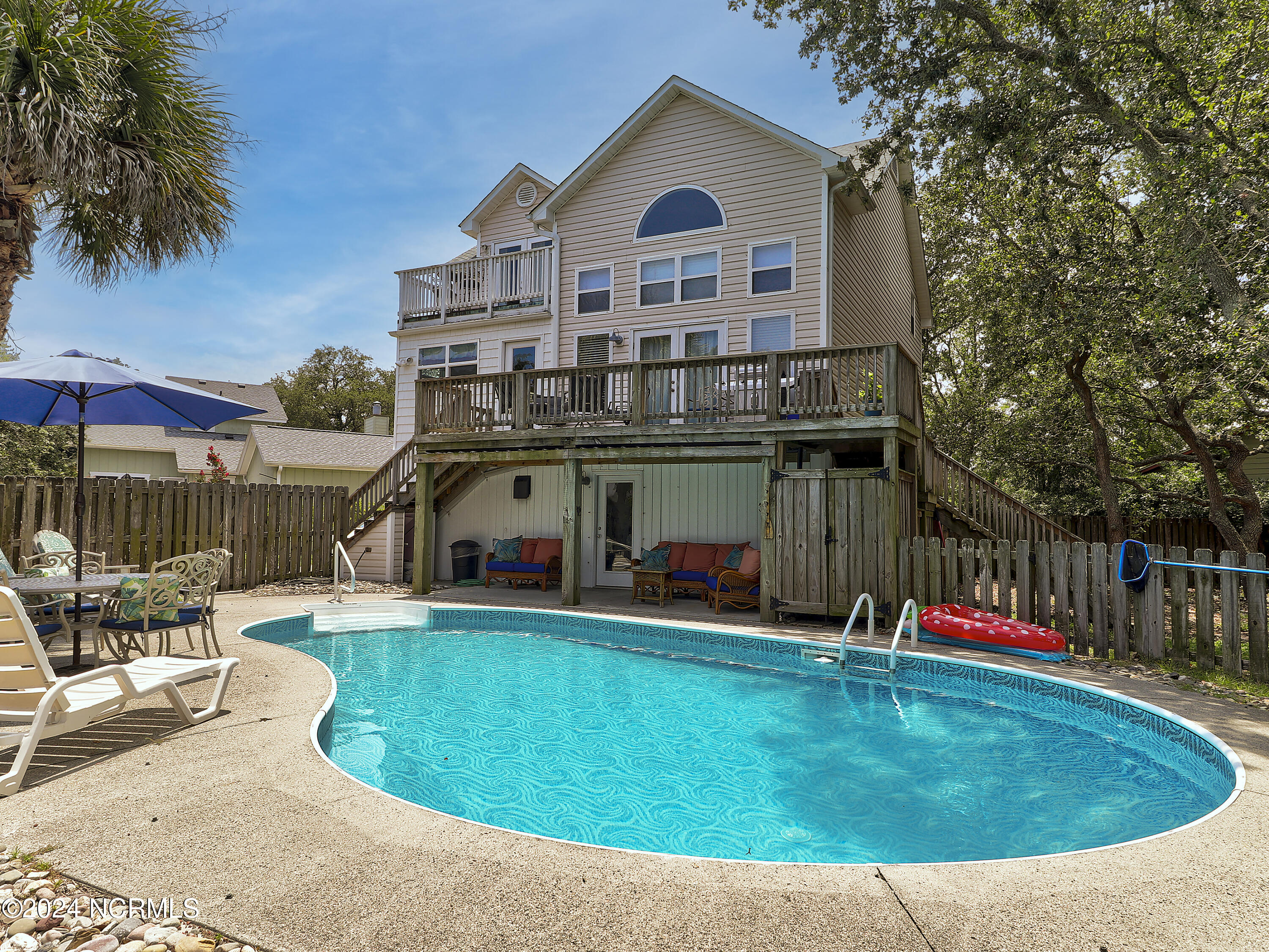 Welcome to your dream coastal retreat in Pleasure Cay! ** Price reduced $70k ** 5 Total bedrooms and 3 bathrooms, this home offers the perfect blend of comfort, convenience, and livability. The main living area contains 3 spacious bedrooms, 2 full baths, and a large bonus room located on the second and third floors. The master bedroom has a large walk-in closet and a private balcony. The first floor boasts a beautifully designed in-law suite with 2 bedrooms, a full kitchen, and a private entrance—ideal for guests or multi-generational living. Enjoy the ultimate outdoor oasis with a large, fenced in backyard, complete with an in-ground pool and an expansive deck. There is a 1 car garage and plenty of parking. Plus, a deeded 28' boat slip with gated access and parking gives you easy access to the water. Just a short golf cart ride away, you'll find shopping, dining, and the vibrant boardwalk. Coastal living at its finest!