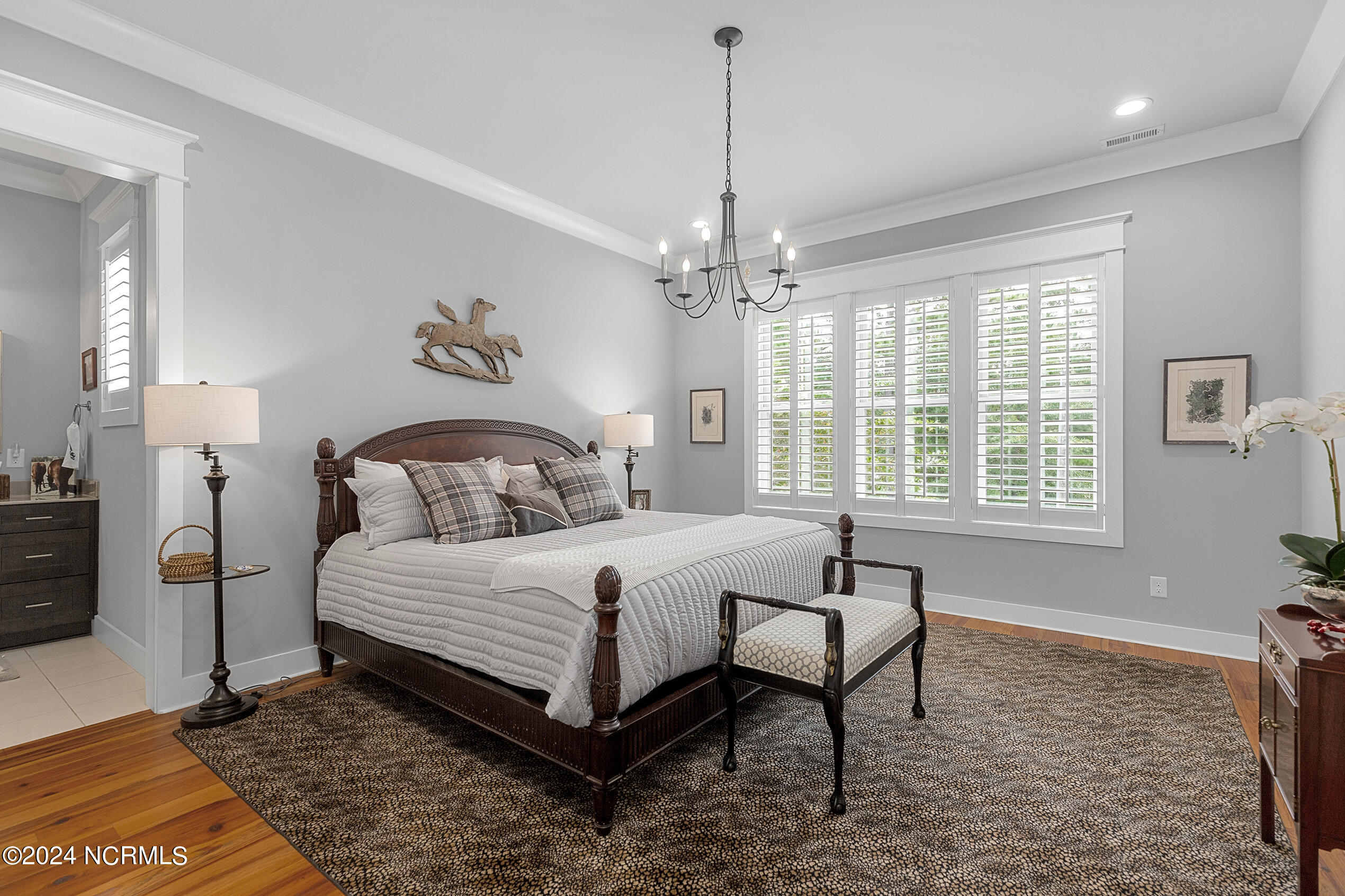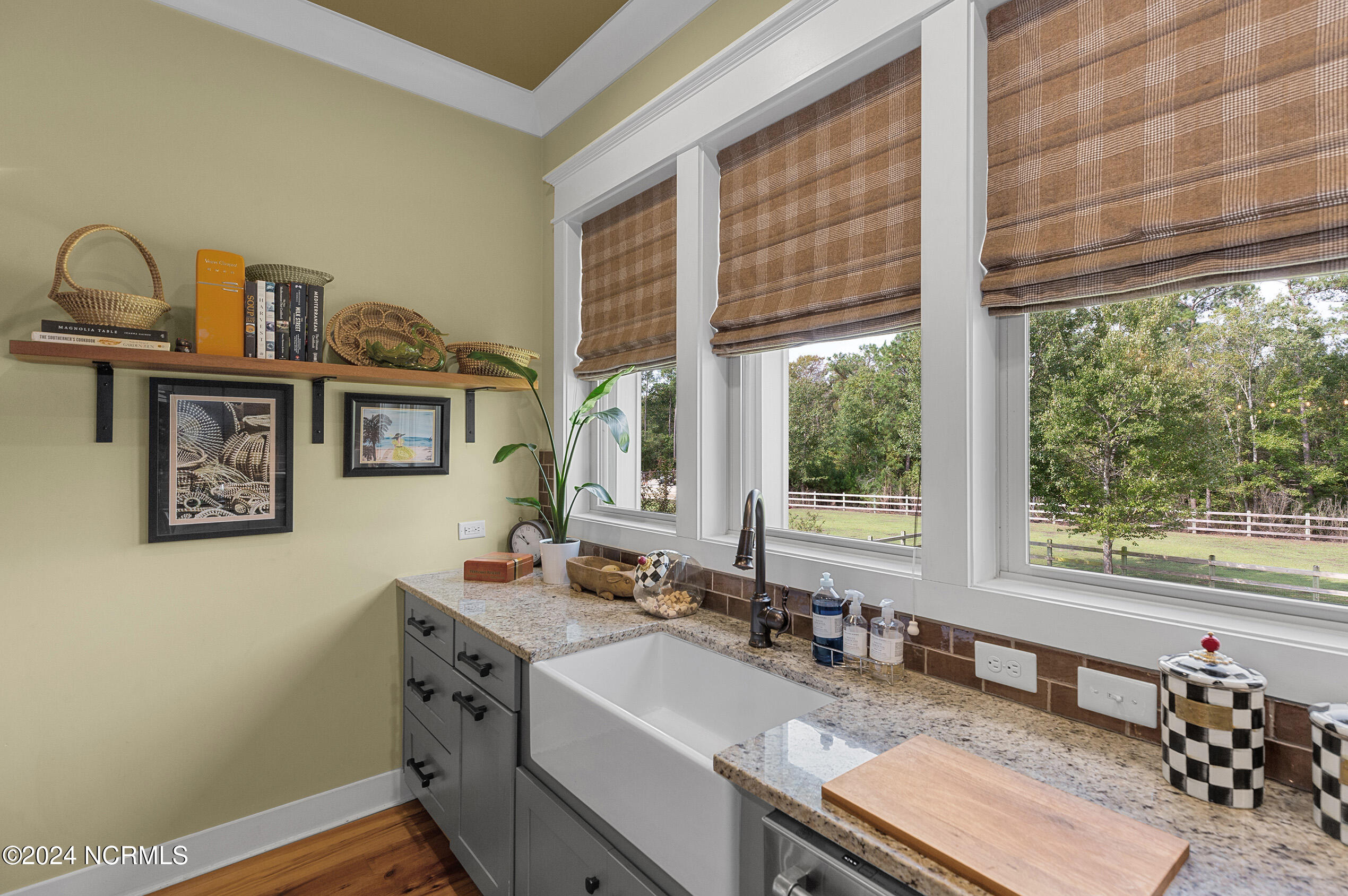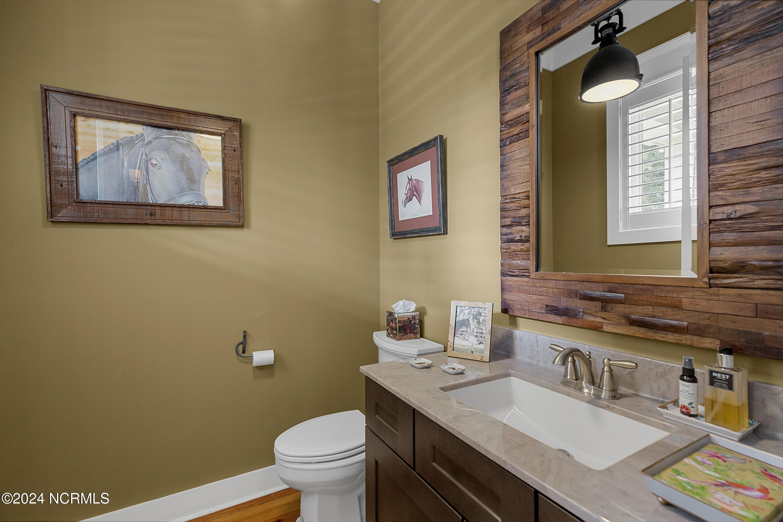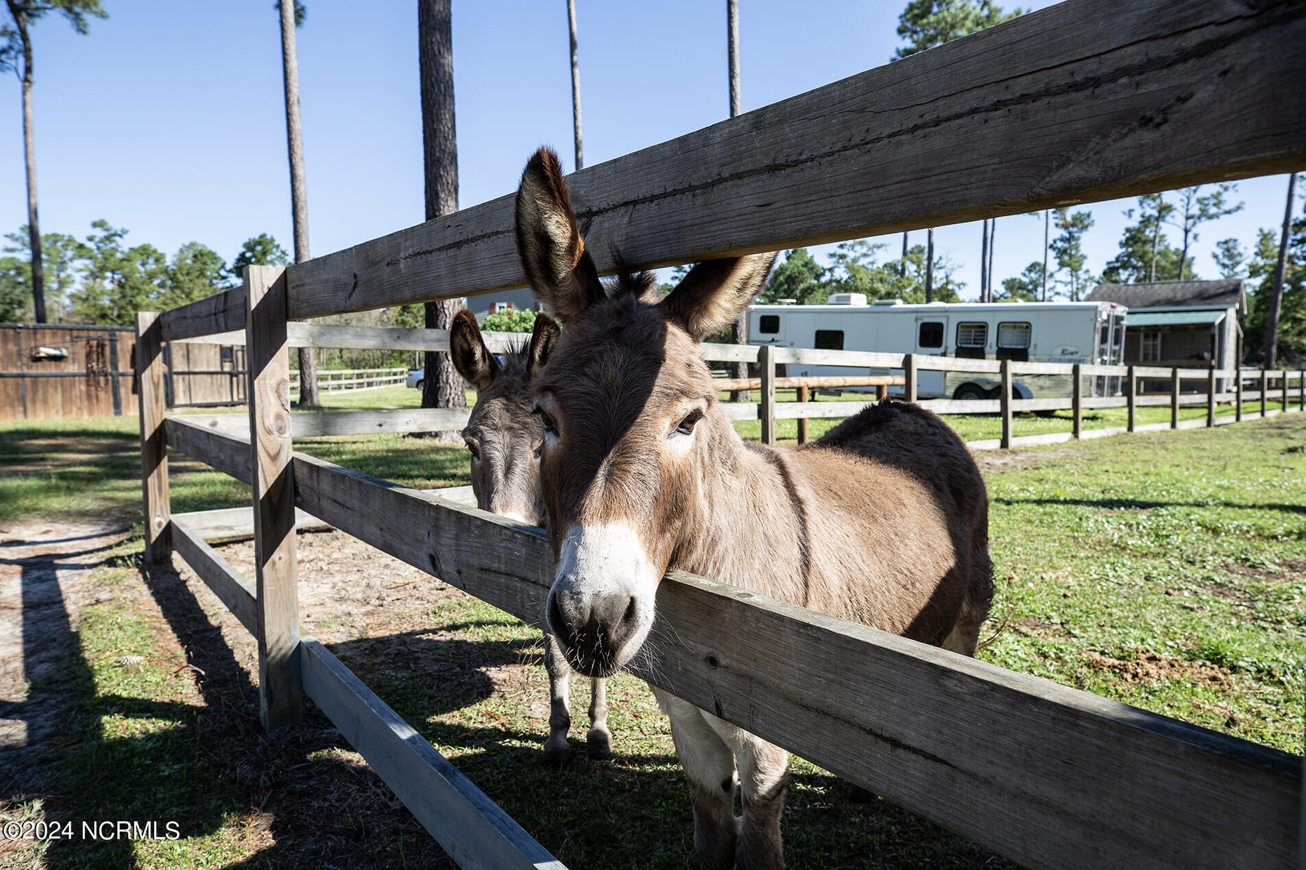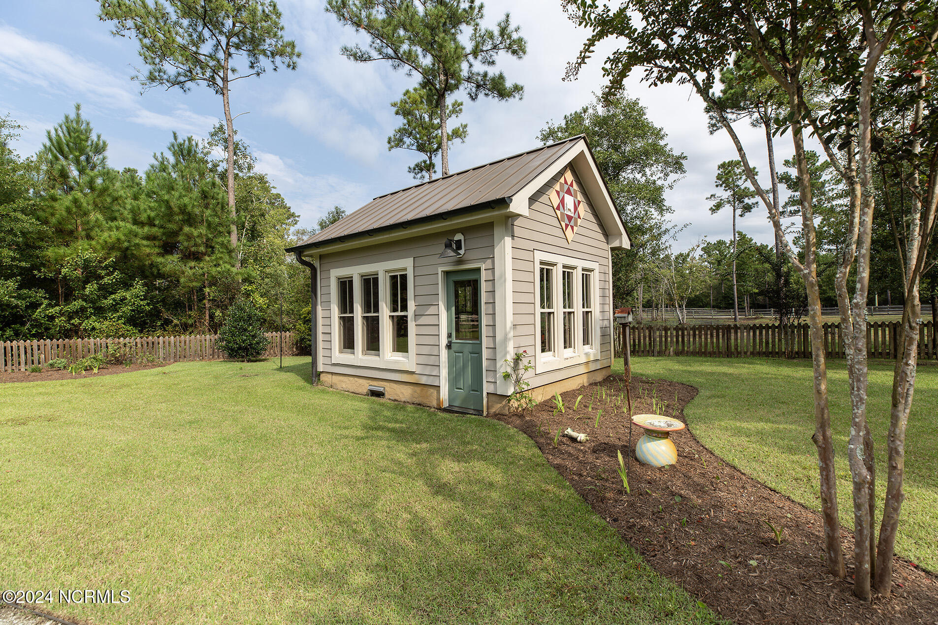 Nestled in the gated neighborhood of Equine Acres, this homestead - complete with a beautiful home, horse farm, and detached carriage house - boasts wonderful attention to detail. The home is privately positioned in the middle of groomed pastures and welcoming paths. It enjoys an open floor plan with meticulous detailing including trim molding, stylish cabinet knobs and pulls, and pendant lighting. Other notable features include a well-designed chef's kitchen, welcoming front and back porches, beautiful hardwood flooring, an elevator, and a three car attached garage. The nearby detached carriage house, also with a garage, offers a complete efficiency apartment. The barn offers a four stall center aisle construction with front and rear access from the stalls. There is a spacious tack room with feed storage as well as a washroom for essentials; a separate barn for hay storage and farm equipment is also included. The nearby pasture offers a covered hay feeder and pastures and lawns are partially irrigated with a separate well. Perfect for the avid gardener, a pump house for storage and supplies is also located nearby. The grounds are manicured and landscaped for ideal enjoyment - numerous flowering plants, bluebird houses, and a gravel walkway to the private barn are among the property's noteworthy features. Additionally, the neighborhood offers a private waterfront day dock and gathering place with a gazebo for community functions; there are also walking and riding trails throughout the wooded areas of Equine Acres.