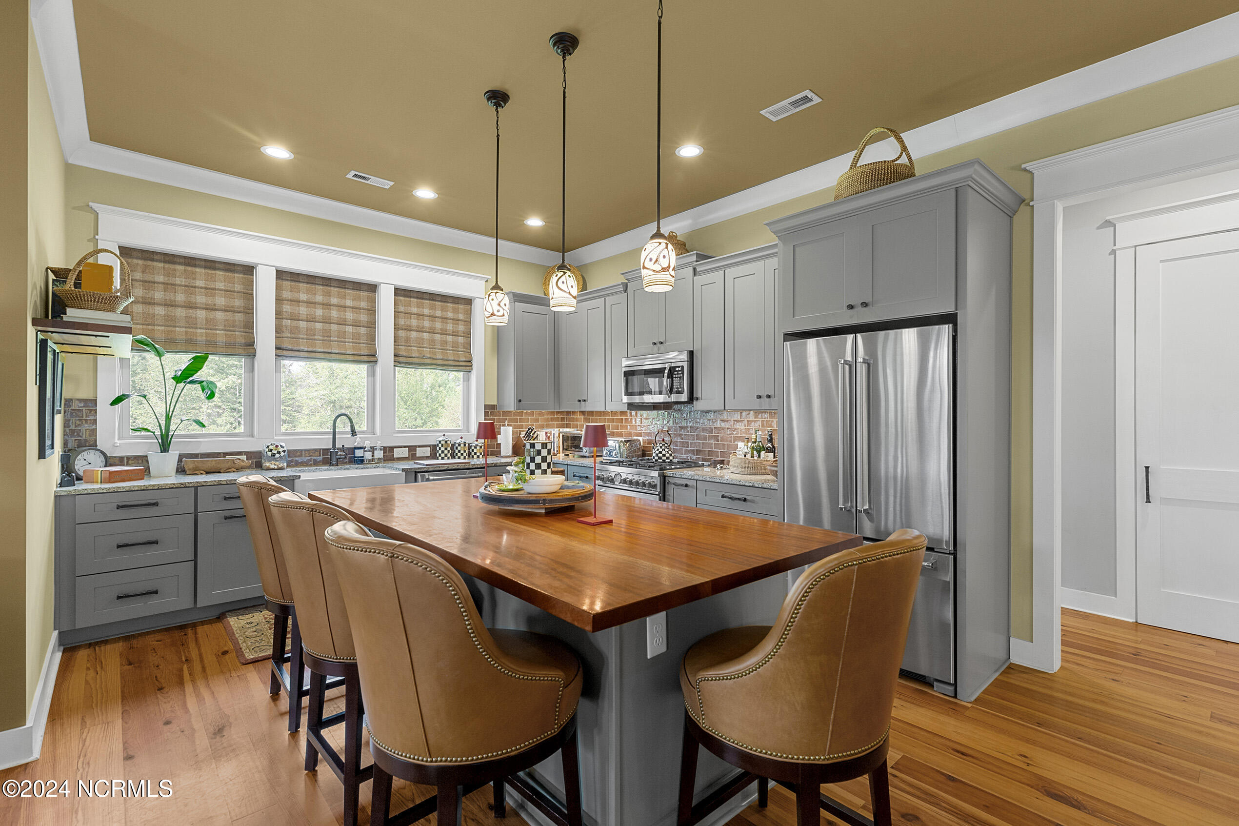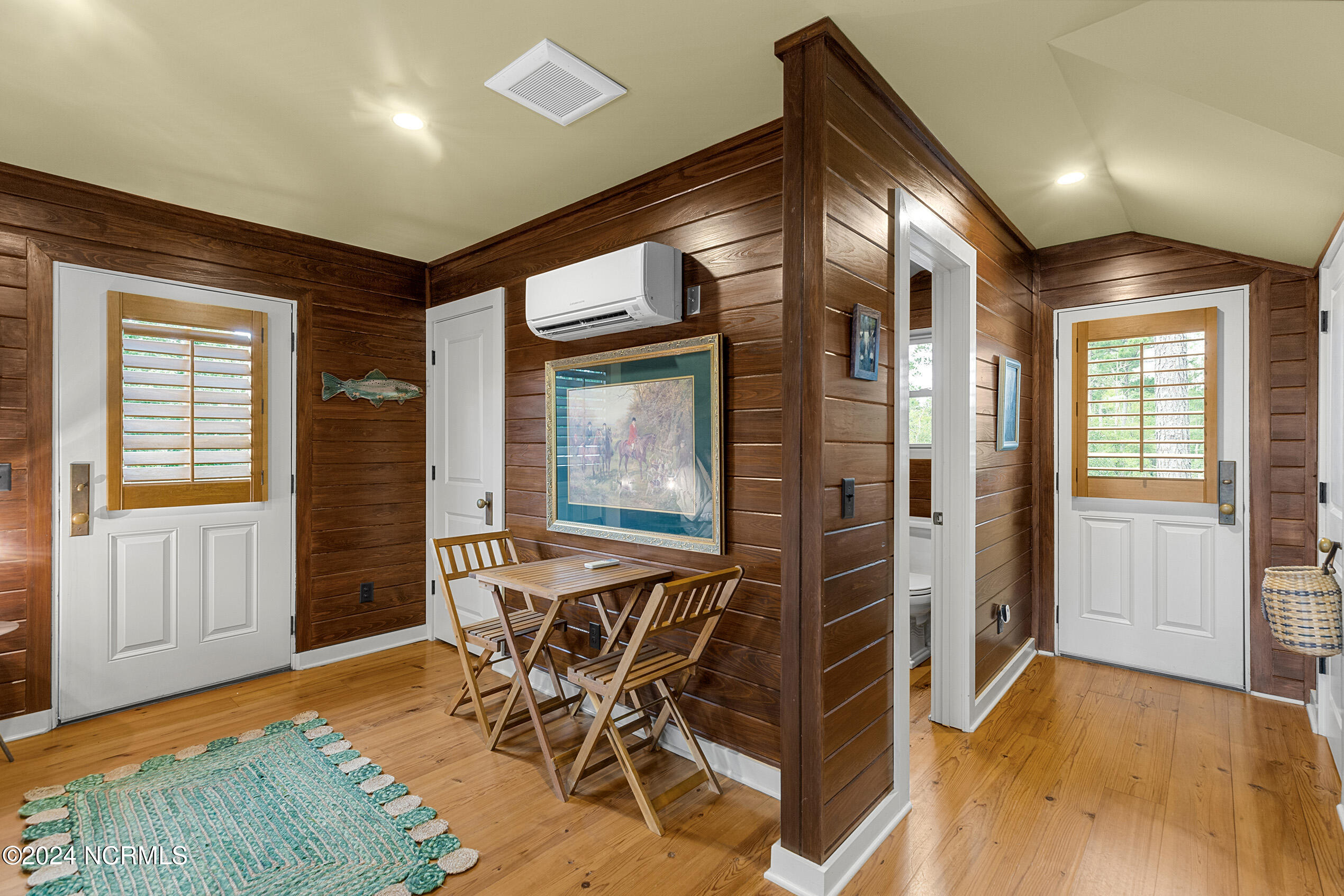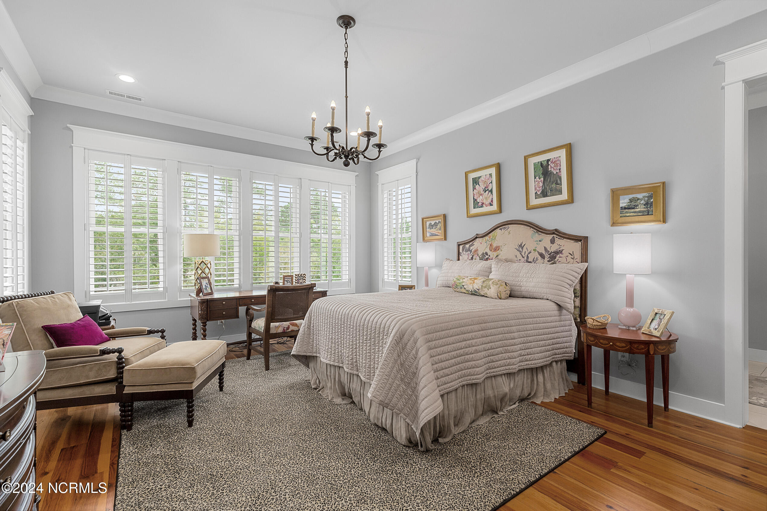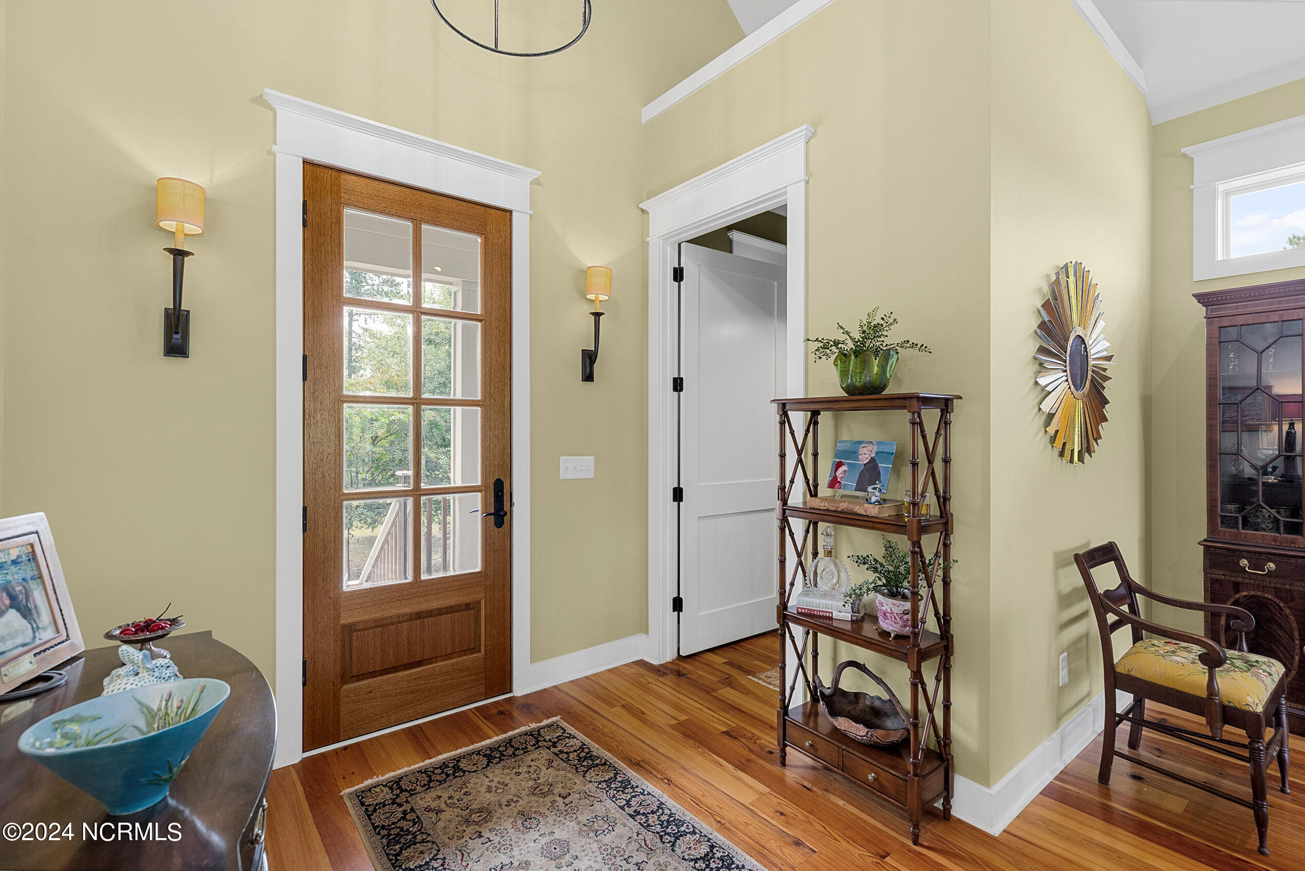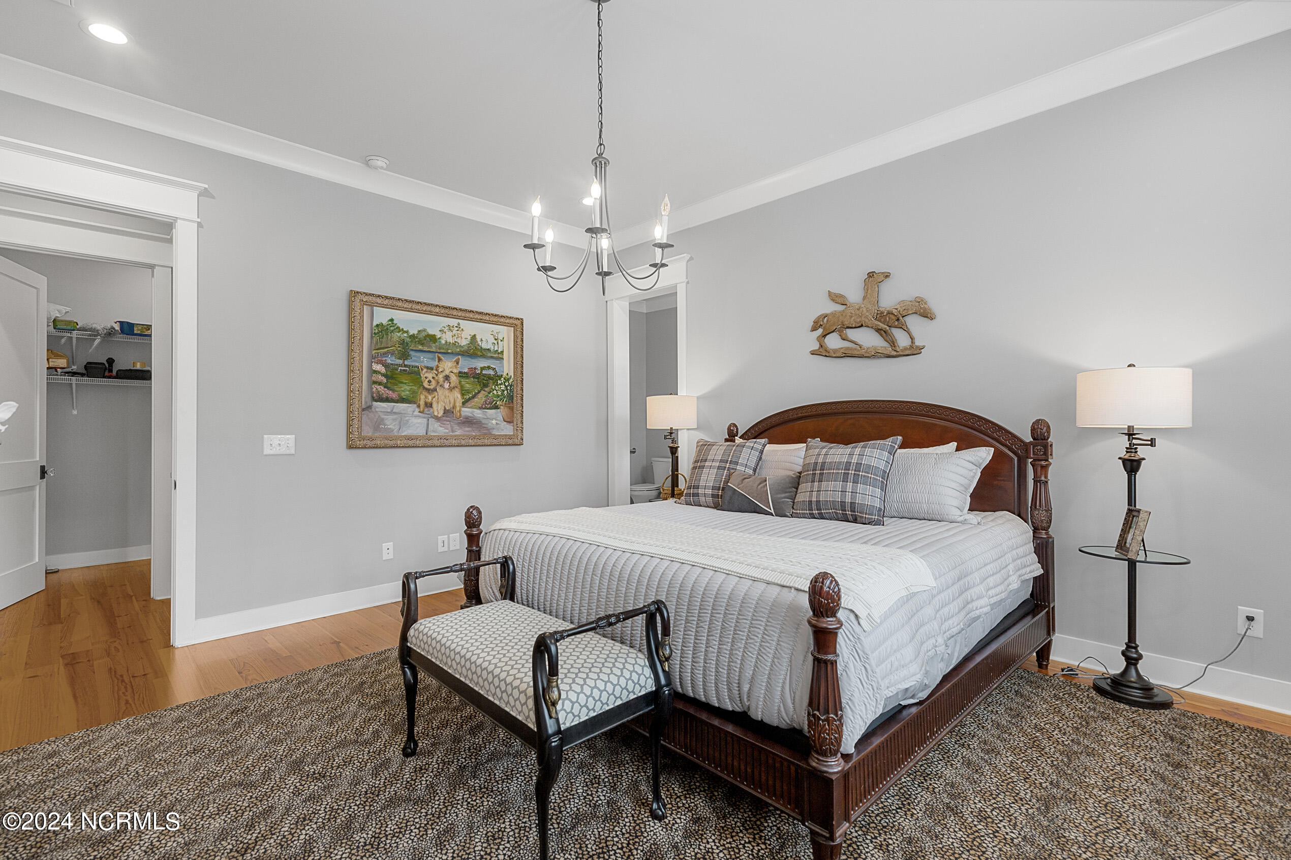 Nestled in the gated neighborhood of Equine Acres, this homestead - complete with a beautiful home, horse farm, and detached carriage house - boasts wonderful attention to detail. The home is privately positioned in the middle of groomed pastures and welcoming paths. It enjoys an open floor plan with meticulous detailing including trim molding, stylish cabinet knobs and pulls, and pendant lighting. Other notable features include a well-designed chef's kitchen, welcoming front and back porches, beautiful hardwood flooring, an elevator, and a three car attached garage. The nearby detached carriage house, also with a garage, offers a complete efficiency apartment. The barn offers a four stall center aisle construction with front and rear access from the stalls. There is a spacious tack room with feed storage as well as a washroom for essentials; a separate barn for hay storage and farm equipment is also included. The nearby pasture offers a covered hay feeder and pastures and lawns are partially irrigated with a separate well. Perfect for the avid gardener, a pump house for storage and supplies is also located nearby. The grounds are manicured and landscaped for ideal enjoyment - numerous flowering plants, bluebird houses, and a gravel walkway to the private barn are among the property's noteworthy features. Additionally, the neighborhood offers a private waterfront day dock and gathering place with a gazebo for community functions; there are also walking and riding trails throughout the wooded areas of Equine Acres.