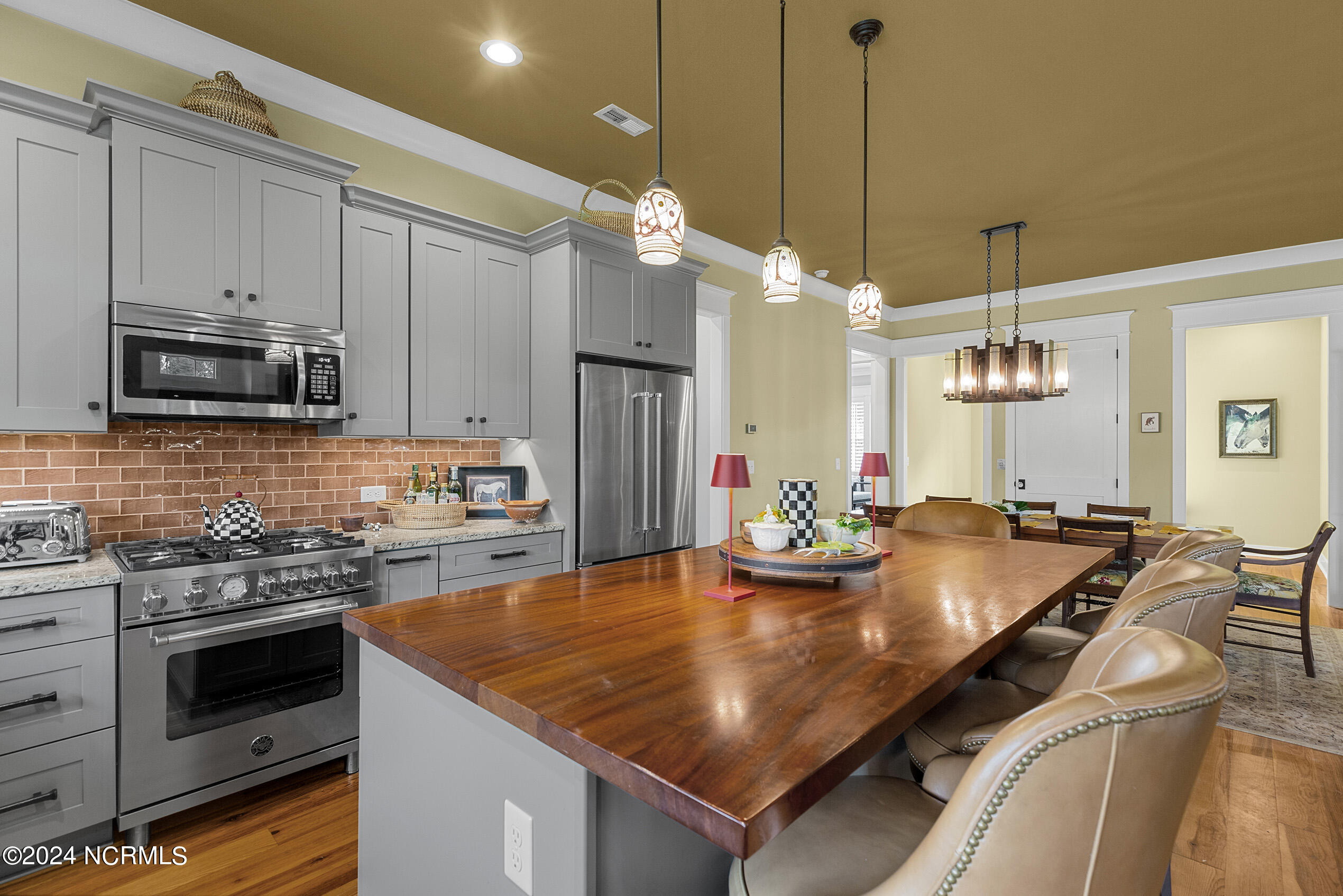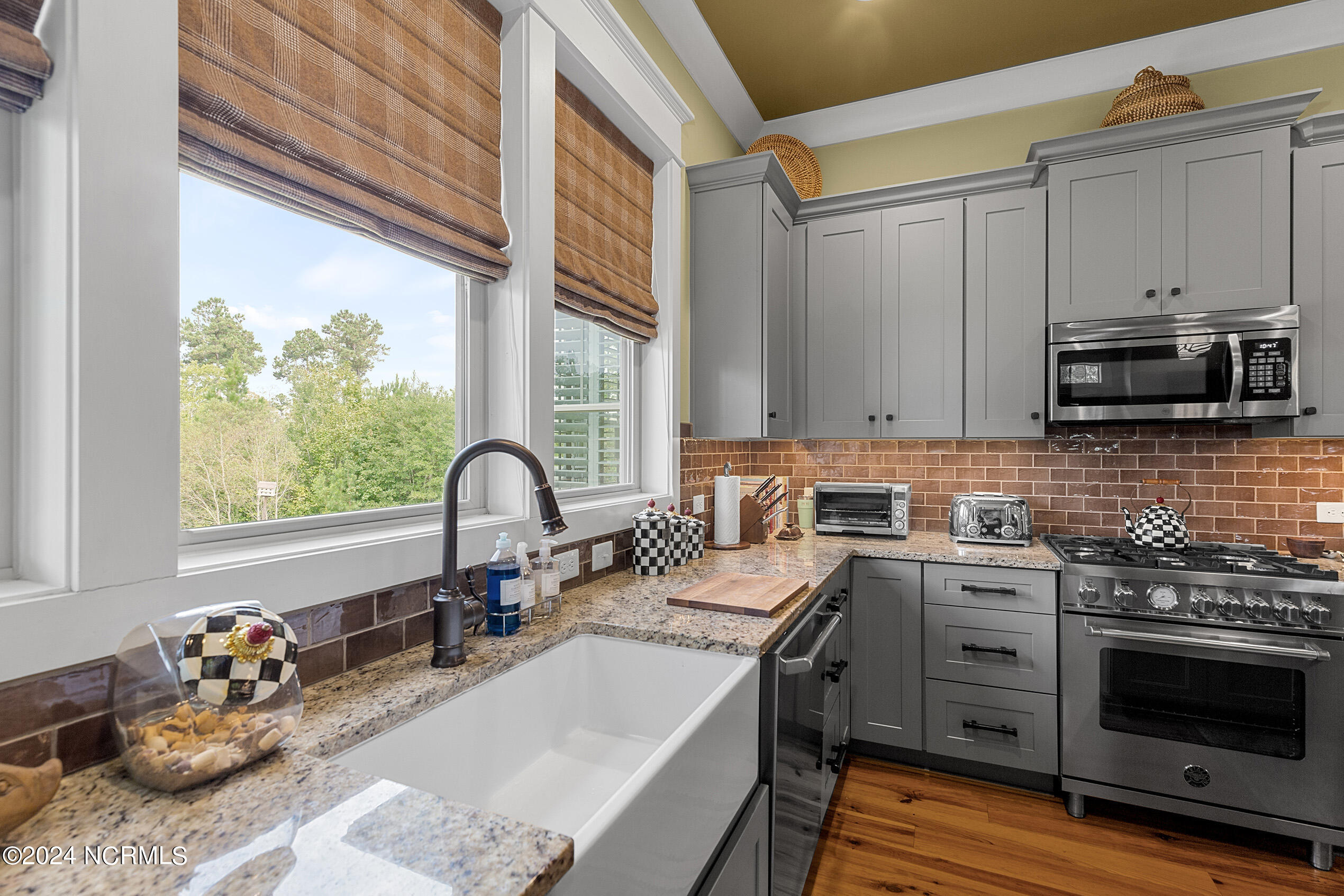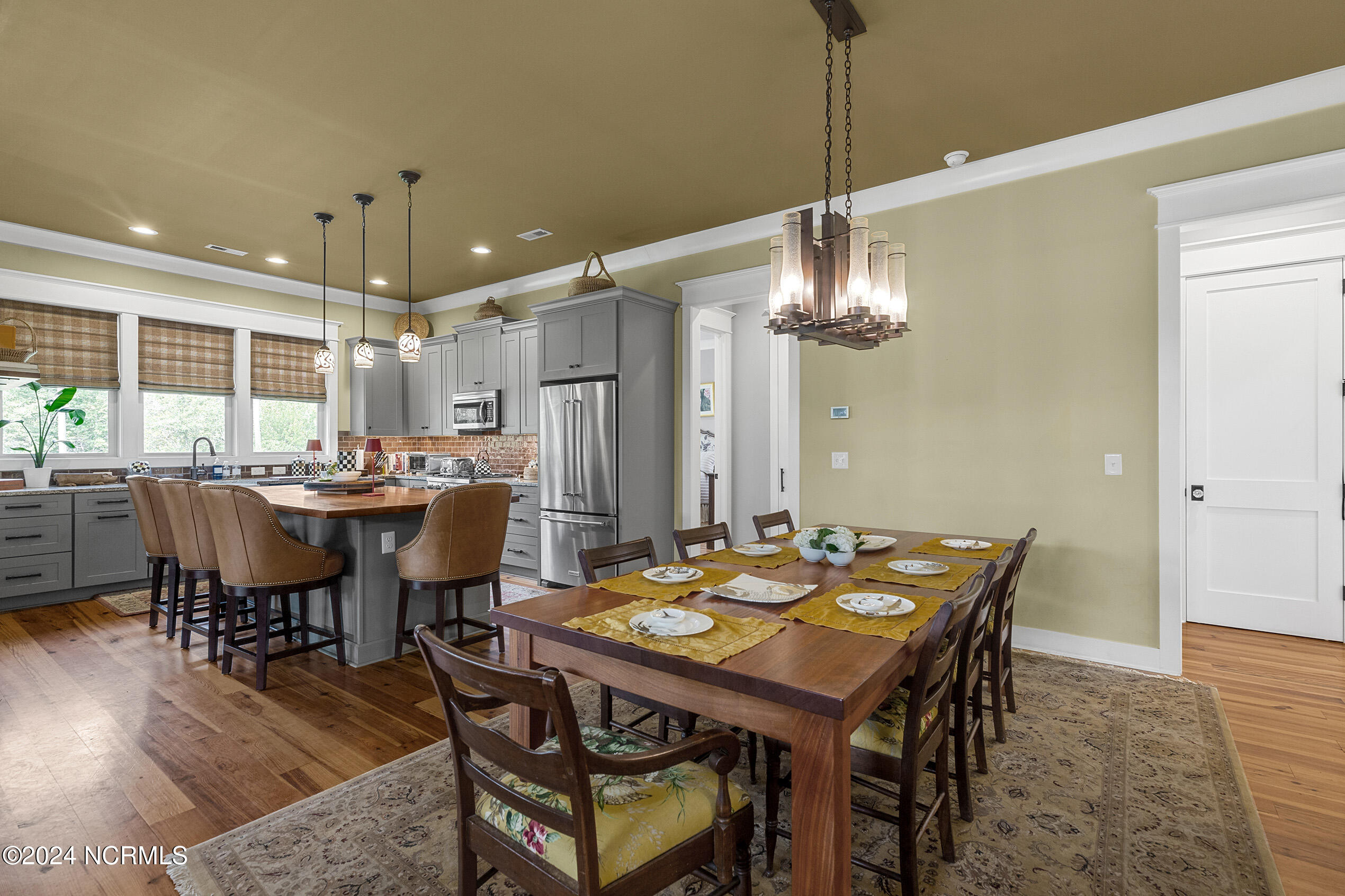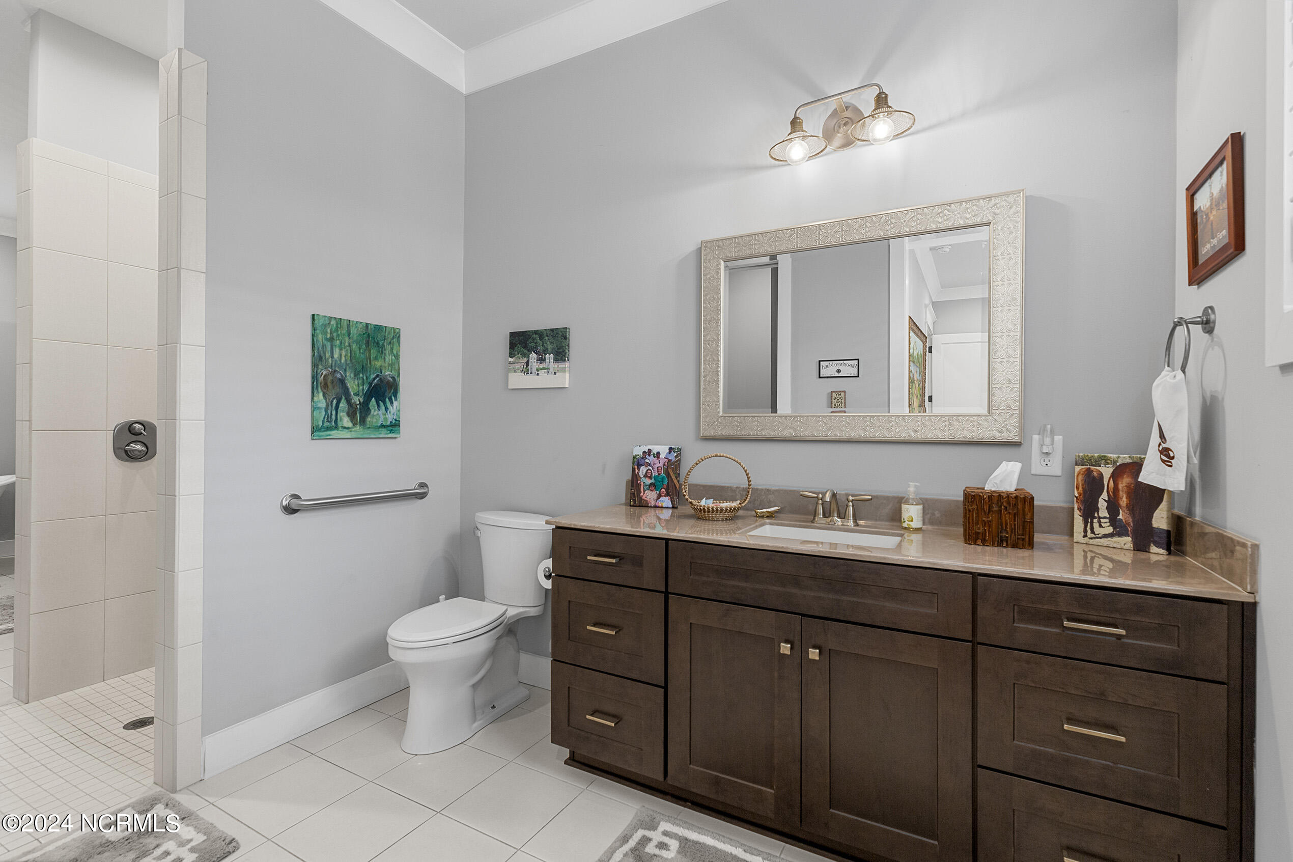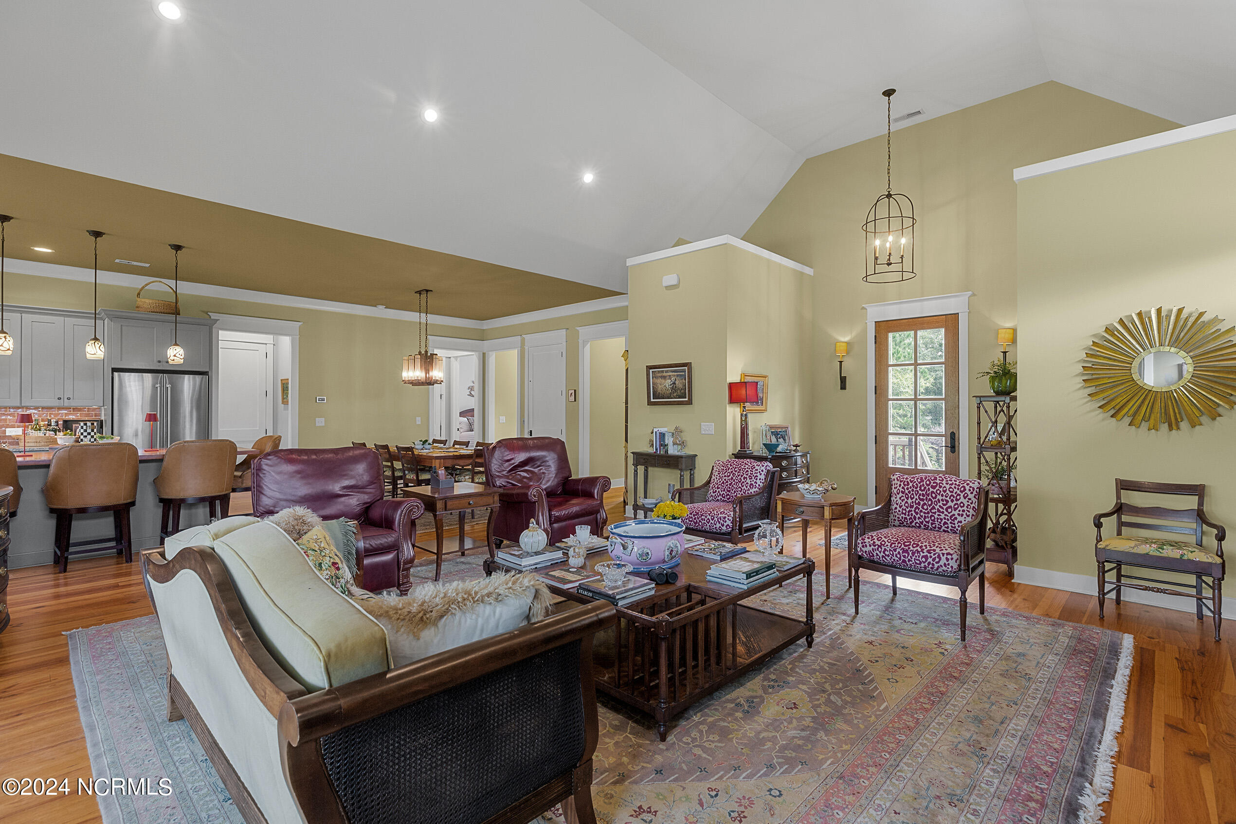 Nestled in the gated neighborhood of Equine Acres, this homestead - complete with a beautiful home, horse farm, and detached carriage house - boasts wonderful attention to detail. The home is privately positioned in the middle of groomed pastures and welcoming paths. It enjoys an open floor plan with meticulous detailing including trim molding, stylish cabinet knobs and pulls, and pendant lighting. Other notable features include a well-designed chef's kitchen, welcoming front and back porches, beautiful hardwood flooring, an elevator, and a three car attached garage. The nearby detached carriage house, also with a garage, offers a complete efficiency apartment. The barn offers a four stall center aisle construction with front and rear access from the stalls. There is a spacious tack room with feed storage as well as a washroom for essentials; a separate barn for hay storage and farm equipment is also included. The nearby pasture offers a covered hay feeder and pastures and lawns are partially irrigated with a separate well. Perfect for the avid gardener, a pump house for storage and supplies is also located nearby. The grounds are manicured and landscaped for ideal enjoyment - numerous flowering plants, bluebird houses, and a gravel walkway to the private barn are among the property's noteworthy features. Additionally, the neighborhood offers a private waterfront day dock and gathering place with a gazebo for community functions; there are also walking and riding trails throughout the wooded areas of Equine Acres.