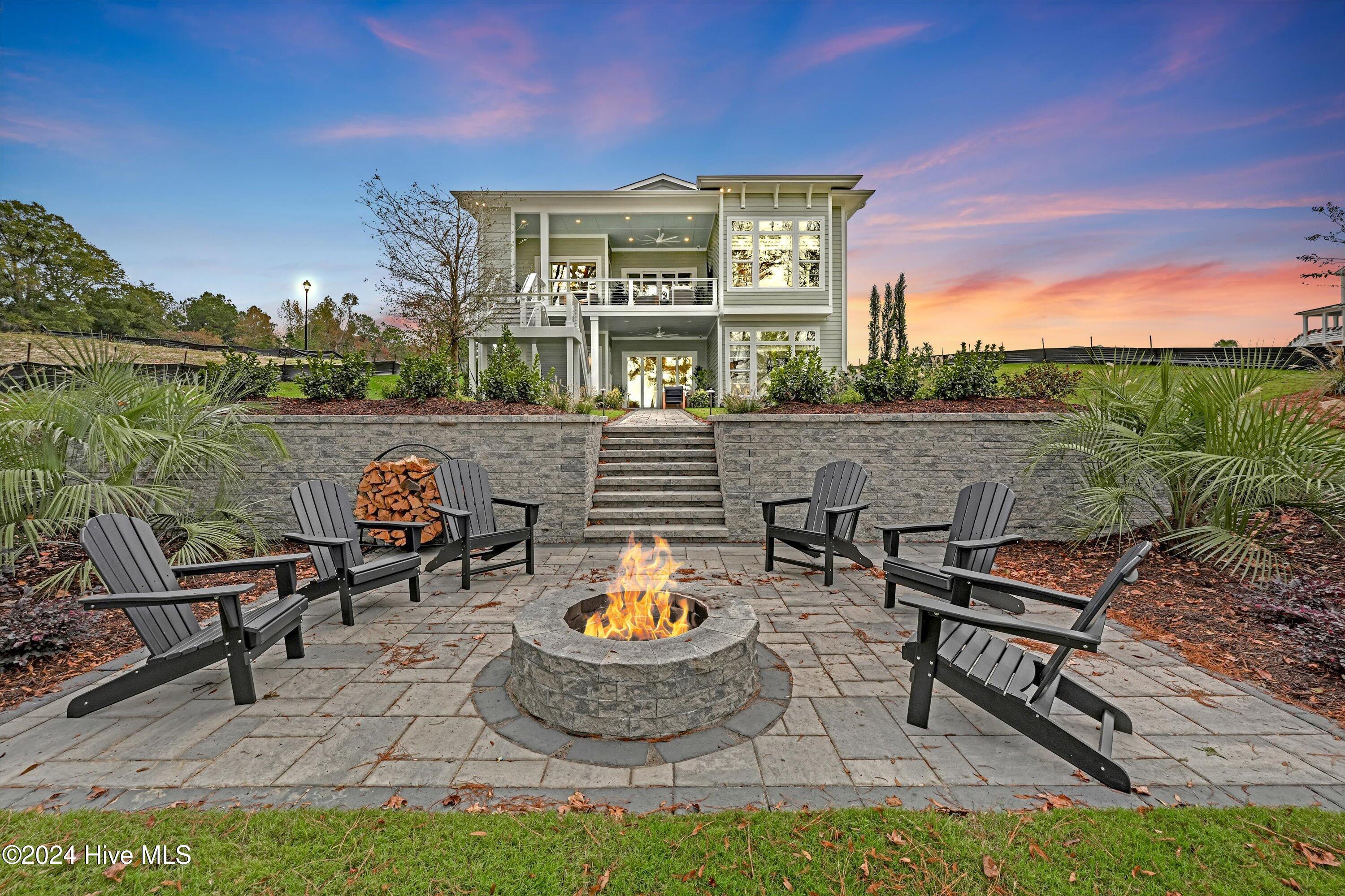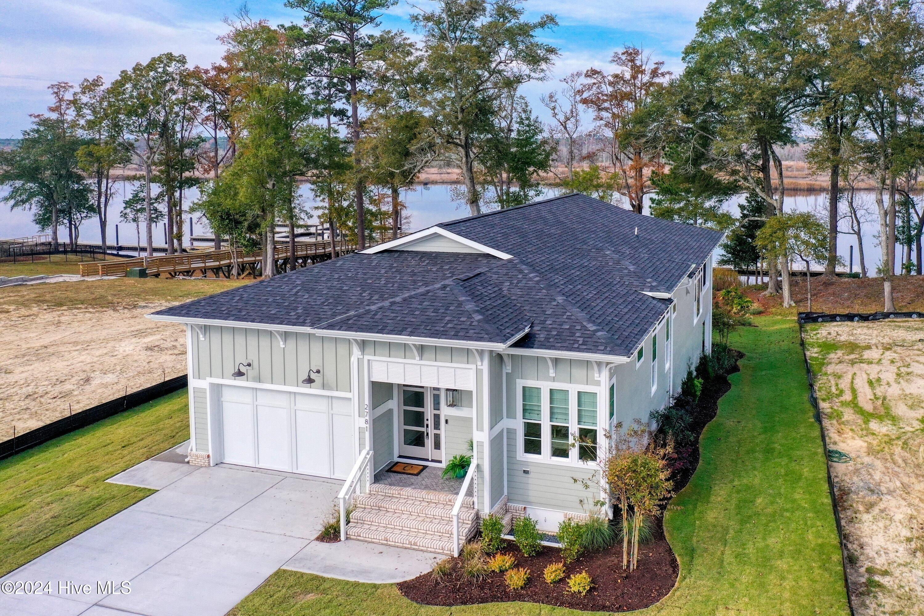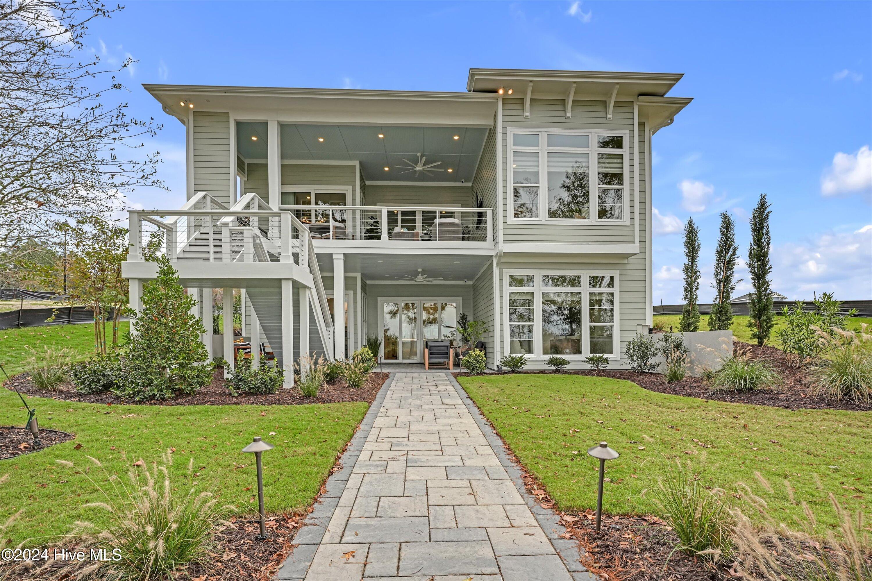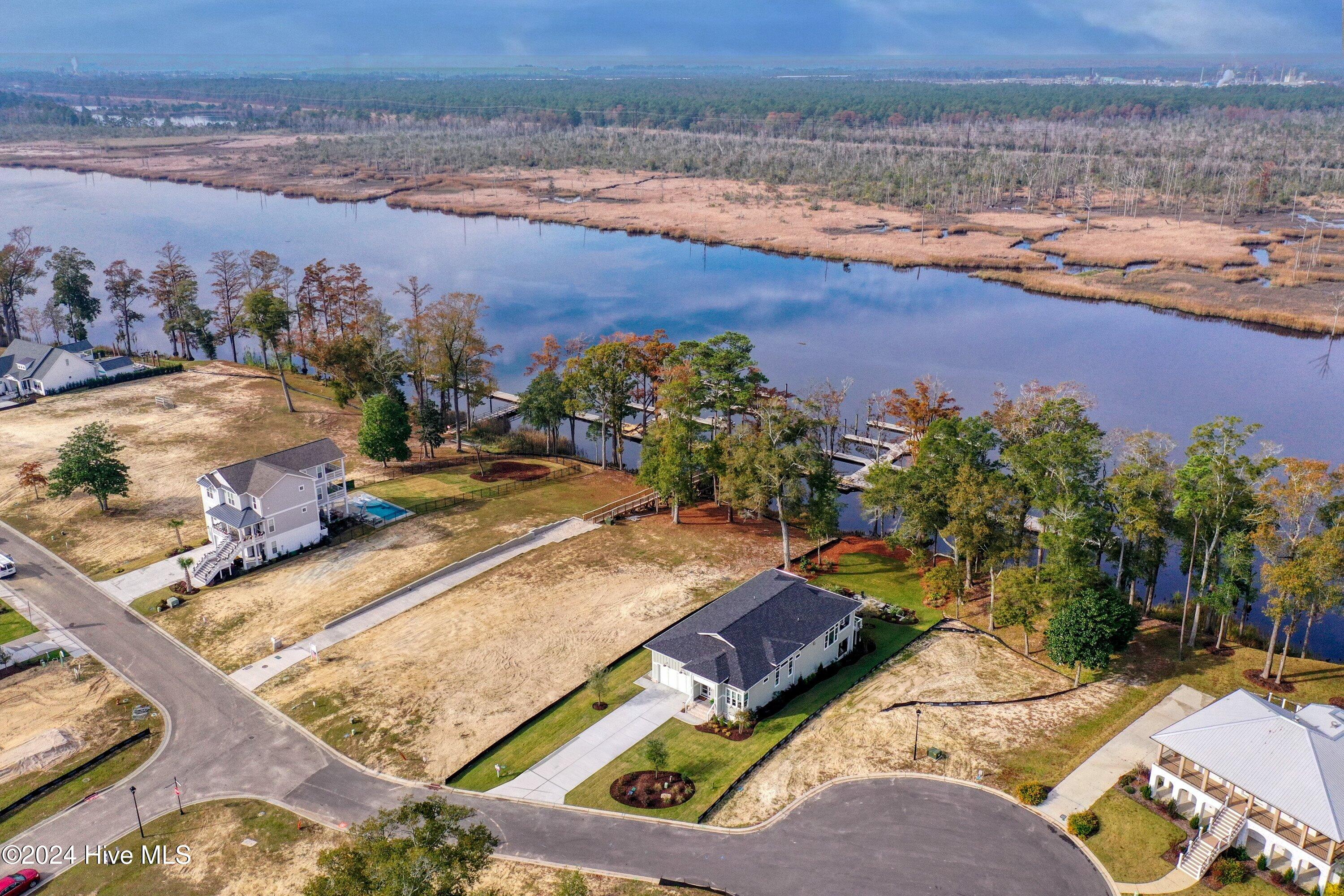 Step into luxury living with this brand-new contemporary masterpiece by Copper Builders, now available with a leaseback option in the gated community of Sunset Reach. Nestled directly on the NE Cape Fear River, this home redefines elegance, blending modern design with breathtaking natural beauty. As you enter, you'll be greeted by soaring 14-foot ceilings adorned with custom details. The focal point of the family room is a stunning 60'' linear fireplace framed in textured Silestone and flanked by chic built-ins. The open floor plan effortlessly connects the family room to the gourmet kitchen—a true showstopper with a grand center island, a sleek 36'' Electrolux gas range and a butler's pantry for seamless entertaining. Love the outdoors? You'll adore the Trek deck and outdoor kitchen, the perfect setting to savor mesmerizing sunsets over the river. Retreat to the serene owner's suite, a sanctuary of relaxation with tranquil water views, a spa-inspired bath featuring dual vanities, a makeup station, and a floor-to-ceiling wood-look tiled shower. A custom walk-in closet connects directly to the laundry room for ultimate convenience. The main floor also boasts a private guest room, a full bath, office, and a thoughtfully designed mudroom with a drop zone just off the 2-car garage. Head downstairs to the walk-out basement, a versatile space ready to fulfill your dreams. Currently serving as the Copper Design Center, it will be transformed to meet your needs before move-in. Multiple outdoor spaces, enhanced with custom landscape lighting, invite you to bask in the beauty of waterfront living. Sunset Reach isn't just a neighborhood—it's a lifestyle. Enjoy kayaking on the serene interior lake or strolling along scenic trails. The riverfront marina, with boat slips available for purchase, makes this community a haven for water enthusiasts. Plus, it's just 10 minutes by car or boat from downtown Wilmington. Future amenities include a pool, clubhouse and pickleball court.