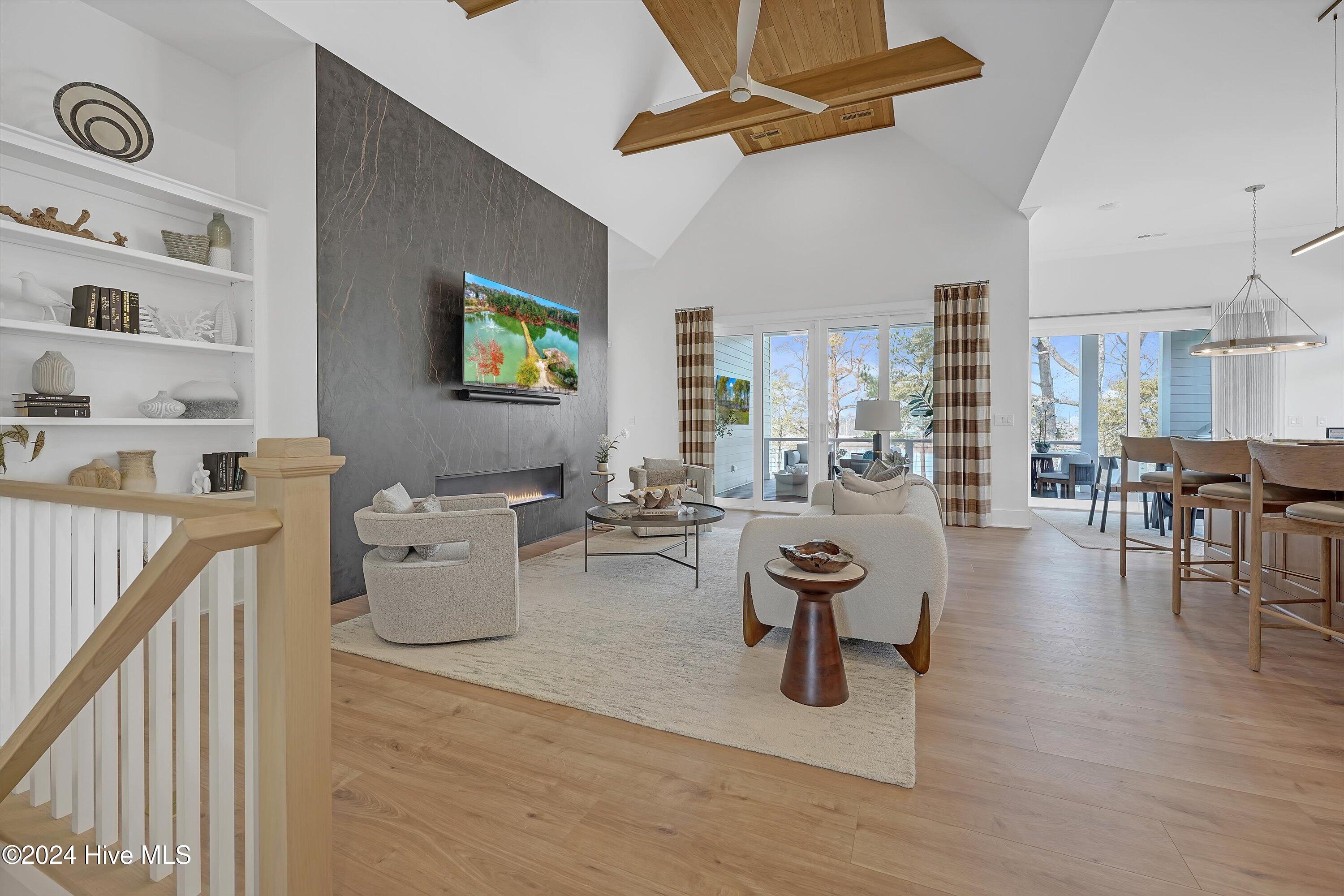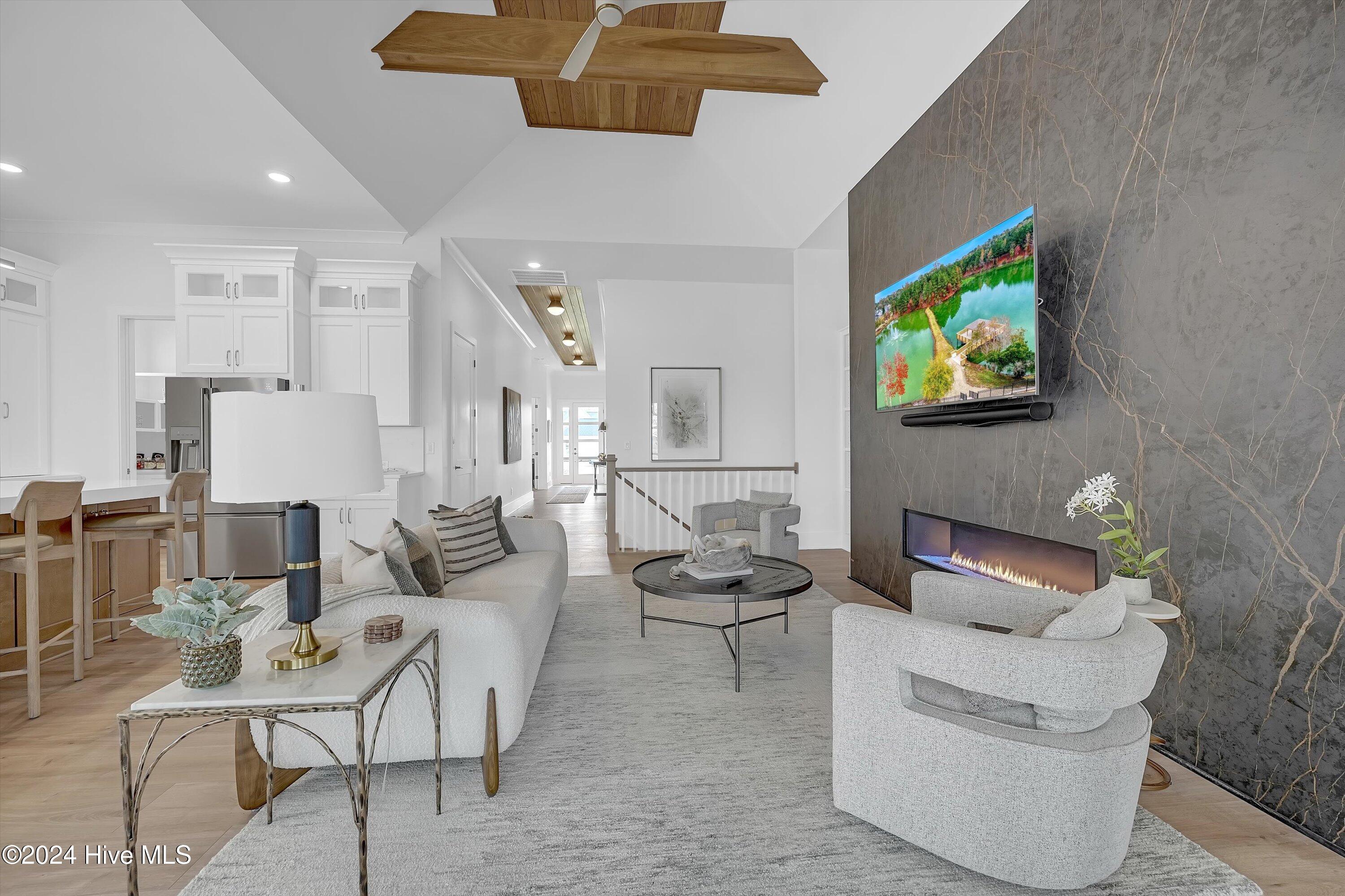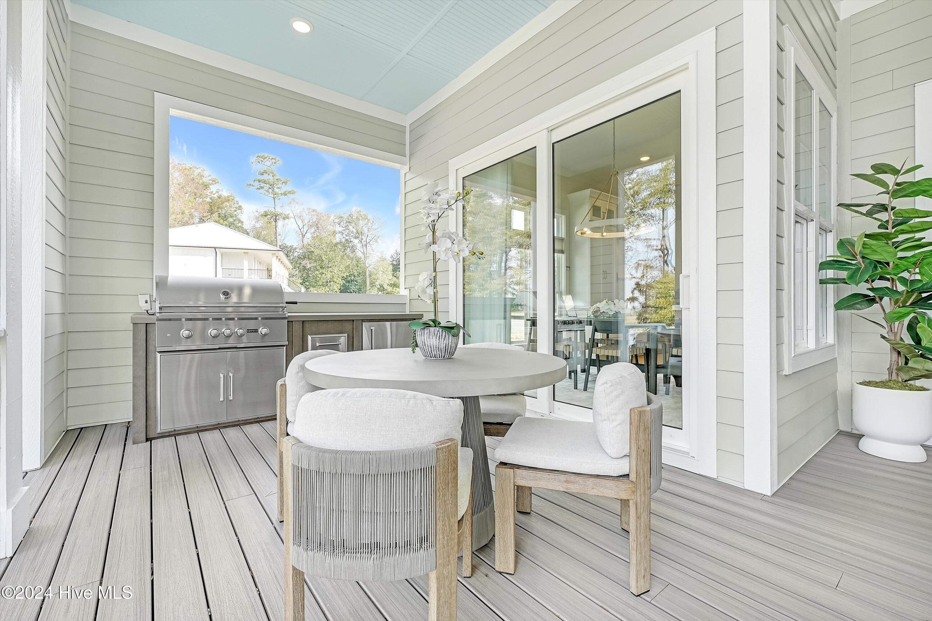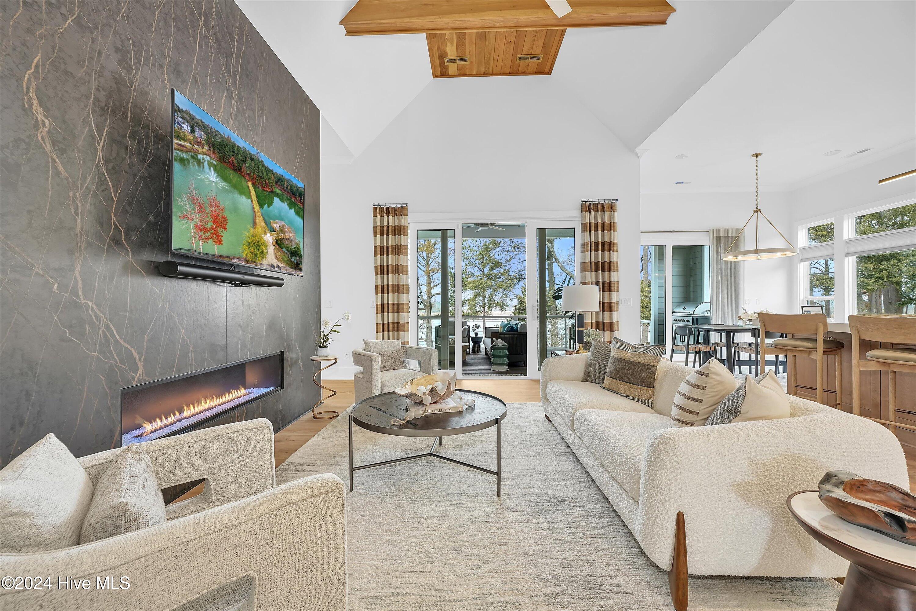 Step into luxury living with this brand-new contemporary masterpiece by Copper Builders, now available with a leaseback option in the gated community of Sunset Reach. Nestled directly on the NE Cape Fear River, this home redefines elegance, blending modern design with breathtaking natural beauty. As you enter, you'll be greeted by soaring 14-foot ceilings adorned with custom details. The focal point of the family room is a stunning 60'' linear fireplace framed in textured Silestone and flanked by chic built-ins. The open floor plan effortlessly connects the family room to the gourmet kitchen—a true showstopper with a grand center island, a sleek 36'' Electrolux gas range and a butler's pantry for seamless entertaining. Love the outdoors? You'll adore the Trek deck and outdoor kitchen, the perfect setting to savor mesmerizing sunsets over the river. Retreat to the serene owner's suite, a sanctuary of relaxation with tranquil water views, a spa-inspired bath featuring dual vanities, a makeup station, and a floor-to-ceiling wood-look tiled shower. A custom walk-in closet connects directly to the laundry room for ultimate convenience. The main floor also boasts a private guest room, a full bath, office, and a thoughtfully designed mudroom with a drop zone just off the 2-car garage. Head downstairs to the walk-out basement, a versatile space ready to fulfill your dreams. Currently serving as the Copper Design Center, it will be transformed to meet your needs before move-in. Multiple outdoor spaces, enhanced with custom landscape lighting, invite you to bask in the beauty of waterfront living. Sunset Reach isn't just a neighborhood—it's a lifestyle. Enjoy kayaking on the serene interior lake or strolling along scenic trails. The riverfront marina, with boat slips available for purchase, makes this community a haven for water enthusiasts. Plus, it's just 10 minutes by car or boat from downtown Wilmington. Future amenities include a pool, clubhouse and pickleball court.