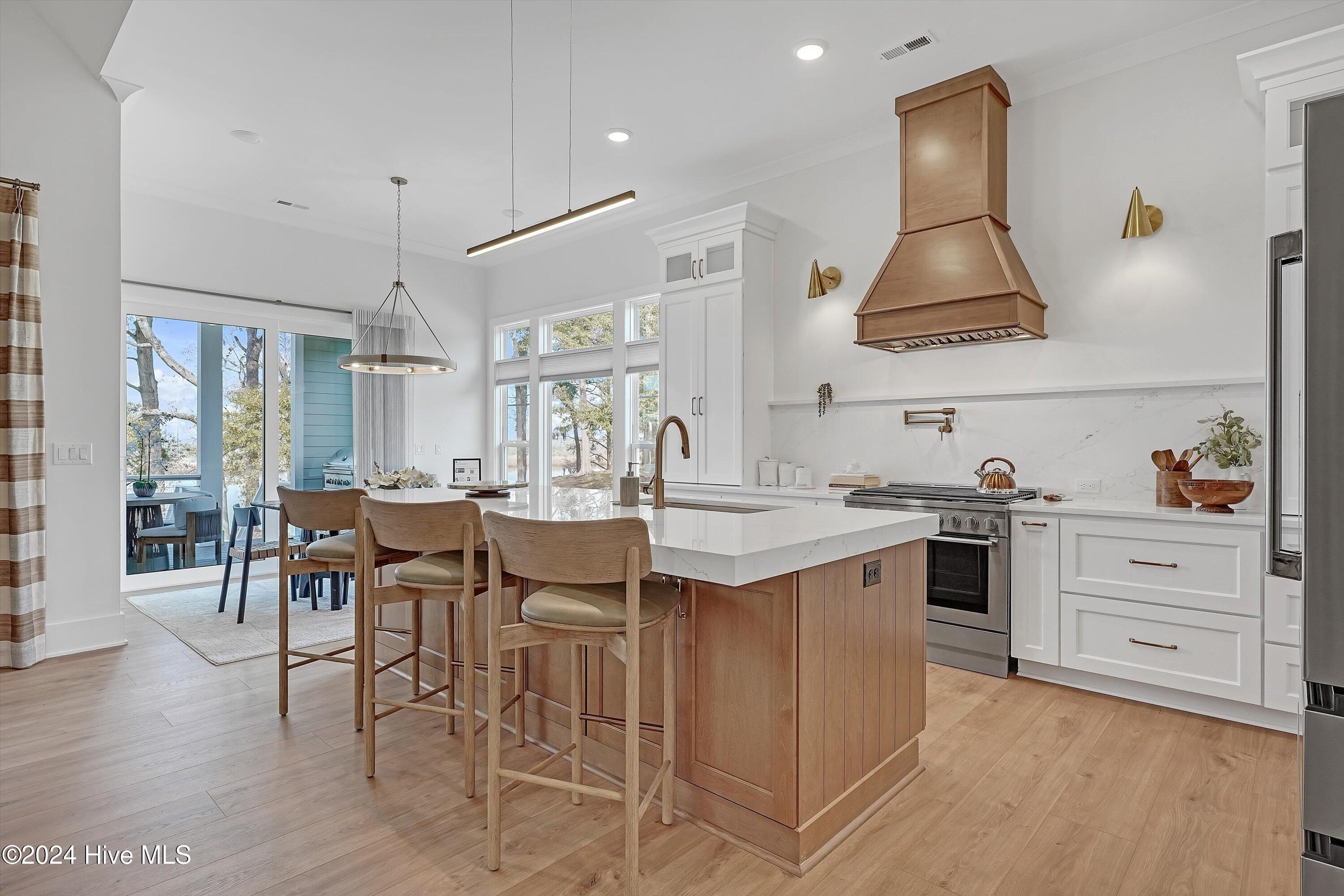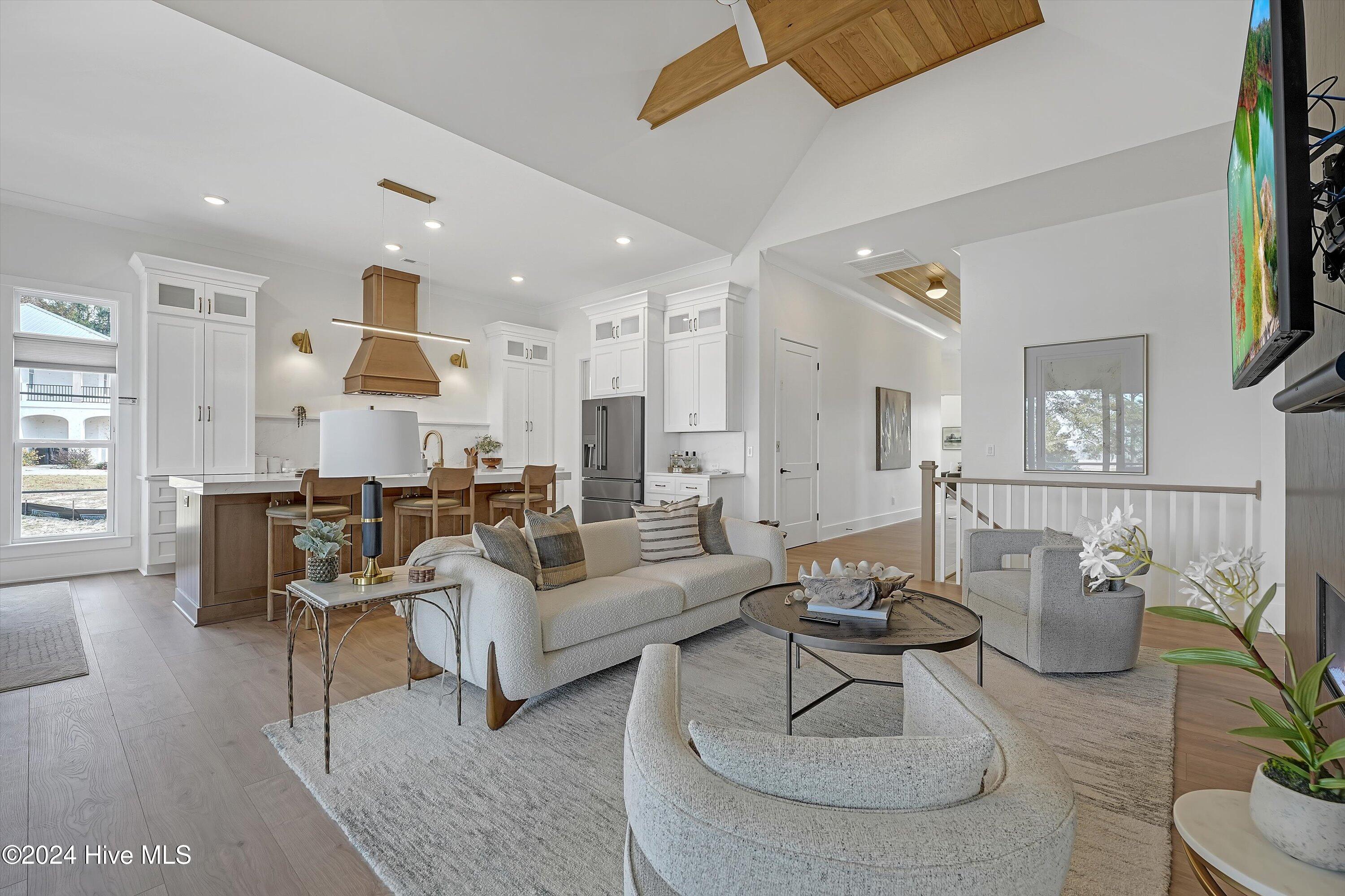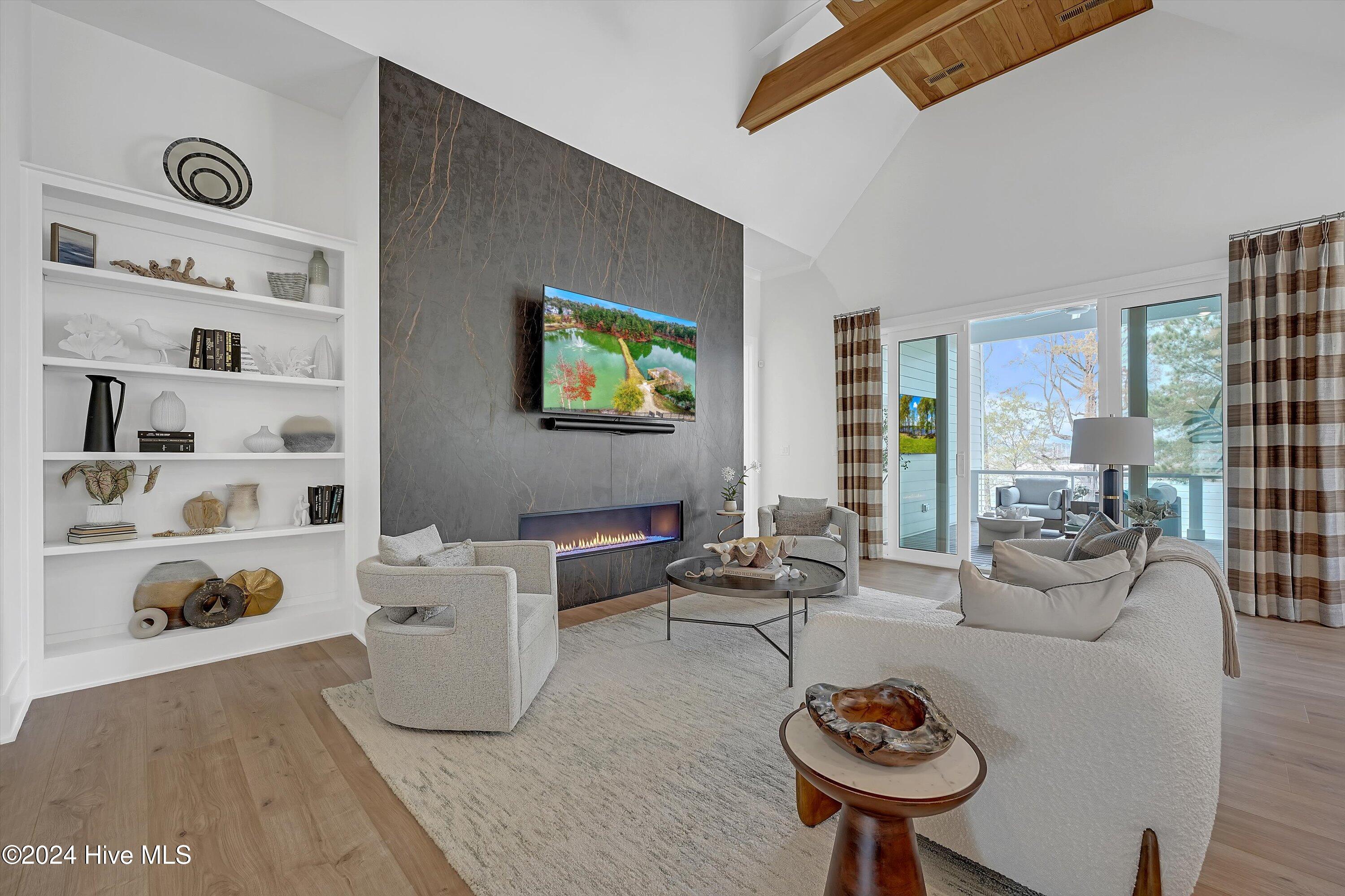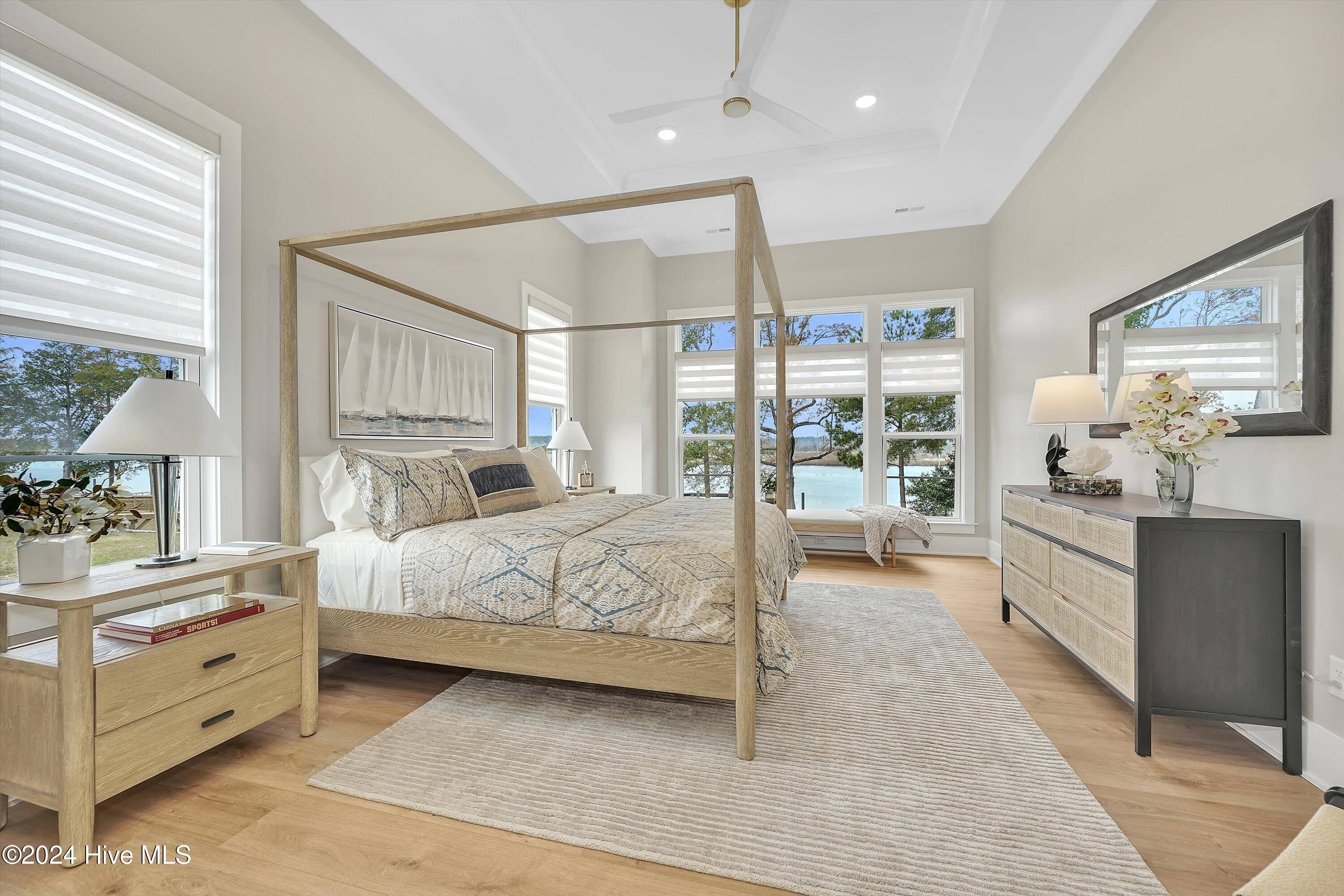 Step into luxury living with this brand-new contemporary masterpiece by Copper Builders, now available with a leaseback option in the gated community of Sunset Reach. Nestled directly on the NE Cape Fear River, this home redefines elegance, blending modern design with breathtaking natural beauty. As you enter, you'll be greeted by soaring 14-foot ceilings adorned with custom details. The focal point of the family room is a stunning 60'' linear fireplace framed in textured Silestone and flanked by chic built-ins. The open floor plan effortlessly connects the family room to the gourmet kitchen—a true showstopper with a grand center island, a sleek 36'' Electrolux gas range and a butler's pantry for seamless entertaining. Love the outdoors? You'll adore the Trek deck and outdoor kitchen, the perfect setting to savor mesmerizing sunsets over the river. Retreat to the serene owner's suite, a sanctuary of relaxation with tranquil water views, a spa-inspired bath featuring dual vanities, a makeup station, and a floor-to-ceiling wood-look tiled shower. A custom walk-in closet connects directly to the laundry room for ultimate convenience. The main floor also boasts a private guest room, a full bath, office, and a thoughtfully designed mudroom with a drop zone just off the 2-car garage. Head downstairs to the walk-out basement, a versatile space ready to fulfill your dreams. Currently serving as the Copper Design Center, it will be transformed to meet your needs before move-in. Multiple outdoor spaces, enhanced with custom landscape lighting, invite you to bask in the beauty of waterfront living. Sunset Reach isn't just a neighborhood—it's a lifestyle. Enjoy kayaking on the serene interior lake or strolling along scenic trails. The riverfront marina, with boat slips available for purchase, makes this community a haven for water enthusiasts. Plus, it's just 10 minutes by car or boat from downtown Wilmington. Future amenities include a pool, clubhouse and pickleball court.