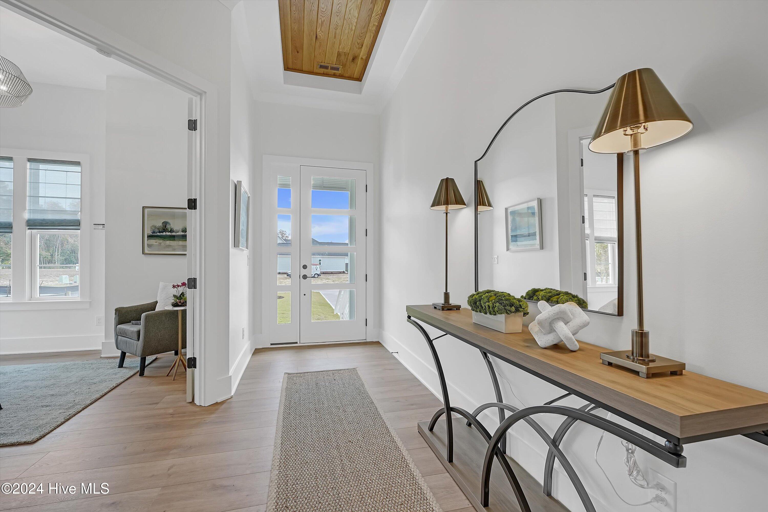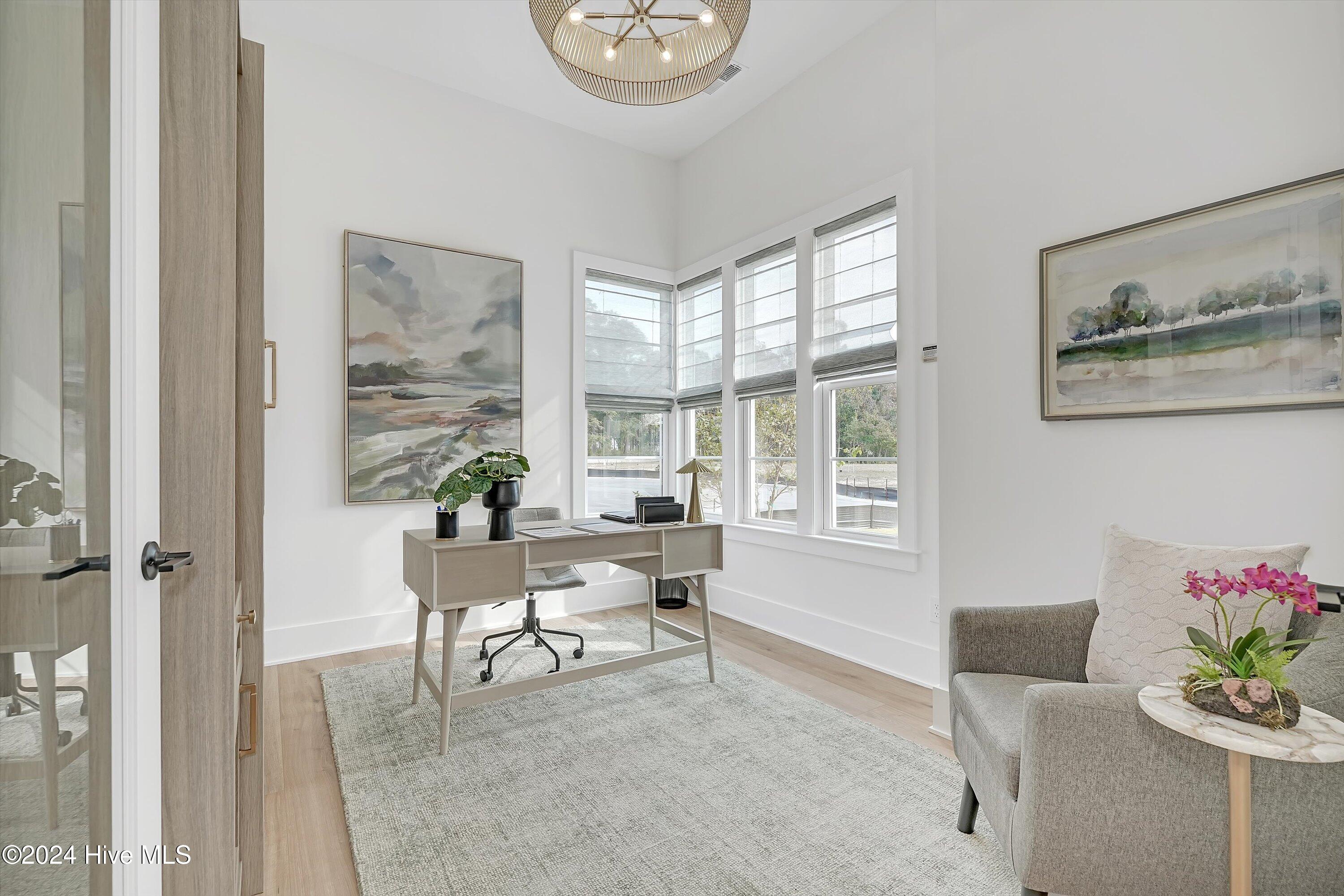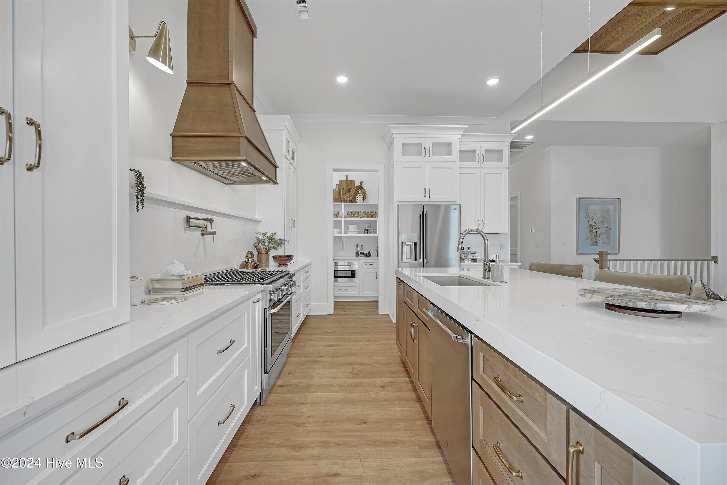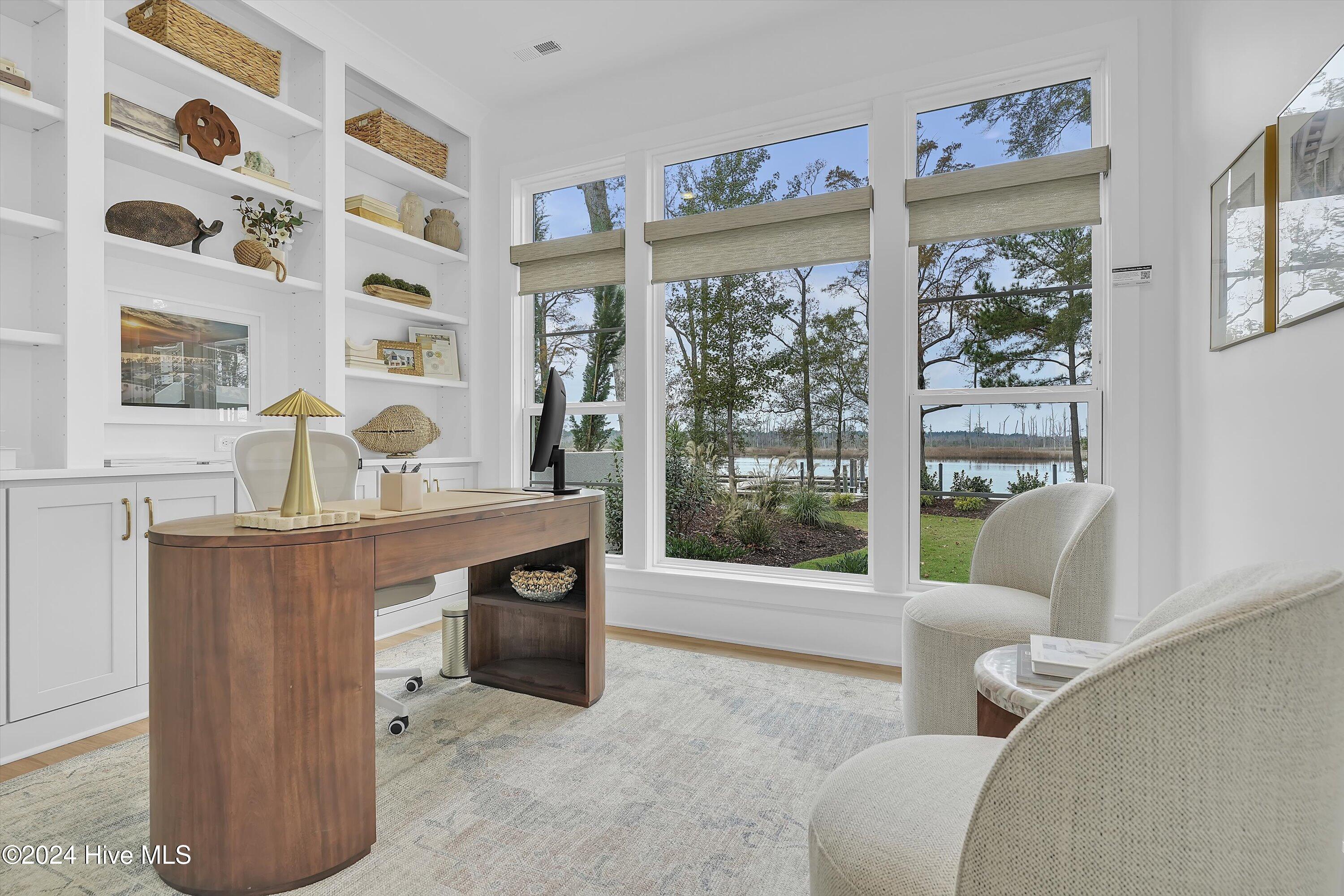 Step into luxury living with this brand-new contemporary masterpiece by Copper Builders, now available with a leaseback option in the gated community of Sunset Reach. Nestled directly on the NE Cape Fear River, this home redefines elegance, blending modern design with breathtaking natural beauty. As you enter, you'll be greeted by soaring 14-foot ceilings adorned with custom details. The focal point of the family room is a stunning 60'' linear fireplace framed in textured Silestone and flanked by chic built-ins. The open floor plan effortlessly connects the family room to the gourmet kitchen—a true showstopper with a grand center island, a sleek 36'' Electrolux gas range and a butler's pantry for seamless entertaining. Love the outdoors? You'll adore the Trek deck and outdoor kitchen, the perfect setting to savor mesmerizing sunsets over the river. Retreat to the serene owner's suite, a sanctuary of relaxation with tranquil water views, a spa-inspired bath featuring dual vanities, a makeup station, and a floor-to-ceiling wood-look tiled shower. A custom walk-in closet connects directly to the laundry room for ultimate convenience. The main floor also boasts a private guest room, a full bath, office, and a thoughtfully designed mudroom with a drop zone just off the 2-car garage. Head downstairs to the walk-out basement, a versatile space ready to fulfill your dreams. Currently serving as the Copper Design Center, it will be transformed to meet your needs before move-in. Multiple outdoor spaces, enhanced with custom landscape lighting, invite you to bask in the beauty of waterfront living. Sunset Reach isn't just a neighborhood—it's a lifestyle. Enjoy kayaking on the serene interior lake or strolling along scenic trails. The riverfront marina, with boat slips available for purchase, makes this community a haven for water enthusiasts. Plus, it's just 10 minutes by car or boat from downtown Wilmington. Future amenities include a pool, clubhouse and pickleball court.