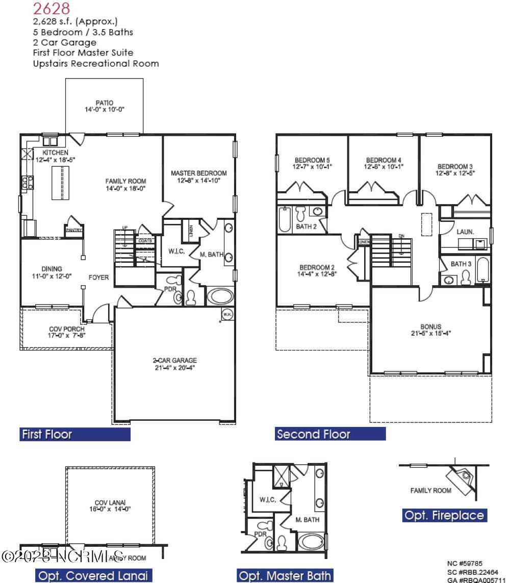 This 2628 beautiful gem is 5-bedroom 3.5 bath with an oversized bonus room. Welcome to Mill Creek Cove! A beautiful, scenic community that is located just 15 minutes from Oak Island beaches. The 2628 Floorplan offers 5 bedrooms, a spacious bonus room upstairs, and a first-floor primary suite. This home has been upgraded with a covered lanai. Laminated wood flooring is included in the main living areas downstairs. The kitchen has tiled backsplash, quartz counters, and stainless-steel appliances. Mill Creek Cove offers a large resort-style pool, clubhouse for gatherings, an exercise room, tennis courts, and a golf putting green. Builder Deposit is $1,000. Photos are of the same floorplan in another community.