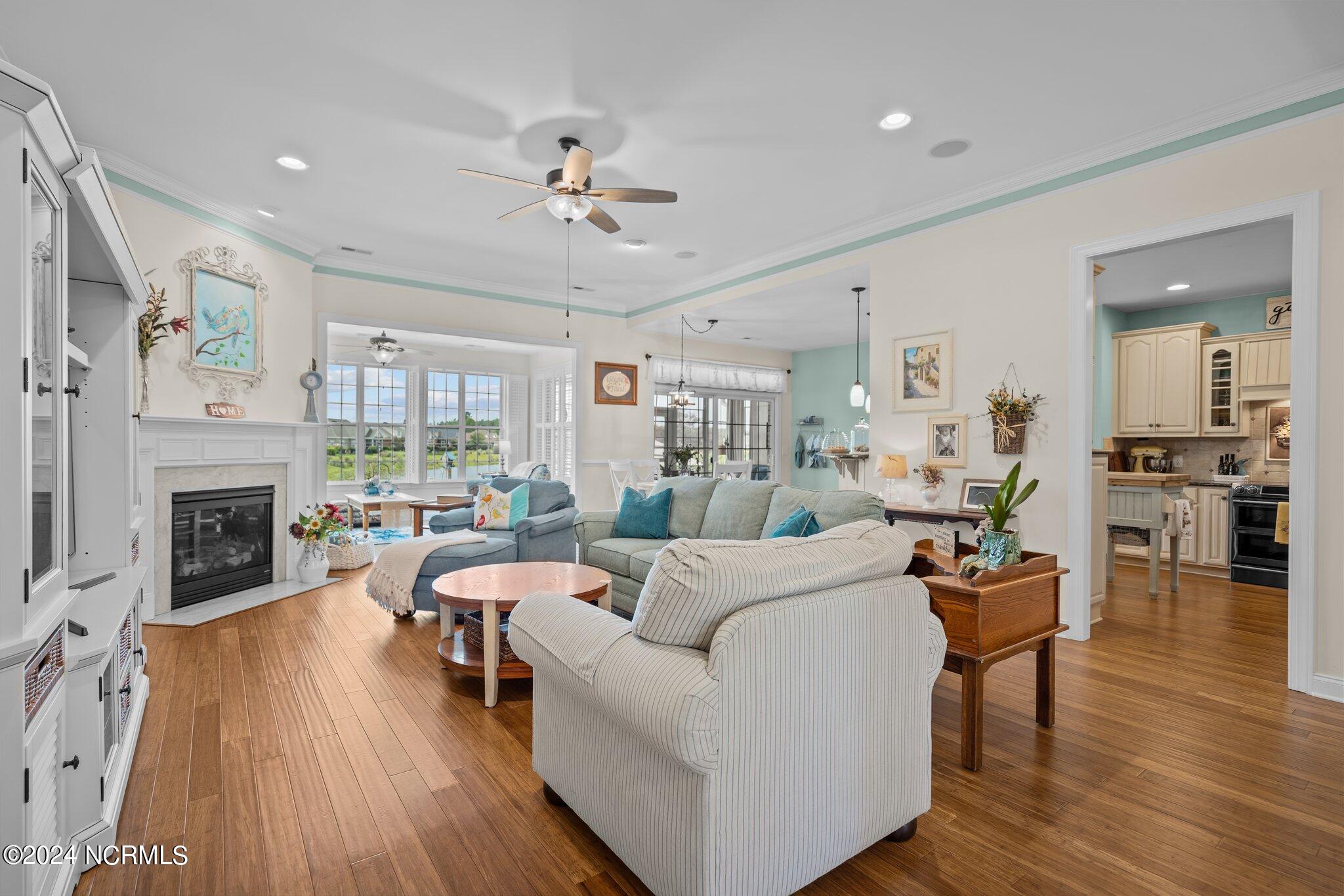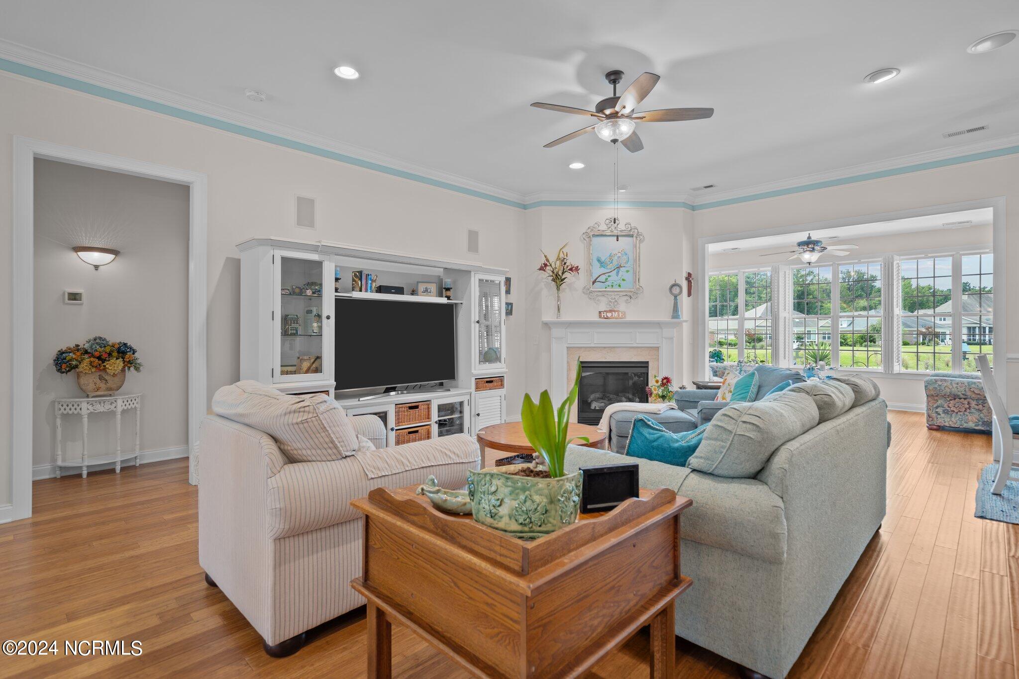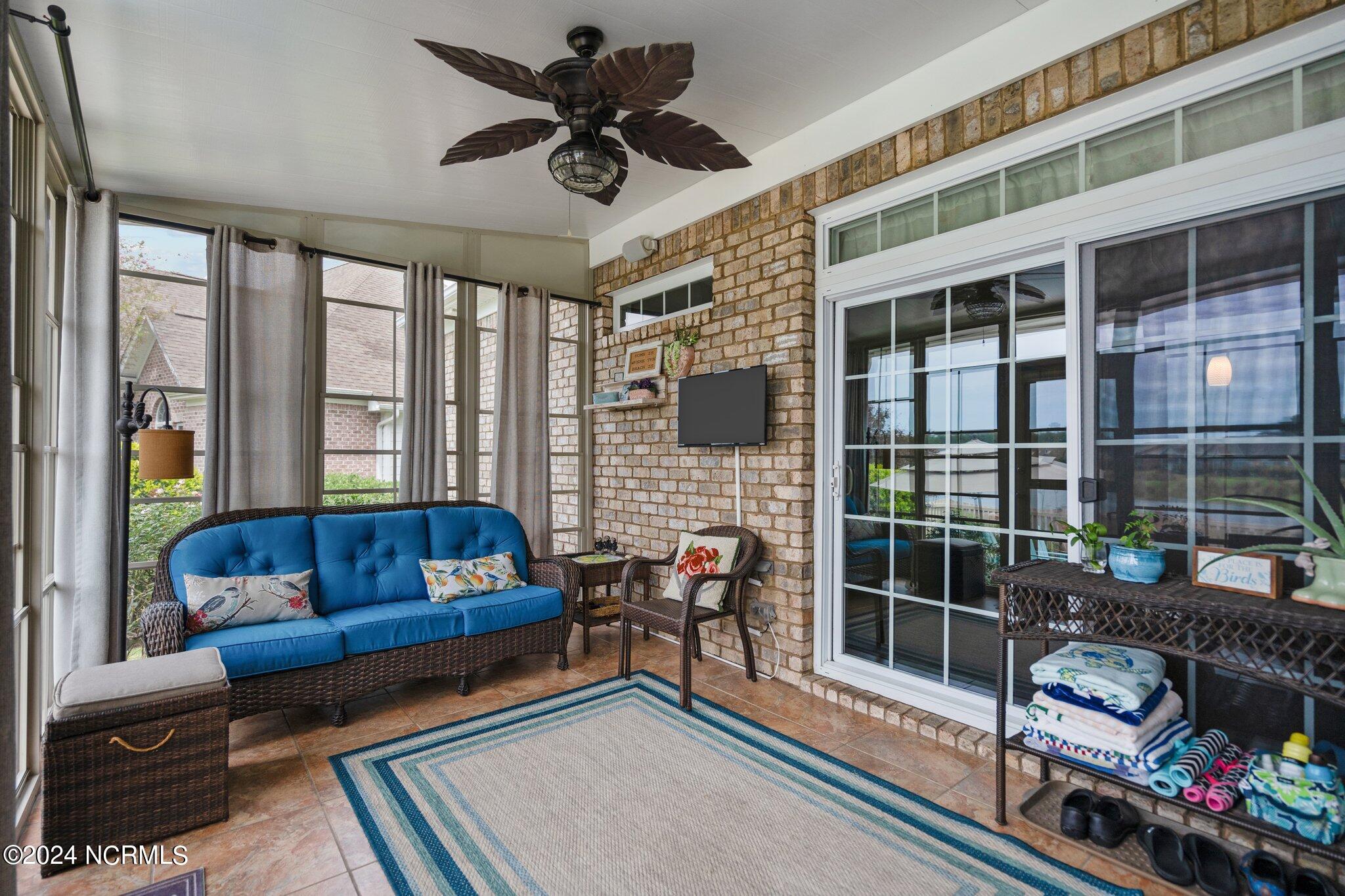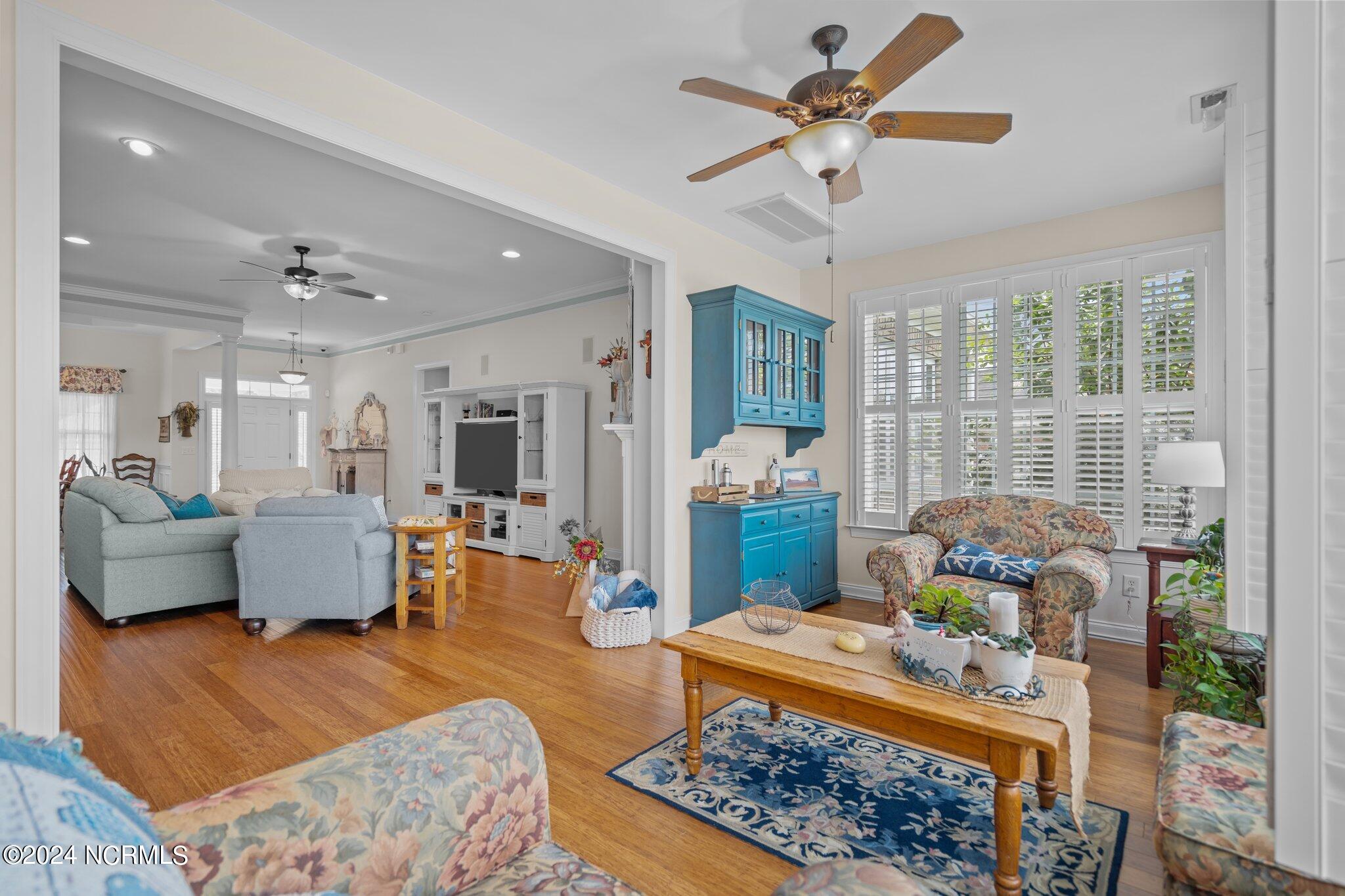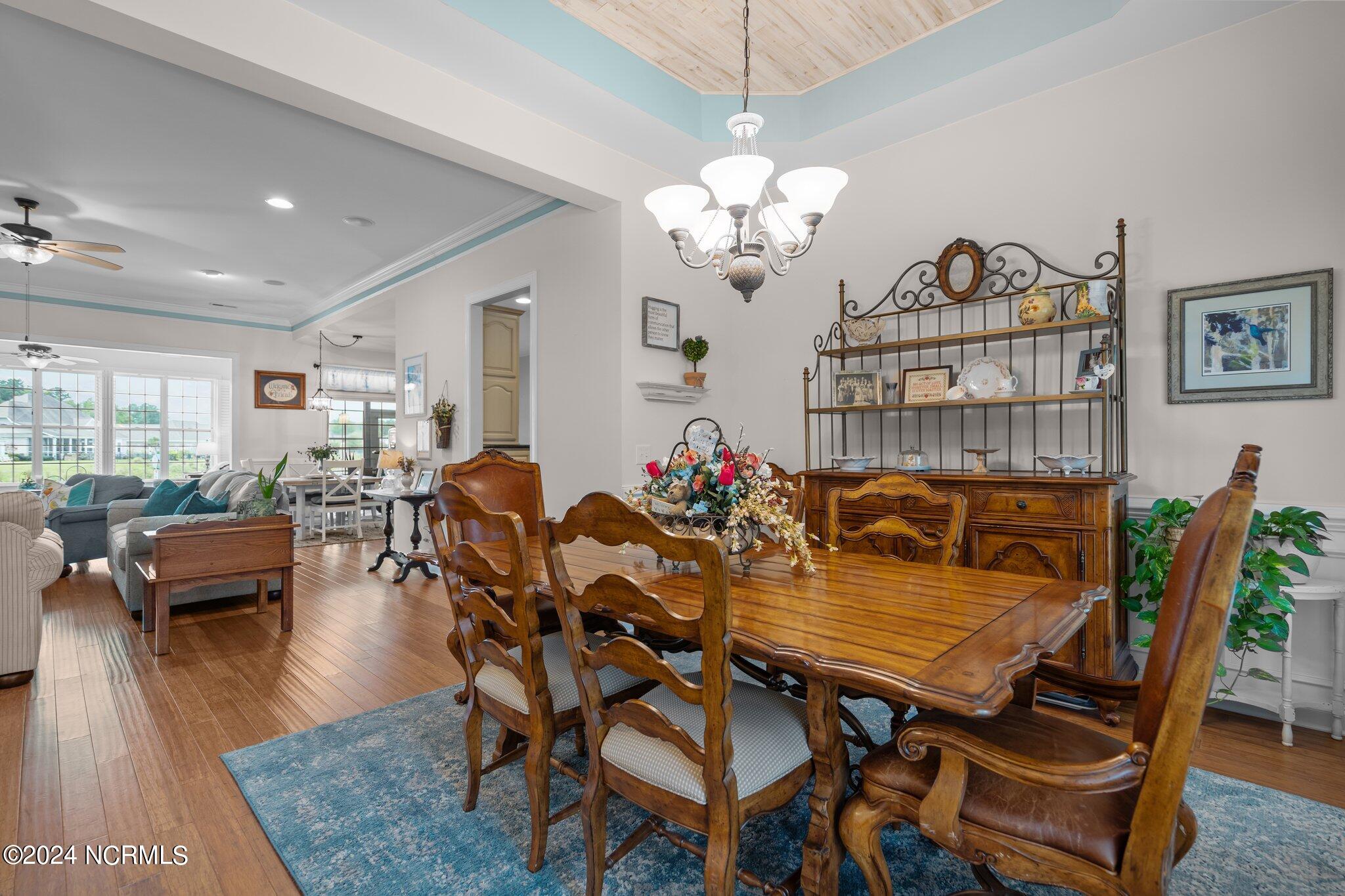 This meticulously maintained brick home features 5 spacious bedrooms and 3 luxurious baths. This can also be used as a 4 bedroom with a bonus room since the FROG is a flex space. Enjoy the elegance of a formal dining room for entertaining and a cozy breakfast nook for tea with friends. Natural light floods the interior, highlighting the exquisite granite countertops and stainless steel appliances, including a double oven, in the well-appointed kitchen. Relax on the EZE Breeze screened back porch, making this a 3 season room, while enjoying drinks with friends. Read a good book on the covered front porch or in the inviting sunroom that features elegant plantation shutters. The beautifully landscaped lawn and garden are complemented by an in-ground saltwater pool that offers serene views of the pond. The first floor master suite is a true retreat with dual vanities, a makeup table area, garden tub, and a separate glass shower. A large walk-in closet provides ample storage. Additionally, the home features an office or artist area that separates two of the bedrooms upstairs, offering versatile space for your needs. This gem boasts strand bamboo floors and luxury vinyl flooring. You'll be impressed with the combination of elegance and comfort with thoughtful design and attention to detail.