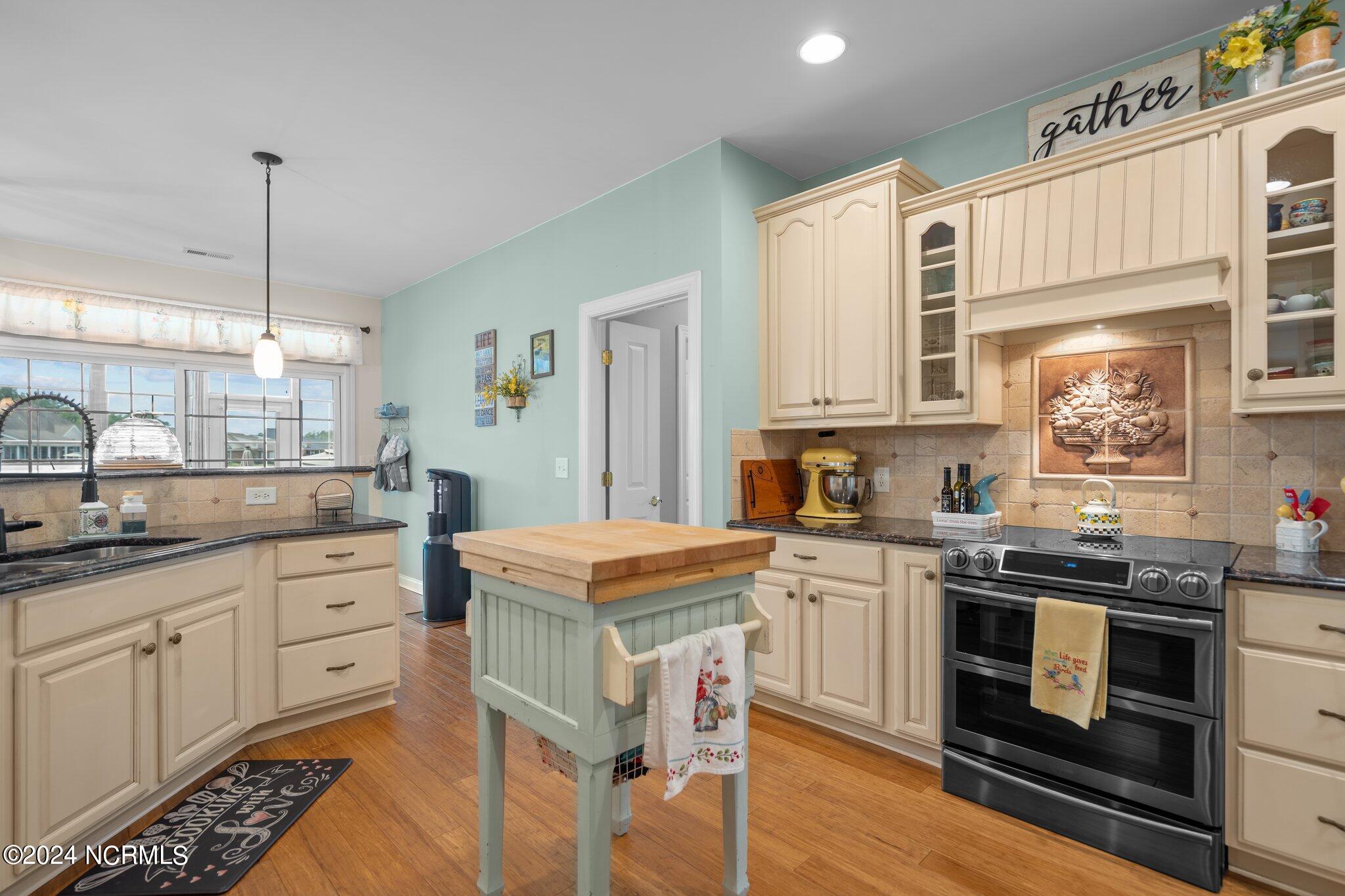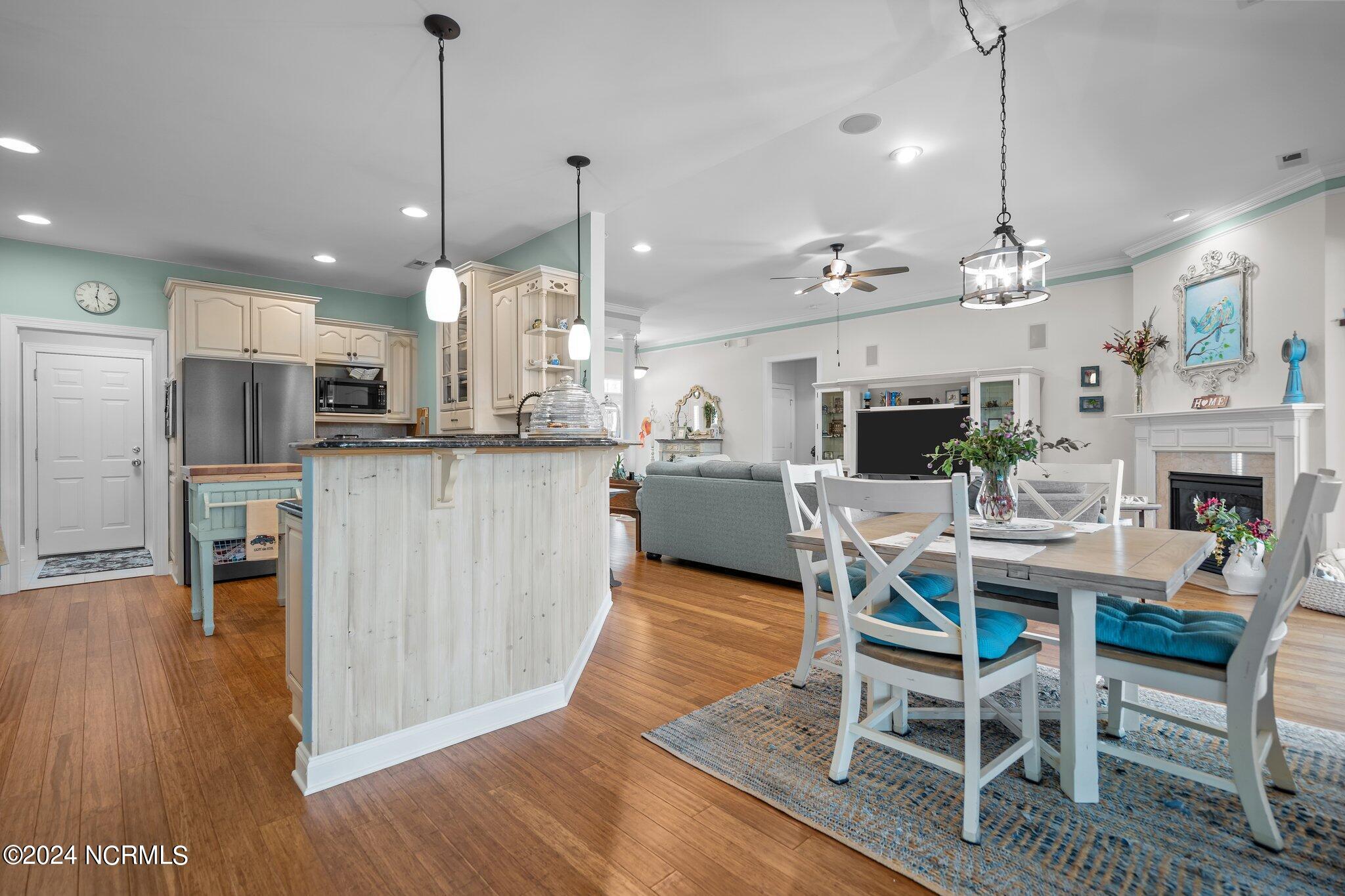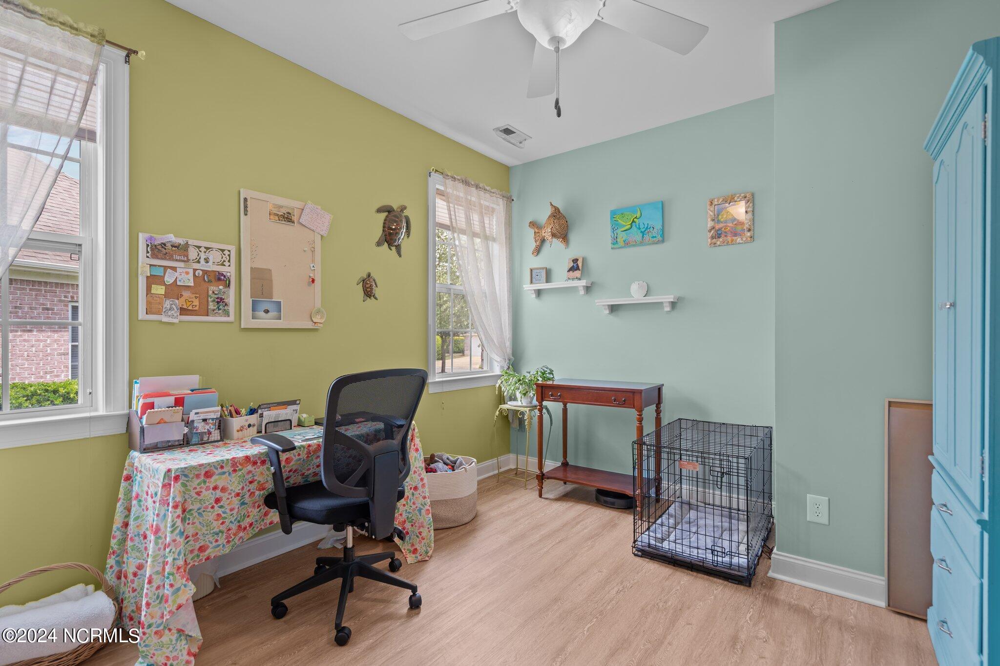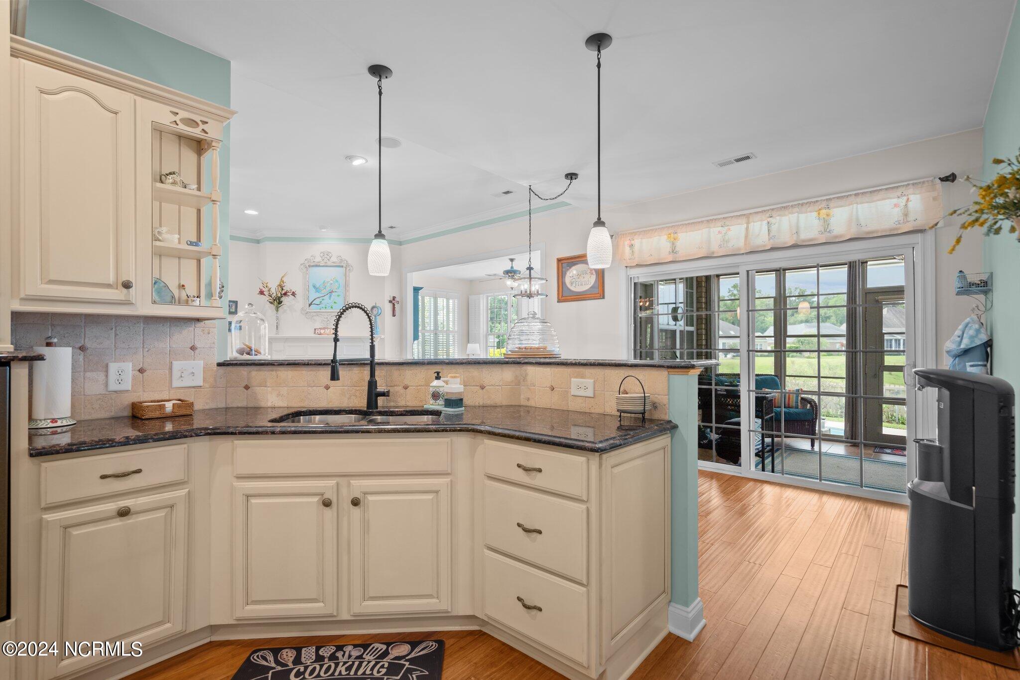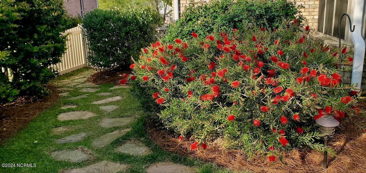 This meticulously maintained brick home features 5 spacious bedrooms and 3 luxurious baths. This can also be used as a 4 bedroom with a bonus room since the FROG is a flex space. Enjoy the elegance of a formal dining room for entertaining and a cozy breakfast nook for tea with friends. Natural light floods the interior, highlighting the exquisite granite countertops and stainless steel appliances, including a double oven, in the well-appointed kitchen. Relax on the EZE Breeze screened back porch, making this a 3 season room, while enjoying drinks with friends. Read a good book on the covered front porch or in the inviting sunroom that features elegant plantation shutters. The beautifully landscaped lawn and garden are complemented by an in-ground saltwater pool that offers serene views of the pond. The first floor master suite is a true retreat with dual vanities, a makeup table area, garden tub, and a separate glass shower. A large walk-in closet provides ample storage. Additionally, the home features an office or artist area that separates two of the bedrooms upstairs, offering versatile space for your needs. This gem boasts strand bamboo floors and luxury vinyl flooring. You'll be impressed with the combination of elegance and comfort with thoughtful design and attention to detail.