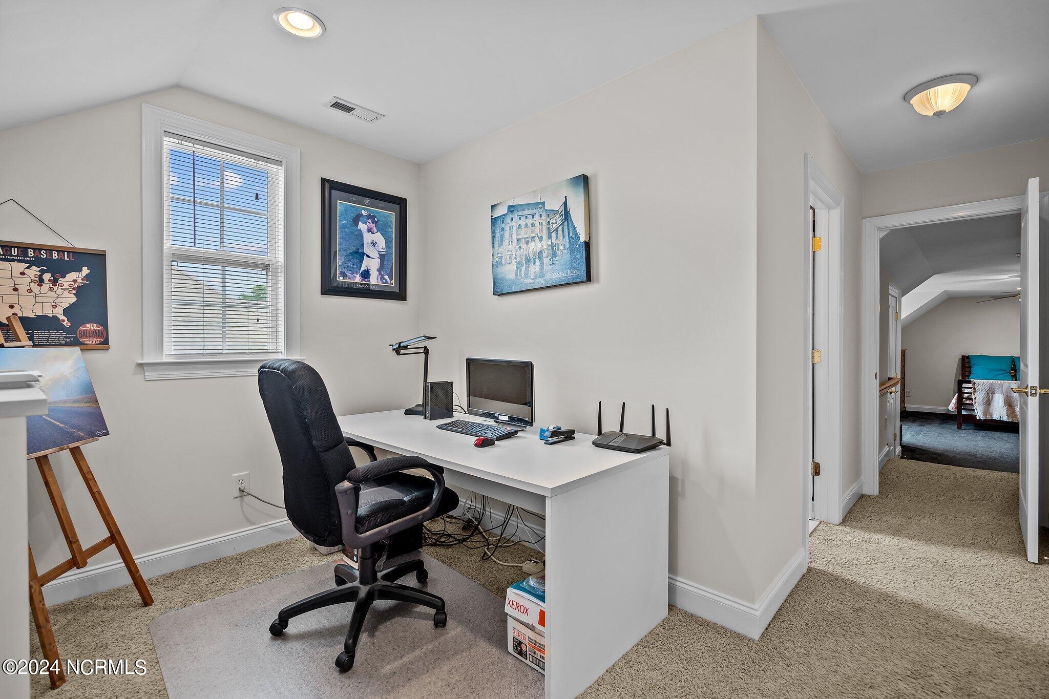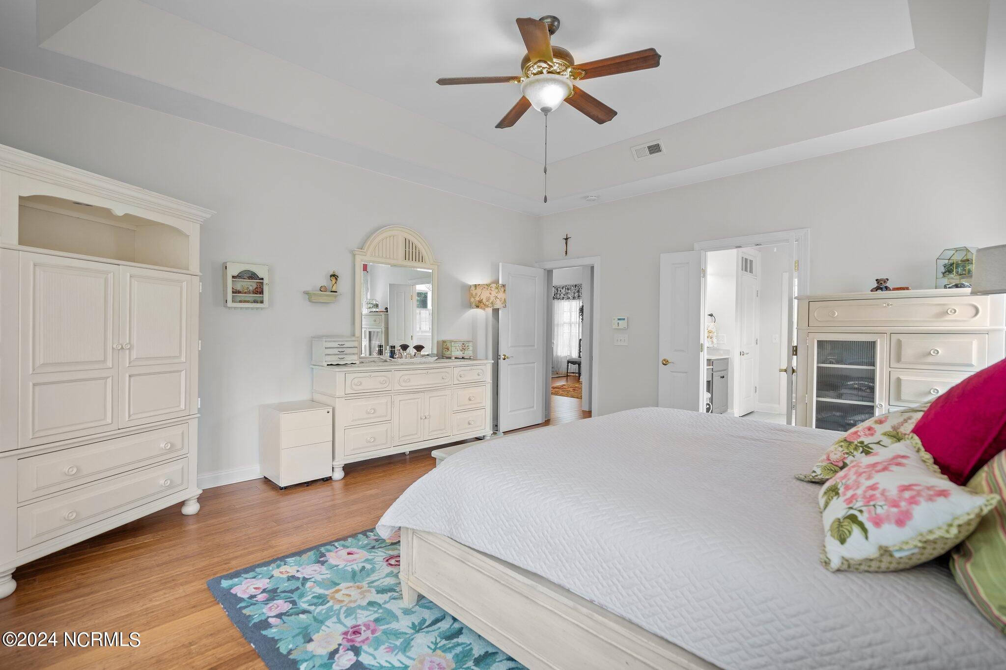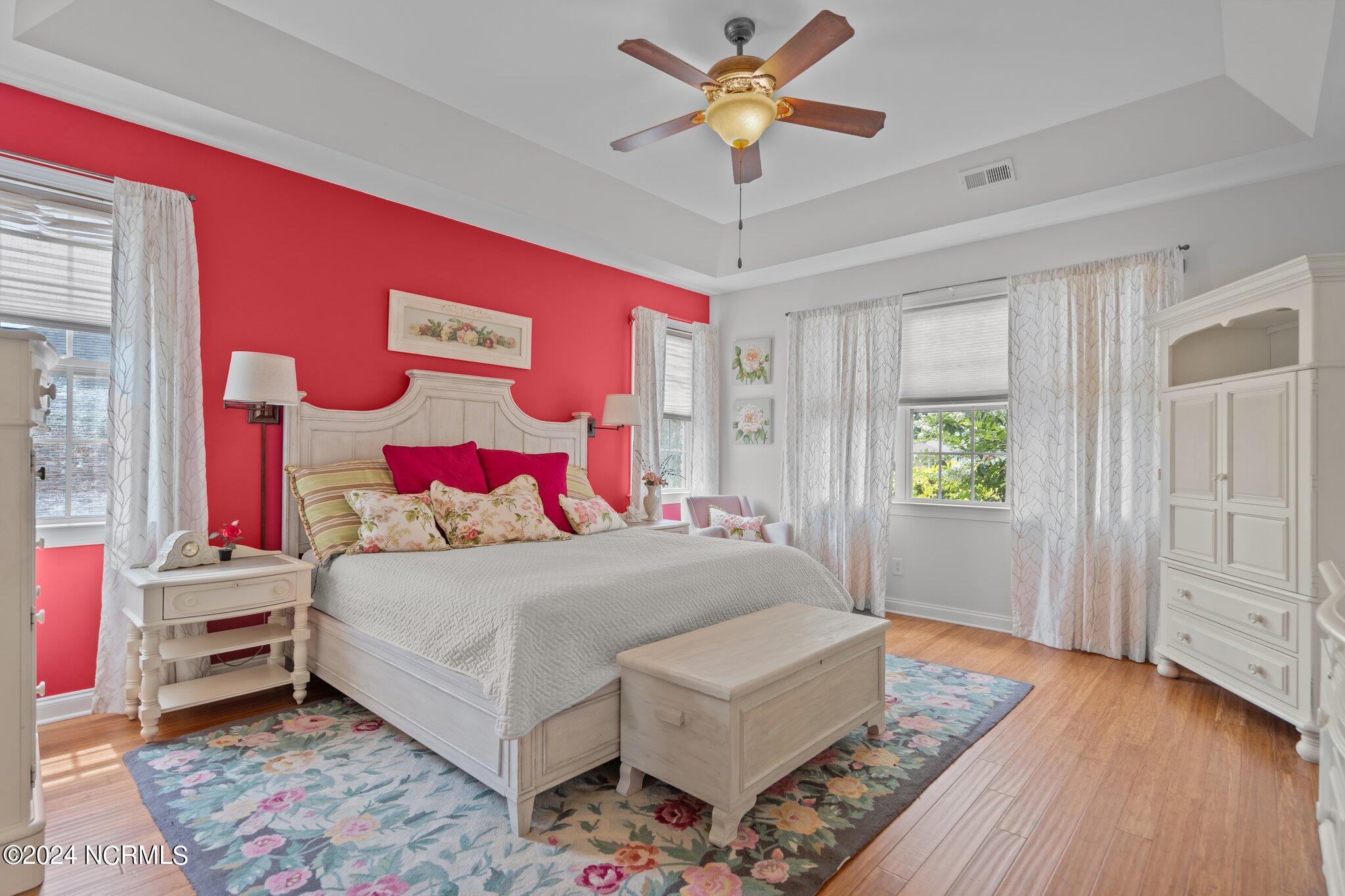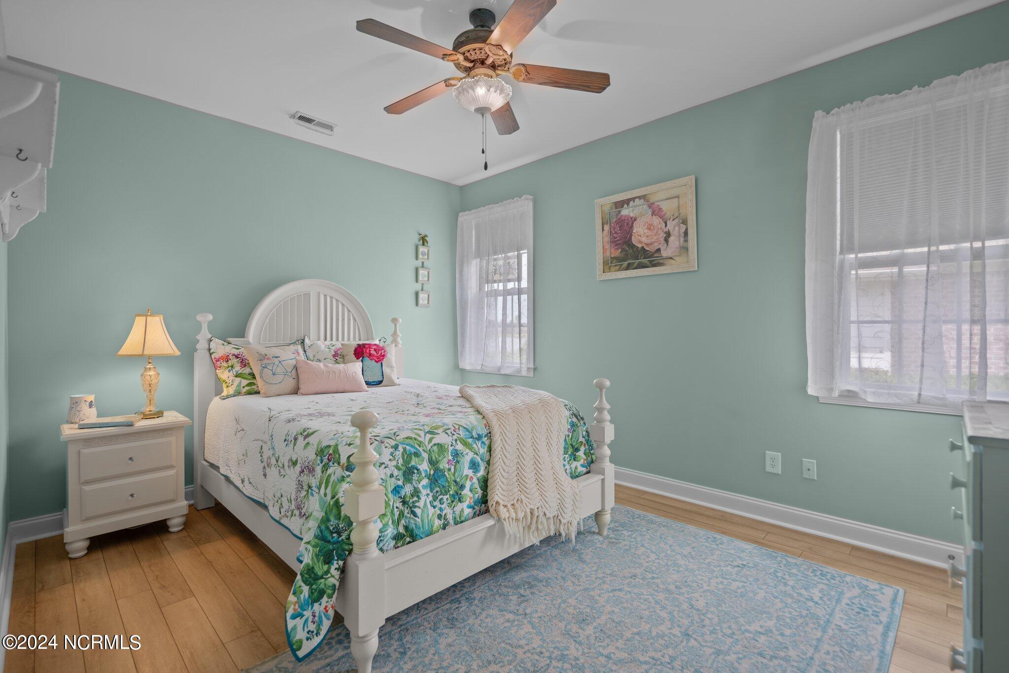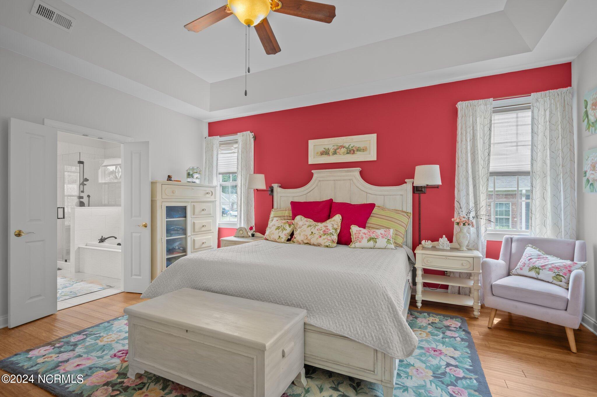 This meticulously maintained brick home features 5 spacious bedrooms and 3 luxurious baths. This can also be used as a 4 bedroom with a bonus room since the FROG is a flex space. Enjoy the elegance of a formal dining room for entertaining and a cozy breakfast nook for tea with friends. Natural light floods the interior, highlighting the exquisite granite countertops and stainless steel appliances, including a double oven, in the well-appointed kitchen. Relax on the EZE Breeze screened back porch, making this a 3 season room, while enjoying drinks with friends. Read a good book on the covered front porch or in the inviting sunroom that features elegant plantation shutters. The beautifully landscaped lawn and garden are complemented by an in-ground saltwater pool that offers serene views of the pond. The first floor master suite is a true retreat with dual vanities, a makeup table area, garden tub, and a separate glass shower. A large walk-in closet provides ample storage. Additionally, the home features an office or artist area that separates two of the bedrooms upstairs, offering versatile space for your needs. This gem boasts strand bamboo floors and luxury vinyl flooring. You'll be impressed with the combination of elegance and comfort with thoughtful design and attention to detail.