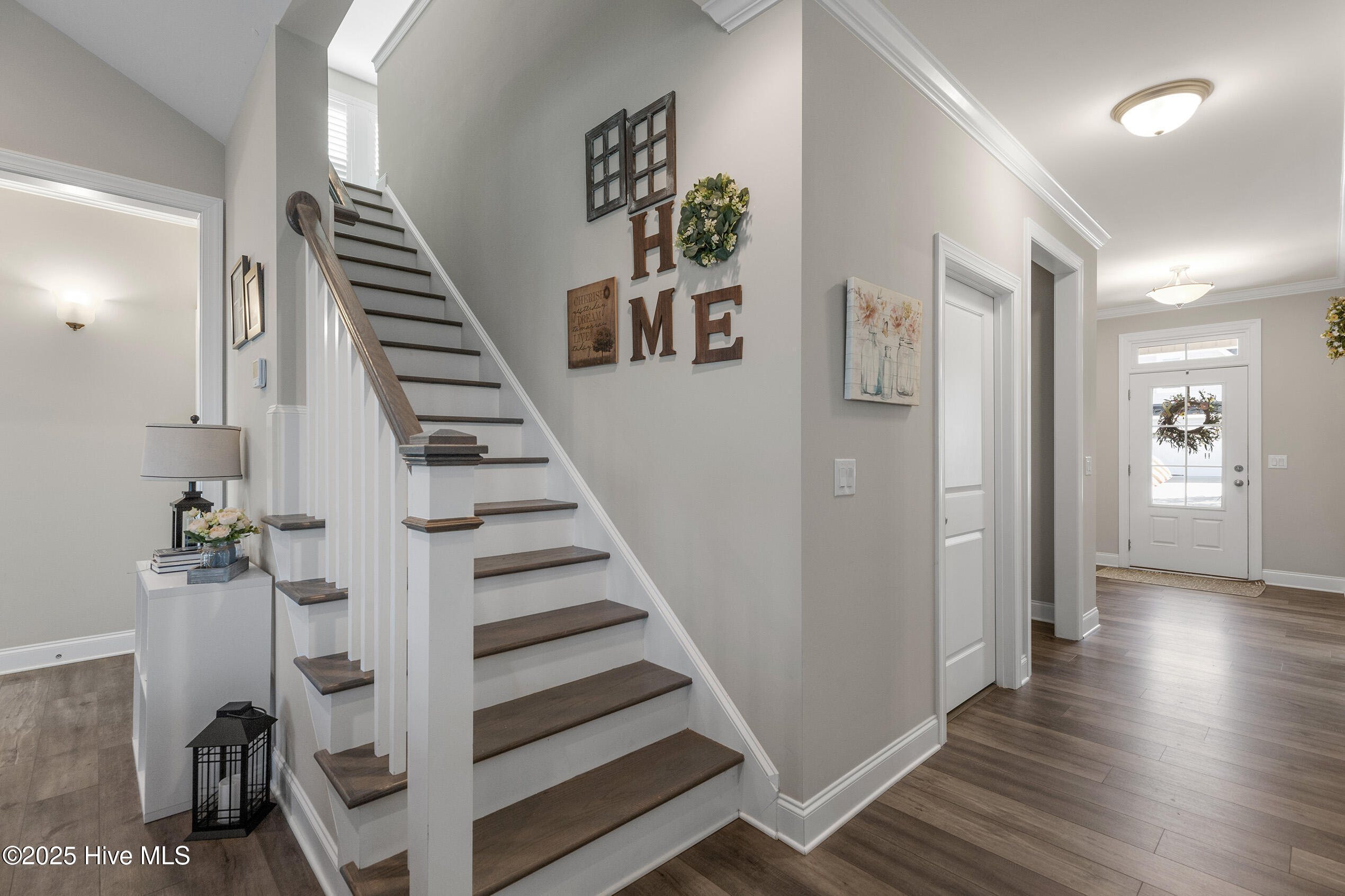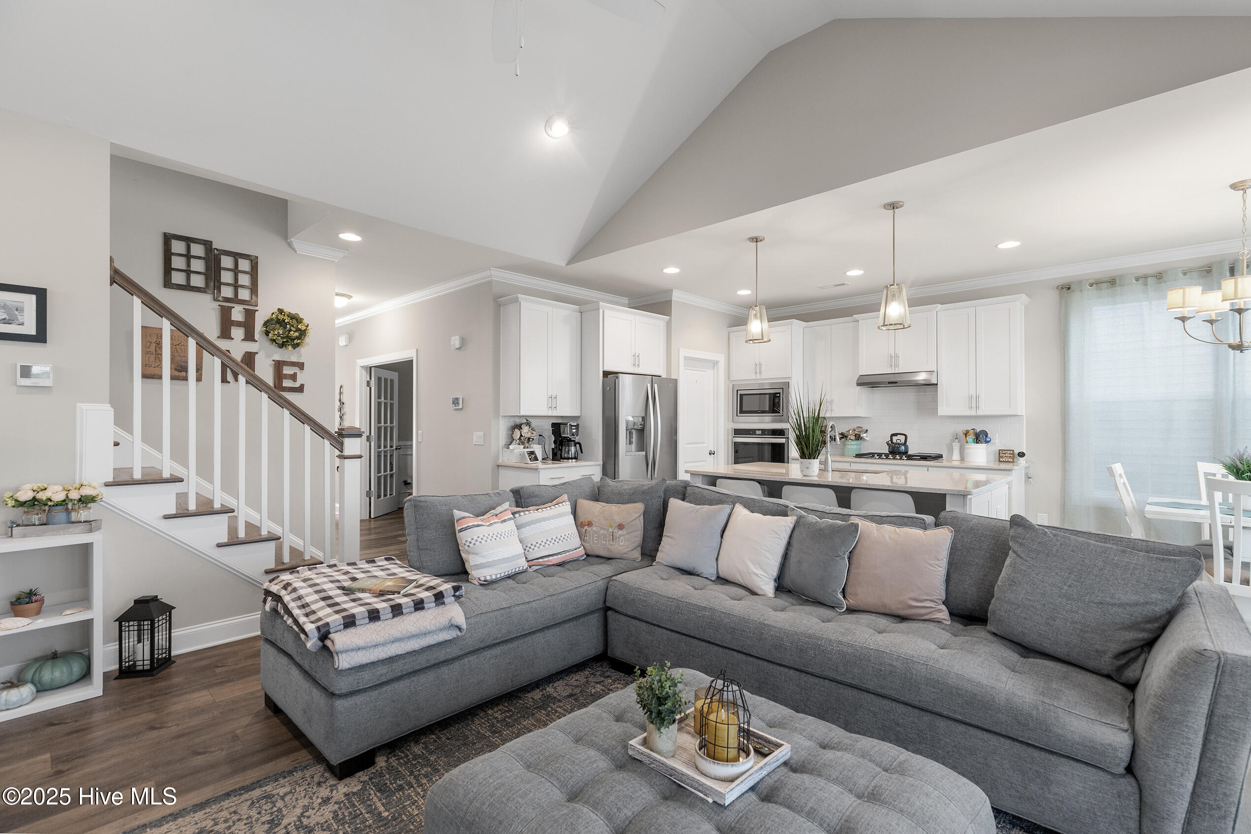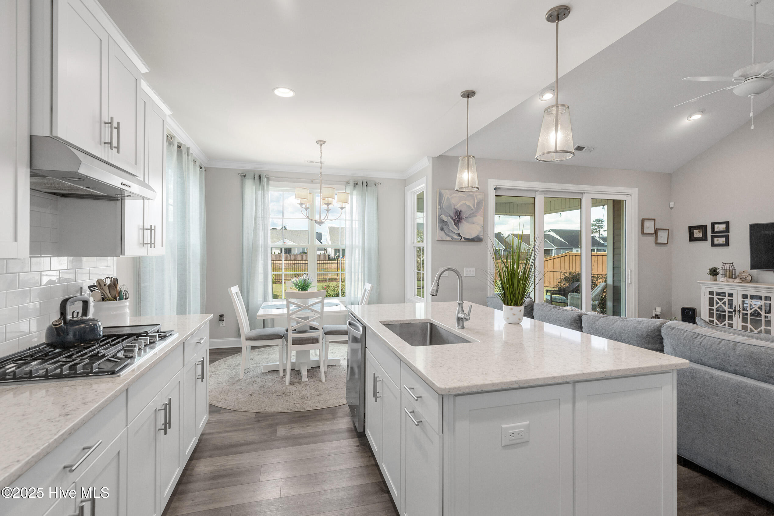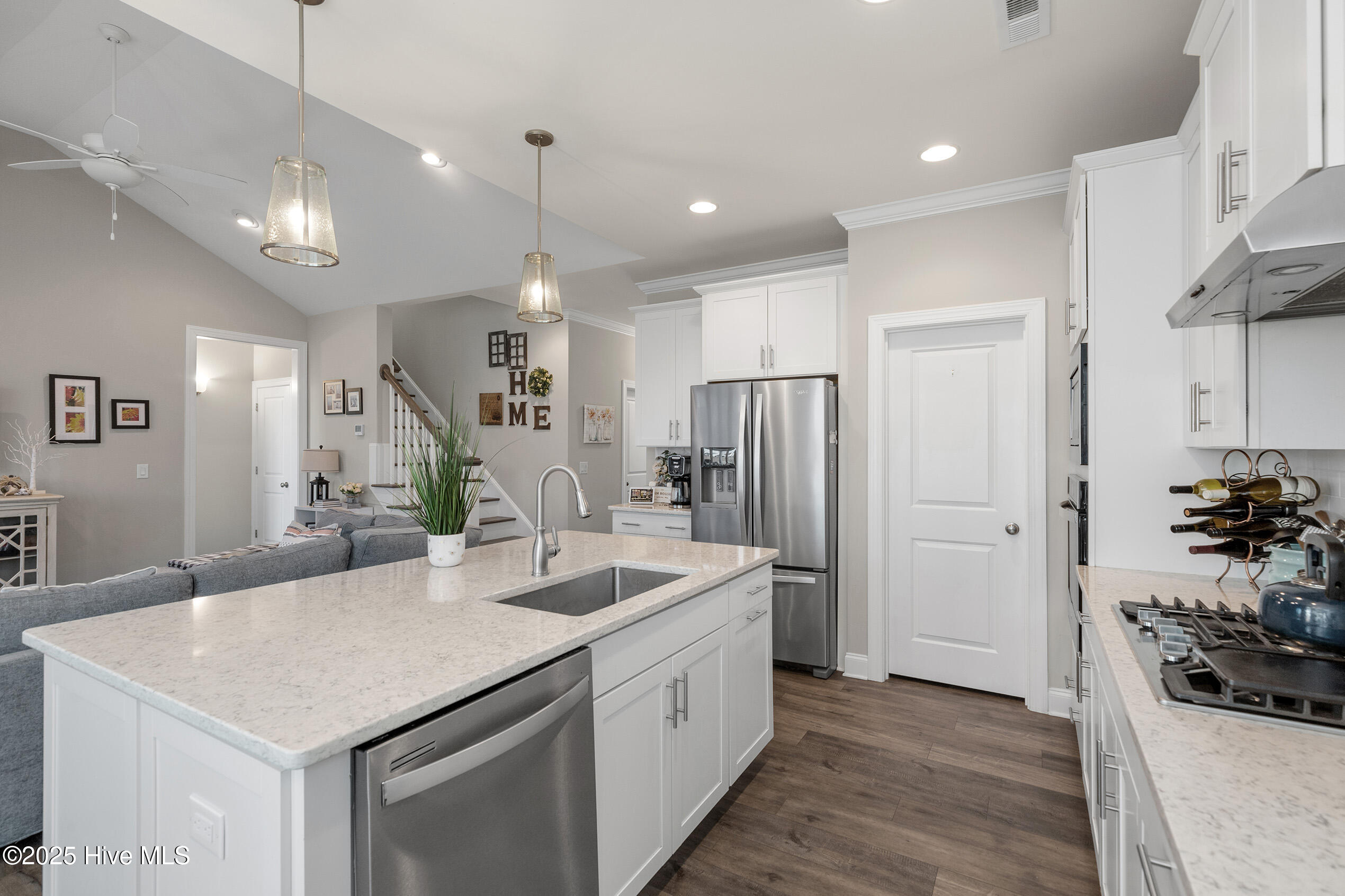 Tarin Woods - one of the Wilmington area's most sought-after communities! The curb appeal of this home is superb, enhanced by its manicured landscape, low maintenance exterior and attractive architectural accents. Quality construction by American Homesmith, this open-designed floorplan is accentuated by its volume ceiling, wide plank flooring and a muted color palette. The kitchen boasts high-quality stainless appliances, a gas range, quartzite countertops with complimenting backsplash, a center island with bar seating, custom white cabinetry and a sizable pantry. Adjacent to the kitchen, the cheerful breakfast area overlooks the large - fenced backyard. The downstairs primary suite is a retreat of its own offering a trey ceiling and abundant natural sunlight; the primary bathroom encompasses a double vanity, walk-in closet, and a luxurious glass/tile shower. The 2nd downstairs bedroom is ideal for guests and shares the hallway bathroom. Upstairs, a generous sized bonus room is perfect for a den, media room or playroom. The adjacent - spacious 3rd bedroom offers privacy and ample closet space and has access to a full bathroom. Other important features include a home office, laundry room, 2-car garage and a covered porch with beautiful pond views. Tarin Woods is a vibrant neighborhood offering excellent amenities including a community pool, clubhouse, playground and an abundance of greenspace. Popular Carolina Beach is minutes away. Welcome home!