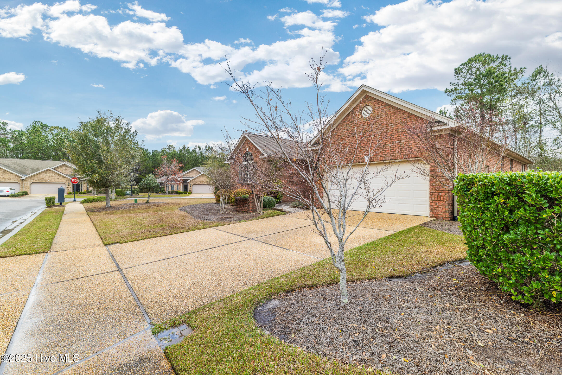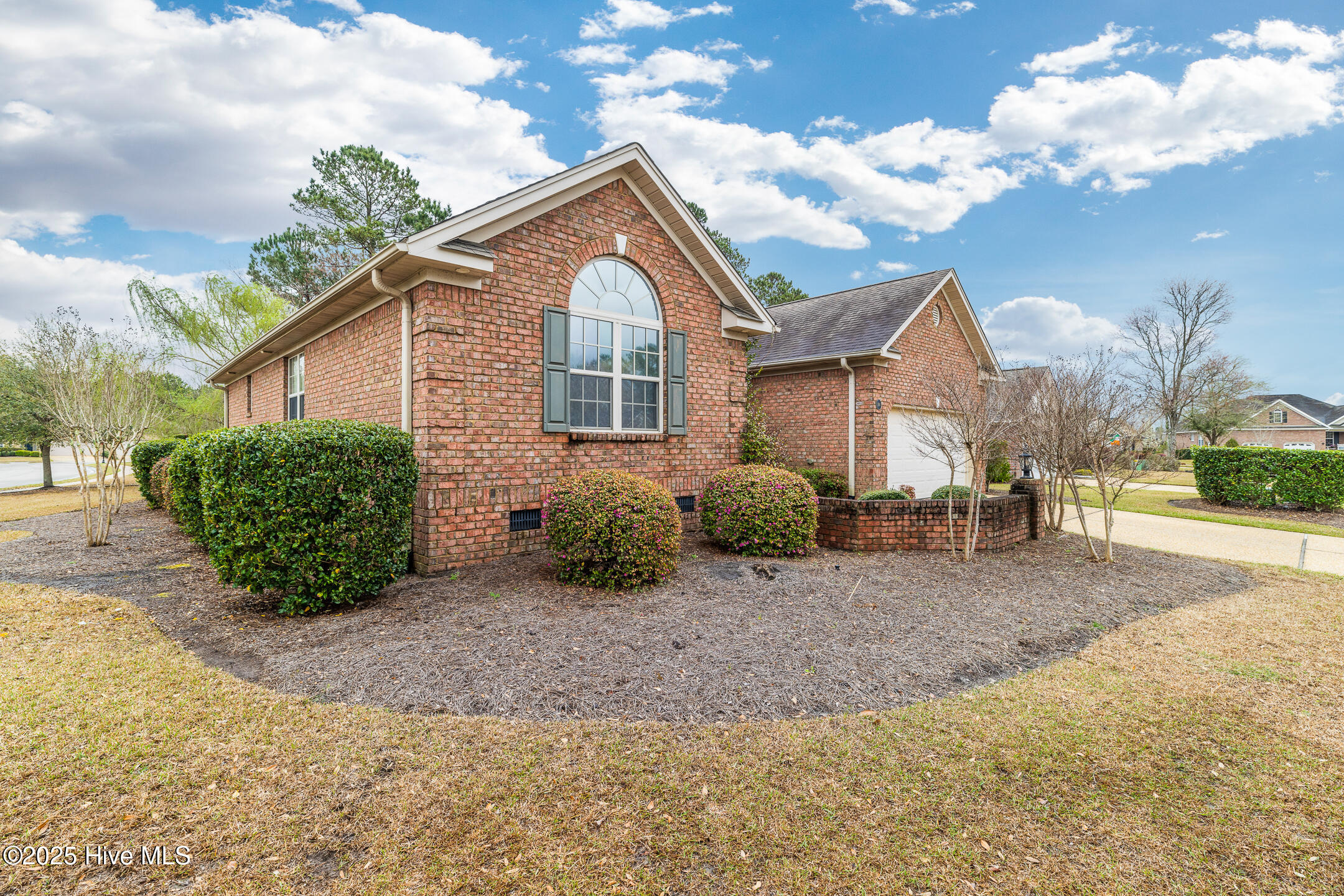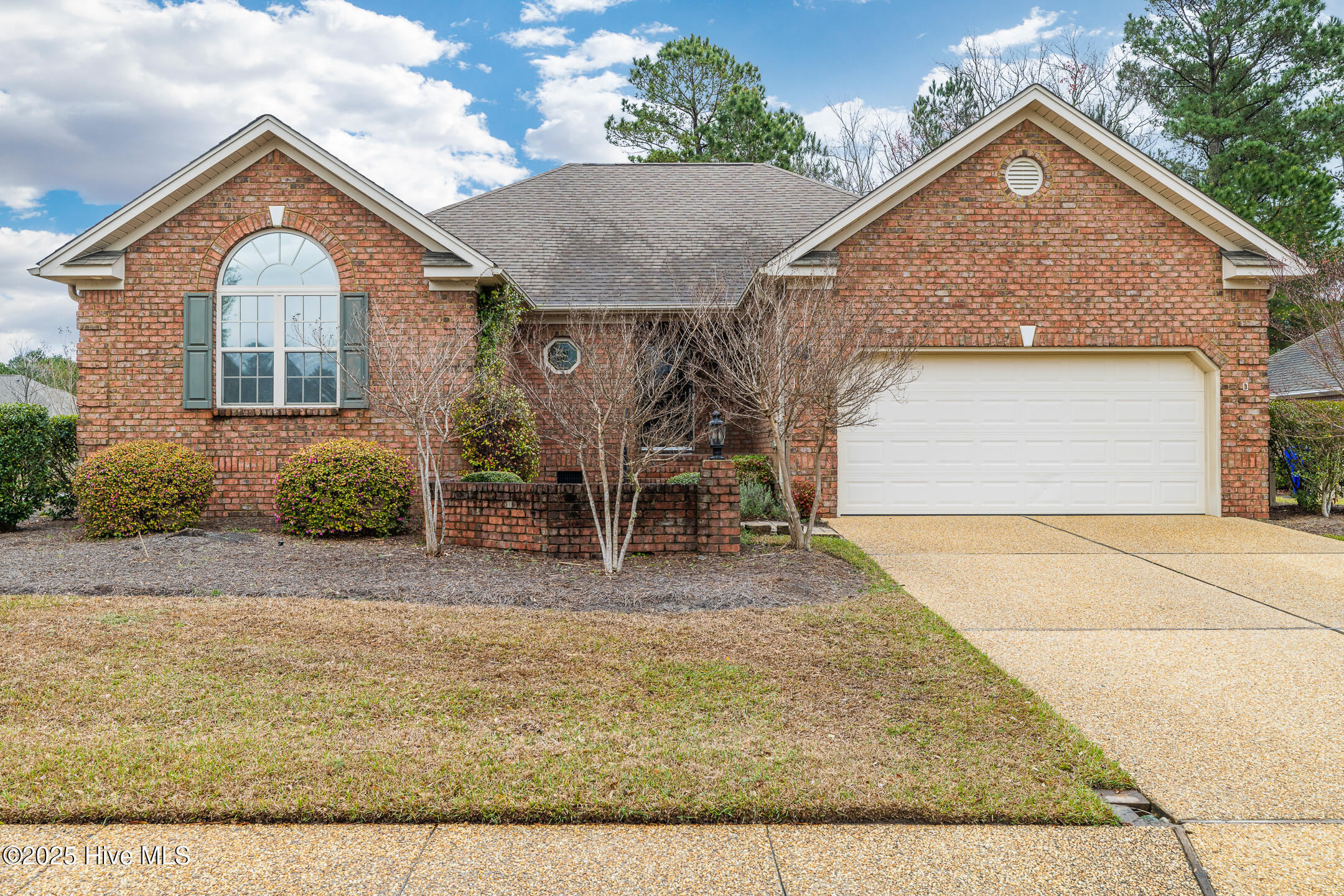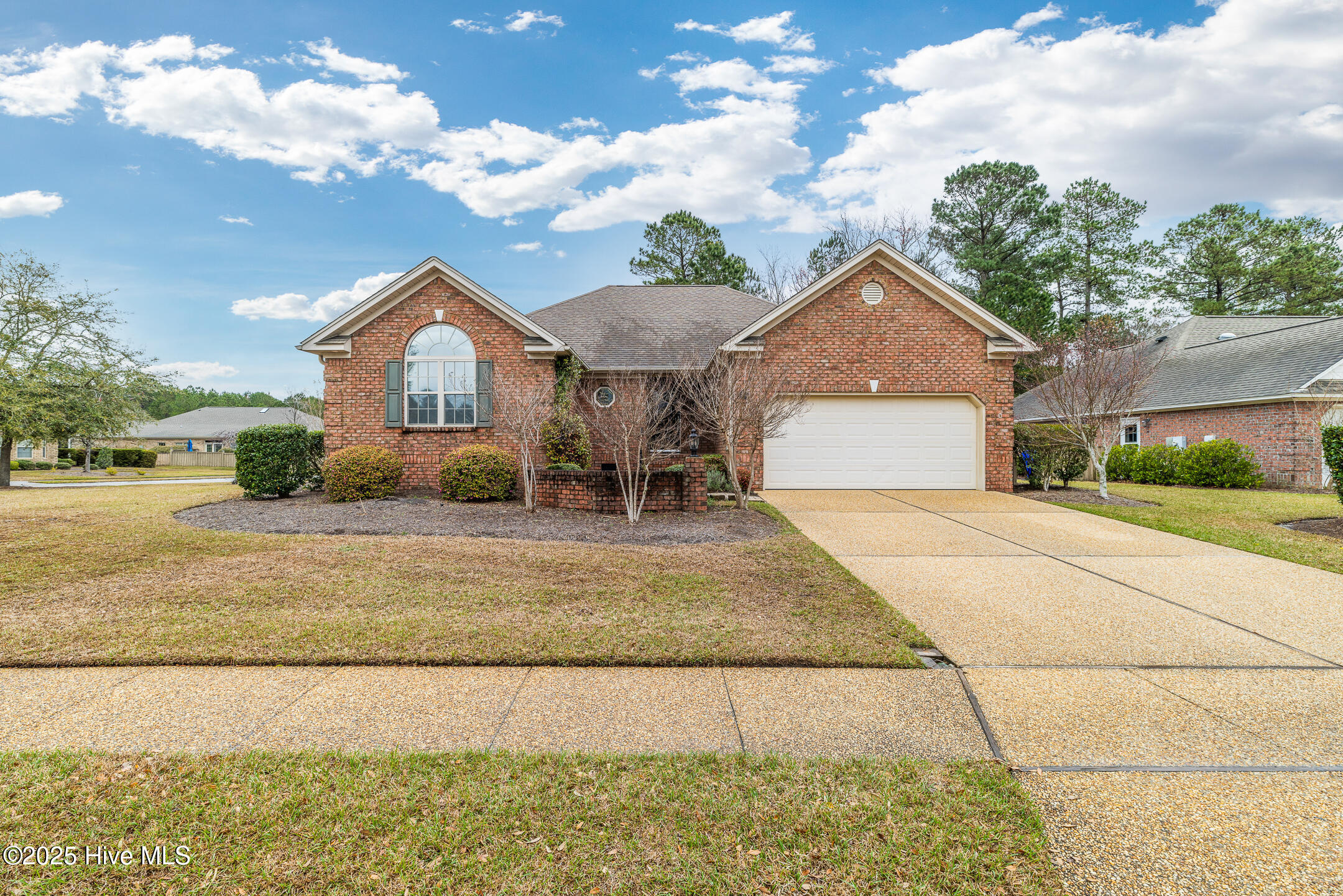 Tucked away in the serene cul-de-sac of Jamesford Court within Brunswick Forest, this inviting brick ranch perfectly captures the essence of coastal living. Combining stylish design, effortless maintenance, and convenient access to community amenities, it offers a true taste of the Brunswick Forest lifestyle. A meticulously landscaped courtyard leads to a charming covered front porch, setting the stage for a warm welcome and showcasing the home's exceptional curb appeal. Inside, vaulted ceilings elevate the spacious living room, anchored by a cozy fireplace, which seamlessly transitions into a formal dining room and a well-appointed kitchen. A delightful 4-season room, bathed in natural light, overlooks the lush backyard—an ideal retreat for morning coffee or evening relaxation. A powder room located by the front door is perfect for your guests. The master suite serves as a private sanctuary, complete with a trey ceiling and a spa-inspired en-suite bathroom featuring a soaking tub, double vanities, and a tiled shower. Direct access to the 4-season room creates a seamless connection between indoor comfort and outdoor tranquility. Two additional bedrooms share a full bathroom, offering both comfort and convenience for family and guests. Practicality meets luxury in the convenient laundry/mud room, strategically located between the two-car garage and kitchen—a perfect balance of functionality and ease. Outside, Brunswick Forest offers a wealth of amenities, including scenic nature trails, fitness centers, pools, golf courses, tennis and pickleball courts, kayaking, and vibrant community activities. Discover refined coastal living in this meticulously maintained residence, where comfort and adventure await in one of North Carolina's premier communities.