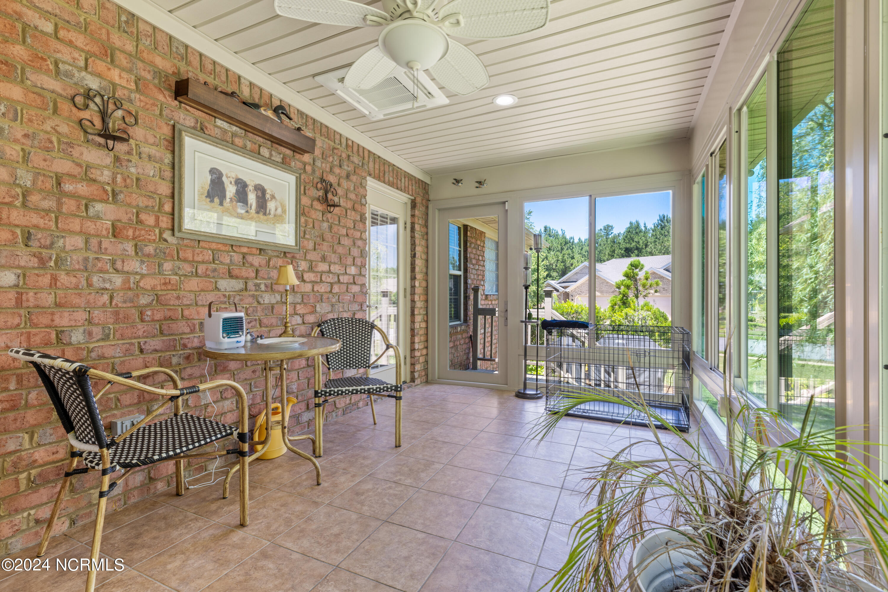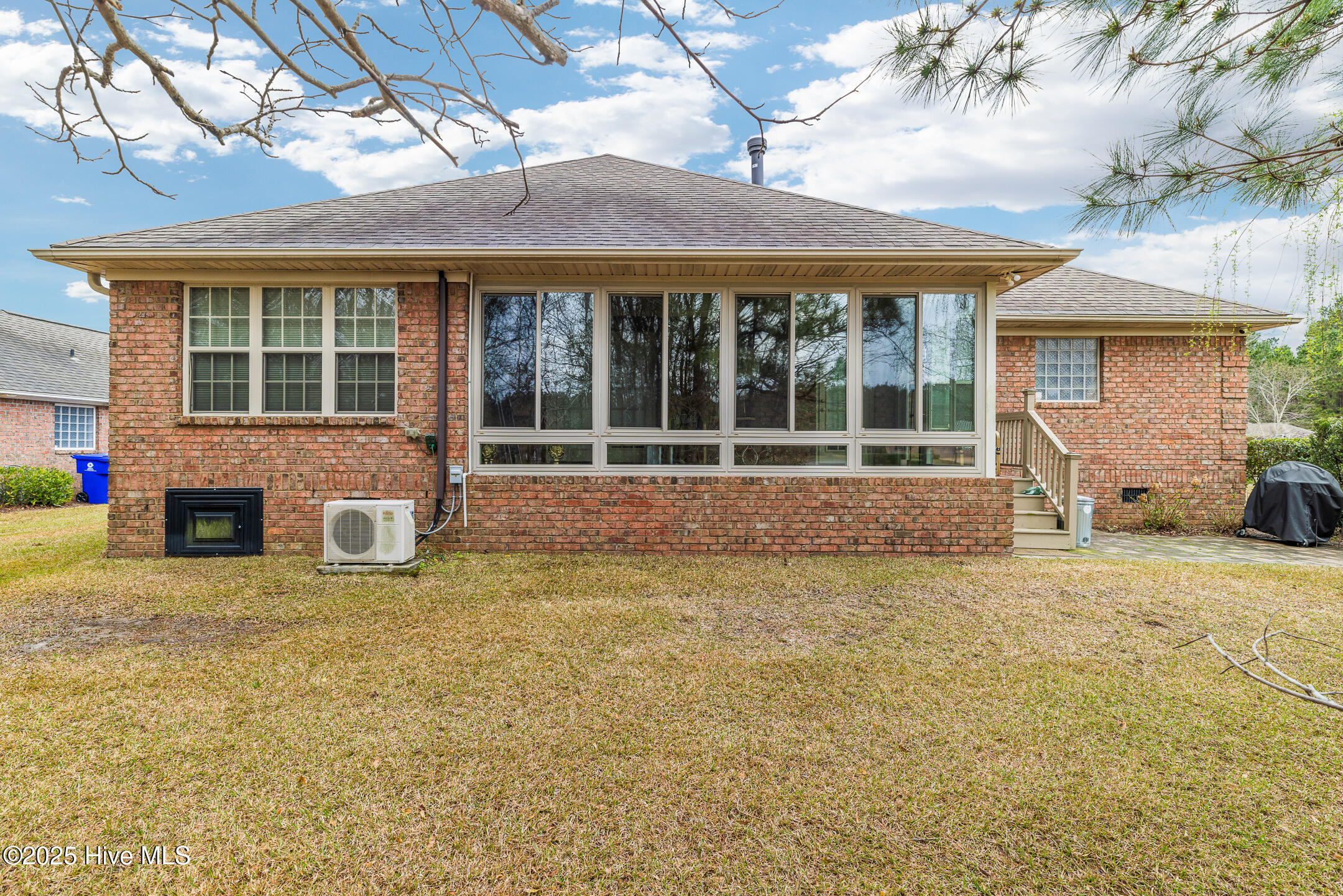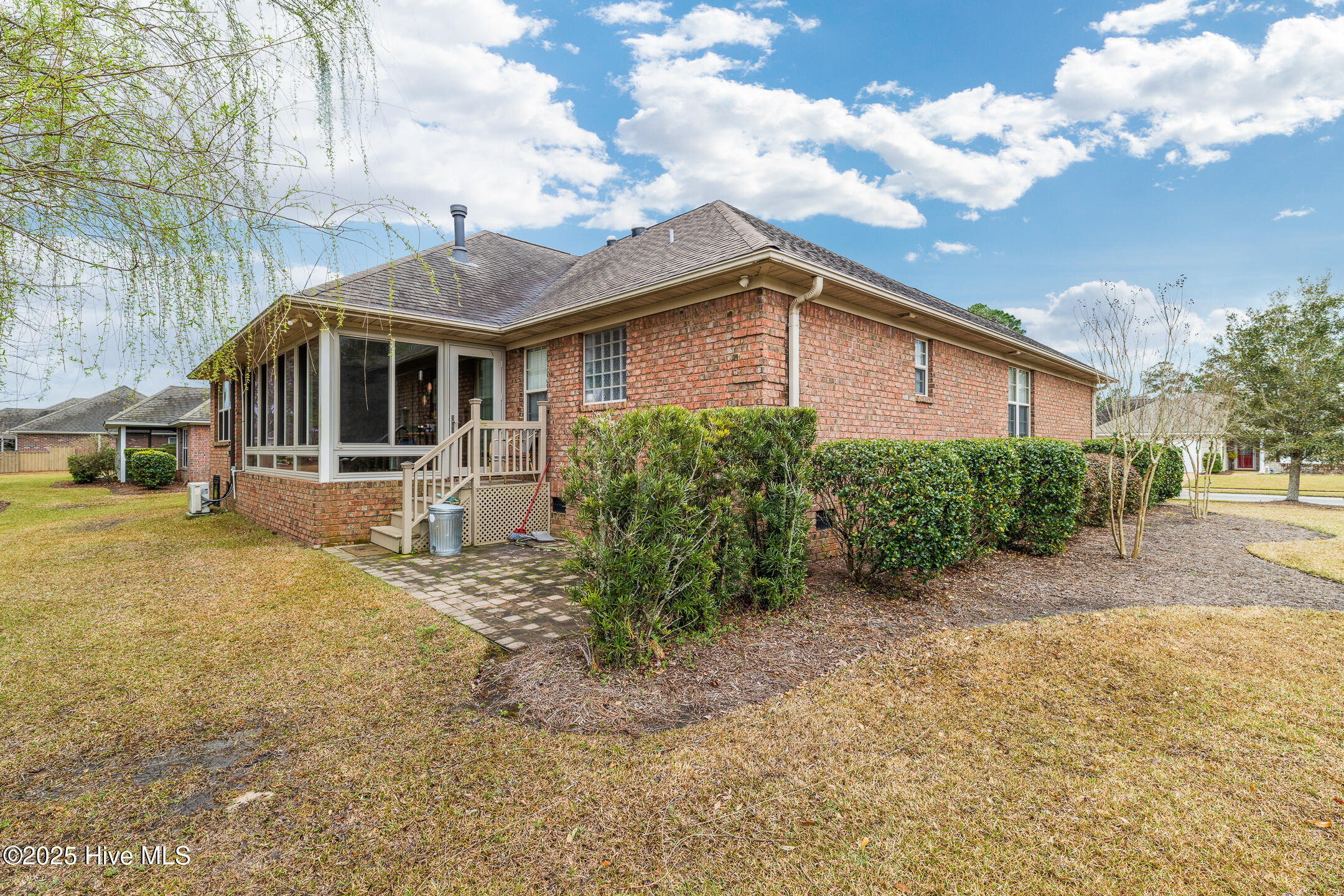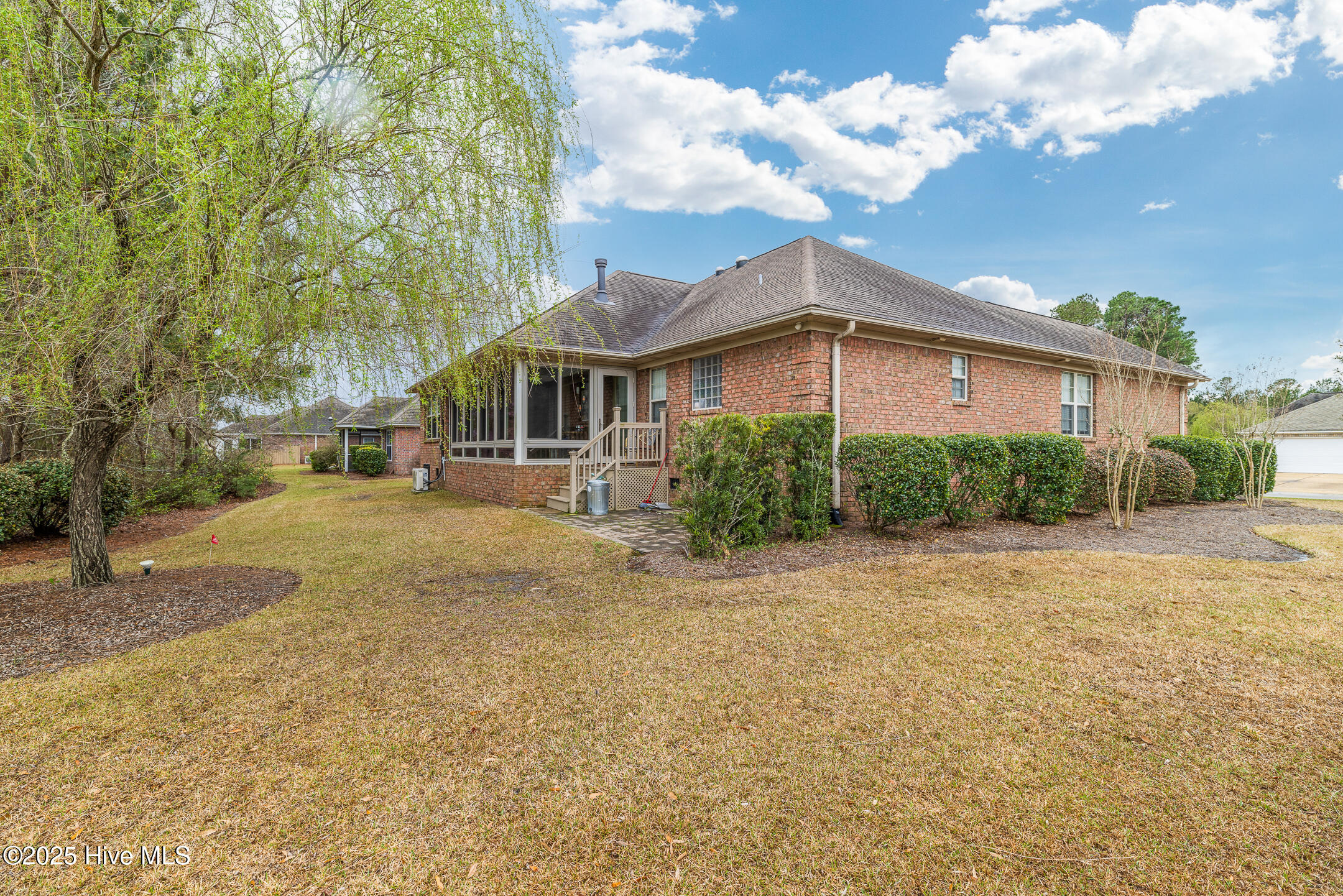 Tucked away in the serene cul-de-sac of Jamesford Court within Brunswick Forest, this inviting brick ranch perfectly captures the essence of coastal living. Combining stylish design, effortless maintenance, and convenient access to community amenities, it offers a true taste of the Brunswick Forest lifestyle. A meticulously landscaped courtyard leads to a charming covered front porch, setting the stage for a warm welcome and showcasing the home's exceptional curb appeal. Inside, vaulted ceilings elevate the spacious living room, anchored by a cozy fireplace, which seamlessly transitions into a formal dining room and a well-appointed kitchen. A delightful 4-season room, bathed in natural light, overlooks the lush backyard—an ideal retreat for morning coffee or evening relaxation. A powder room located by the front door is perfect for your guests. The master suite serves as a private sanctuary, complete with a trey ceiling and a spa-inspired en-suite bathroom featuring a soaking tub, double vanities, and a tiled shower. Direct access to the 4-season room creates a seamless connection between indoor comfort and outdoor tranquility. Two additional bedrooms share a full bathroom, offering both comfort and convenience for family and guests. Practicality meets luxury in the convenient laundry/mud room, strategically located between the two-car garage and kitchen—a perfect balance of functionality and ease. Outside, Brunswick Forest offers a wealth of amenities, including scenic nature trails, fitness centers, pools, golf courses, tennis and pickleball courts, kayaking, and vibrant community activities. Discover refined coastal living in this meticulously maintained residence, where comfort and adventure await in one of North Carolina's premier communities.