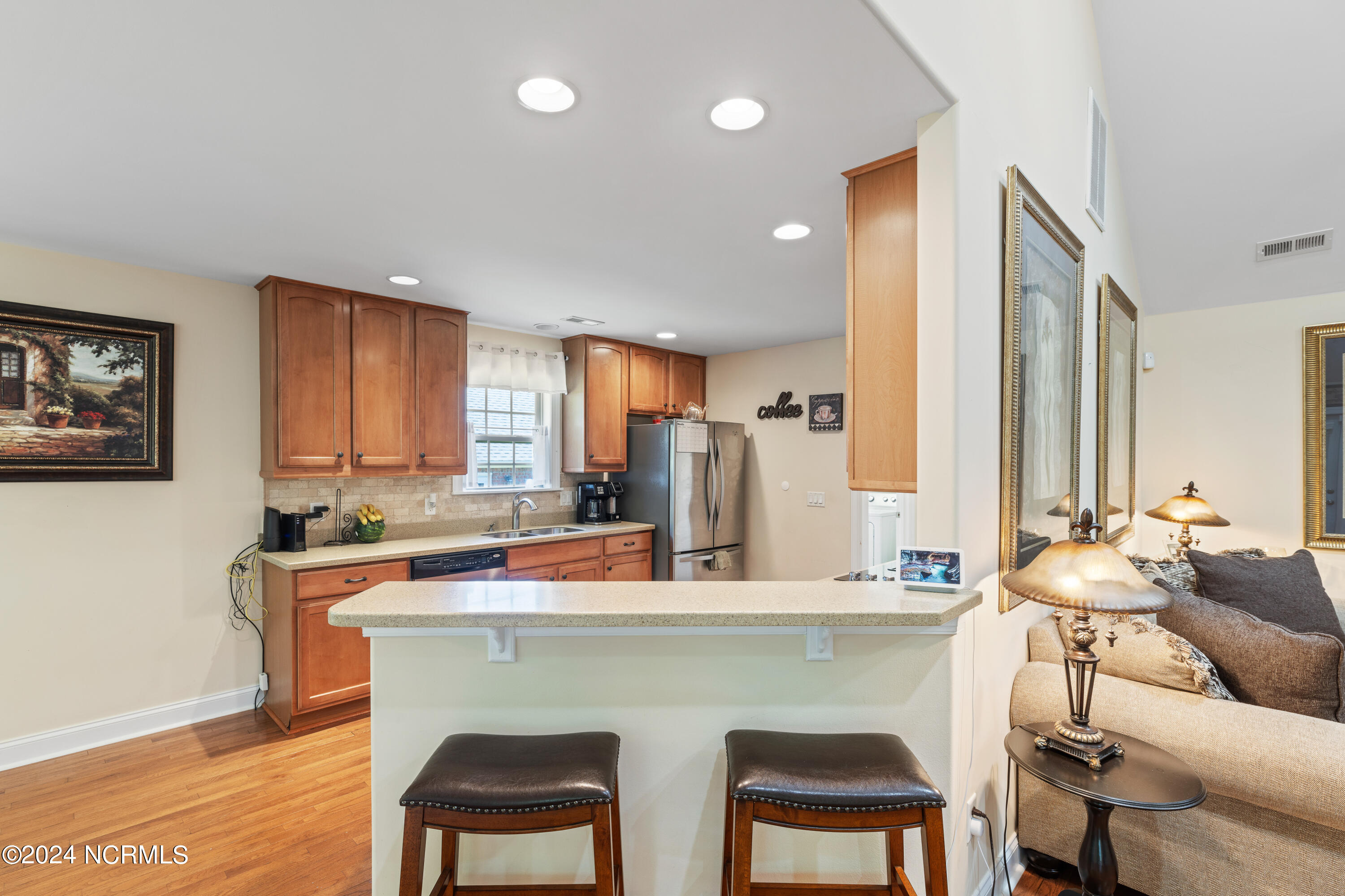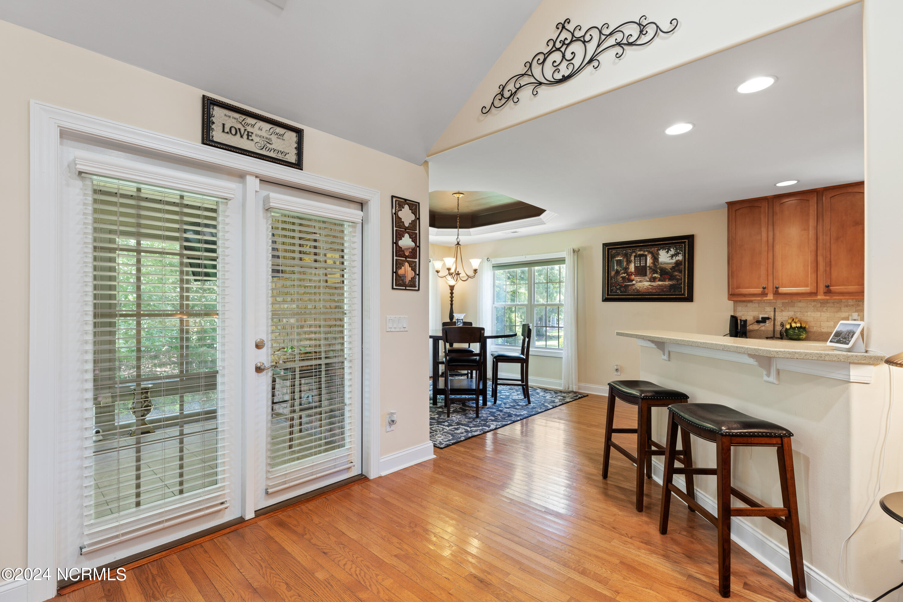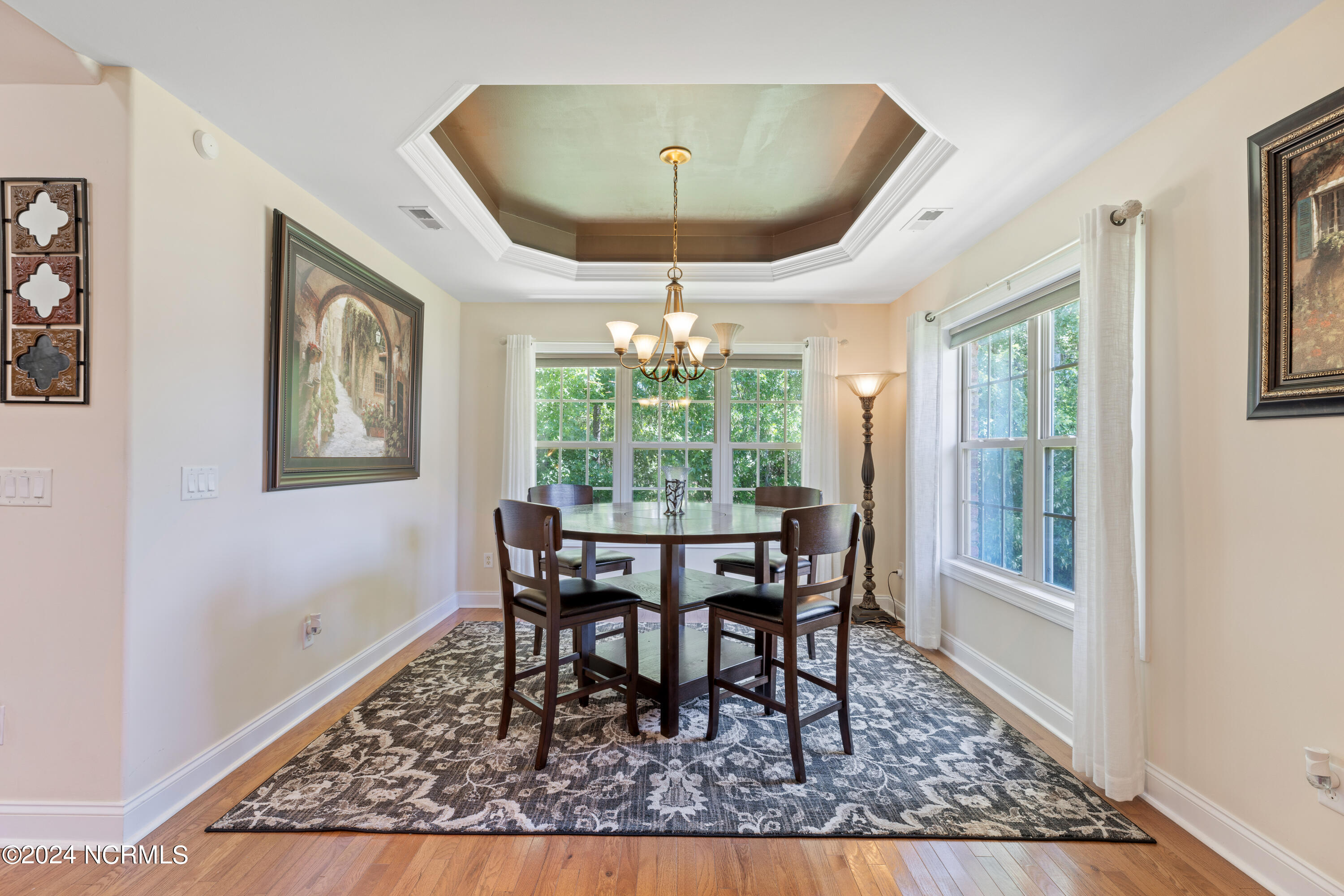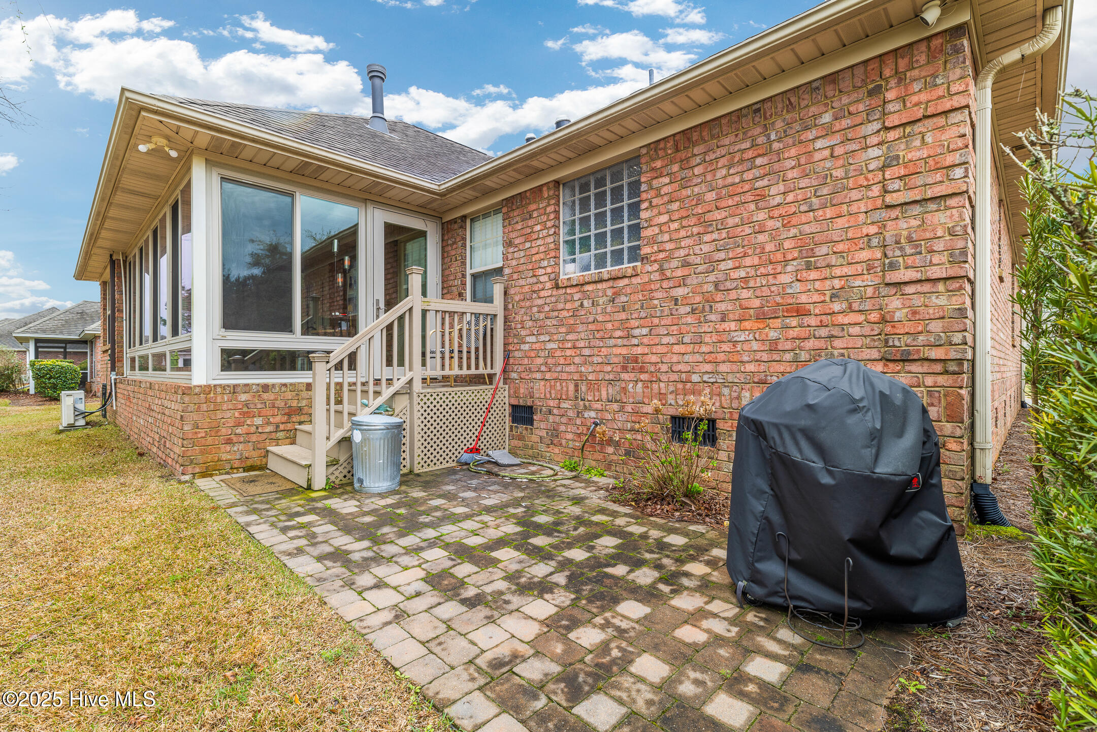 Tucked away in the serene cul-de-sac of Jamesford Court within Brunswick Forest, this inviting brick ranch perfectly captures the essence of coastal living. Combining stylish design, effortless maintenance, and convenient access to community amenities, it offers a true taste of the Brunswick Forest lifestyle. A meticulously landscaped courtyard leads to a charming covered front porch, setting the stage for a warm welcome and showcasing the home's exceptional curb appeal. Inside, vaulted ceilings elevate the spacious living room, anchored by a cozy fireplace, which seamlessly transitions into a formal dining room and a well-appointed kitchen. A delightful 4-season room, bathed in natural light, overlooks the lush backyard—an ideal retreat for morning coffee or evening relaxation. A powder room located by the front door is perfect for your guests. The master suite serves as a private sanctuary, complete with a trey ceiling and a spa-inspired en-suite bathroom featuring a soaking tub, double vanities, and a tiled shower. Direct access to the 4-season room creates a seamless connection between indoor comfort and outdoor tranquility. Two additional bedrooms share a full bathroom, offering both comfort and convenience for family and guests. Practicality meets luxury in the convenient laundry/mud room, strategically located between the two-car garage and kitchen—a perfect balance of functionality and ease. Outside, Brunswick Forest offers a wealth of amenities, including scenic nature trails, fitness centers, pools, golf courses, tennis and pickleball courts, kayaking, and vibrant community activities. Discover refined coastal living in this meticulously maintained residence, where comfort and adventure await in one of North Carolina's premier communities.