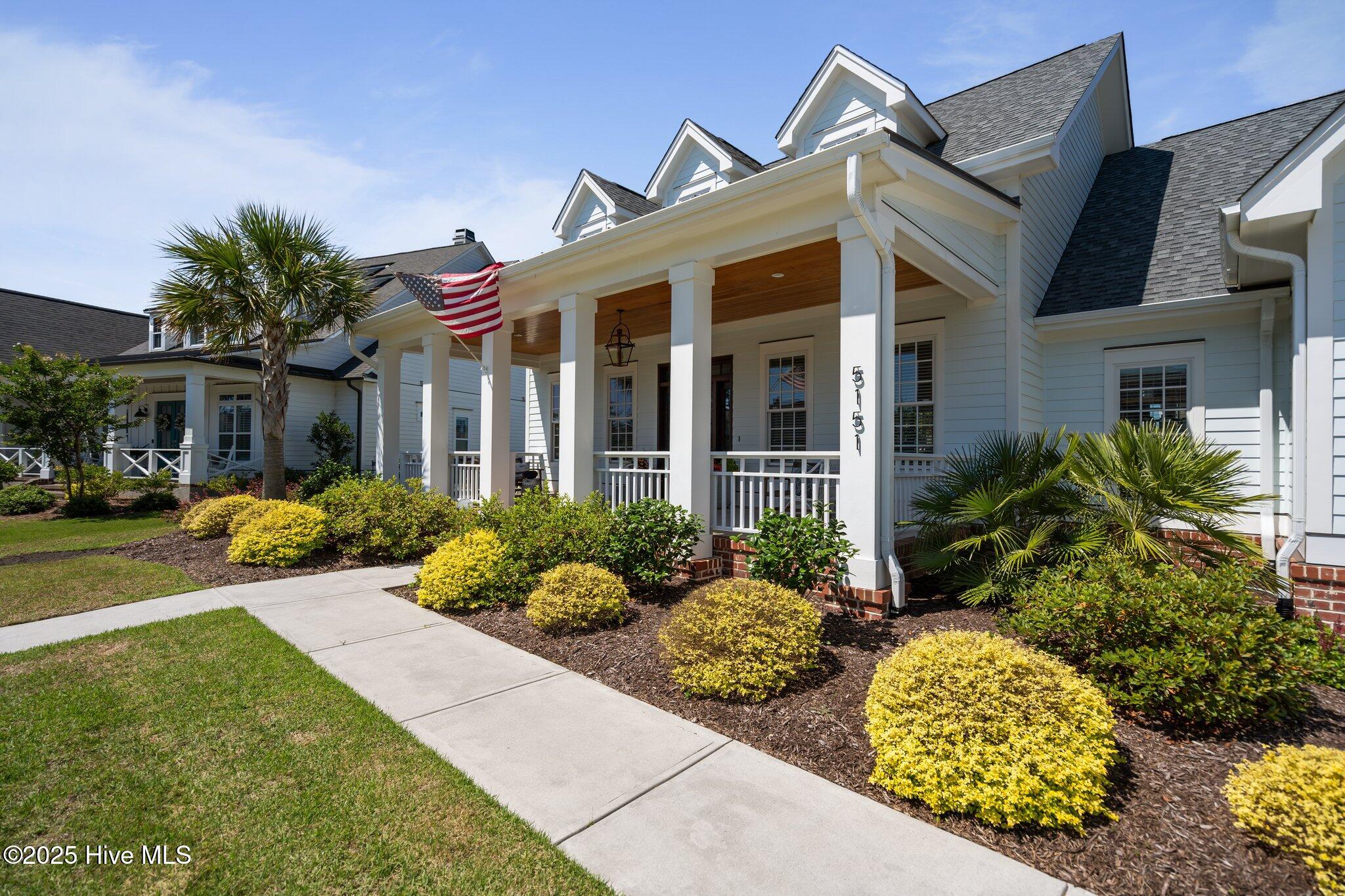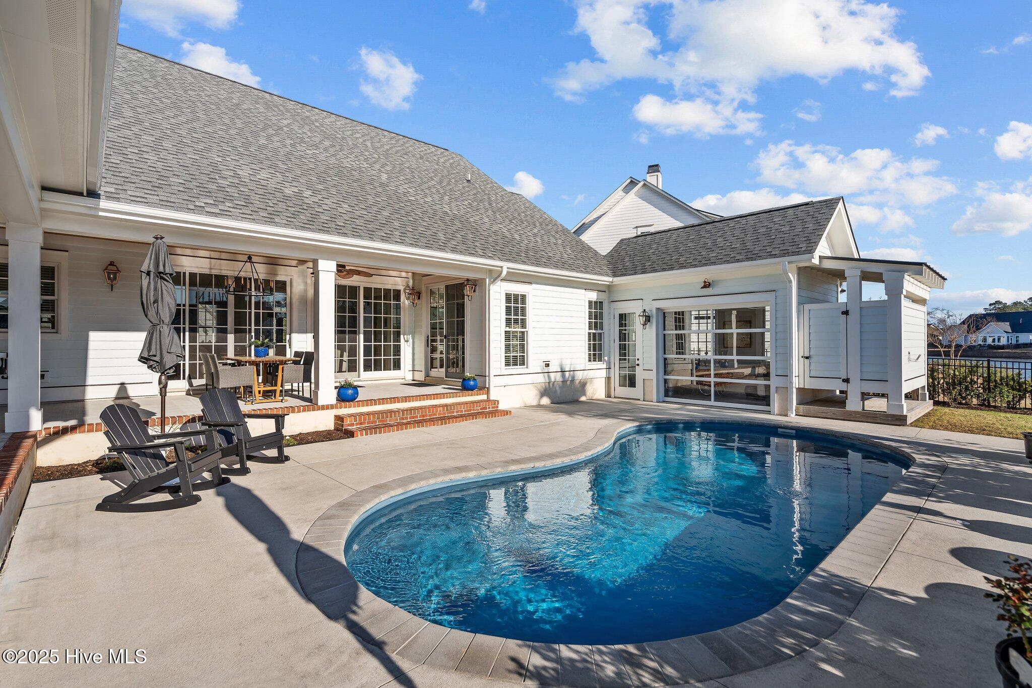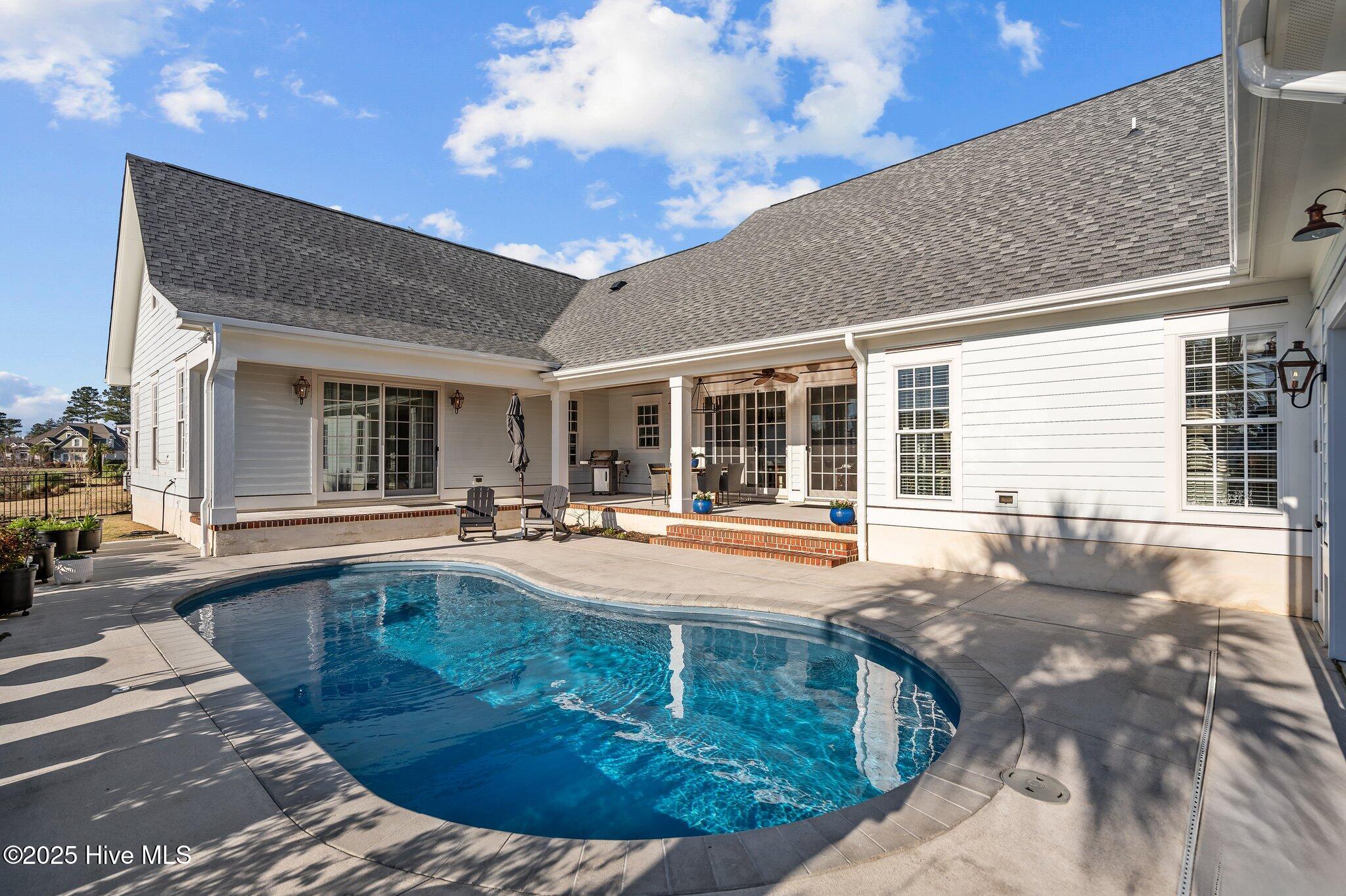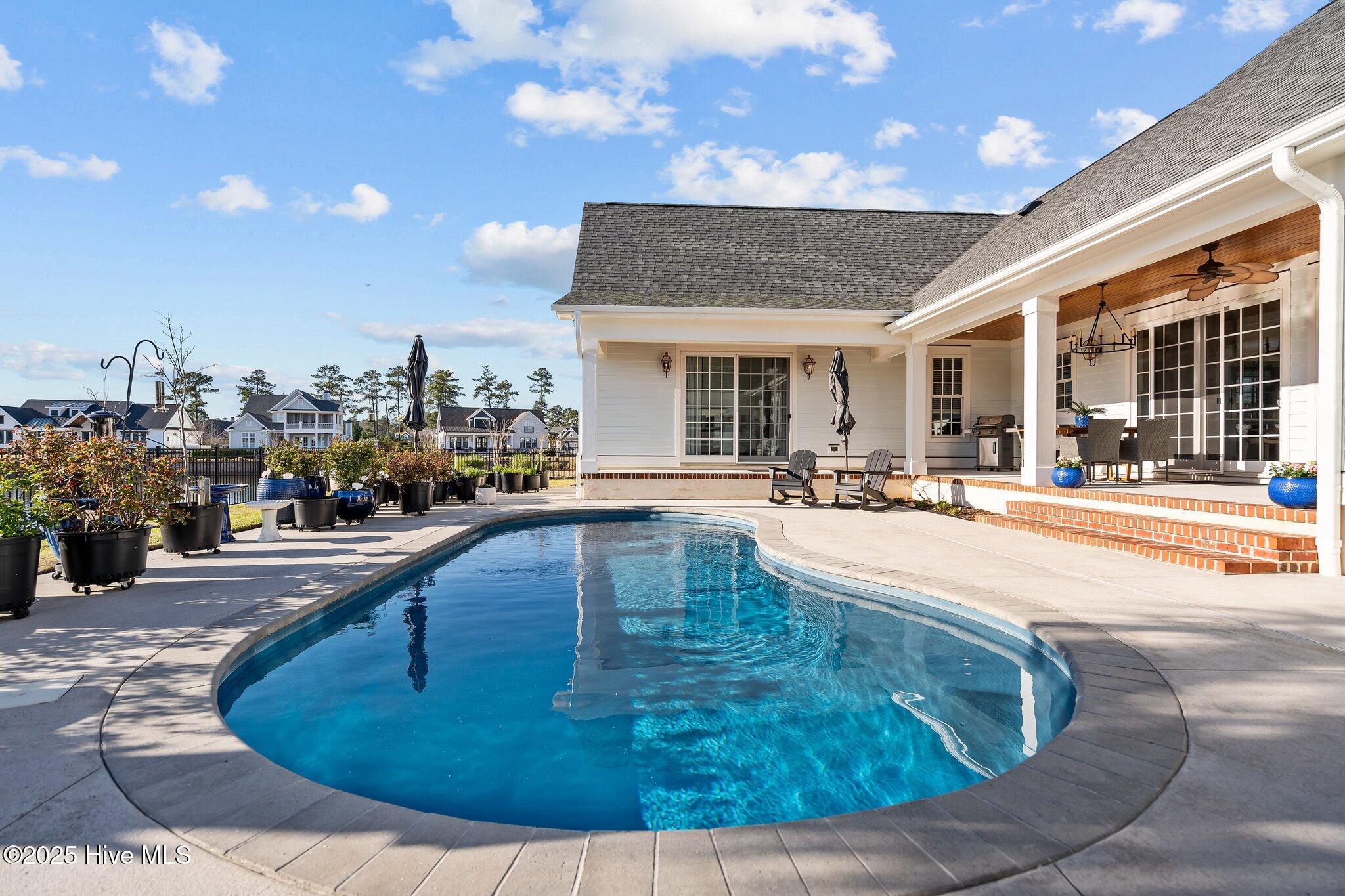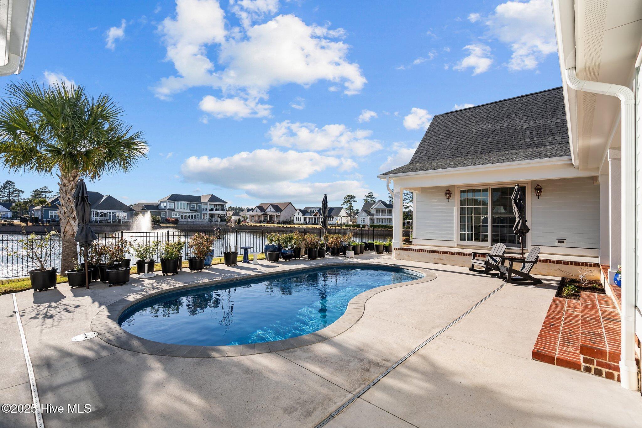 This Southern Colonial masterpiece built by Bell Custom Homes offers unparalleled luxury and craftsmanship on a premium .29-acre pondfront lot. Spanning 2,878 sqft, this 4 bedroom, 3.5 bath home is designed for elegance and comfort. A grand covered front porch sets the tone for refined living. Inside, 8' doors, soaring 10' ceilings, and rich engineered hardwoods create a warm yet sophisticated ambiance. The chef's kitchen is a showstopper, boasting quartz countertops, a massive island, and top-tier appliances: 36'' KitchenAid 6-burner gas cooktop with Pro Vent hood, GE Monogram wall oven, GE Advantium microwave, and Bosch dishwasher. A 6x8.5 walk-in pantry with custom shelving, silent-close drawers, and illuminated glass cabinetry offers exceptional storage. The Scotsman Brilliance ice maker ensures cocktails are always ready for sunset views over 118ft of serene pond frontage from your covered back deck. The living room impresses with 18' vaulted ceilings, a gas fireplace, and two sets of sliding glass doors, seamlessly merging indoor and outdoor living. Step outside to a resort-style retreat featuring a heated saltwater pool, expansive deck, and luxury pool house with an enclosed outdoor shower. The first-floor master suite offers breathtaking pond views, a spa-like en suite with heated porcelain floors, a frameless glass shower, dual marble vanities, and a custom walk-in closet with a center island. Two guest bedrooms, a second full bath, and a dedicated office add comfort and convenience. Upstairs, a bonus room/4th bedroom with a private bath offers flexibility. Additional features include a finished two-car garage, custom drop zone, elegant laundry room, Navien tankless water heater, and fully fenced backyard. Located in Brunswick Forest, enjoy premier amenities: a fitness center, three pools (one indoor), tennis, pickleball, kayaking, and the Cape Fear National Golf Course. A rare opportunity for luxury—schedule your private tour today!