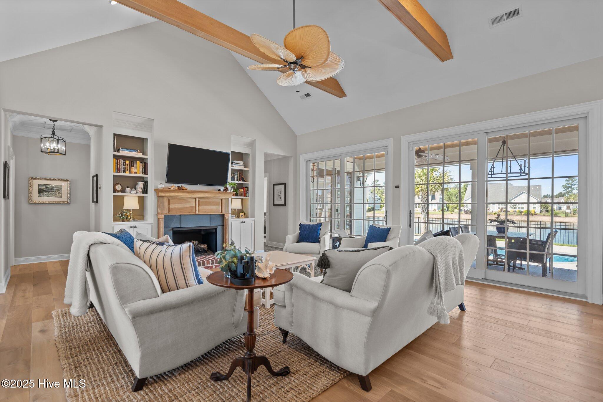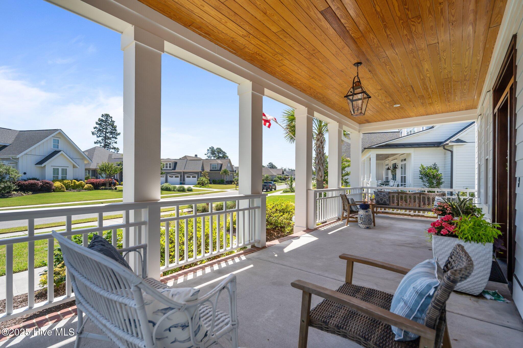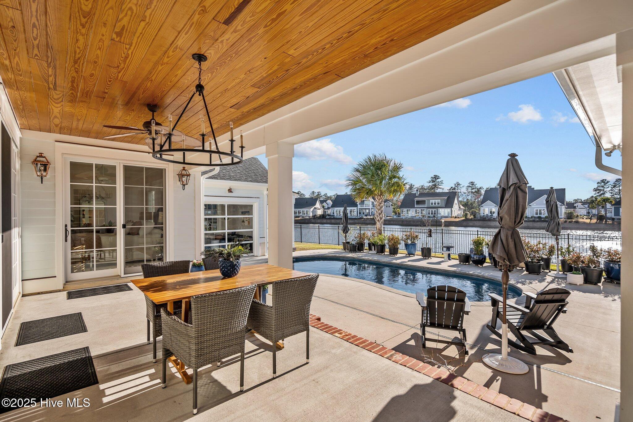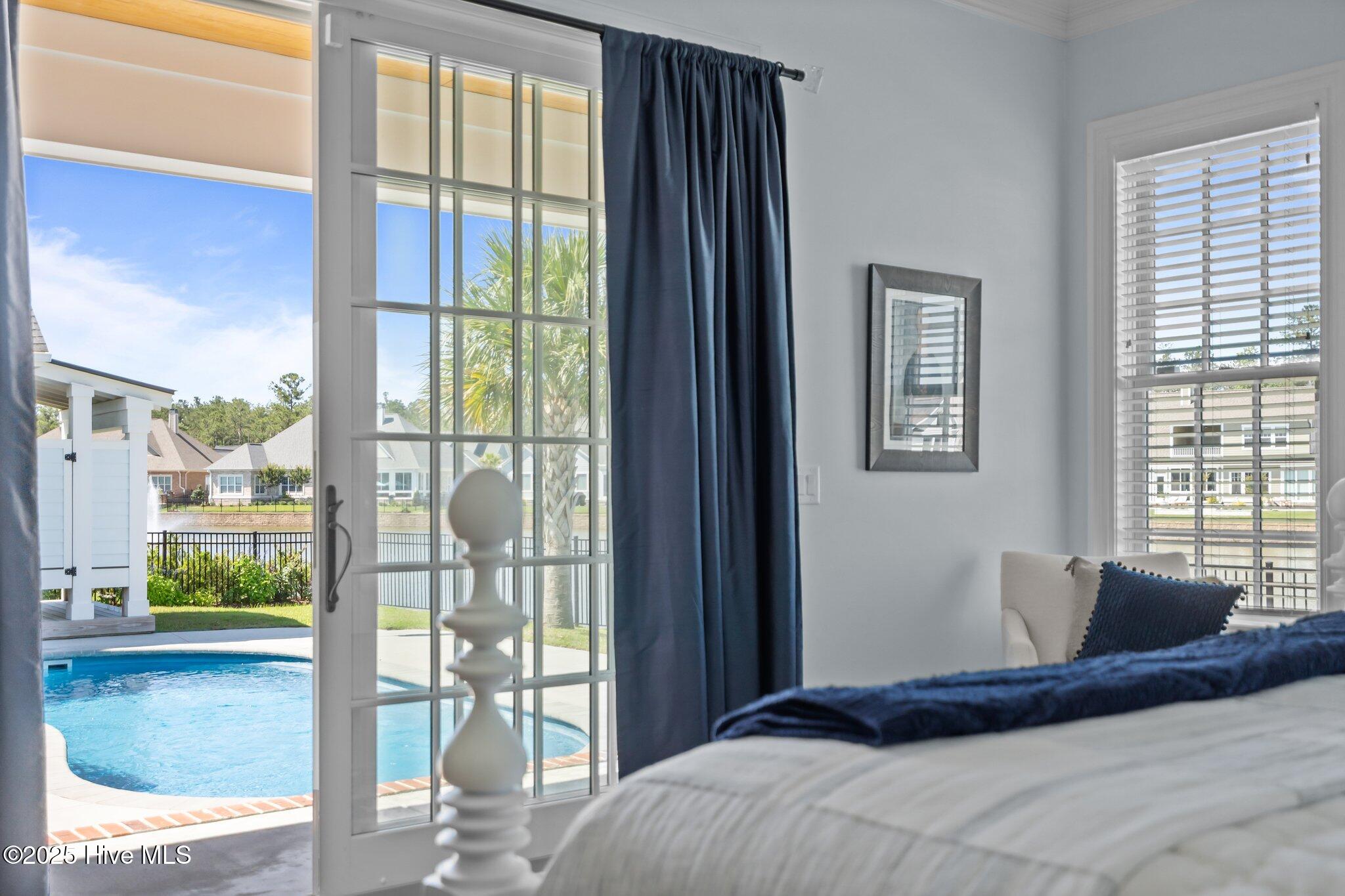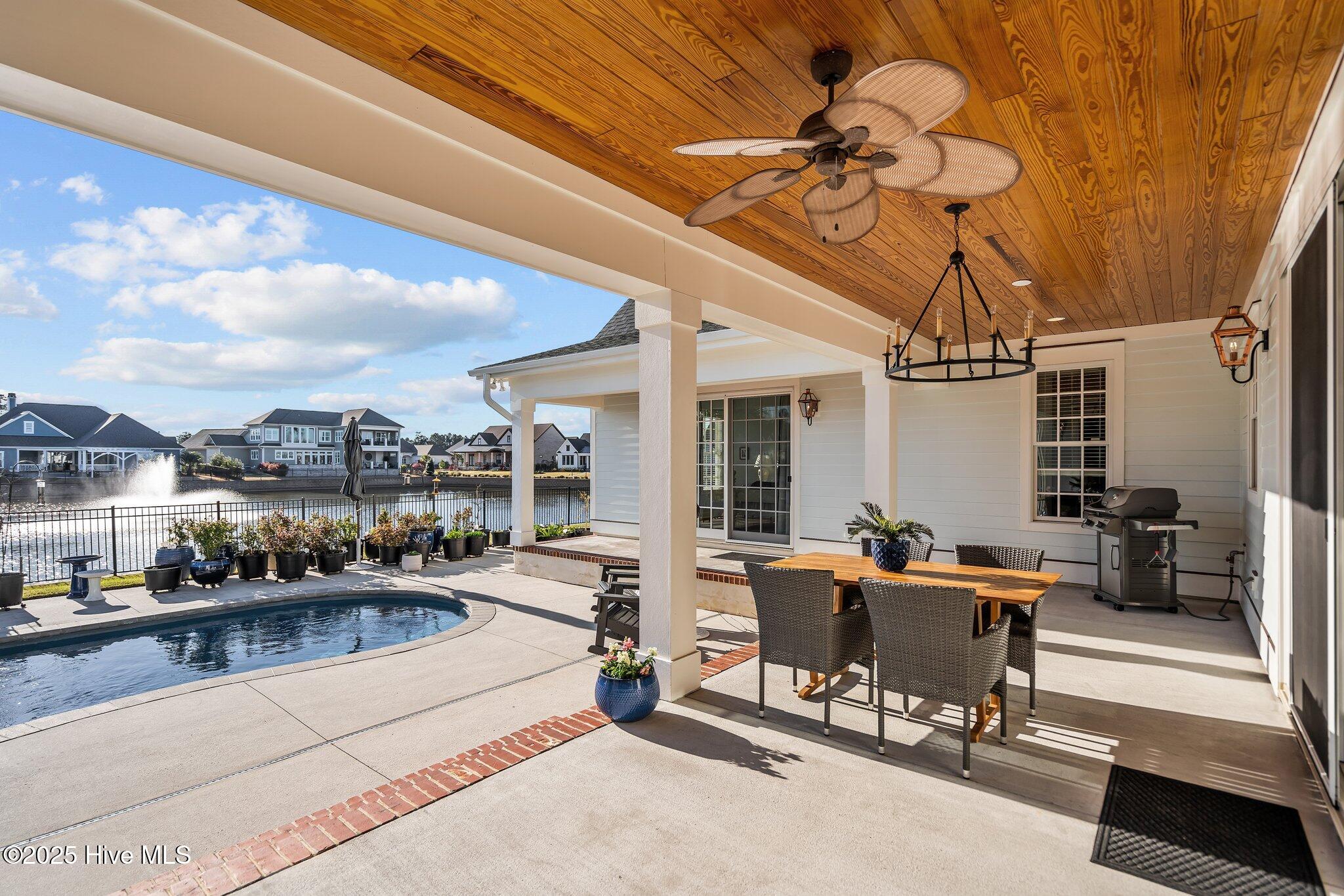 This Southern Colonial masterpiece built by Bell Custom Homes offers unparalleled luxury and craftsmanship on a premium .29-acre pondfront lot. Spanning 2,878 sqft, this 4 bedroom, 3.5 bath home is designed for elegance and comfort. A grand covered front porch sets the tone for refined living. Inside, 8' doors, soaring 10' ceilings, and rich engineered hardwoods create a warm yet sophisticated ambiance. The chef's kitchen is a showstopper, boasting quartz countertops, a massive island, and top-tier appliances: 36'' KitchenAid 6-burner gas cooktop with Pro Vent hood, GE Monogram wall oven, GE Advantium microwave, and Bosch dishwasher. A 6x8.5 walk-in pantry with custom shelving, silent-close drawers, and illuminated glass cabinetry offers exceptional storage. The Scotsman Brilliance ice maker ensures cocktails are always ready for sunset views over 118ft of serene pond frontage from your covered back deck. The living room impresses with 18' vaulted ceilings, a gas fireplace, and two sets of sliding glass doors, seamlessly merging indoor and outdoor living. Step outside to a resort-style retreat featuring a heated saltwater pool, expansive deck, and luxury pool house with an enclosed outdoor shower. The first-floor master suite offers breathtaking pond views, a spa-like en suite with heated porcelain floors, a frameless glass shower, dual marble vanities, and a custom walk-in closet with a center island. Two guest bedrooms, a second full bath, and a dedicated office add comfort and convenience. Upstairs, a bonus room/4th bedroom with a private bath offers flexibility. Additional features include a finished two-car garage, custom drop zone, elegant laundry room, Navien tankless water heater, and fully fenced backyard. Located in Brunswick Forest, enjoy premier amenities: a fitness center, three pools (one indoor), tennis, pickleball, kayaking, and the Cape Fear National Golf Course. A rare opportunity for luxury—schedule your private tour today!