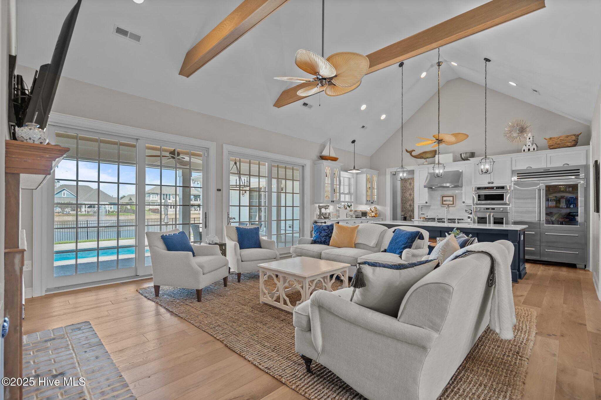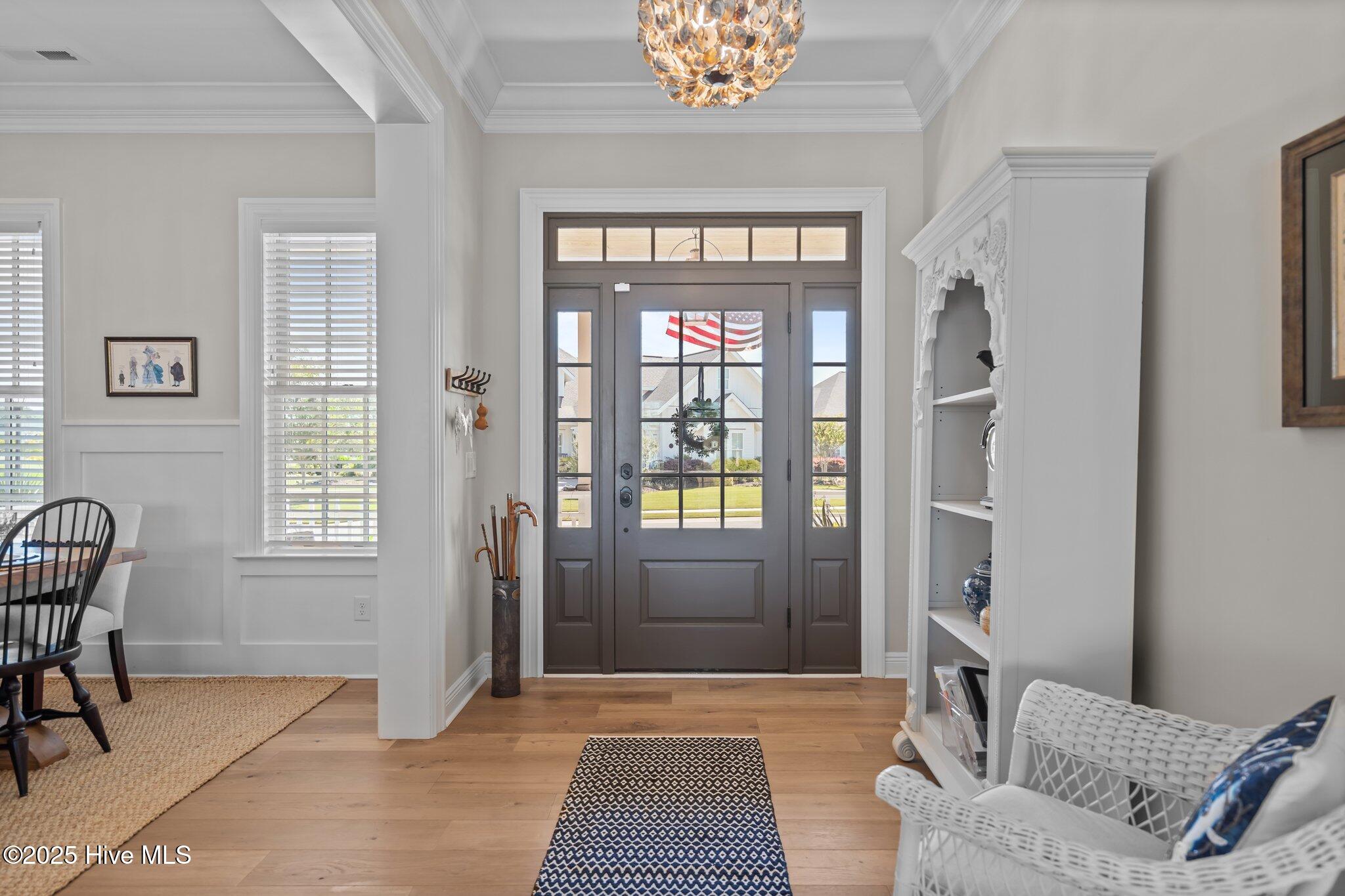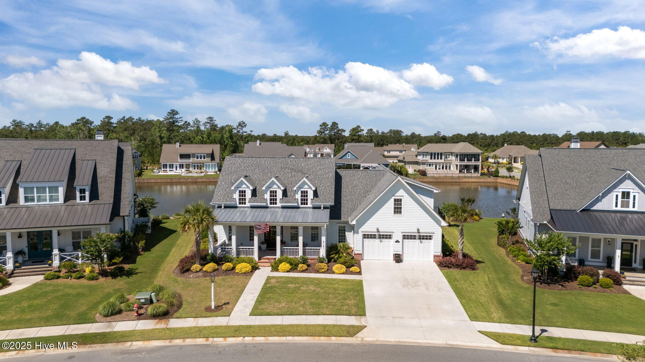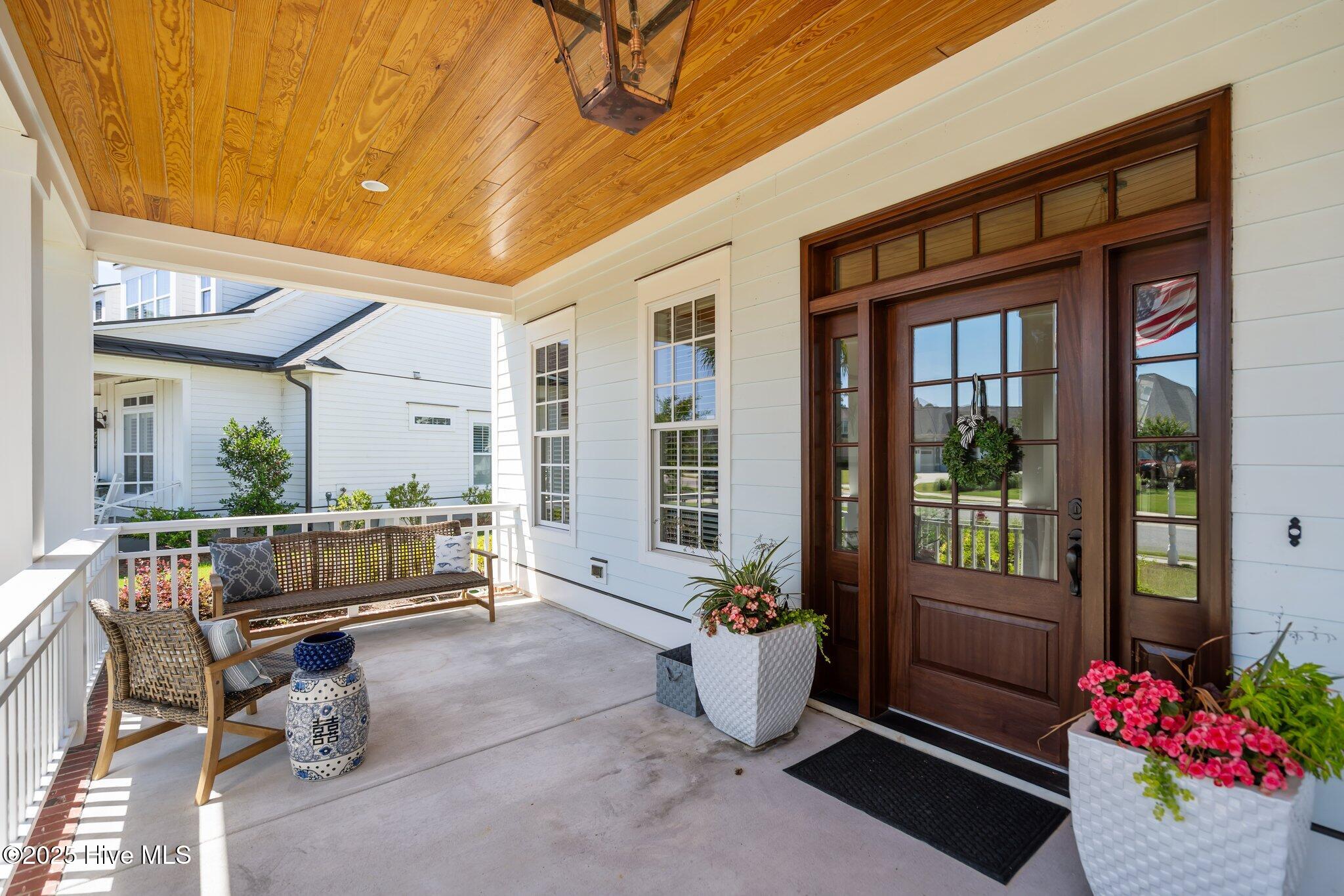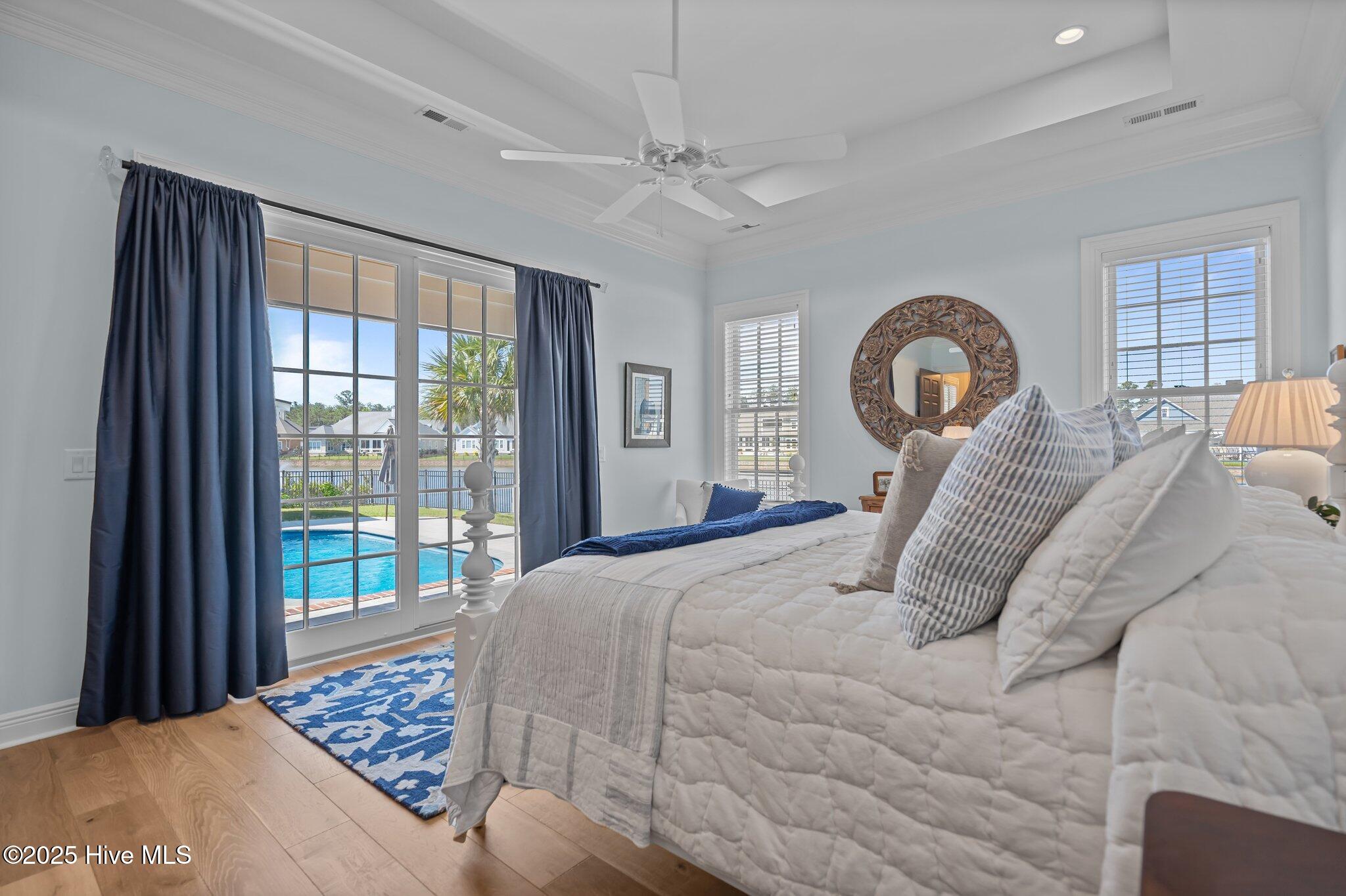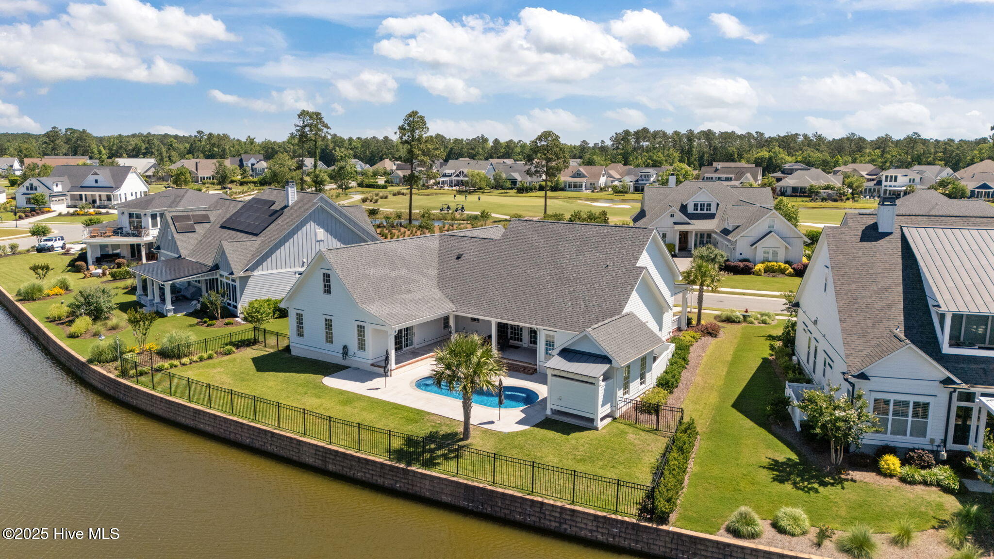 This Southern Colonial masterpiece built by Bell Custom Homes offers unparalleled luxury and craftsmanship on a premium .29-acre pondfront lot. Spanning 2,878 sqft, this 4 bedroom, 3.5 bath home is designed for elegance and comfort. A grand covered front porch sets the tone for refined living. Inside, 8' doors, soaring 10' ceilings, and rich engineered hardwoods create a warm yet sophisticated ambiance. The chef's kitchen is a showstopper, boasting quartz countertops, a massive island, and top-tier appliances: 36'' KitchenAid 6-burner gas cooktop with Pro Vent hood, GE Monogram wall oven, GE Advantium microwave, and Bosch dishwasher. A 6x8.5 walk-in pantry with custom shelving, silent-close drawers, and illuminated glass cabinetry offers exceptional storage. The Scotsman Brilliance ice maker ensures cocktails are always ready for sunset views over 118ft of serene pond frontage from your covered back deck. The living room impresses with 18' vaulted ceilings, a gas fireplace, and two sets of sliding glass doors, seamlessly merging indoor and outdoor living. Step outside to a resort-style retreat featuring a heated saltwater pool, expansive deck, and luxury pool house with an enclosed outdoor shower. The first-floor master suite offers breathtaking pond views, a spa-like en suite with heated porcelain floors, a frameless glass shower, dual marble vanities, and a custom walk-in closet with a center island. Two guest bedrooms, a second full bath, and a dedicated office add comfort and convenience. Upstairs, a bonus room/4th bedroom with a private bath offers flexibility. Additional features include a finished two-car garage, custom drop zone, elegant laundry room, Navien tankless water heater, and fully fenced backyard. Located in Brunswick Forest, enjoy premier amenities: a fitness center, three pools (one indoor), tennis, pickleball, kayaking, and the Cape Fear National Golf Course. A rare opportunity for luxury—schedule your private tour today!