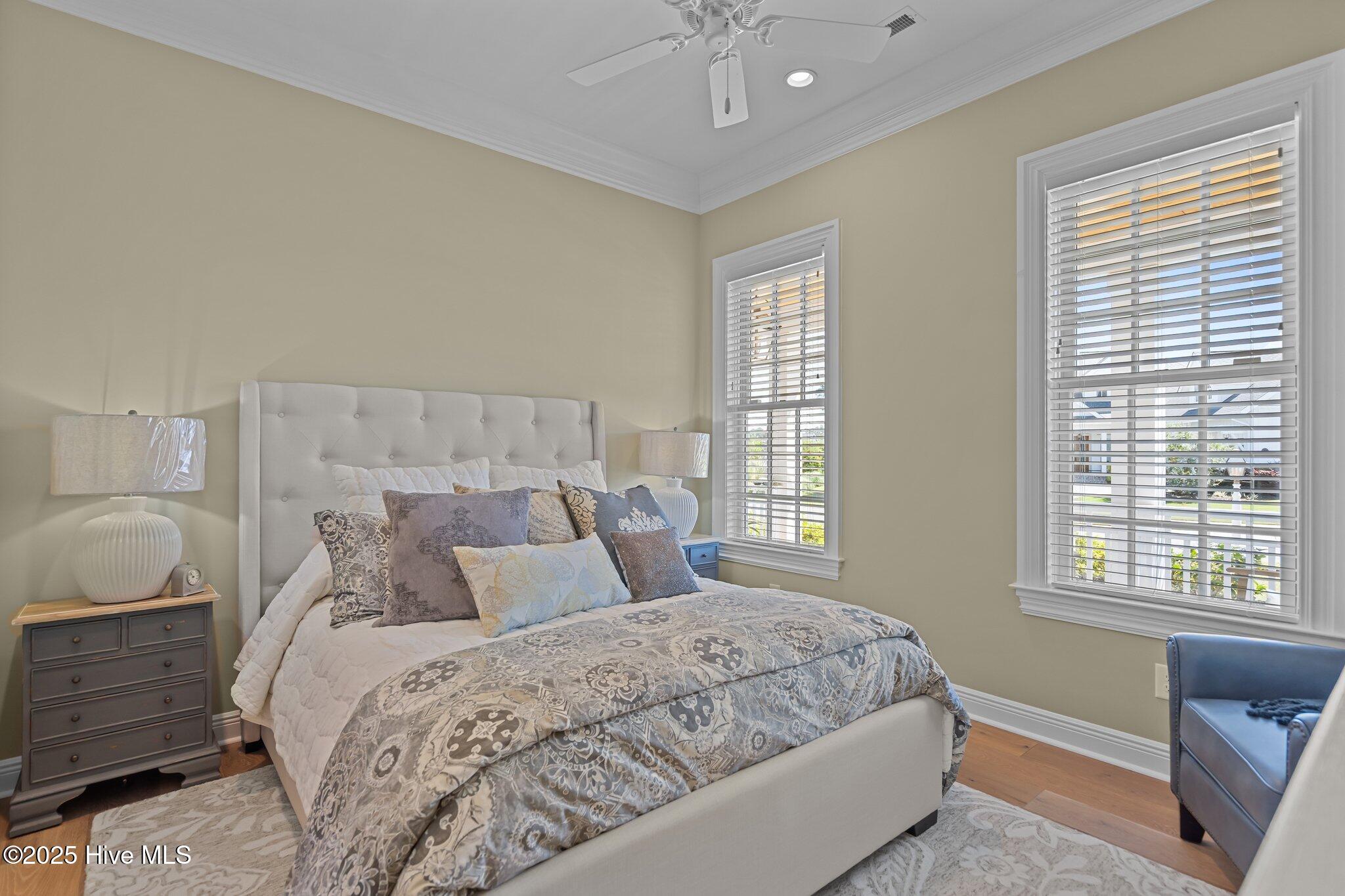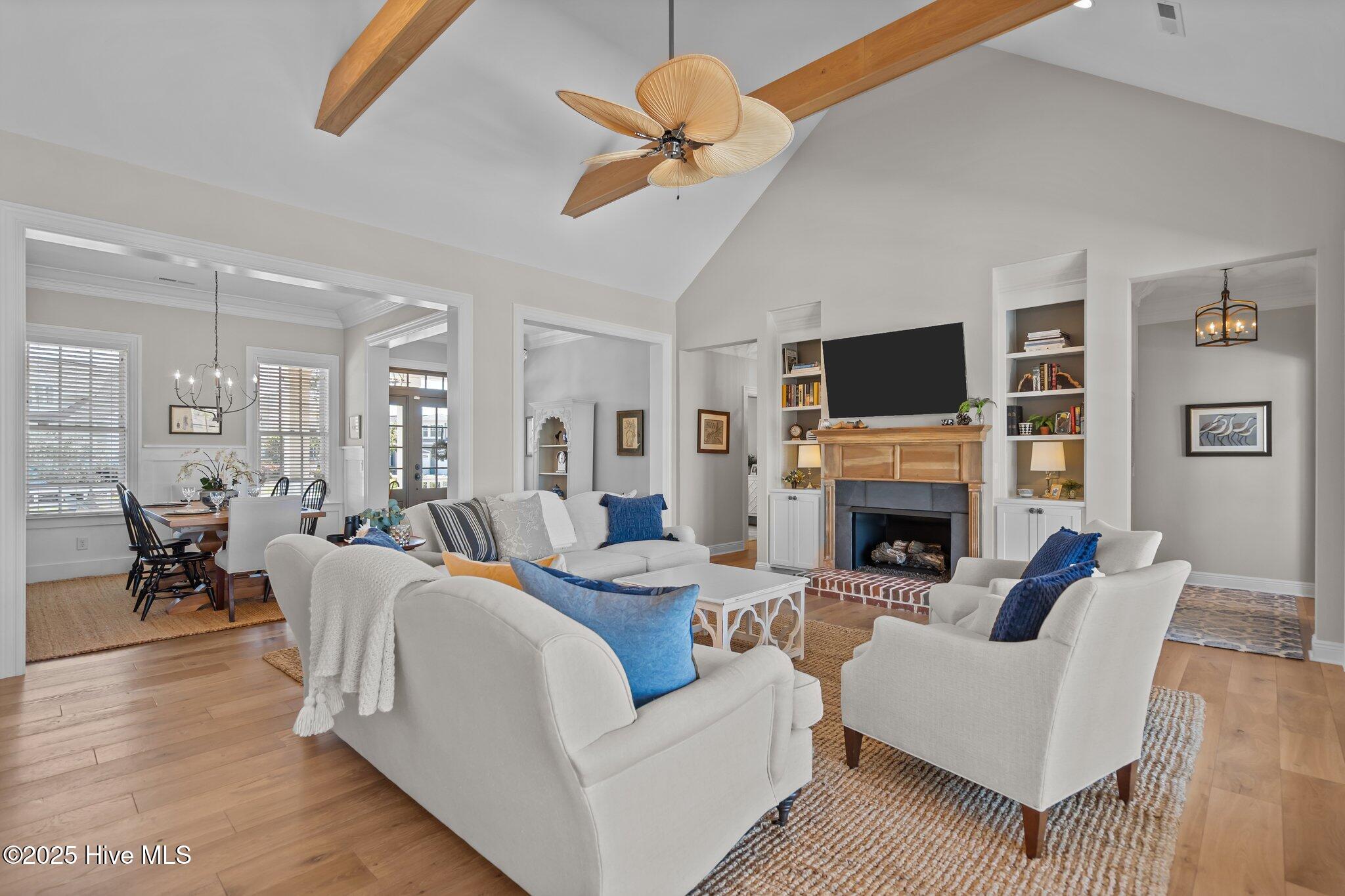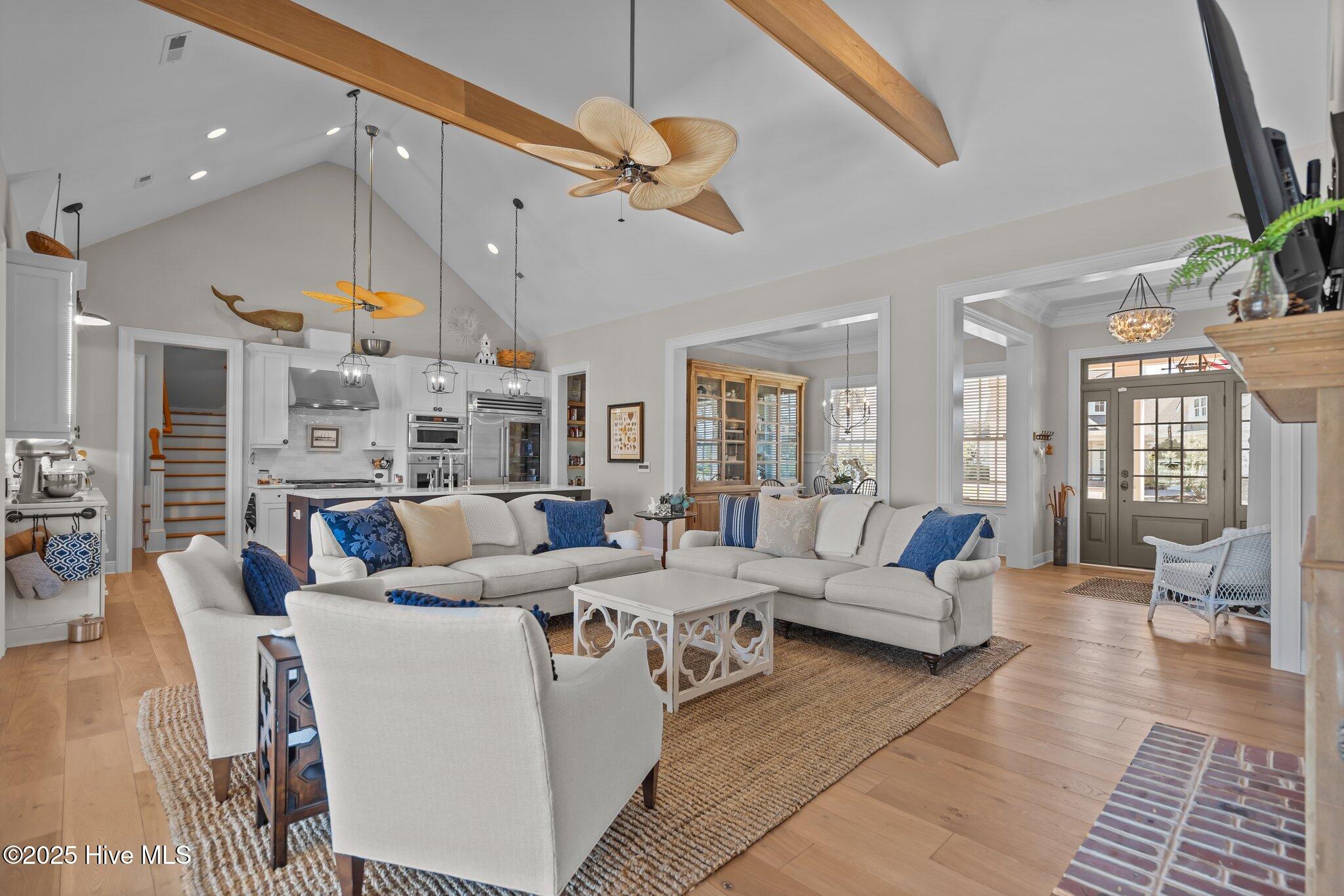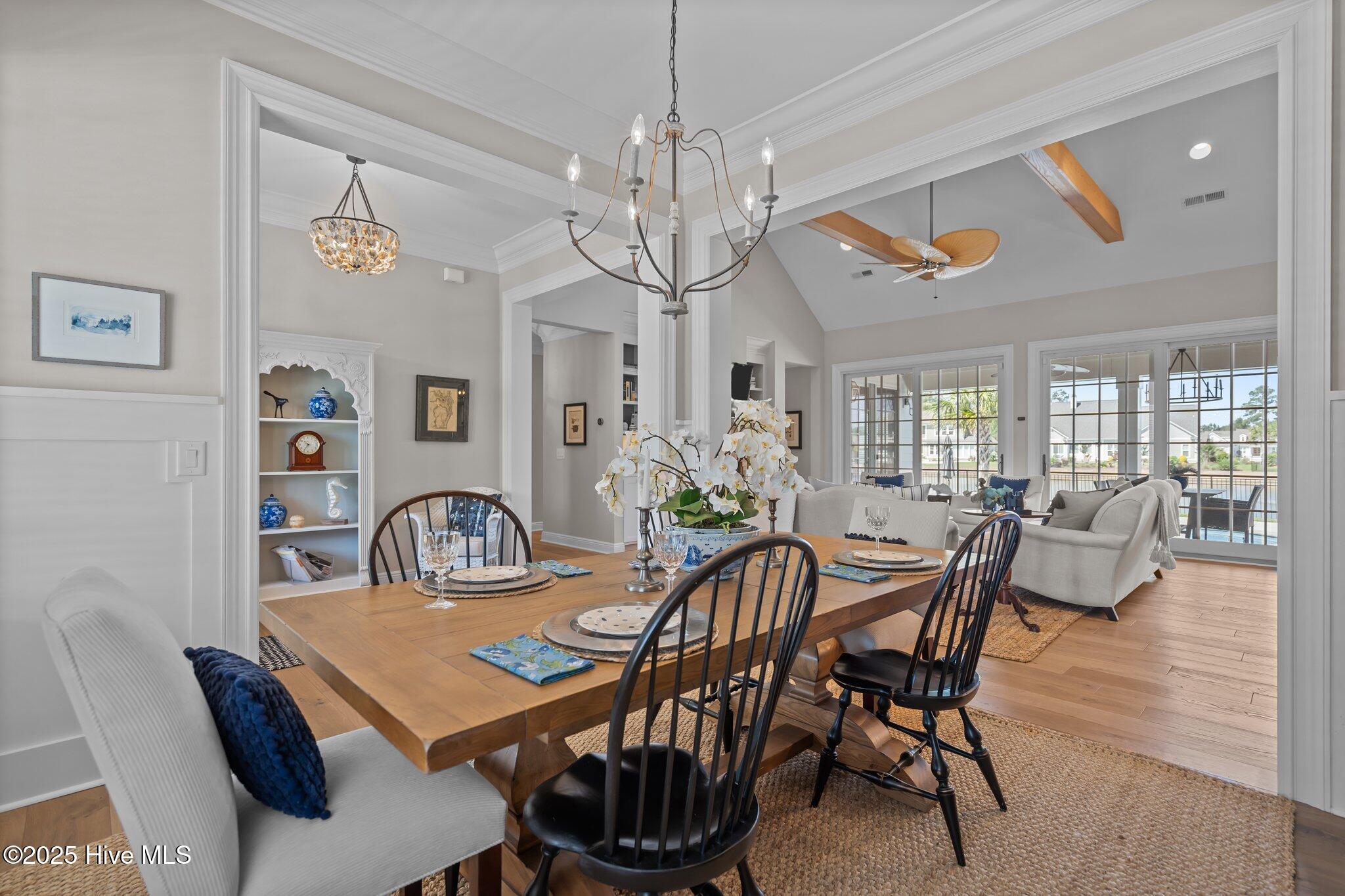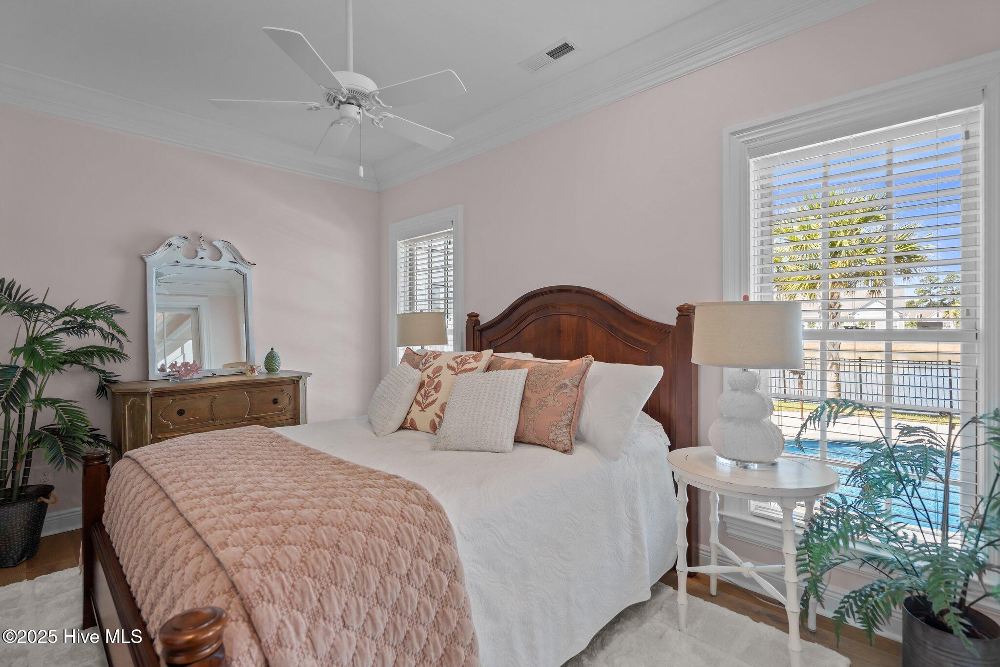 This Southern Colonial masterpiece built by Bell Custom Homes offers unparalleled luxury and craftsmanship on a premium .29-acre pondfront lot. Spanning 2,878 sqft, this 4 bedroom, 3.5 bath home is designed for elegance and comfort. A grand covered front porch sets the tone for refined living. Inside, 8' doors, soaring 10' ceilings, and rich engineered hardwoods create a warm yet sophisticated ambiance. The chef's kitchen is a showstopper, boasting quartz countertops, a massive island, and top-tier appliances: 36'' KitchenAid 6-burner gas cooktop with Pro Vent hood, GE Monogram wall oven, GE Advantium microwave, and Bosch dishwasher. A 6x8.5 walk-in pantry with custom shelving, silent-close drawers, and illuminated glass cabinetry offers exceptional storage. The Scotsman Brilliance ice maker ensures cocktails are always ready for sunset views over 118ft of serene pond frontage from your covered back deck. The living room impresses with 18' vaulted ceilings, a gas fireplace, and two sets of sliding glass doors, seamlessly merging indoor and outdoor living. Step outside to a resort-style retreat featuring a heated saltwater pool, expansive deck, and luxury pool house with an enclosed outdoor shower. The first-floor master suite offers breathtaking pond views, a spa-like en suite with heated porcelain floors, a frameless glass shower, dual marble vanities, and a custom walk-in closet with a center island. Two guest bedrooms, a second full bath, and a dedicated office add comfort and convenience. Upstairs, a bonus room/4th bedroom with a private bath offers flexibility. Additional features include a finished two-car garage, custom drop zone, elegant laundry room, Navien tankless water heater, and fully fenced backyard. Located in Brunswick Forest, enjoy premier amenities: a fitness center, three pools (one indoor), tennis, pickleball, kayaking, and the Cape Fear National Golf Course. A rare opportunity for luxury—schedule your private tour today!