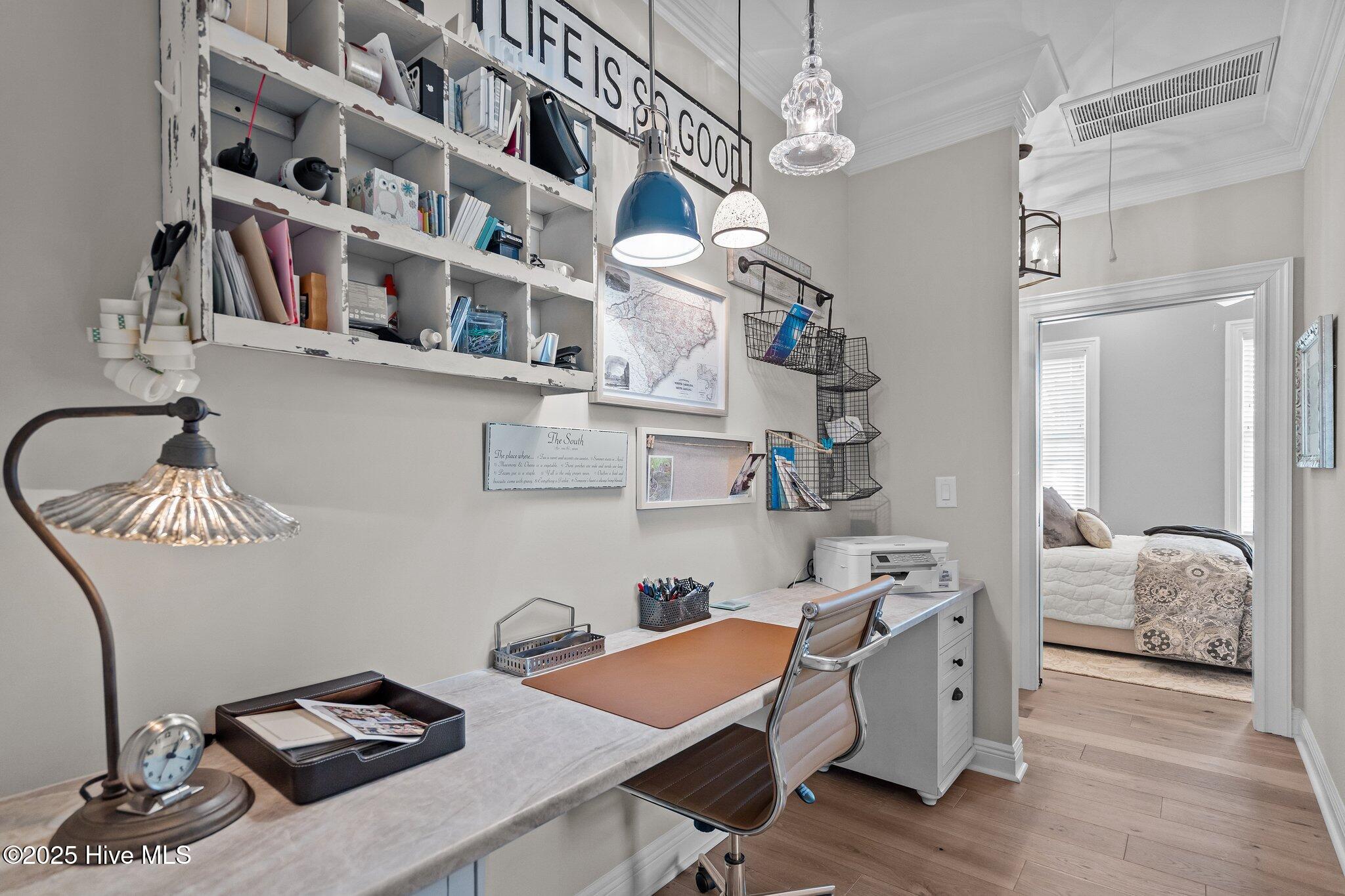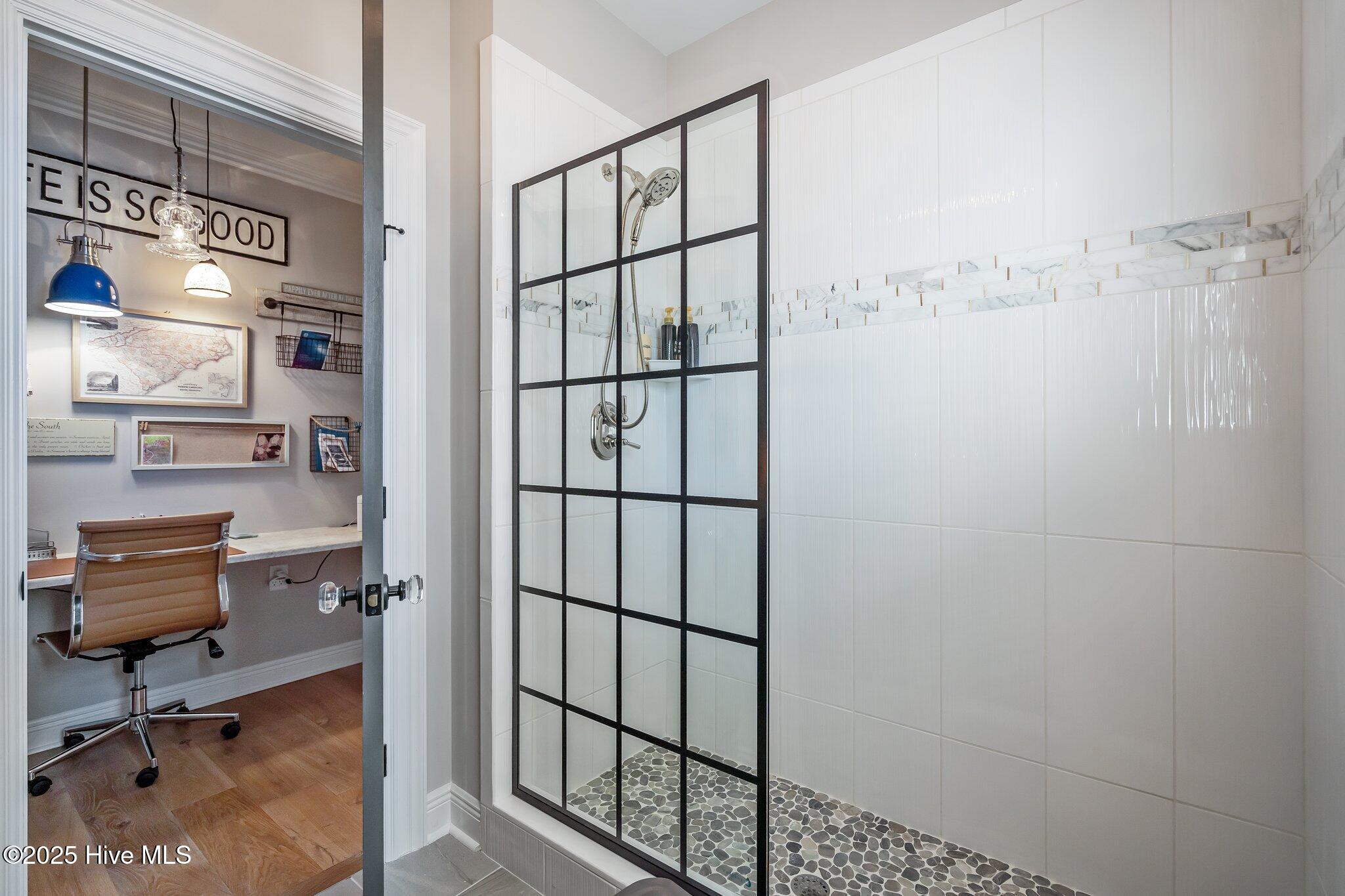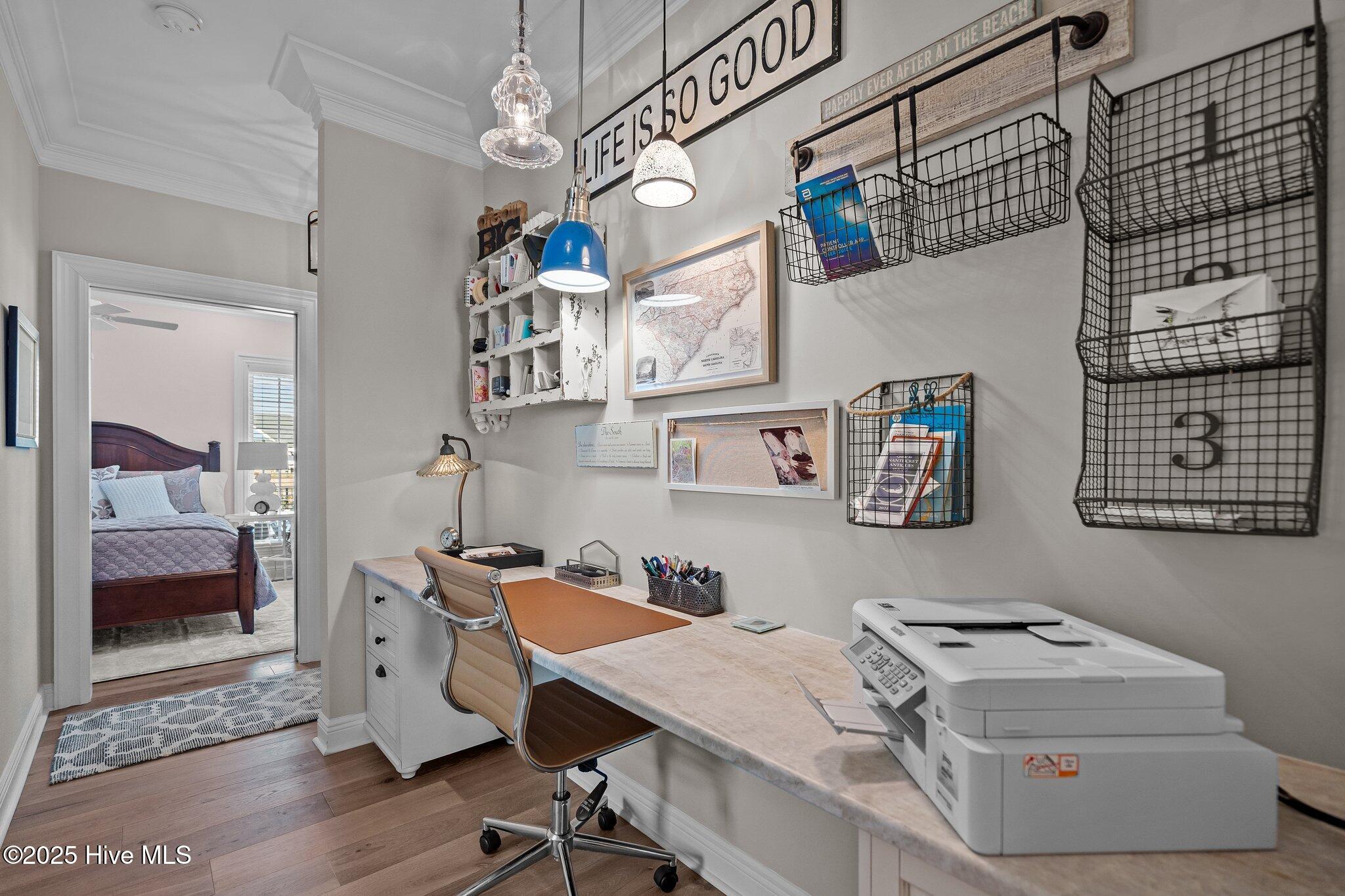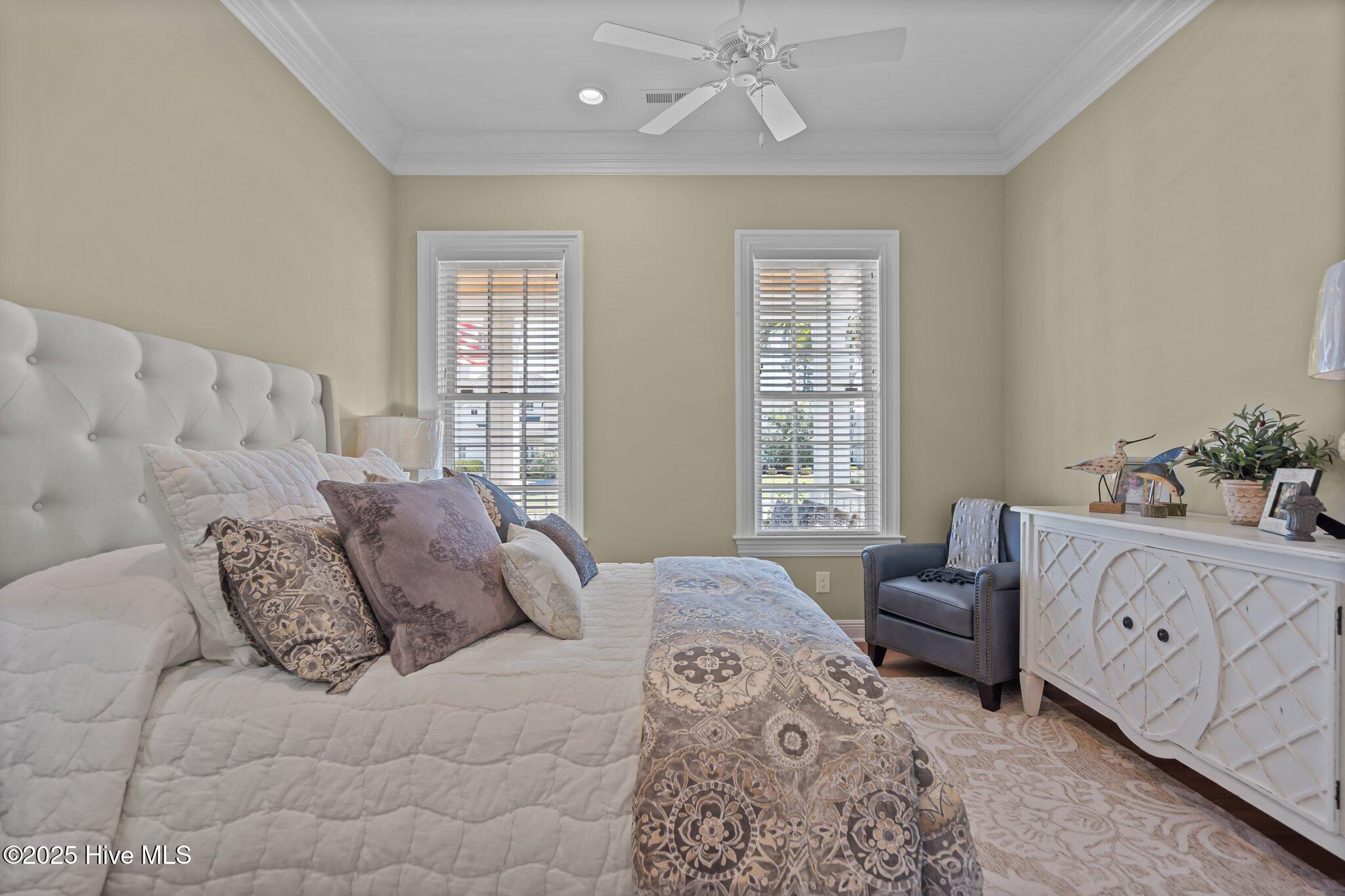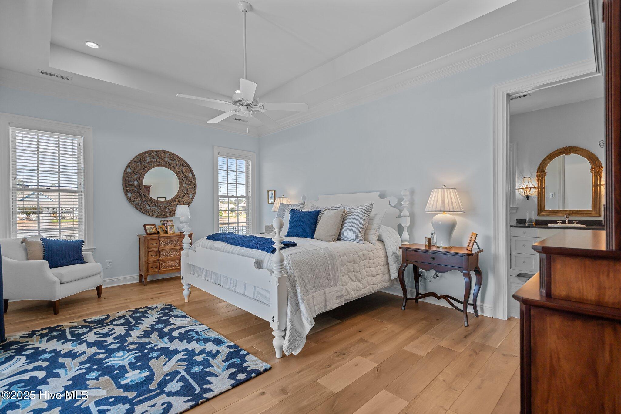 This Southern Colonial masterpiece built by Bell Custom Homes offers unparalleled luxury and craftsmanship on a premium .29-acre pondfront lot. Spanning 2,878 sqft, this 4 bedroom, 3.5 bath home is designed for elegance and comfort. A grand covered front porch sets the tone for refined living. Inside, 8' doors, soaring 10' ceilings, and rich engineered hardwoods create a warm yet sophisticated ambiance. The chef's kitchen is a showstopper, boasting quartz countertops, a massive island, and top-tier appliances: 36'' KitchenAid 6-burner gas cooktop with Pro Vent hood, GE Monogram wall oven, GE Advantium microwave, and Bosch dishwasher. A 6x8.5 walk-in pantry with custom shelving, silent-close drawers, and illuminated glass cabinetry offers exceptional storage. The Scotsman Brilliance ice maker ensures cocktails are always ready for sunset views over 118ft of serene pond frontage from your covered back deck. The living room impresses with 18' vaulted ceilings, a gas fireplace, and two sets of sliding glass doors, seamlessly merging indoor and outdoor living. Step outside to a resort-style retreat featuring a heated saltwater pool, expansive deck, and luxury pool house with an enclosed outdoor shower. The first-floor master suite offers breathtaking pond views, a spa-like en suite with heated porcelain floors, a frameless glass shower, dual marble vanities, and a custom walk-in closet with a center island. Two guest bedrooms, a second full bath, and a dedicated office add comfort and convenience. Upstairs, a bonus room/4th bedroom with a private bath offers flexibility. Additional features include a finished two-car garage, custom drop zone, elegant laundry room, Navien tankless water heater, and fully fenced backyard. Located in Brunswick Forest, enjoy premier amenities: a fitness center, three pools (one indoor), tennis, pickleball, kayaking, and the Cape Fear National Golf Course. A rare opportunity for luxury—schedule your private tour today!
