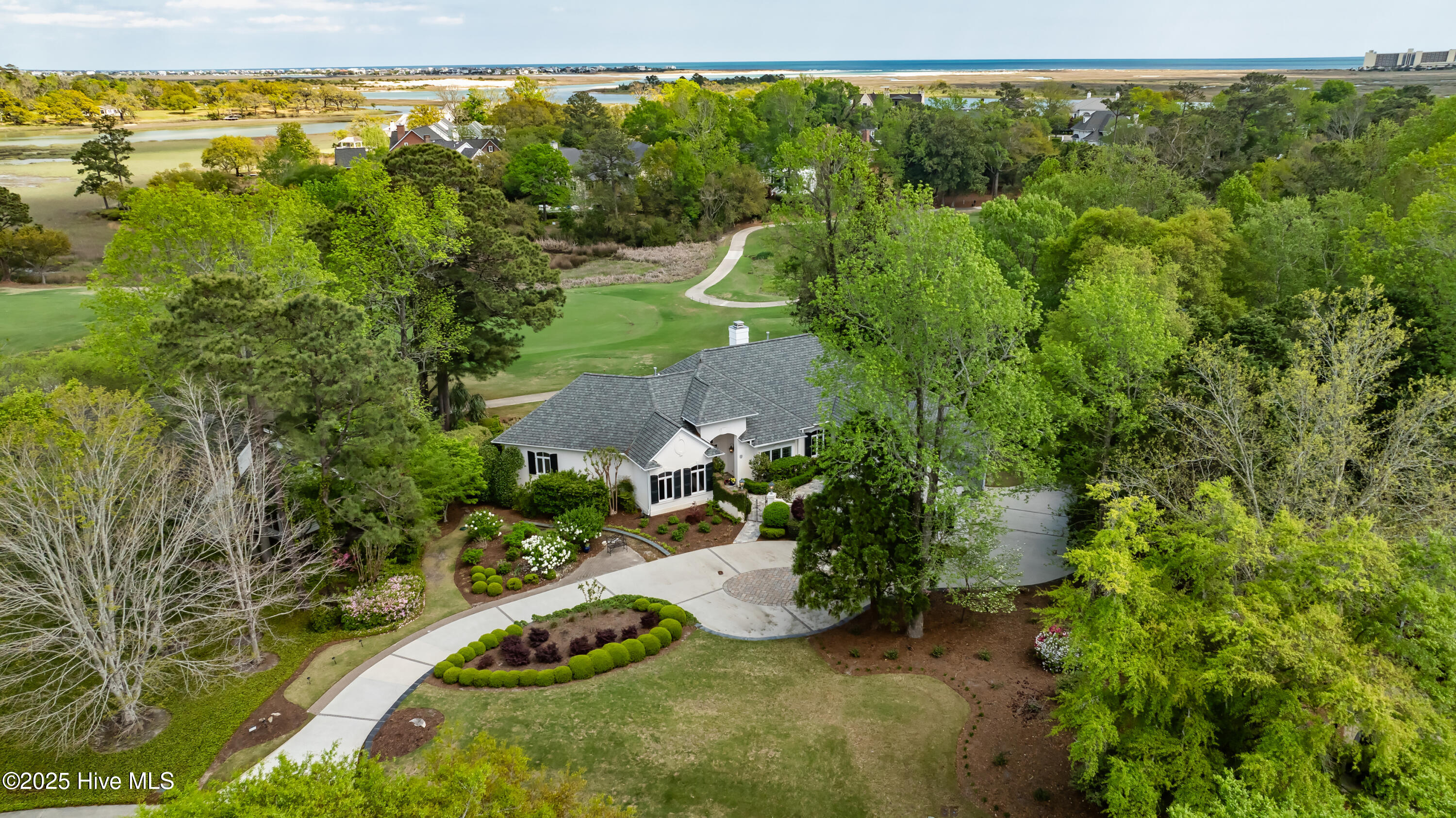 This home was crafted with character and offers the best of coastal and country club living, nestled within the gated community of Landfall. Situated directly on the Ocean #5 hole, this exceptional property has water views of Howe Creek, just off the Intracoastal Waterway, offering a serene coastal backdrop. This traditional home features 3,524 square feet of living space, perfect for families and entertaining. Unlike many homes in Landfall, this property offers a detached three-car garage, providing ample space for vehicles and storage, with the added benefit of a private au pair suite above. This suite is separate from the main home, offering ultimate privacy. Inside, you'll appreciate the blend of classic elegance and timeless updates. The kitchen was remodeled in 2022, complete with marble countertops. The home features a true ''his and hers'' bathroom setup with 2 master bathrooms. Both master bathrooms underwent a stunning renovation in 2024. Enjoy the convenience of a tankless water heater (installed 2022) and the ease of natural gas hookup. Living in Landfall provides access to exceptional amenities and a secure, gated environment. Imagine relaxing with picturesque water views and enjoying the beauty of the surrounding golf course. Landfall has the best proximity to Wrightsville Beach. It is located minutes from the most desirable shopping and dining in Wilmington.