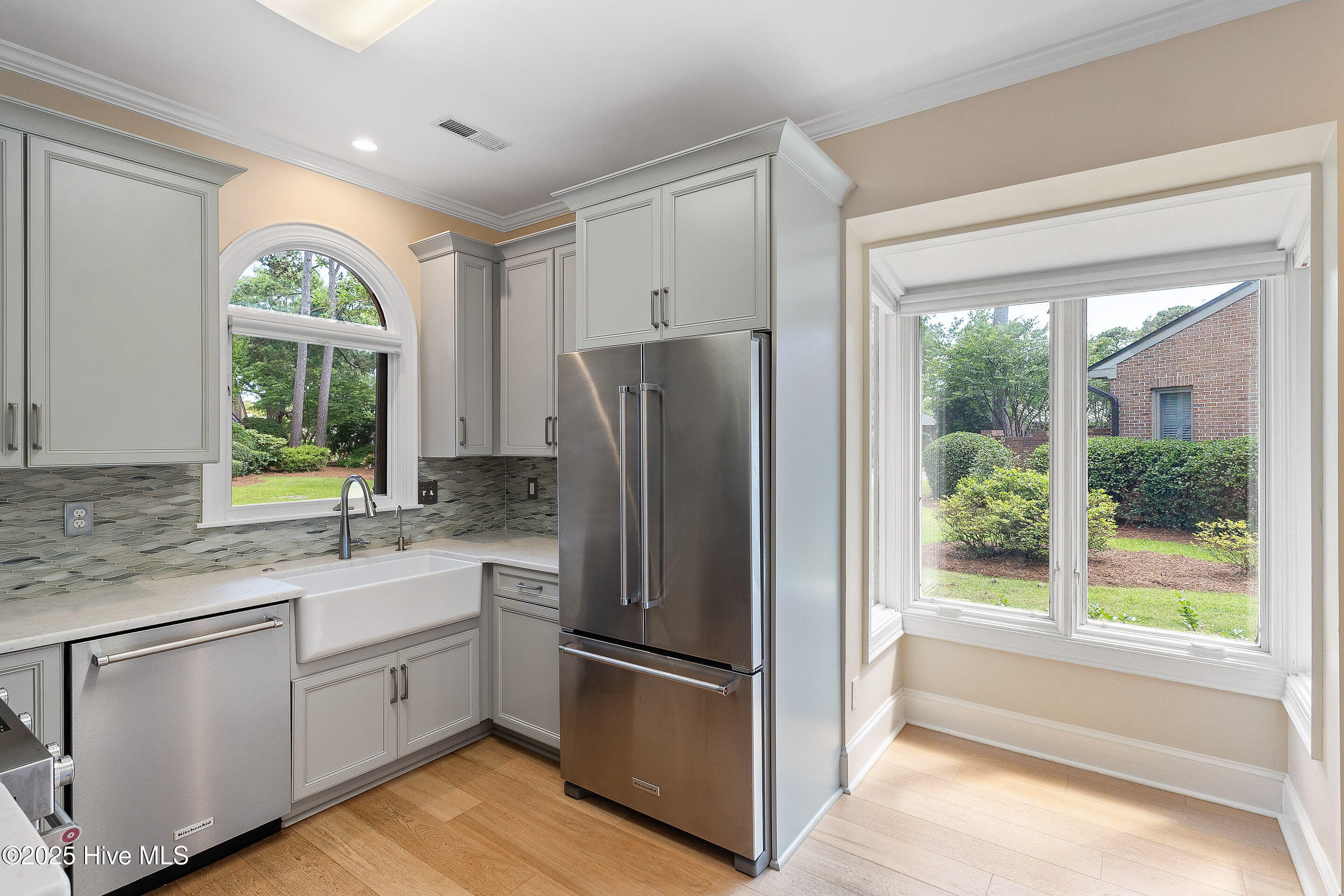 Elegantly Updated 2-Bedroom Duplex in the Prestigious Colony Club at Landfall Experience refined coastal living in this beautifully updated 2-bedroom, 2-bathroom duplex, nestled within the exclusive Colony Club enclave of Landfall. Offering privacy, style, and an unbeatable location, this residence is a rare gem in one of Wilmington's most sought-after gated communities. The light-filled, open-concept floor plan showcases rich hardwood flooring and an impeccably renovated kitchen with quartz countertops, designer tile, custom cabinetry, and premium stainless steel appliances. Every space has been thoughtfully curated to elevate comfort and functionality. Enjoy the charm of your own private entry courtyard, and unwind on the serene backyard patio overlooking a tranquil pond—perfect for morning coffee or evening entertaining. A spacious two-car garage completes the package, with ample storage and every modern convenience in place. Just moments from upscale shopping, gourmet dining, the Country Club of Landfall, and the white sands of Wrightsville Beach, this move-in-ready duplex offers effortless luxury in a premier location.