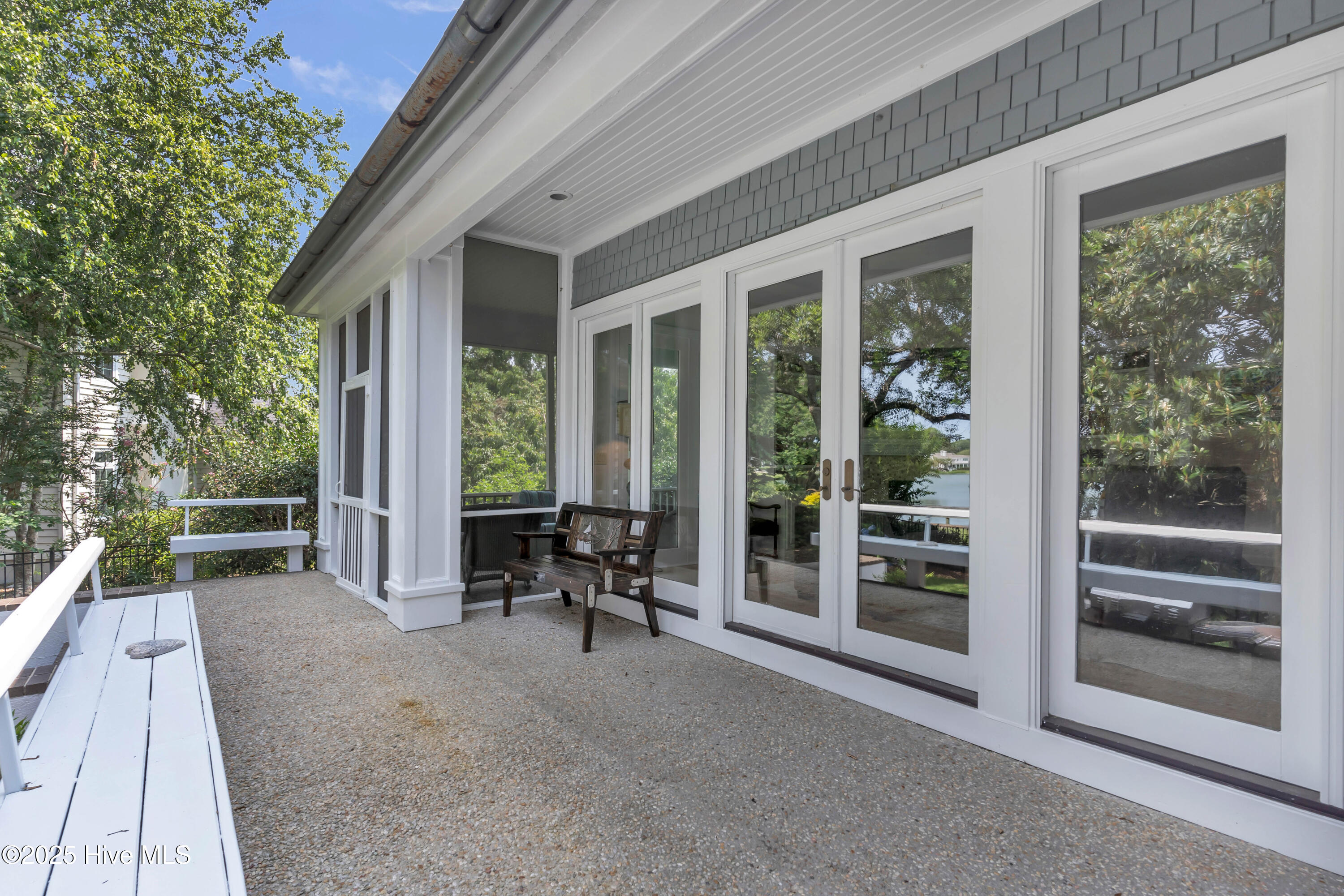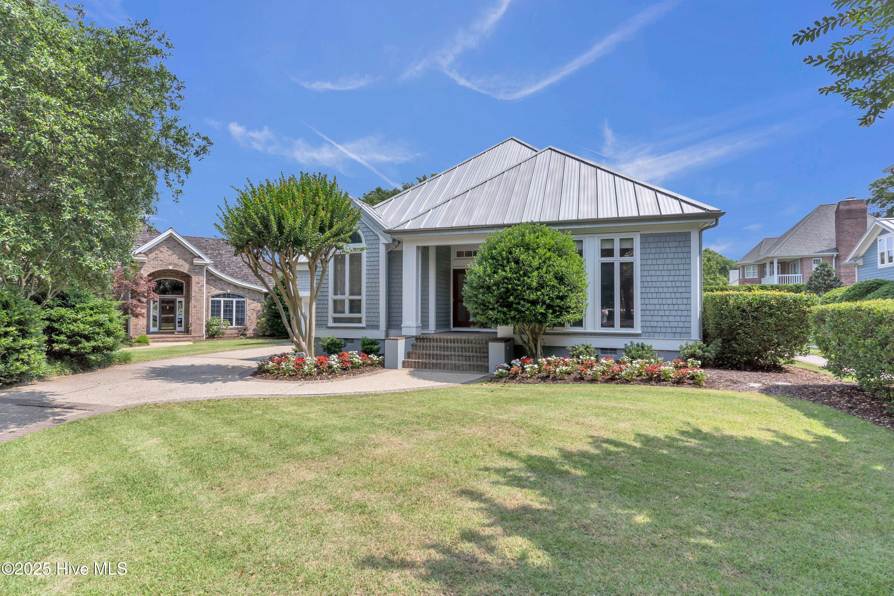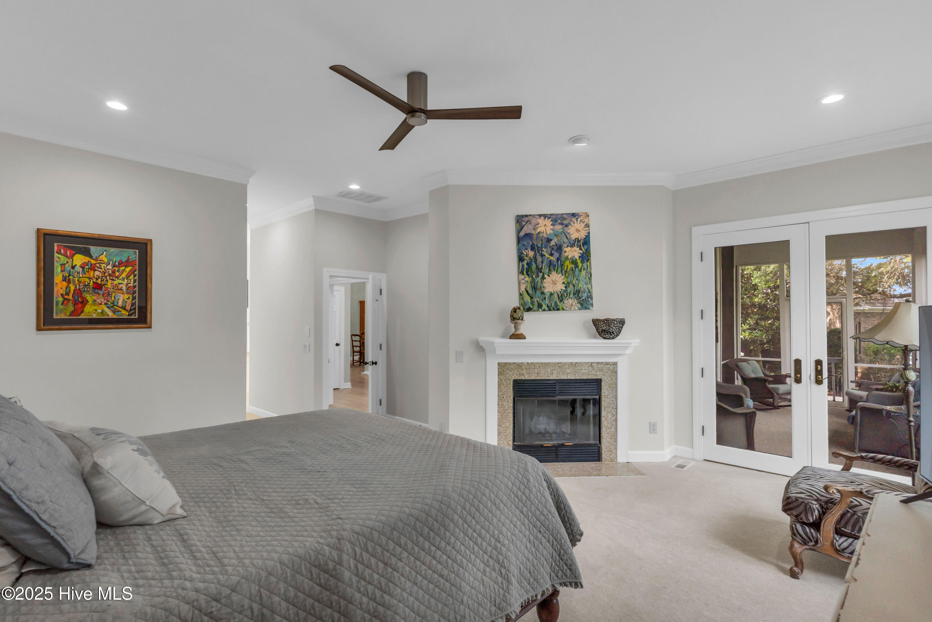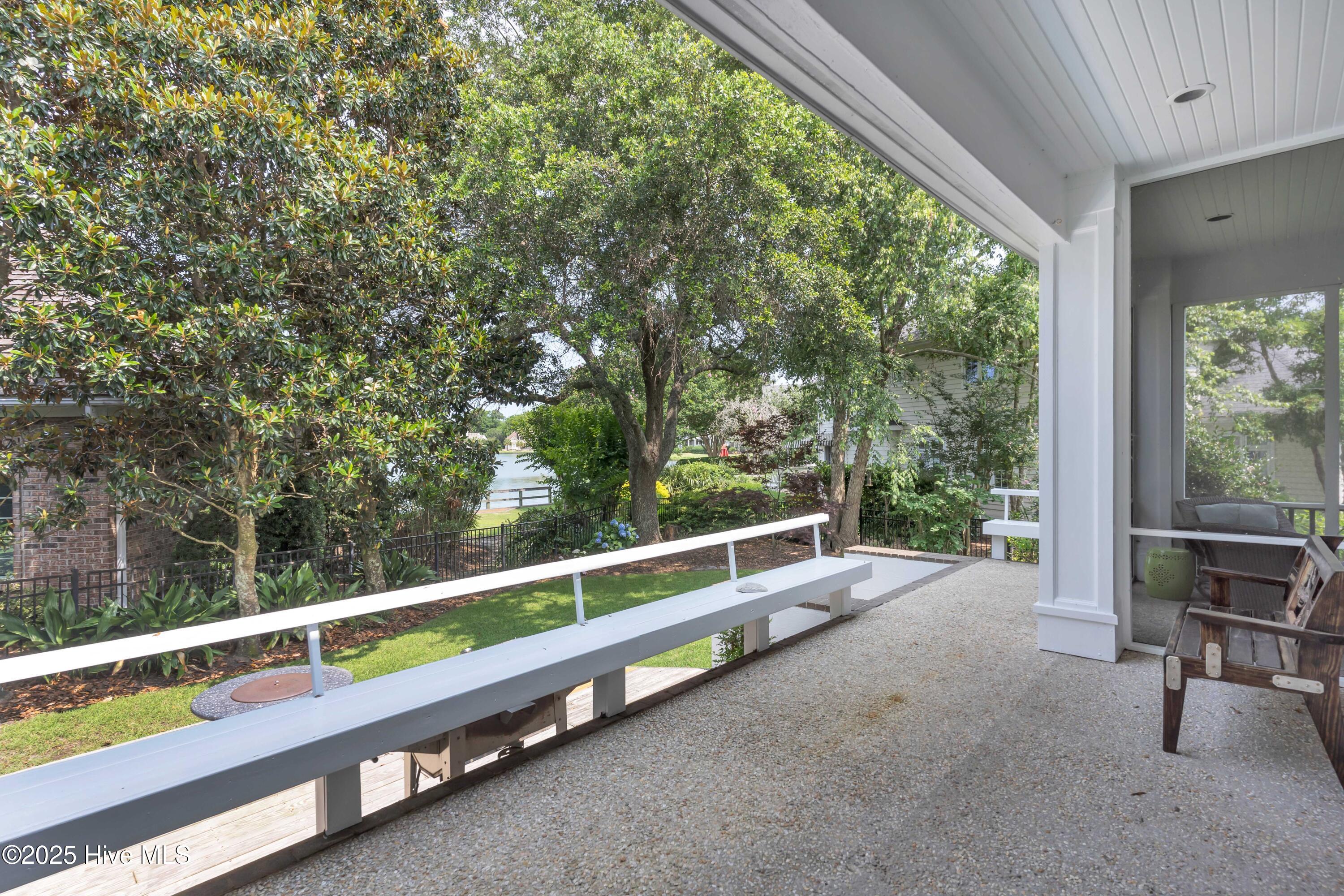 Welcome to Lakeside Villas, located within the prestigious gated community of Landfall. This beautifully updated home offers convenient one-level living with 3 spacious bedrooms, 2.5 bathrooms, and a versatile bonus room above the garage. The inviting living room features a wall of French doors that flood the space with natural light and offer lovely views, along with built-in shelving flanking a stylish tiled fireplace. The adjacent dining room is ideal for formal gatherings, while the kitchen offers a sunny breakfast nook for more casual meals. A large center island with cooktop, double wall ovens, and abundant cabinetry enhance the bright and airy kitchen. The owner's suite is a serene retreat with its own fireplace and private access to the screened porch. The spa-inspired ensuite bath includes double vanities, a soaking tub, a separate glass-enclosed shower, and a generous walk-in closet. Two additional bedrooms, both spacious and filled with natural light, each feature walk-in closets and share a well-appointed bathroom. Upstairs, the bonus room provides flexible space for a home office, gym, or playroom. Enjoy peaceful mornings or relaxing evenings on the screened porch or the deck, which offers tranquil, partial views of Dye Lake. Lakeside Villas' HOA maintains the yard, offering a truly low-maintenance lifestyle. Ideally situated off Pembroke Jones Drive, the home is close to both the Eastwood Gate and the Drysdale entrance and Sports Center. Community amenities include scenic parks, playgrounds, ball fields, miles of nature trails, picturesque lakes, and hundreds of acres of preserved natural areas.