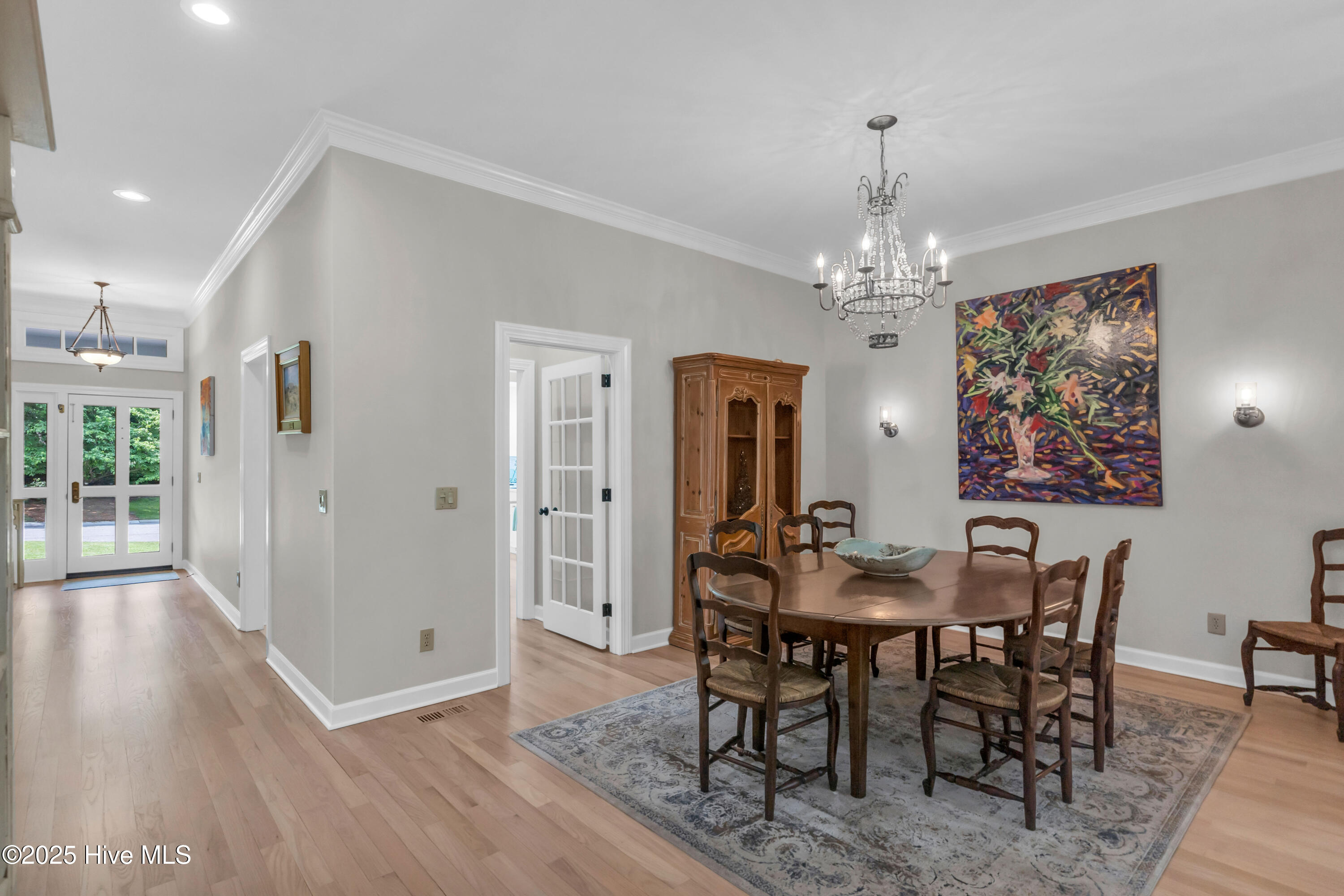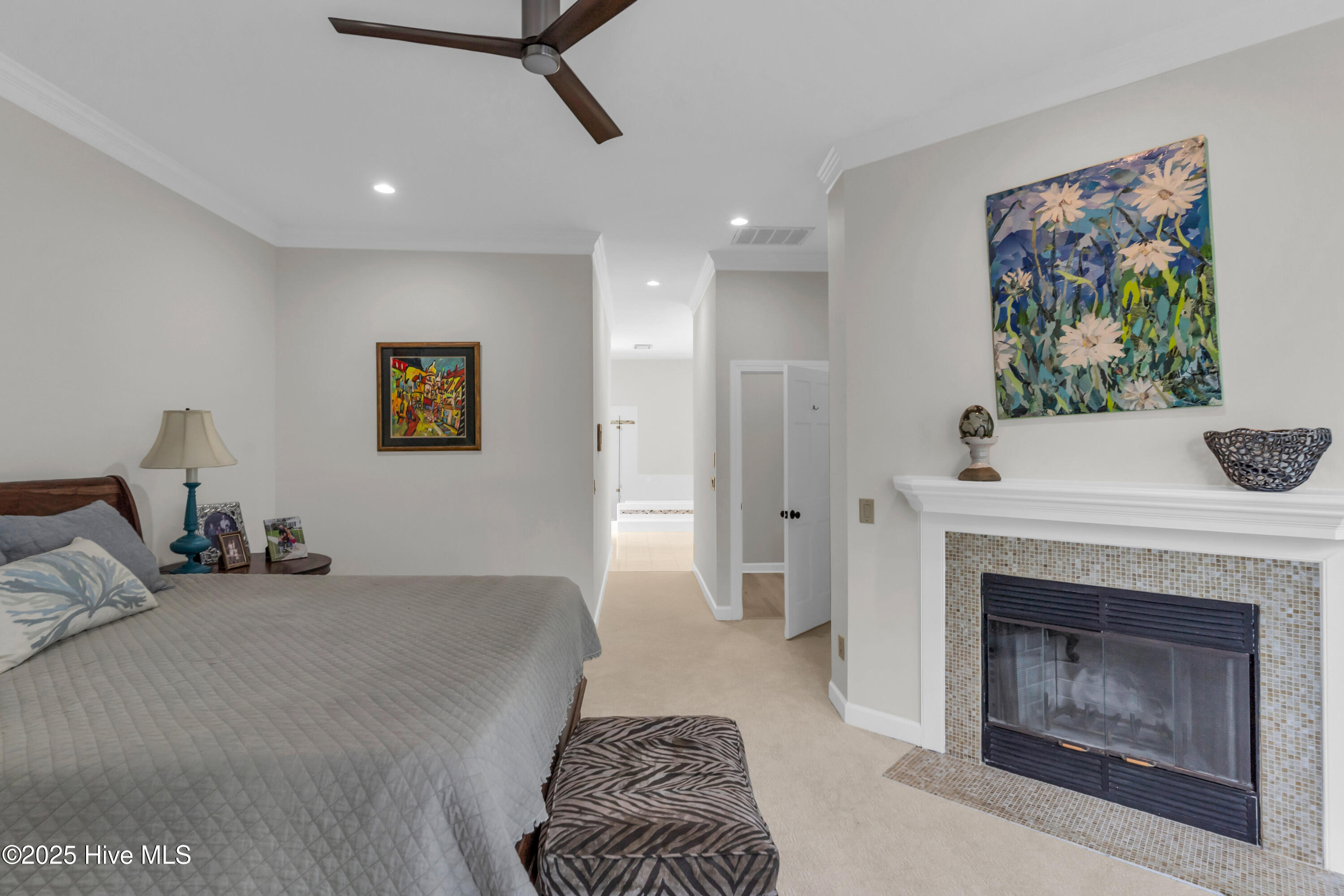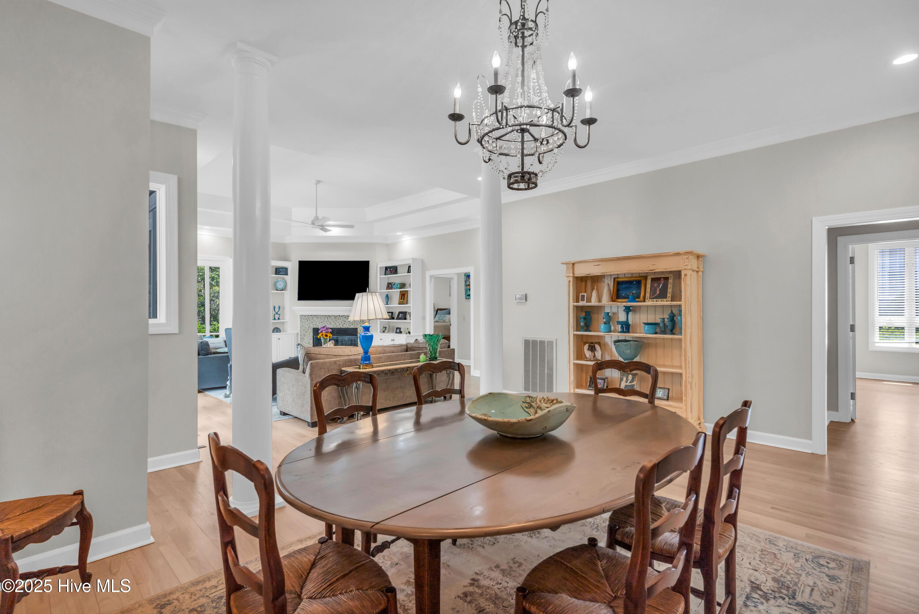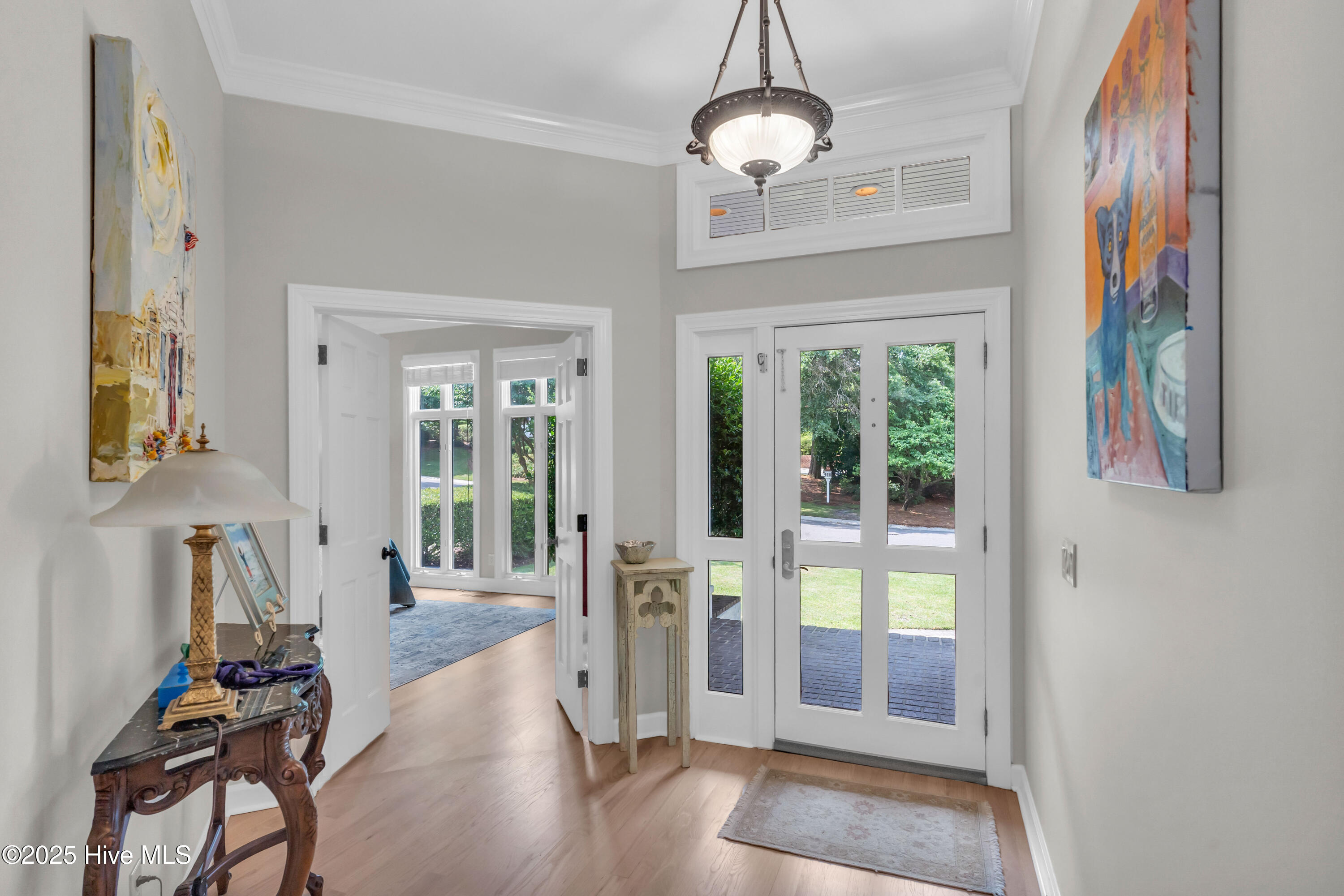 Welcome to Lakeside Villas, located within the prestigious gated community of Landfall. This beautifully updated home offers convenient one-level living with 3 spacious bedrooms, 2.5 bathrooms, and a versatile bonus room above the garage. The inviting living room features a wall of French doors that flood the space with natural light and offer lovely views, along with built-in shelving flanking a stylish tiled fireplace. The adjacent dining room is ideal for formal gatherings, while the kitchen offers a sunny breakfast nook for more casual meals. A large center island with cooktop, double wall ovens, and abundant cabinetry enhance the bright and airy kitchen. The owner's suite is a serene retreat with its own fireplace and private access to the screened porch. The spa-inspired ensuite bath includes double vanities, a soaking tub, a separate glass-enclosed shower, and a generous walk-in closet. Two additional bedrooms, both spacious and filled with natural light, each feature walk-in closets and share a well-appointed bathroom. Upstairs, the bonus room provides flexible space for a home office, gym, or playroom. Enjoy peaceful mornings or relaxing evenings on the screened porch or the deck, which offers tranquil, partial views of Dye Lake. Lakeside Villas' HOA maintains the yard, offering a truly low-maintenance lifestyle. Ideally situated off Pembroke Jones Drive, the home is close to both the Eastwood Gate and the Drysdale entrance and Sports Center. Community amenities include scenic parks, playgrounds, ball fields, miles of nature trails, picturesque lakes, and hundreds of acres of preserved natural areas.