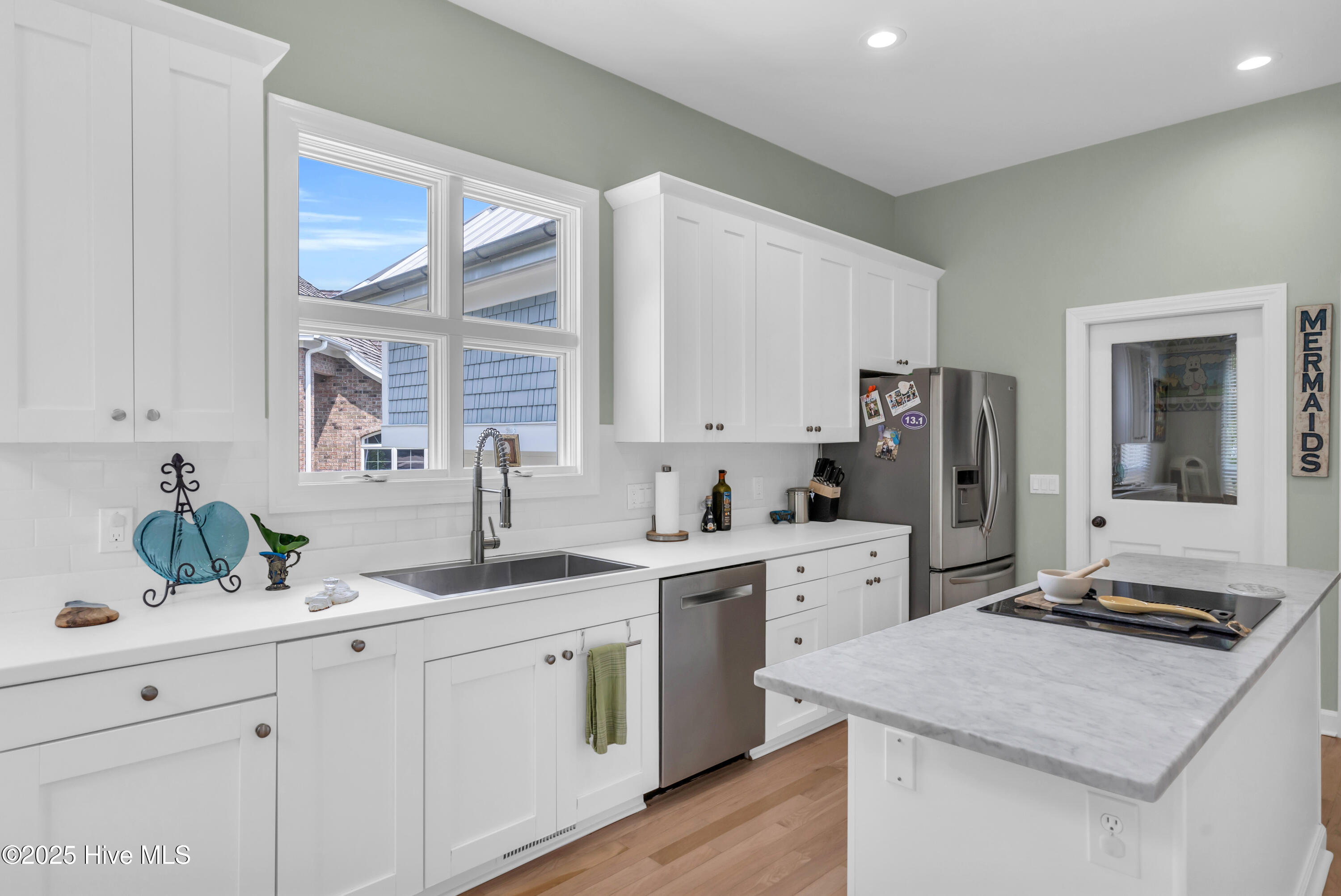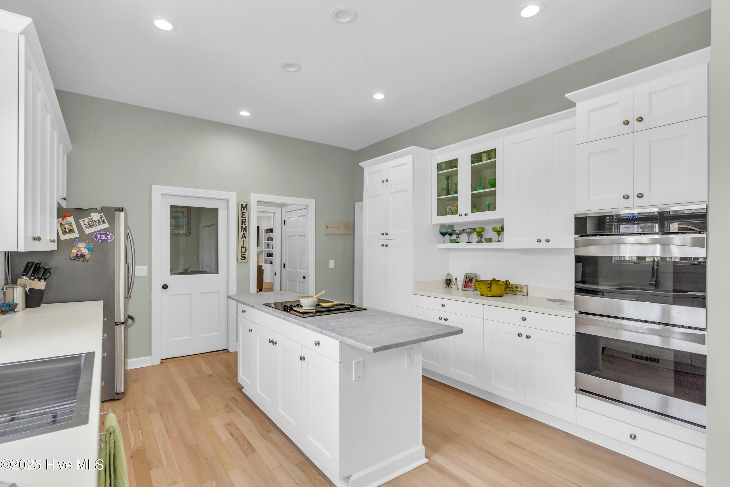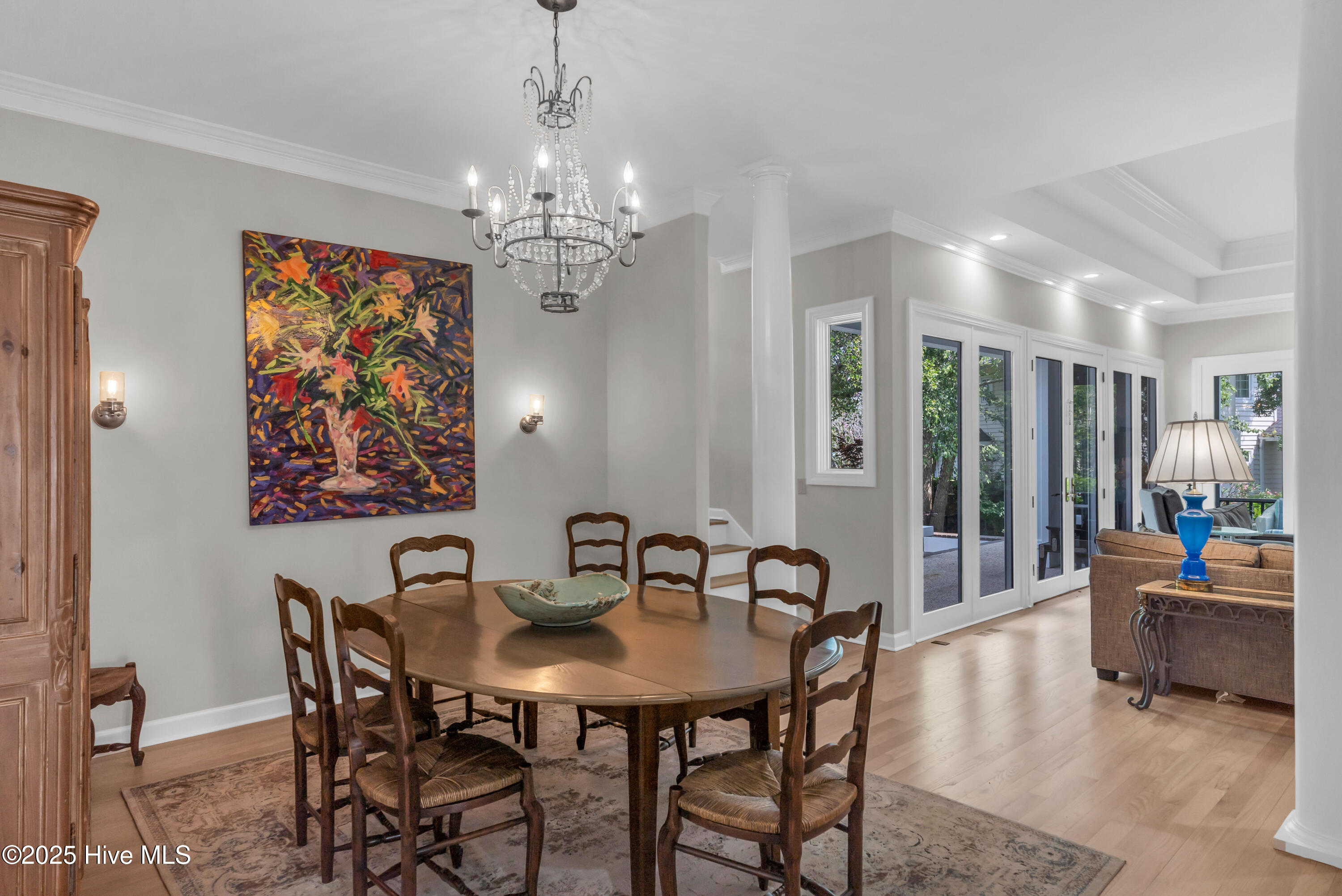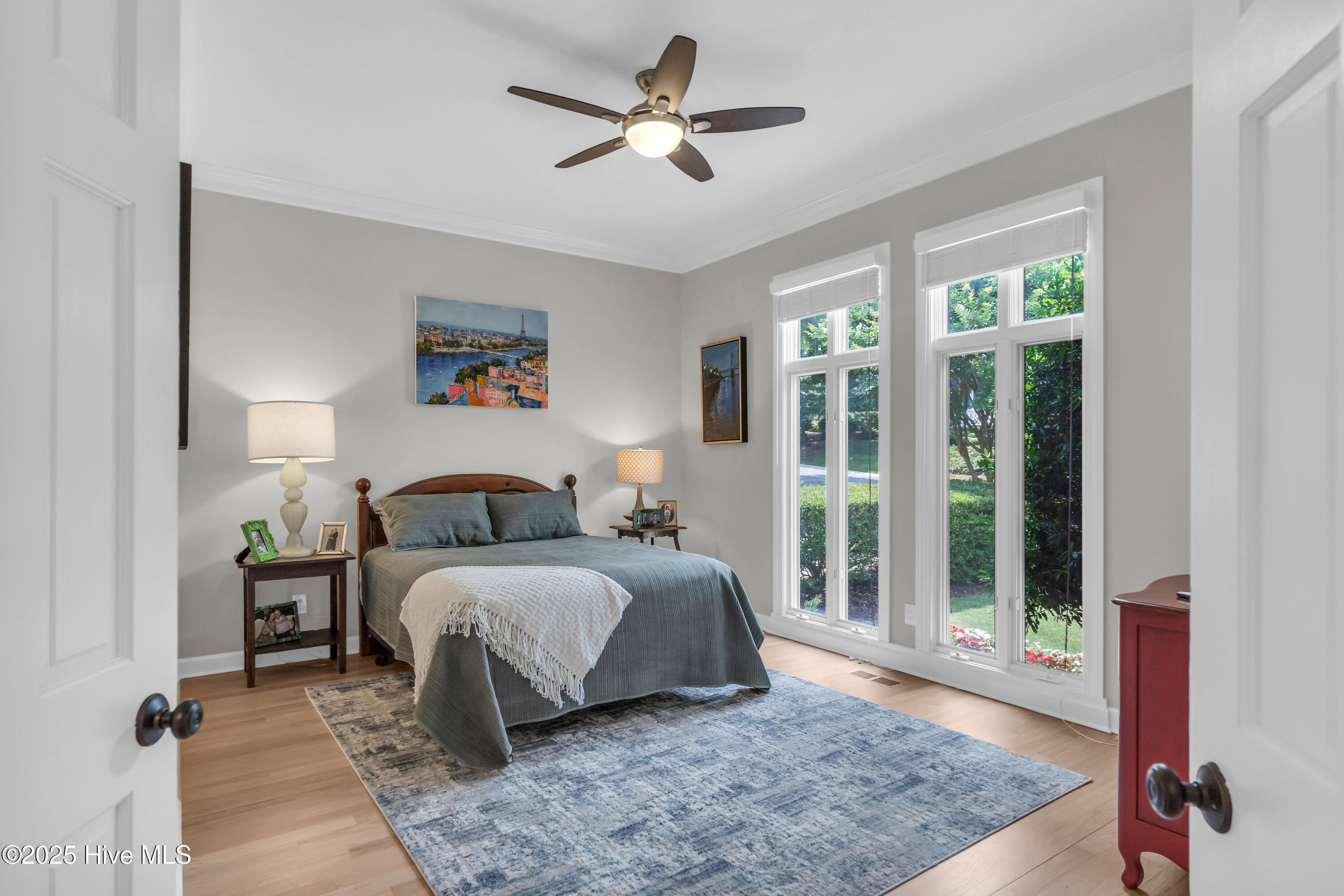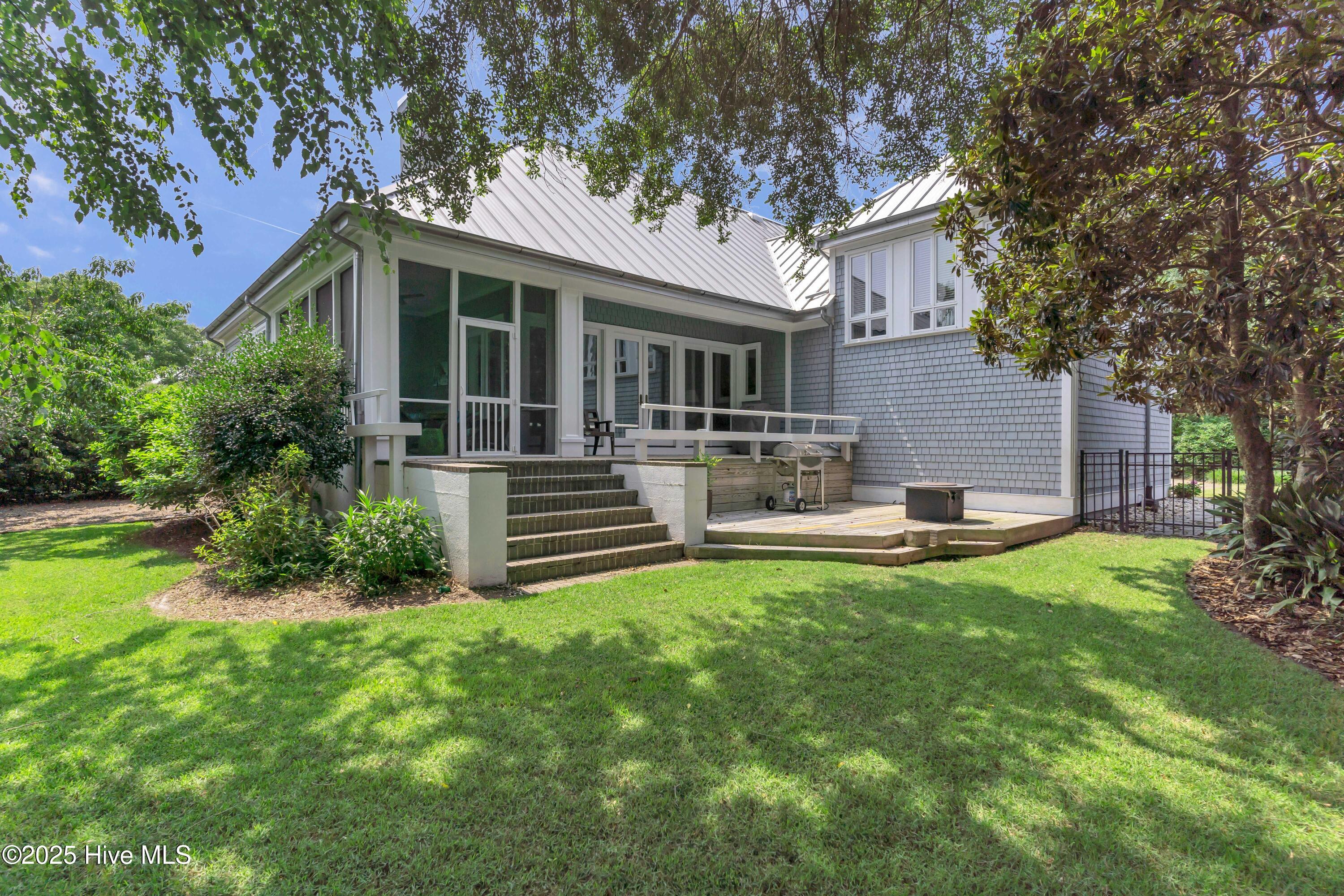 Welcome to Lakeside Villas, located within the prestigious gated community of Landfall. This beautifully updated home offers convenient one-level living with 3 spacious bedrooms, 2.5 bathrooms, and a versatile bonus room above the garage. The inviting living room features a wall of French doors that flood the space with natural light and offer lovely views, along with built-in shelving flanking a stylish tiled fireplace. The adjacent dining room is ideal for formal gatherings, while the kitchen offers a sunny breakfast nook for more casual meals. A large center island with cooktop, double wall ovens, and abundant cabinetry enhance the bright and airy kitchen. The owner's suite is a serene retreat with its own fireplace and private access to the screened porch. The spa-inspired ensuite bath includes double vanities, a soaking tub, a separate glass-enclosed shower, and a generous walk-in closet. Two additional bedrooms, both spacious and filled with natural light, each feature walk-in closets and share a well-appointed bathroom. Upstairs, the bonus room provides flexible space for a home office, gym, or playroom. Enjoy peaceful mornings or relaxing evenings on the screened porch or the deck, which offers tranquil, partial views of Dye Lake. Lakeside Villas' HOA maintains the yard, offering a truly low-maintenance lifestyle. Ideally situated off Pembroke Jones Drive, the home is close to both the Eastwood Gate and the Drysdale entrance and Sports Center. Community amenities include scenic parks, playgrounds, ball fields, miles of nature trails, picturesque lakes, and hundreds of acres of preserved natural areas.