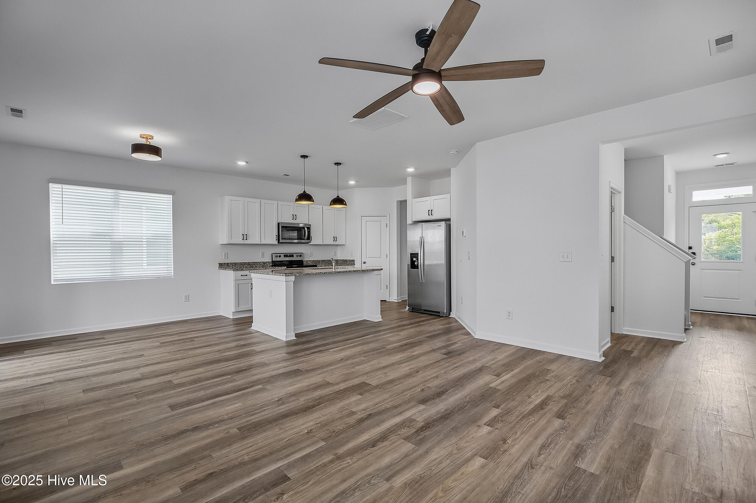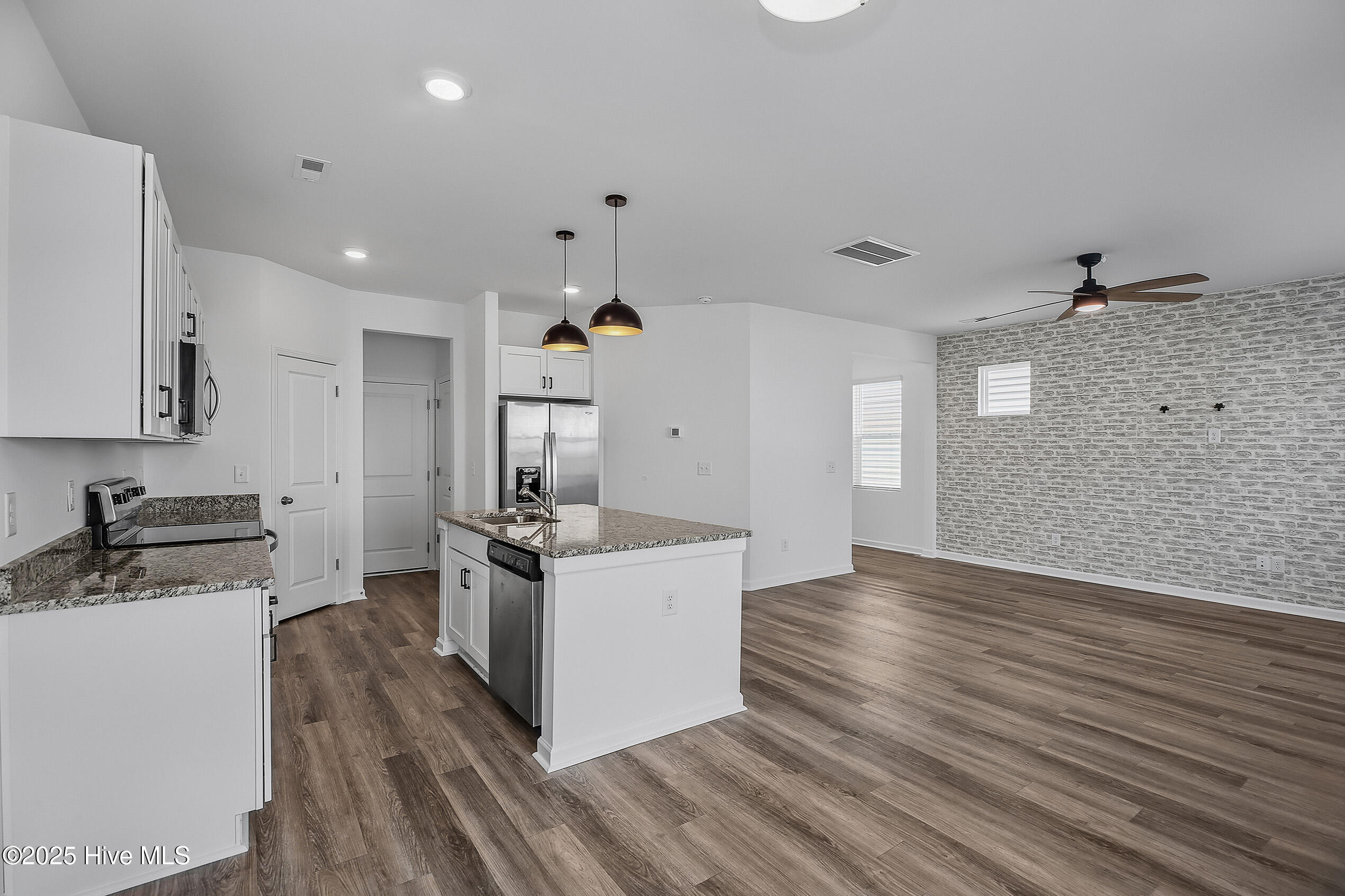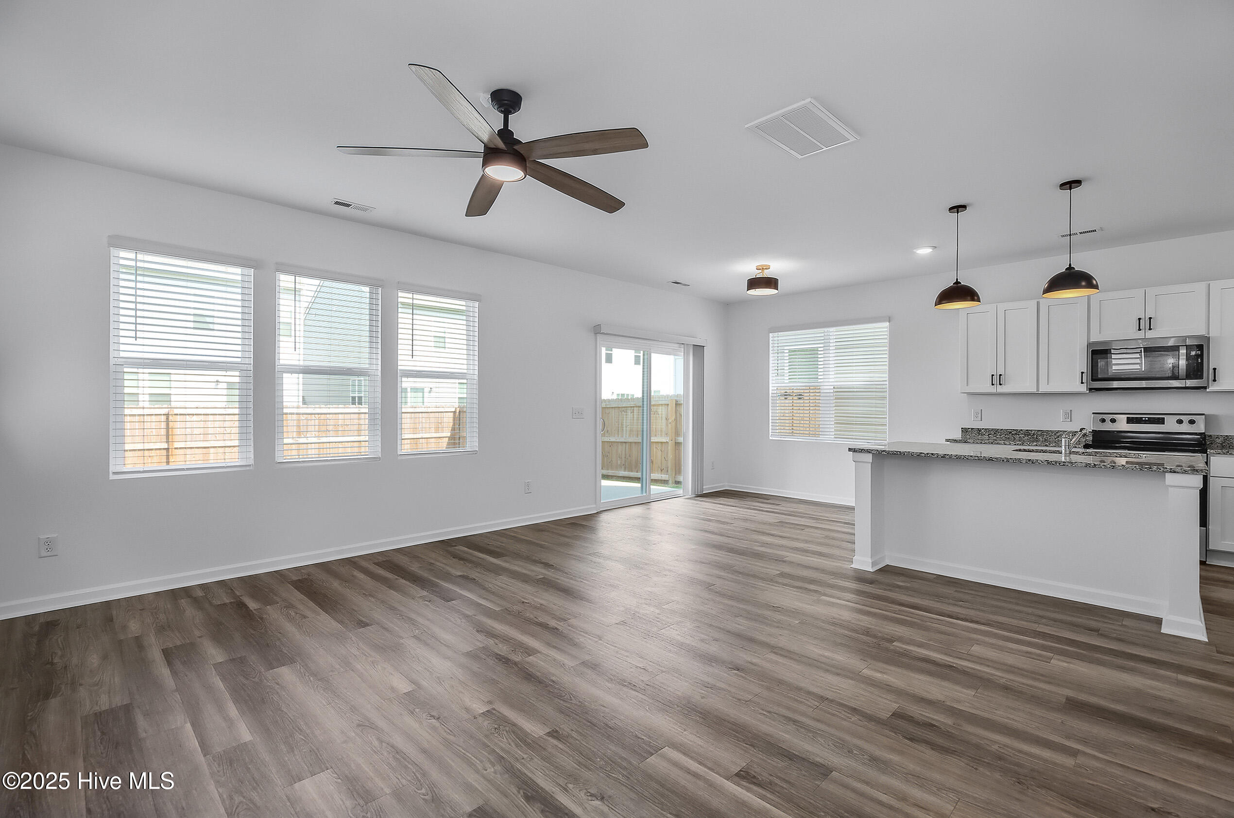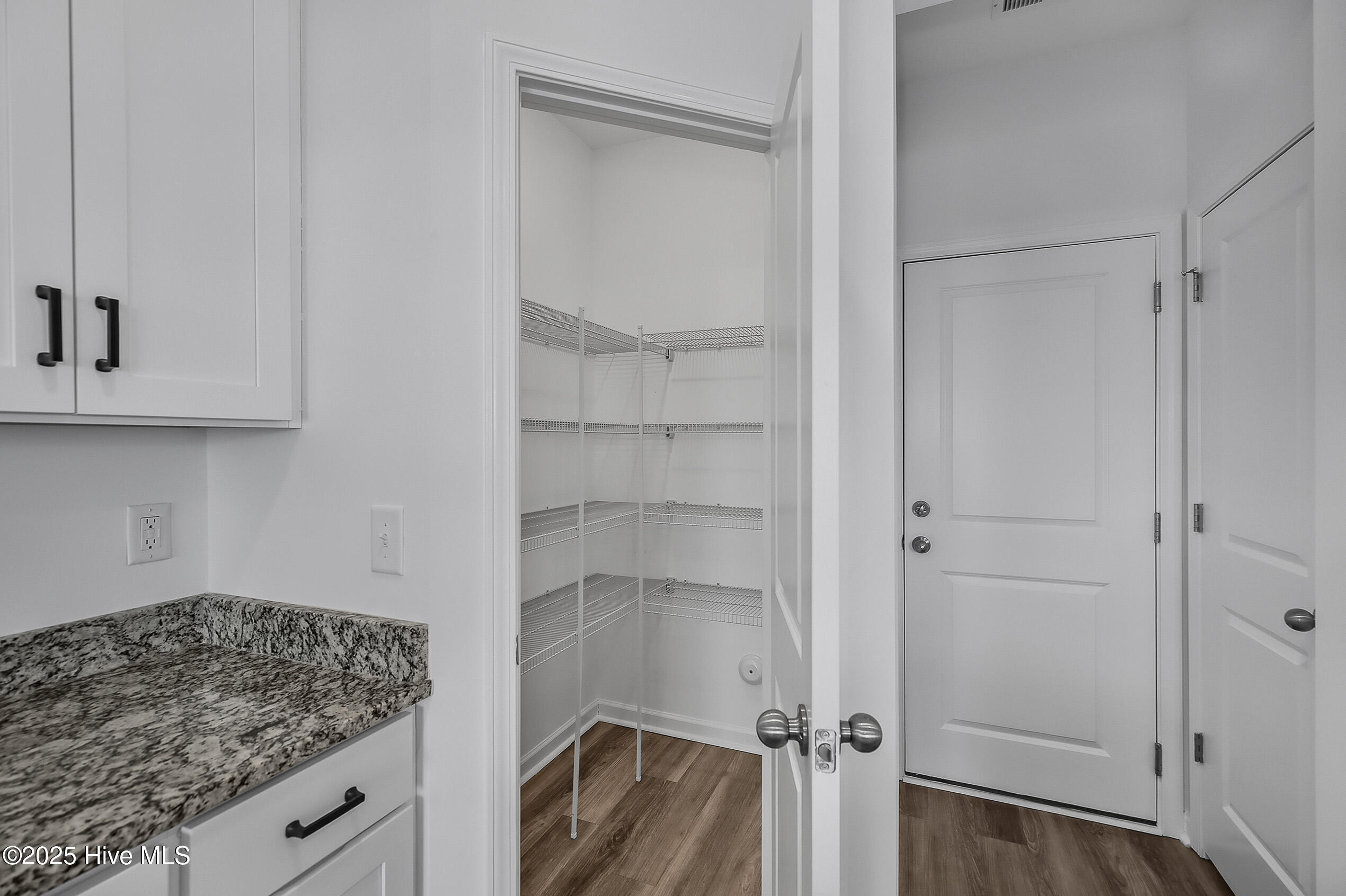 You will love this move in ready home in Clarendon Park! The curb appeal is superb, enhanced by its manicured landscape, low maintenance exterior and attractive architectural accents of differing textures and stacked stone. Quality construction by McKee Homes, this open-designed floorplan is accentuated by its wide plank flooring and a muted color palette. The kitchen boasts high-quality stainless appliances, granite countertops, custom white cabinetry and a sizable pantry. The upstairs primary suite is a retreat of its own - offering abundant windows and a walk-in closet; the primary bathroom encompasses a double vanity, also has a walk-in closet, and a shower with glass showers. Two additional bedrooms are well appointed and have ample closet space. These bedrooms share the hallway bathroom. Also upstairs, a spacious loft can serve as a den, yoga studio or playroom. Other important features include a laundry room, 2-car garage, storage, patio and a large fenced backyard. Clarendon Park is conveniently located near ILM and has quick access to MLK Parkway. The neighborhood's pedestrian friendly sidewalks are a bonus. Welcome home!
