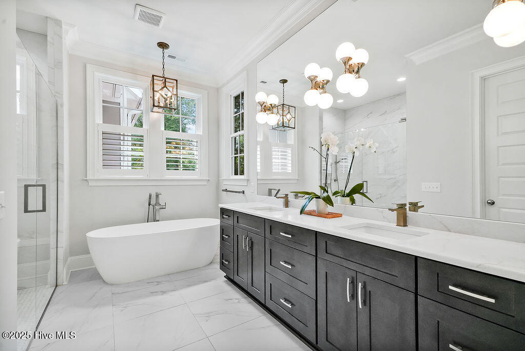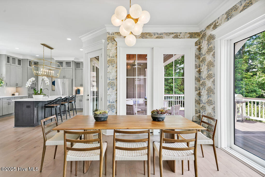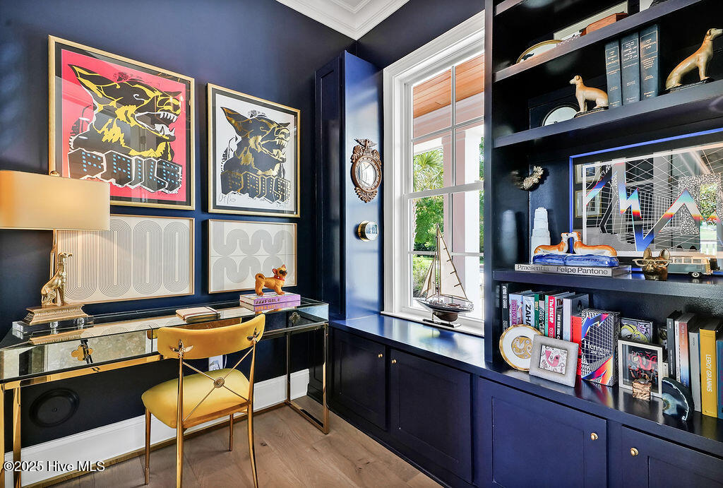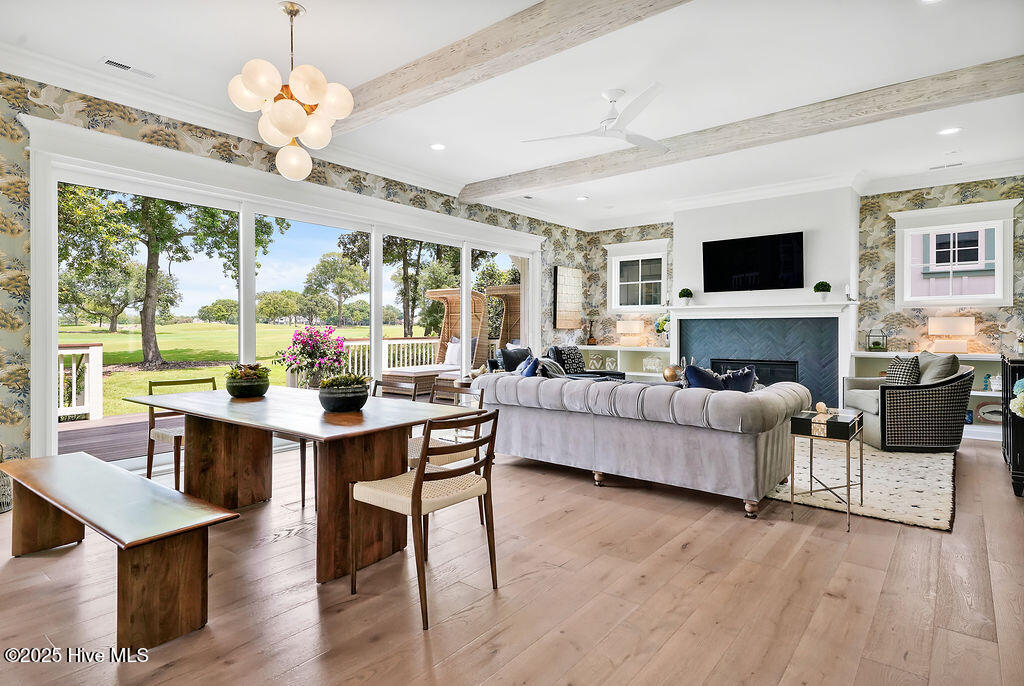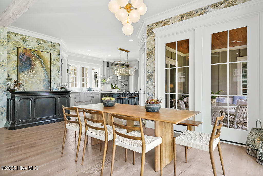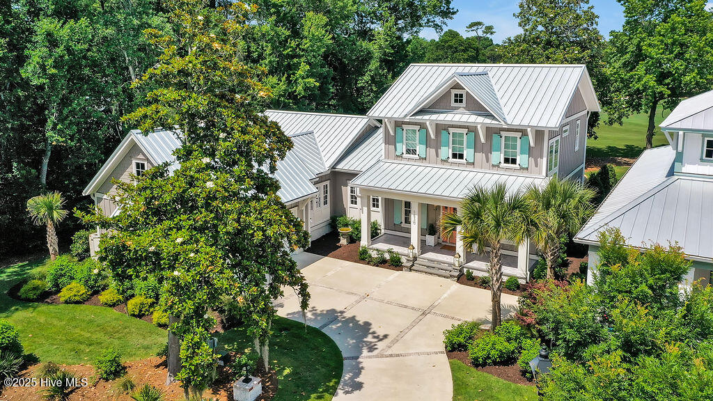 This recently completed Landfall residence perfectly captures the art of living beautifully. Sold completely furnished, this refined home embodies sophisticated coastal living at its finest. At the heart of this masterpiece lies a commitment to exceptional craftsmanship and meticulous attention to detail. Inside, you'll find high ceilings, wide-plank engineered French oak flooring, detailed crown moldings, and rich architectural accents throughout. The chef's kitchen and spacious great room flow effortlessly, while expansive telescoping glass doors allow the large outdoor space to instantly become part of the luxurious living experience. The home is perfectly nestled on a private, well landscaped, golf course lot, thereby giving incredibly expansive views. High-end Thermador appliances, quartz countertops, and spa-like bathrooms with seamless glass showers elevate every corner of the home. Custom millwork, copper detailing, authentic working shutters, meticulously curated finishes and light fixtures reflect a well-designed home that creates a warm and inviting aesthetic. Additional highlights include a whole-house generator, tankless water heater, and upgraded exterior paint for long-lasting beauty and durability. Through intentional design and commitment to balancing aesthetics with function, this home is a timeless and enduring sanctuary.