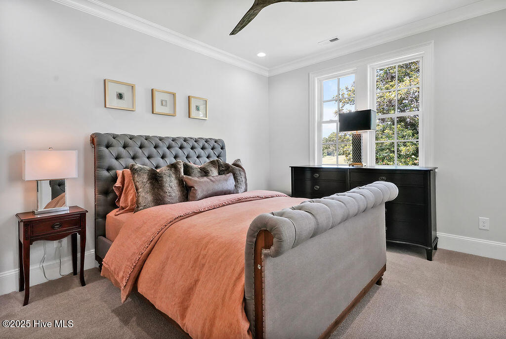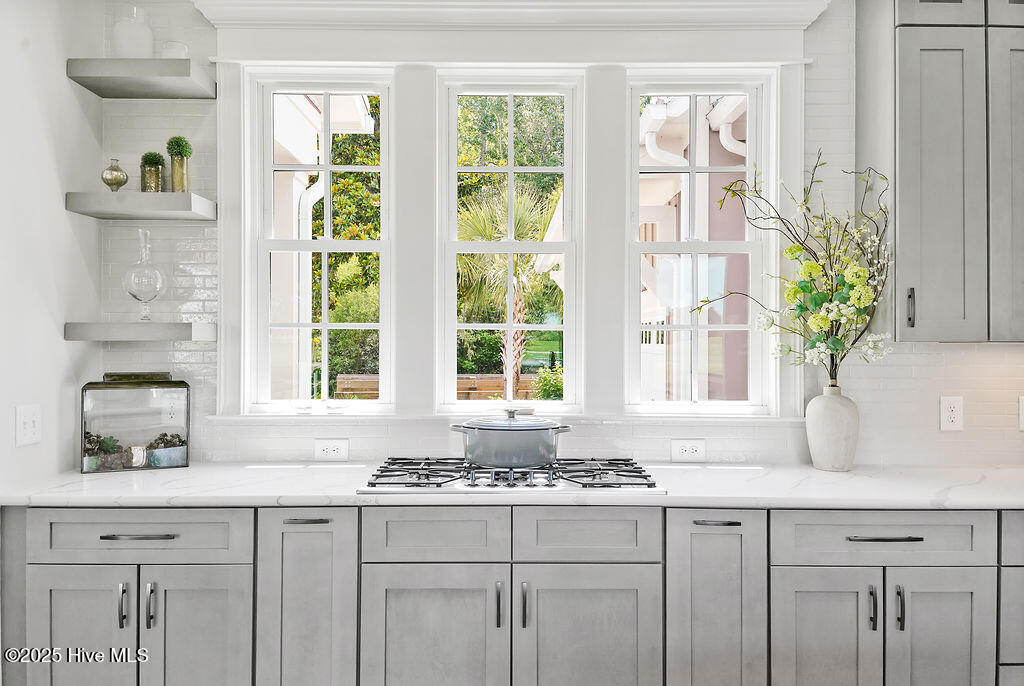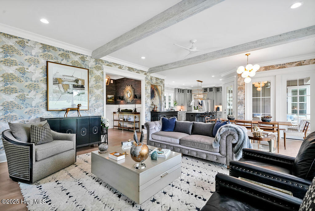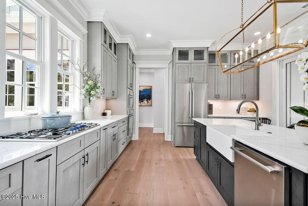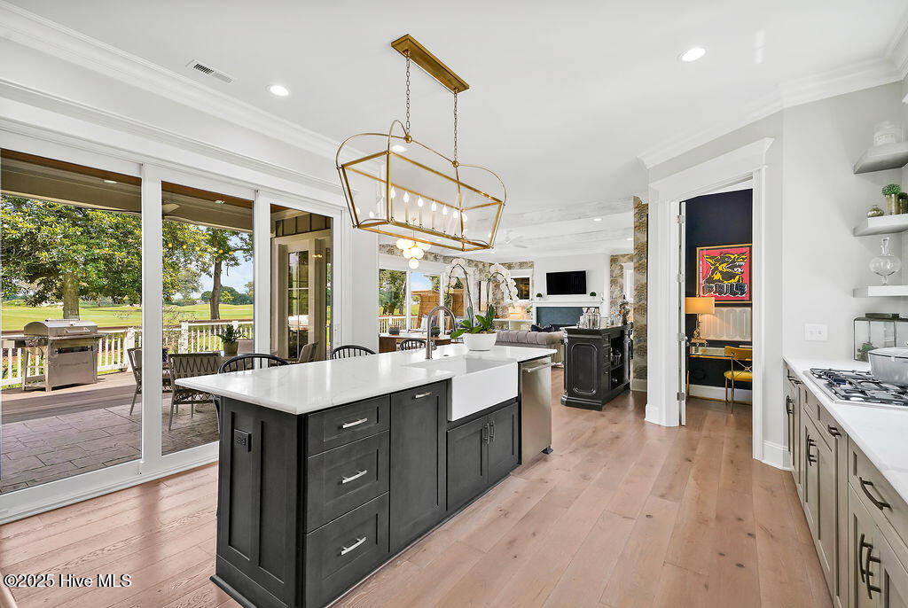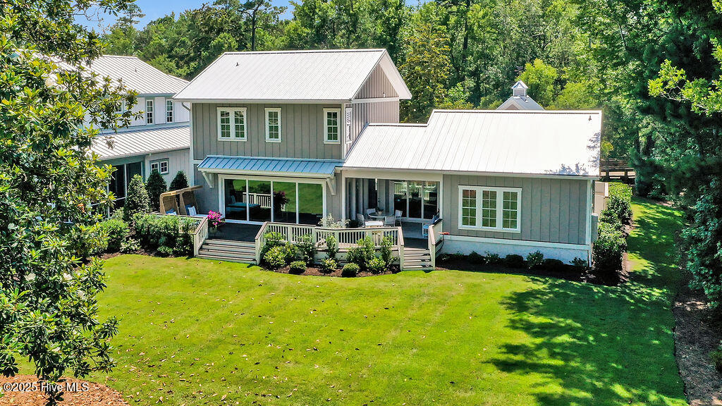 This recently completed Landfall residence perfectly captures the art of living beautifully. Sold completely furnished, this refined home embodies sophisticated coastal living at its finest. At the heart of this masterpiece lies a commitment to exceptional craftsmanship and meticulous attention to detail. Inside, you'll find high ceilings, wide-plank engineered French oak flooring, detailed crown moldings, and rich architectural accents throughout. The chef's kitchen and spacious great room flow effortlessly, while expansive telescoping glass doors allow the large outdoor space to instantly become part of the luxurious living experience. The home is perfectly nestled on a private, well landscaped, golf course lot, thereby giving incredibly expansive views. High-end Thermador appliances, quartz countertops, and spa-like bathrooms with seamless glass showers elevate every corner of the home. Custom millwork, copper detailing, authentic working shutters, meticulously curated finishes and light fixtures reflect a well-designed home that creates a warm and inviting aesthetic. Additional highlights include a whole-house generator, tankless water heater, and upgraded exterior paint for long-lasting beauty and durability. Through intentional design and commitment to balancing aesthetics with function, this home is a timeless and enduring sanctuary.