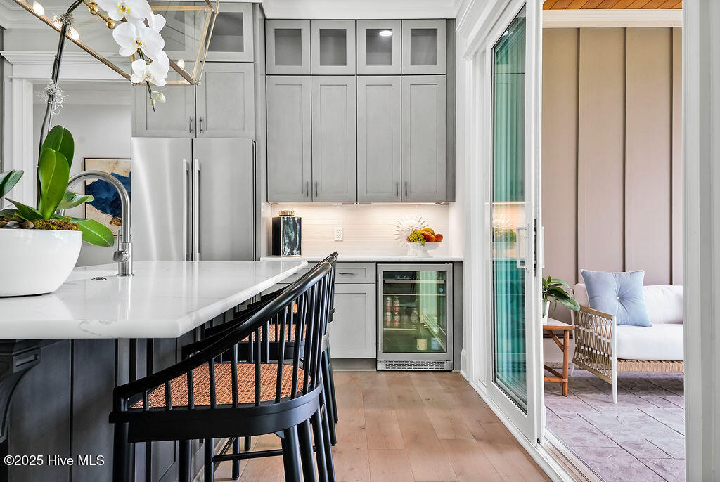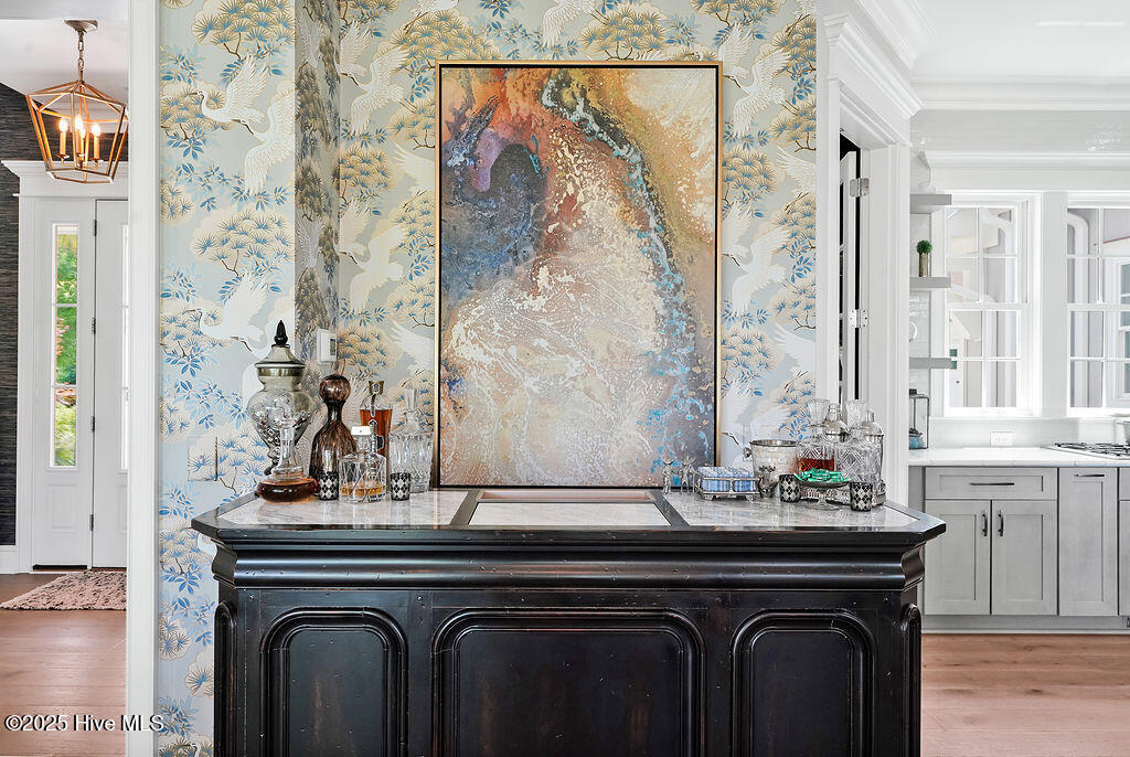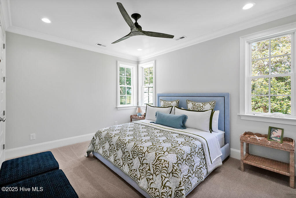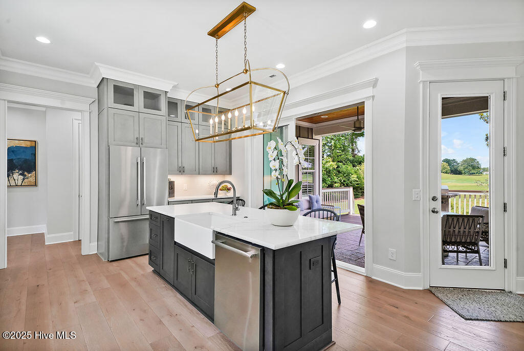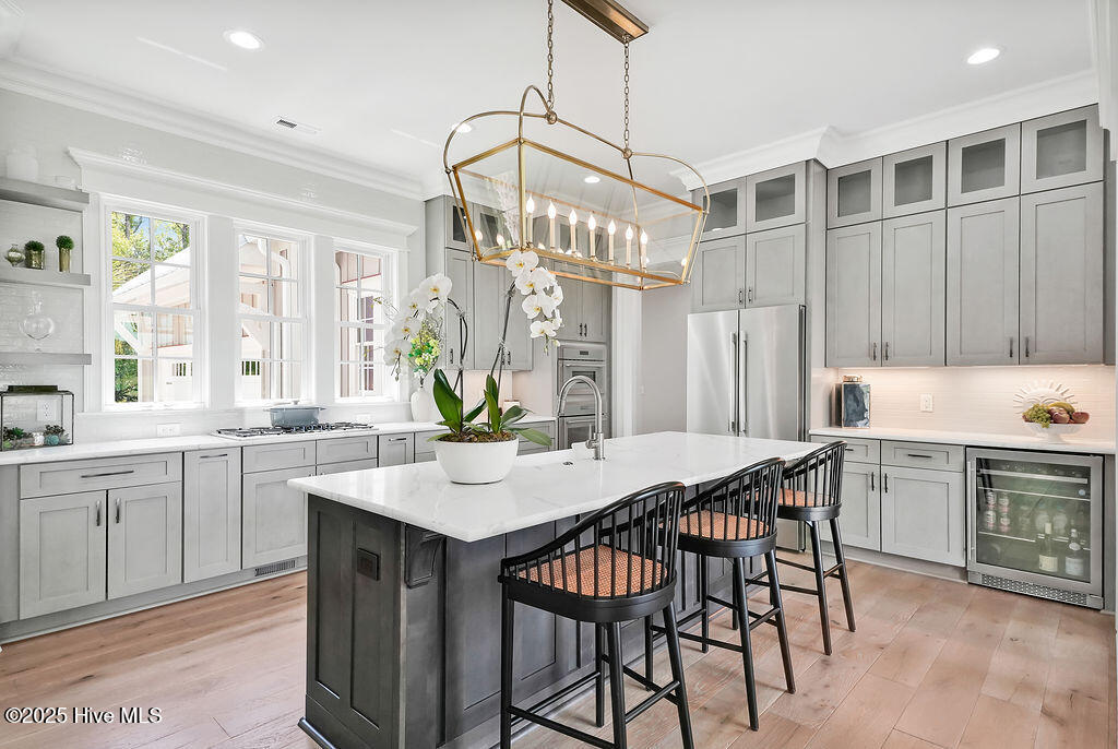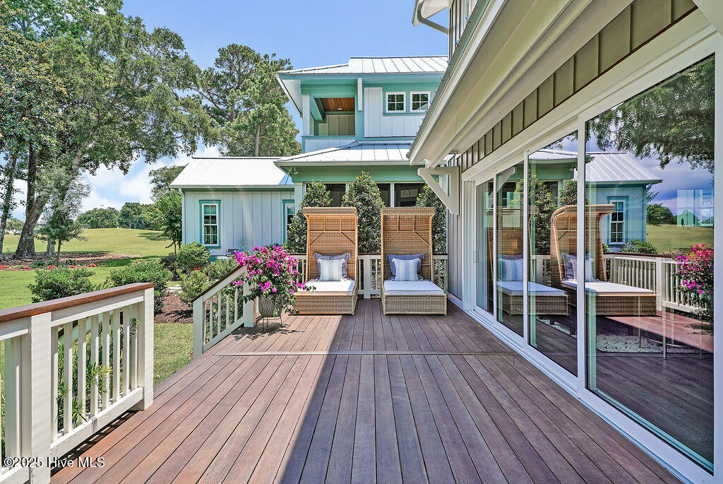 This recently completed Landfall residence perfectly captures the art of living beautifully. Sold completely furnished, this refined home embodies sophisticated coastal living at its finest. At the heart of this masterpiece lies a commitment to exceptional craftsmanship and meticulous attention to detail. Inside, you'll find high ceilings, wide-plank engineered French oak flooring, detailed crown moldings, and rich architectural accents throughout. The chef's kitchen and spacious great room flow effortlessly, while expansive telescoping glass doors allow the large outdoor space to instantly become part of the luxurious living experience. The home is perfectly nestled on a private, well landscaped, golf course lot, thereby giving incredibly expansive views. High-end Thermador appliances, quartz countertops, and spa-like bathrooms with seamless glass showers elevate every corner of the home. Custom millwork, copper detailing, authentic working shutters, meticulously curated finishes and light fixtures reflect a well-designed home that creates a warm and inviting aesthetic. Additional highlights include a whole-house generator, tankless water heater, and upgraded exterior paint for long-lasting beauty and durability. Through intentional design and commitment to balancing aesthetics with function, this home is a timeless and enduring sanctuary.