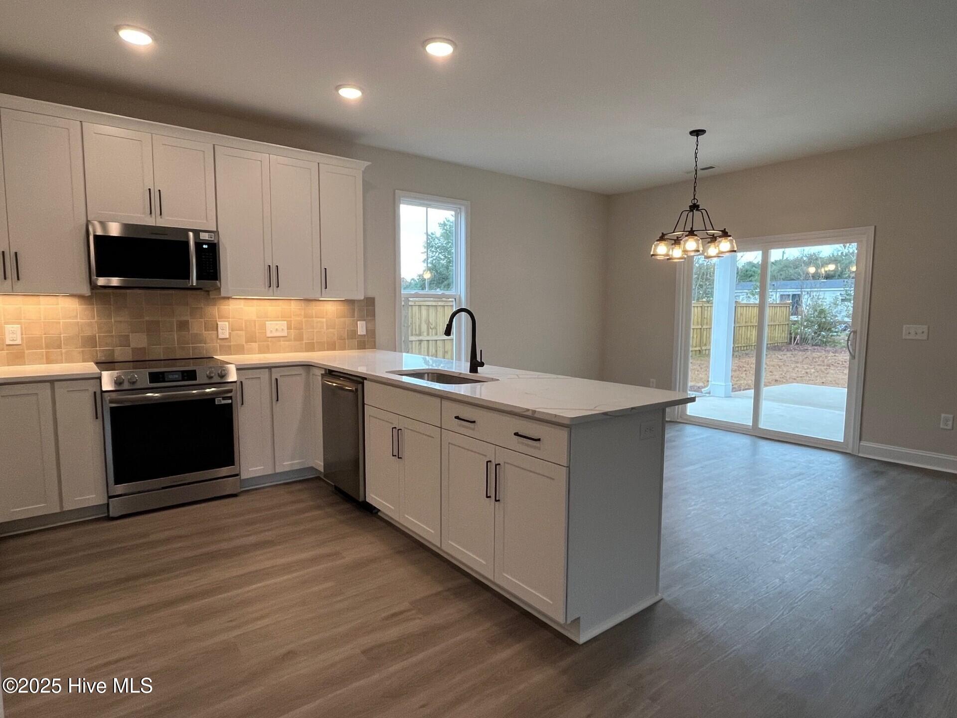 ,PVE-OM READY! BUILDER INCENTIVES AVAILABLE including a complete appliance package, 2'' blinds & closing cost assistance! The spacious ''Laurel'' plan by Stevens Fine Homes is nearly completion and ready for an October move-in! This beautiful home offers 5 bedrooms, 3 baths, a spacious kitchen with 42'' cabinetry, inviting fireplace, rear covered porch, over 2500 square feet of living space & is situated on a homesite measuring over a quarter of an acre with beautiful finishes throughout! The lovely kitchen features stunning ''calacatta Laza gold'' countertops, soft close 42'' cabinetry, under-cabinet lighting, lovely tile backsplash & stainless steel appliances. The large great room features vaulted ceilings & an inviting fireplace. The bright dining area lends access to the rear covered porch & extended patio. The main floor primary suite offers an attached bath with double vanity with quartz counters, 12x24 tile flooring, a gorgeous walk-in tile shower & separate soaking tub, a water closet & large walk-in closet. Two additional bedrooms, a well-appointed guest bath and a convenient laundry room complete the first floor. Upstairs, you'll find the fourth & fifth bedrooms and a third full bath. Designer finishes include luxury vinyl plank flooring throughout the first floor living areas, LVP or tile in all baths & laundry, propane fireplace, 5-inch baseboards, elevated oil rubbed bronze lighting & plumbing fixtures & hardware, sod & irrigation in yard, exterior coach & flood lights, gutters and more! The home is currently under construction & estimated to reach completion in early Fall, 2025. Please note that photos shown are of a similar home of the same floor plan & structural options & design finishes may vary.