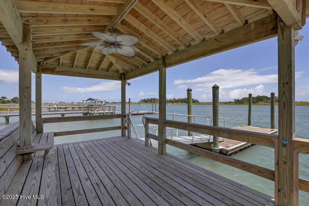 Aggressive pricing to own ICW front! Stunning Turnkey, ICW Front Home with Dock, Pier, Floating Dock, Water & Power at dock, Boat Lift & Incredible Views Welcome to this fully furnished showstopper on deep water along the Intracoastal Waterway—where comfort, beauty, and functionality meet. This meticulously updated home offers everything you need to start living the coastal lifestyle immediately. Enjoy a newer bulkhead, floating and static docks, a boat lift, gazebo, water and power at the dock, a stainless steel fish cleaning station, and well water for irrigation and dock use—all just minutes from Topsail Inlet and the open ocean. The large rocking-chair front porch (screened) captures unforgettable sunrises and sunsets while overlooking pristine waters frequented by dolphins, yachts, and waterfowl. Inside, the updated & improved home offers flexible living across two levels with three bedrooms and two baths. The downstairs area features its own bedroom w/ ensuite bath, fireplace, sink, counter space, cabinets, and under-counter refrigerator—perfect for guests or as a separate rental suite with its own entrance foyer. A newly constructed exterior staircase with low-maintenance composite decking provides direct access to the screened porch, creating separate private entrances for each living space. Additional features include a large detached garage with five wired outlets and ample space for vehicles, boats, or workshop use, plus an attached storage area accessible from inside the home. Roll-down hurricane shutters are installed on all windows, and the home can be monitored and accessed remotely for added peace of mind. Whether you're looking for a personal waterfront haven or an income-generating investment, this property delivers. Nearly every aspect has been transformed in the last three years—please refer to the full list of improvements in the documents section or inquire directly.