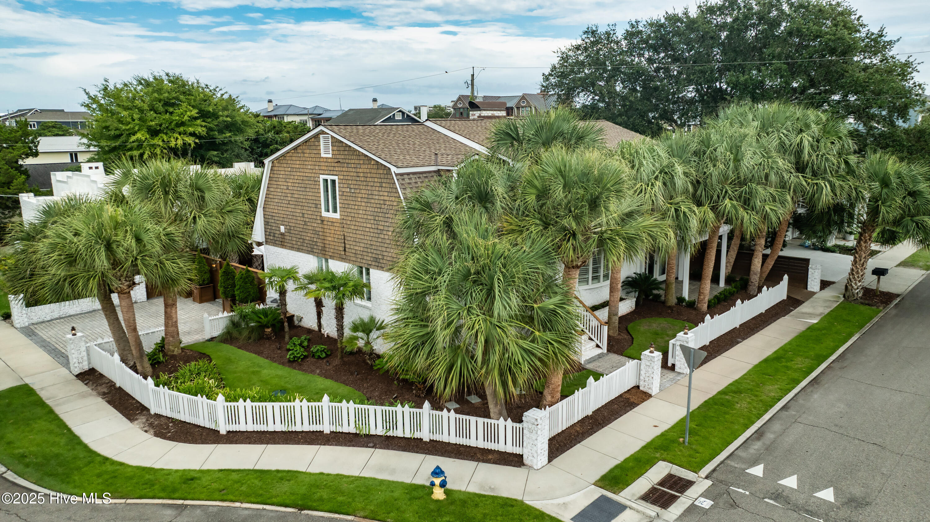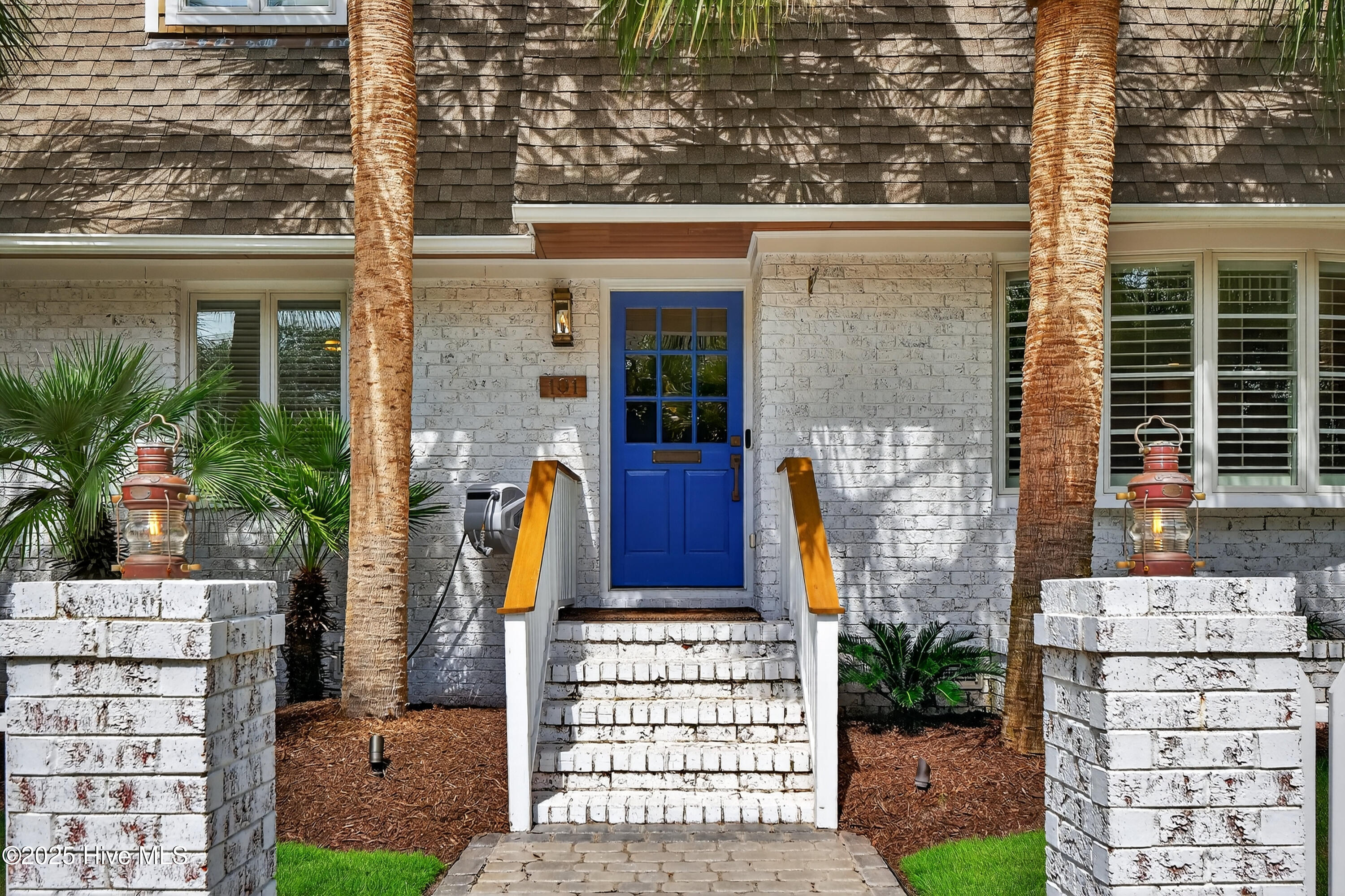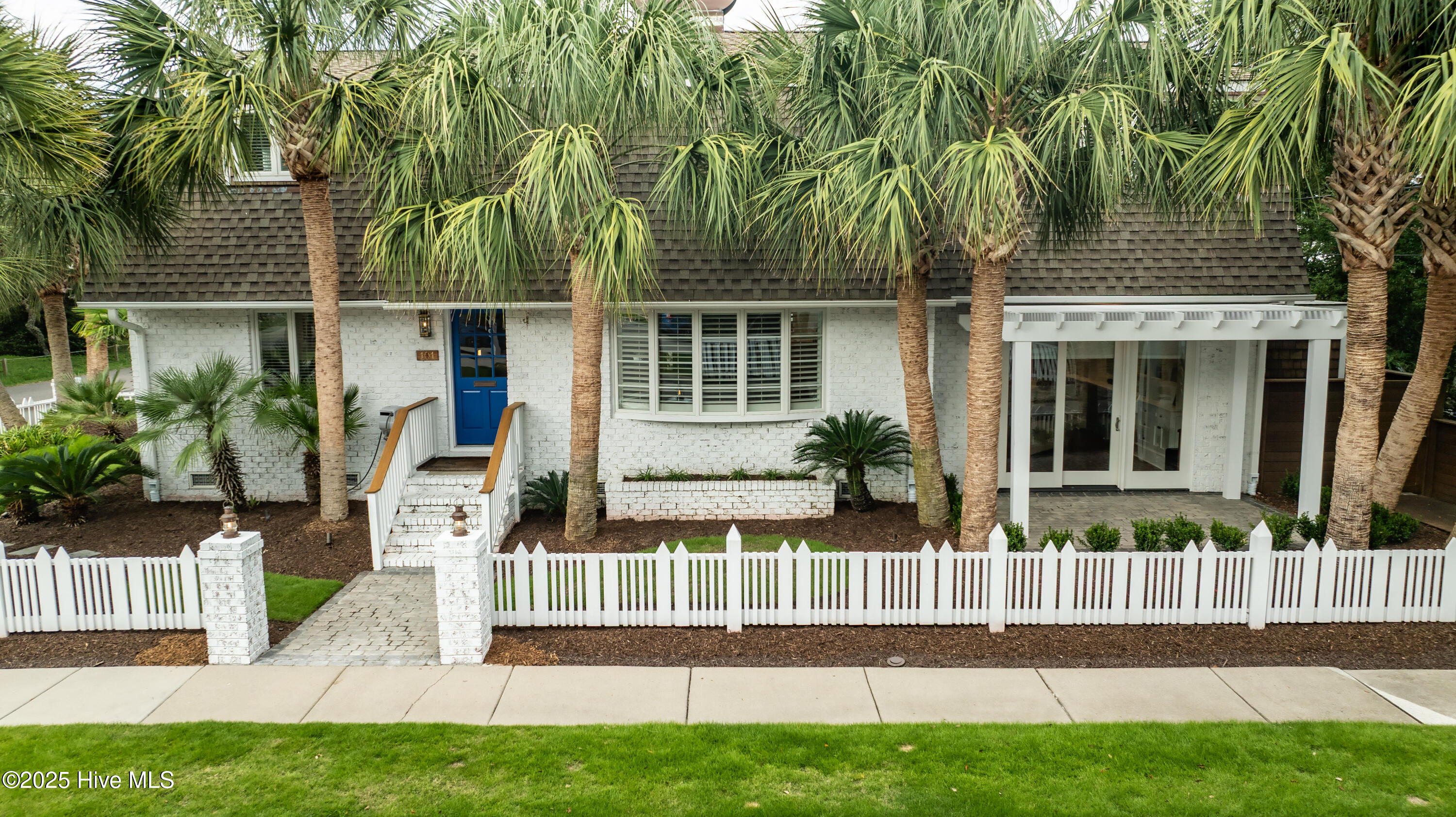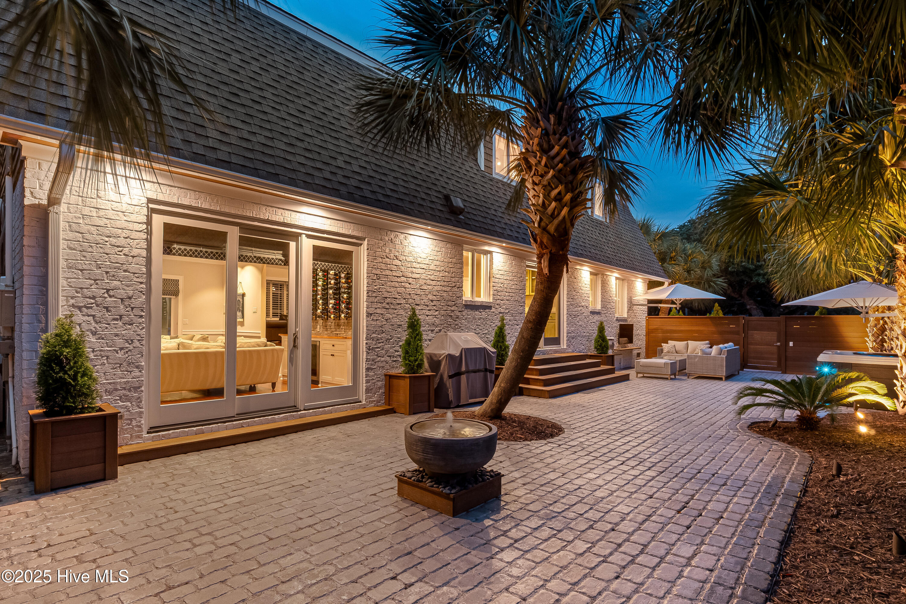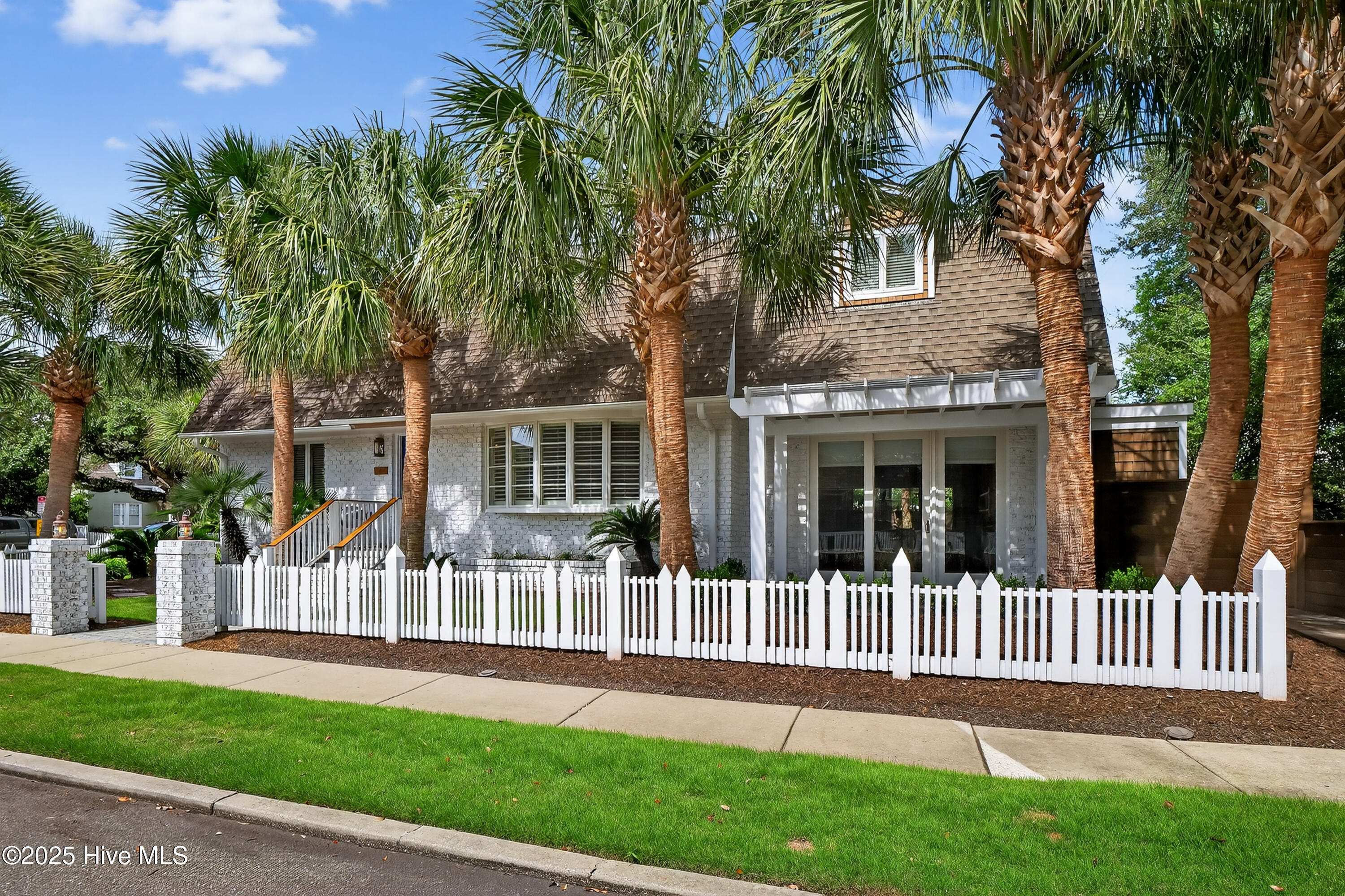 Situated on a corner lot at the quiet curve of Lindy Ln and Live Oak Dr, this exceptional home offers a rare opportunity to own in one of Wrightsville Beach's most tightly held neighborhoods. South Harbor Island is known for its peaceful streets, walkable lifestyle, and close-knit community—with only a handful of homes hitting the market each year. Step outside and you're a short walk from the soft sands and clear blue waters of Wrightsville Beach, or out on the iconic Nesbitt Loop, a 2.45-mile path circling the heart of the island where locals jog, bike, and greet neighbors with a wave. The home blends timeless Cape Cod-style architecture with curated outdoor living, featuring 23 twelve-foot palm trees, ipe fencing, and artisan hardscaping—part of over $240,000 in exterior upgrades. The private patio is perfect for morning coffee, sunset dinners, or a relaxing soak in the hot tub. Inside, the home exudes character with thoughtful, high-end touches. The main living space blends warmth and sophistication, centered around an open brick fireplace and flowing seamlessly into a striking, fully renovated TV room with a custom blue stone accent wall and integrated wine storage, a bold focal point and functional showcase for your collection. Two first-floor bedrooms offer flexibility for guests, a home office, or creative use. Upstairs includes two fully remodeled bedrooms, including a primary suite with an open-concept ensuite and a mini split unit for added comfort. Behind the charm is solid infrastructure: a fully encapsulated crawl space with dehumidifier, two HVAC units, updated attic insulation and exhaust fans, a 2-year-old water heater, and new attic access. In the evenings, underground lighting casts a soft glow over the palm-lined yard, enhancing the home's ambiance. At 101 Lindy Ln, you're not just buying a home—you're embracing a lifestyle in a neighborhood where time seems to move just a bit slower