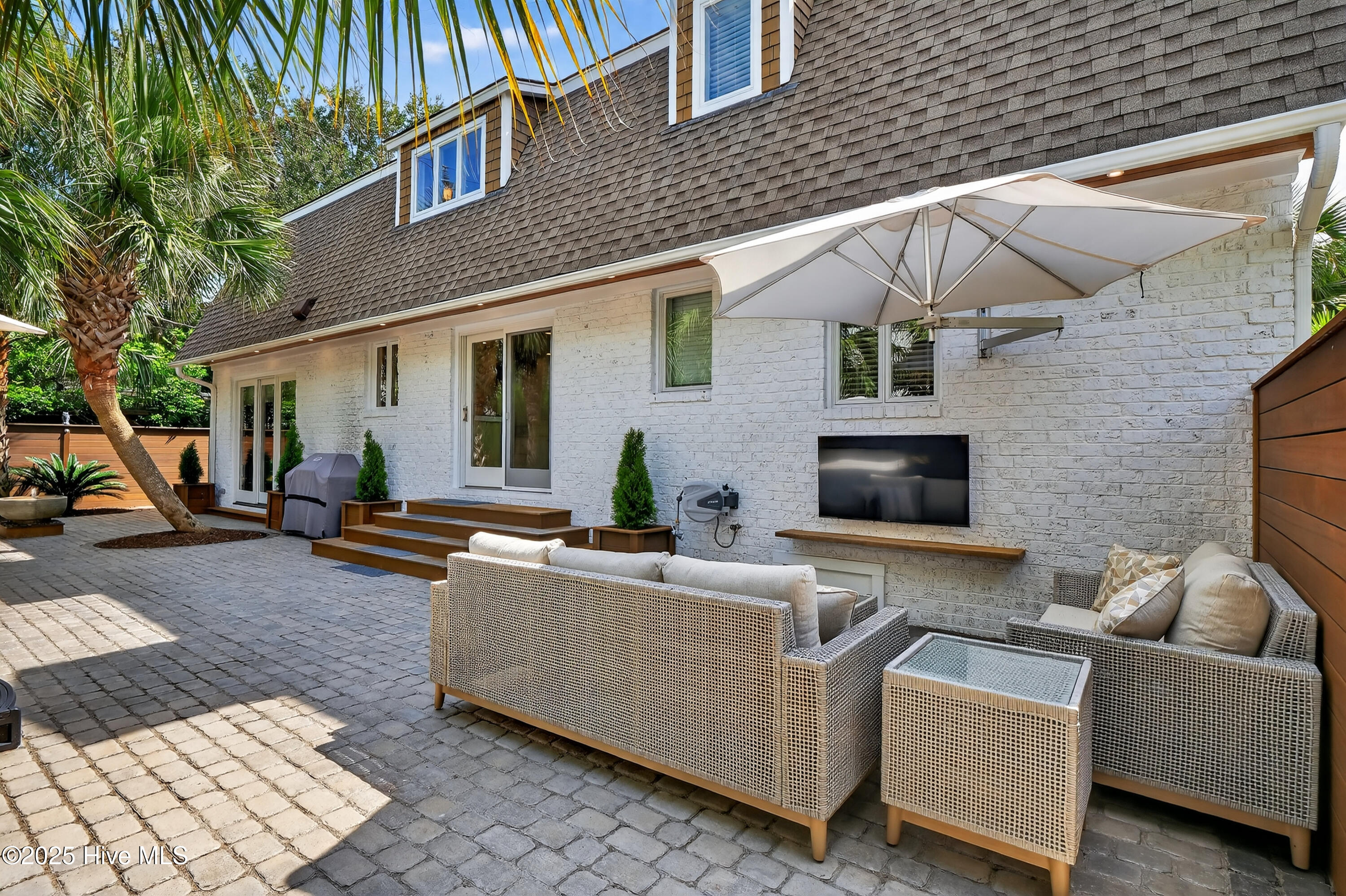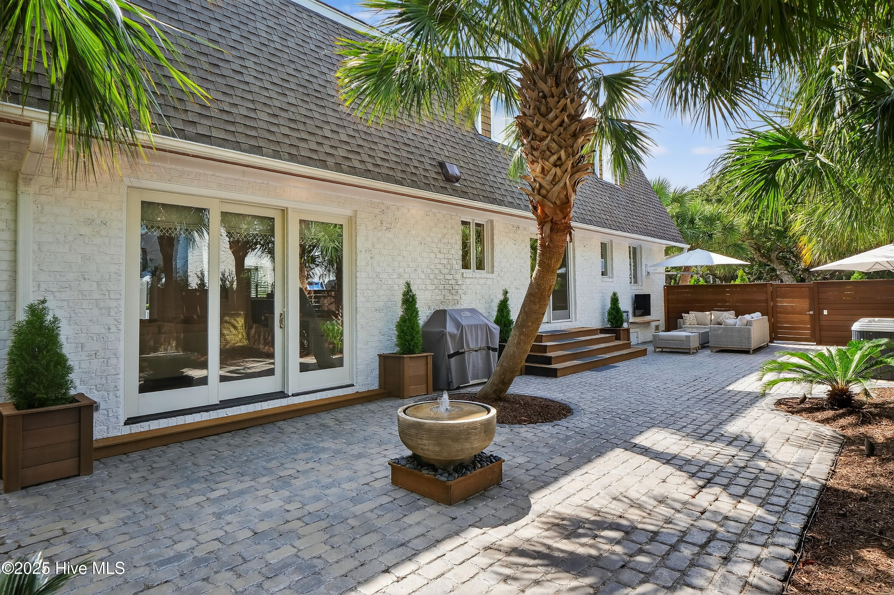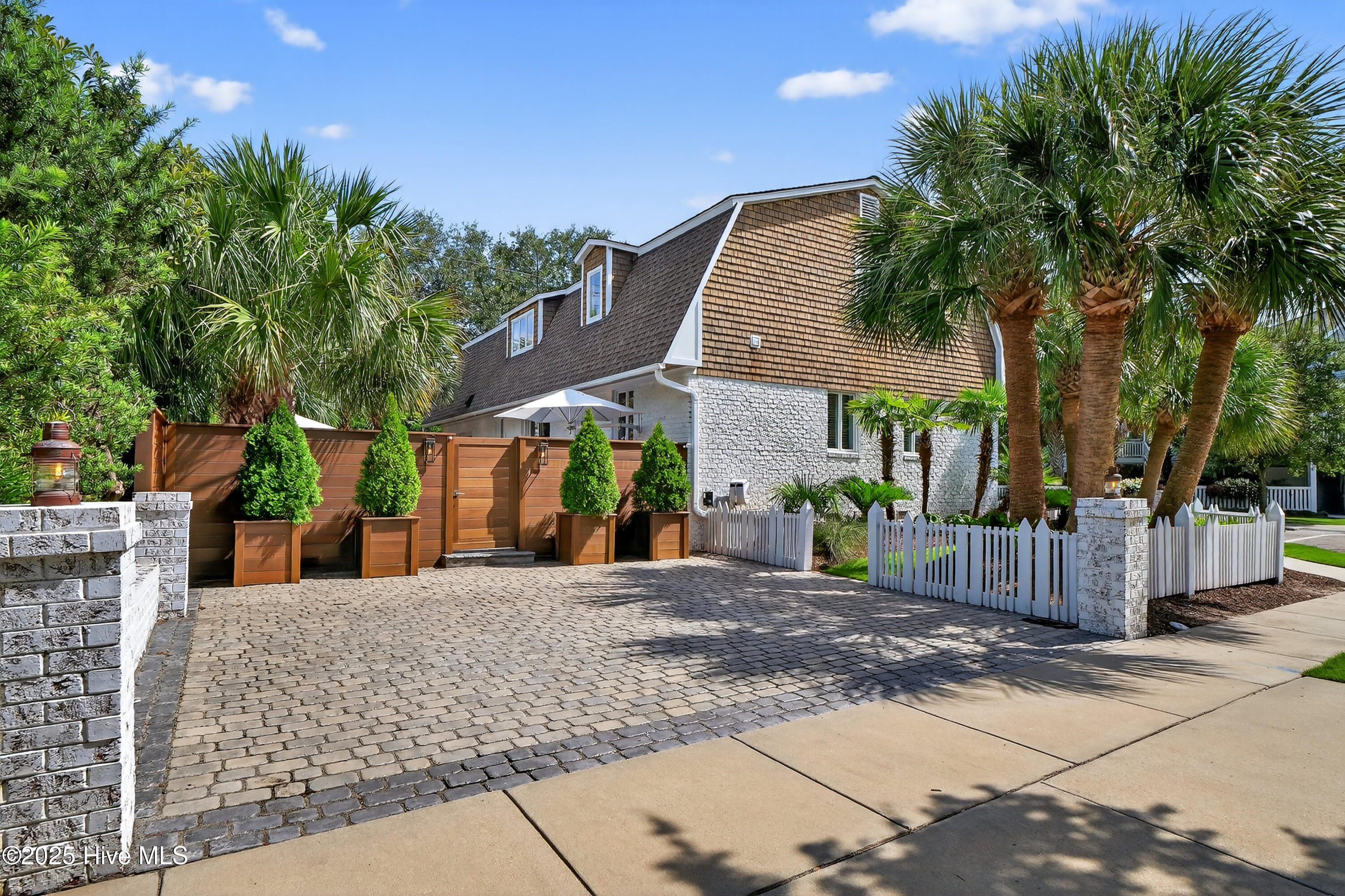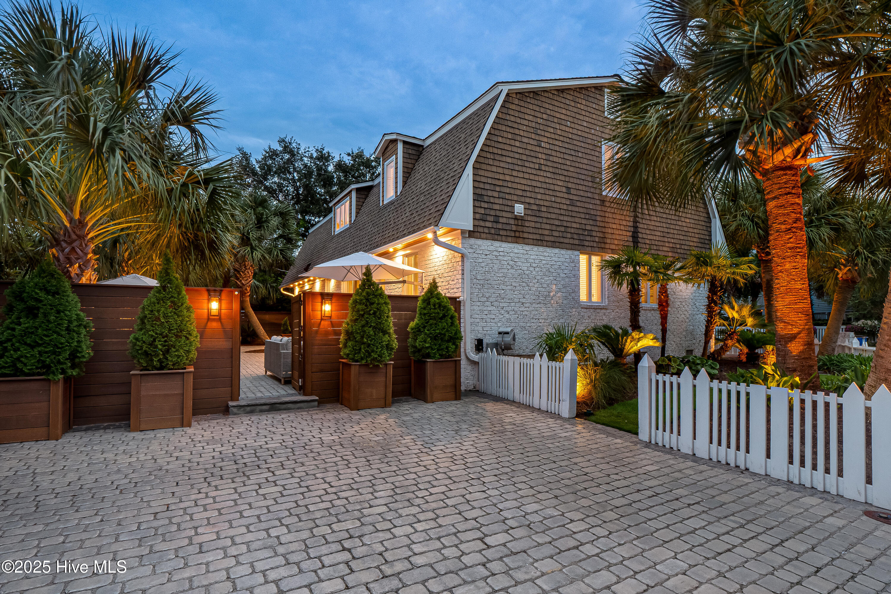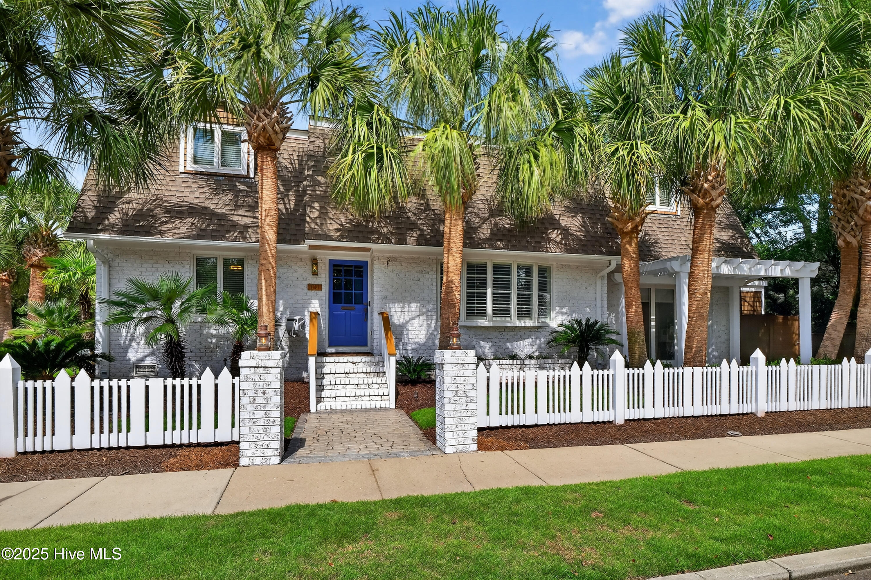 Situated on a corner lot at the quiet curve of Lindy Ln and Live Oak Dr, this exceptional home offers a rare opportunity to own in one of Wrightsville Beach's most tightly held neighborhoods. South Harbor Island is known for its peaceful streets, walkable lifestyle, and close-knit community—with only a handful of homes hitting the market each year. Step outside and you're a short walk from the soft sands and clear blue waters of Wrightsville Beach, or out on the iconic Nesbitt Loop, a 2.45-mile path circling the heart of the island where locals jog, bike, and greet neighbors with a wave. The home blends timeless Cape Cod-style architecture with curated outdoor living, featuring 23 twelve-foot palm trees, ipe fencing, and artisan hardscaping—part of over $240,000 in exterior upgrades. The private patio is perfect for morning coffee, sunset dinners, or a relaxing soak in the hot tub. Inside, the home exudes character with thoughtful, high-end touches. The main living space blends warmth and sophistication, centered around an open brick fireplace and flowing seamlessly into a striking, fully renovated TV room with a custom blue stone accent wall and integrated wine storage, a bold focal point and functional showcase for your collection. Two first-floor bedrooms offer flexibility for guests, a home office, or creative use. Upstairs includes two fully remodeled bedrooms, including a primary suite with an open-concept ensuite and a mini split unit for added comfort. Behind the charm is solid infrastructure: a fully encapsulated crawl space with dehumidifier, two HVAC units, updated attic insulation and exhaust fans, a 2-year-old water heater, and new attic access. In the evenings, underground lighting casts a soft glow over the palm-lined yard, enhancing the home's ambiance. At 101 Lindy Ln, you're not just buying a home—you're embracing a lifestyle in a neighborhood where time seems to move just a bit slower