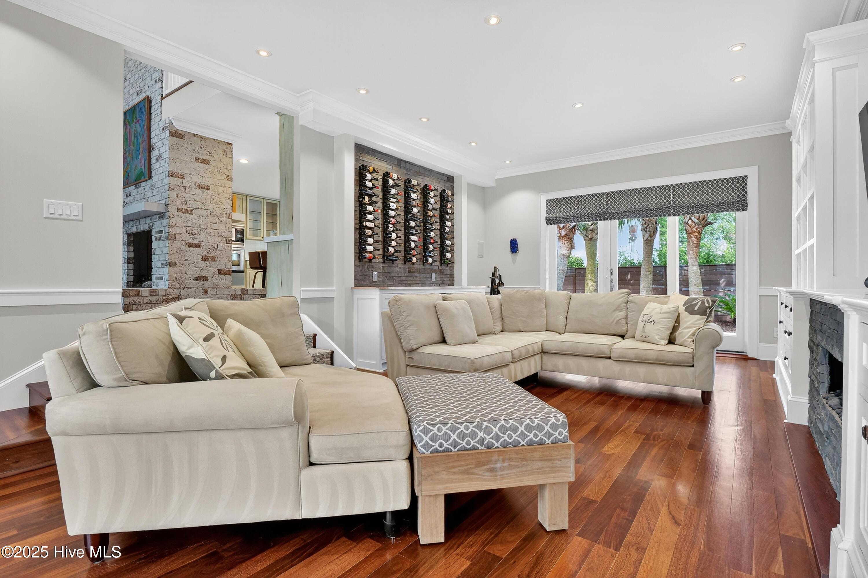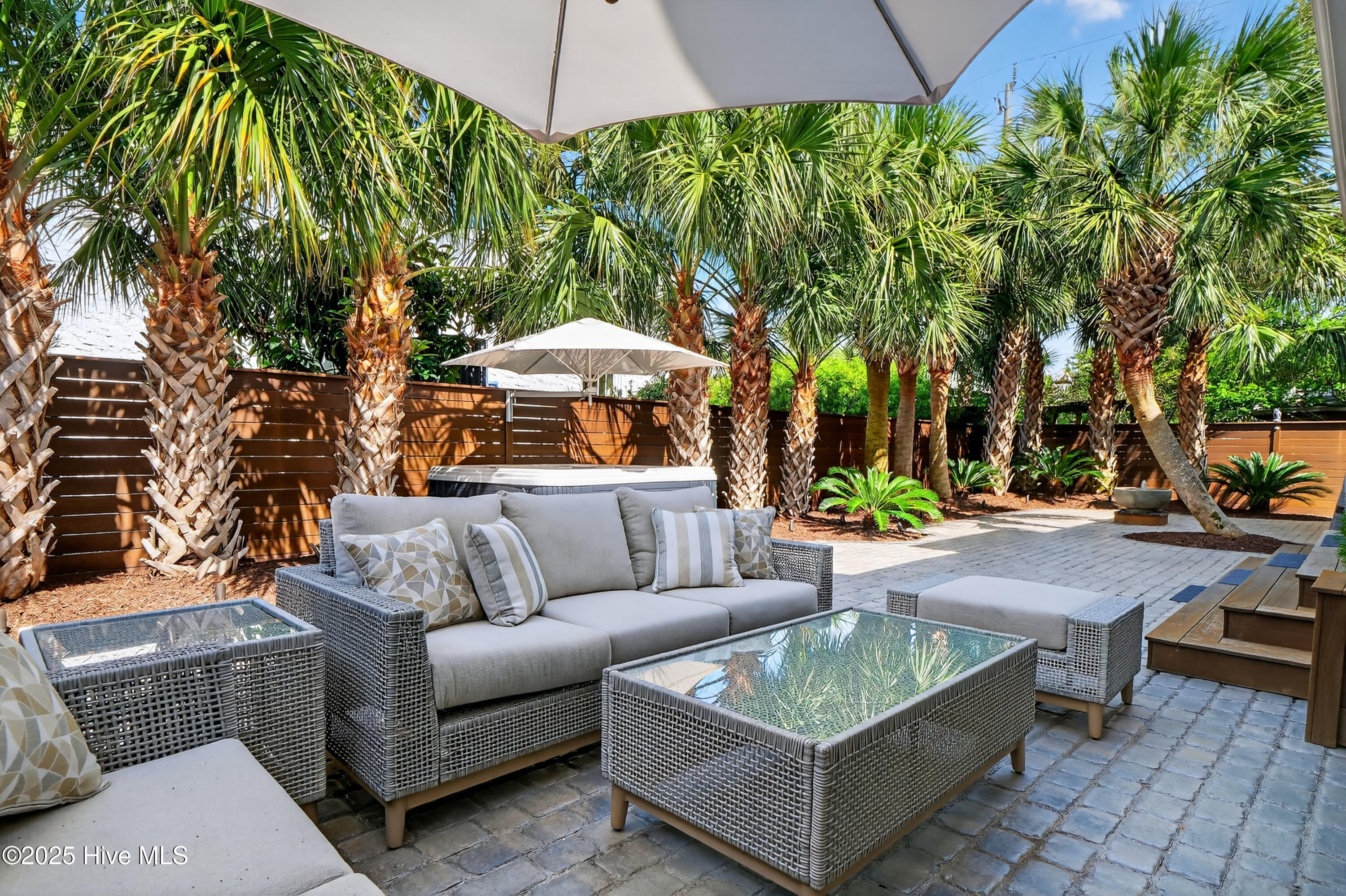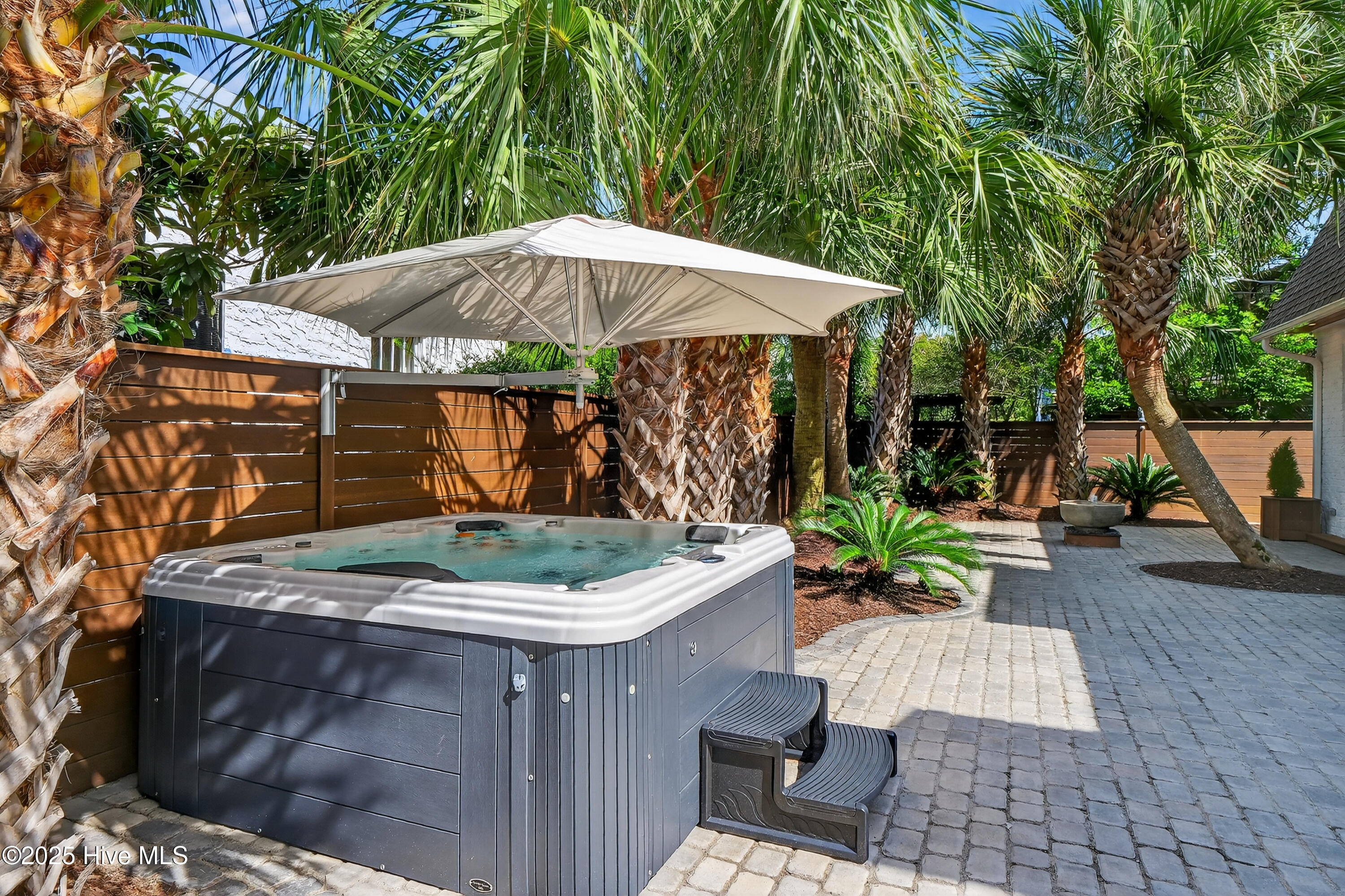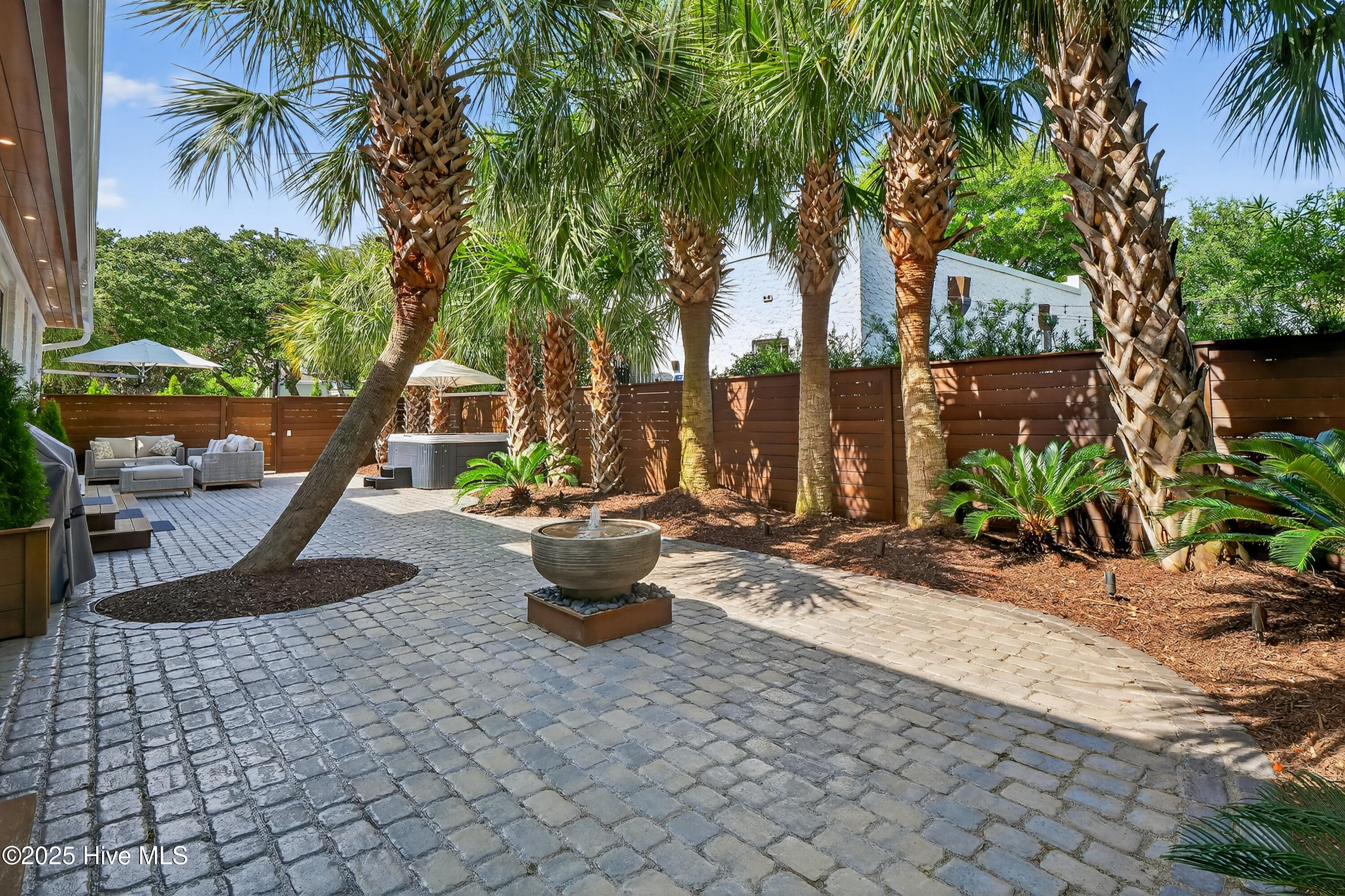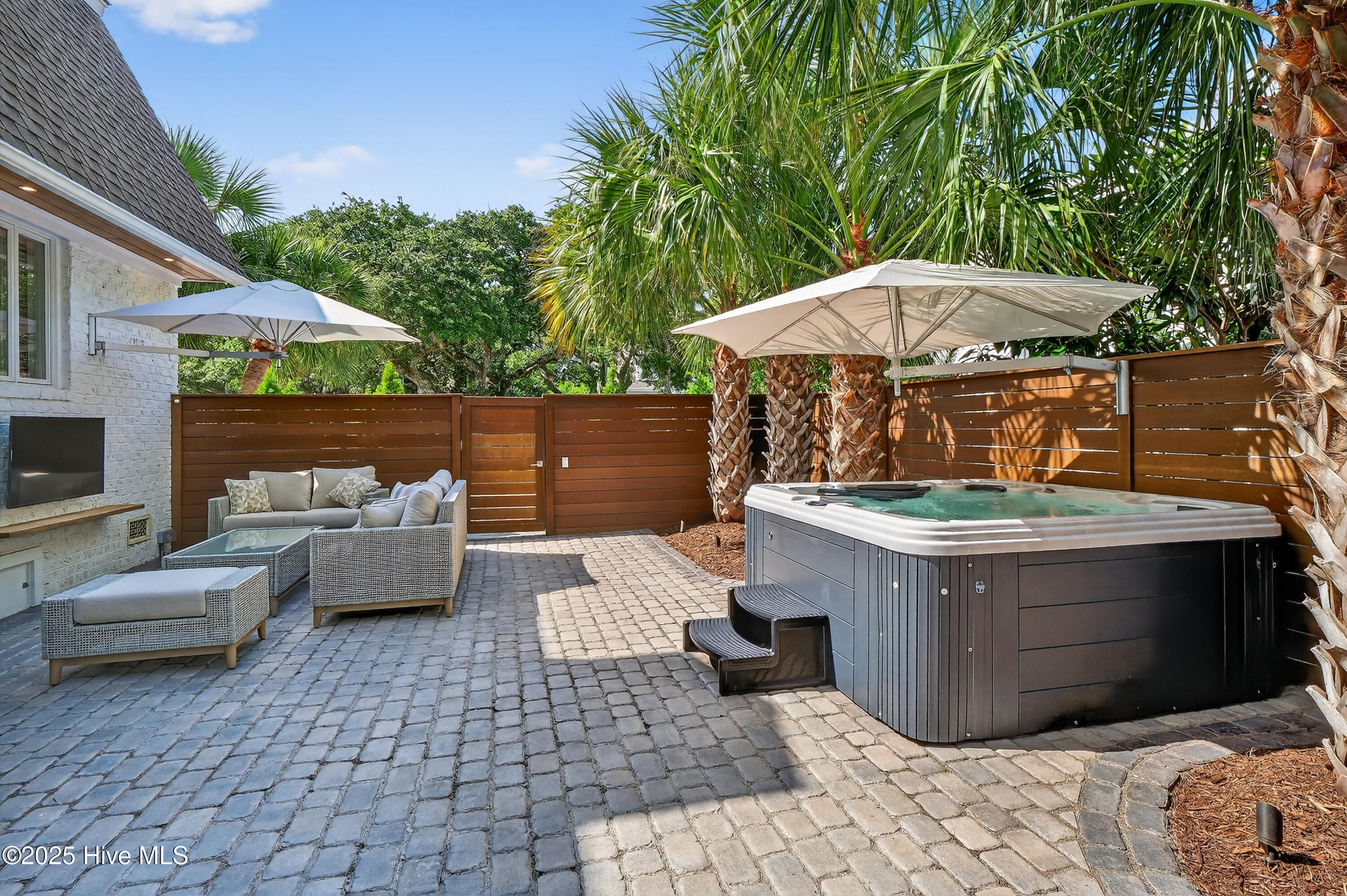 Situated on a corner lot at the quiet curve of Lindy Ln and Live Oak Dr, this exceptional home offers a rare opportunity to own in one of Wrightsville Beach's most tightly held neighborhoods. South Harbor Island is known for its peaceful streets, walkable lifestyle, and close-knit community—with only a handful of homes hitting the market each year. Step outside and you're a short walk from the soft sands and clear blue waters of Wrightsville Beach, or out on the iconic Nesbitt Loop, a 2.45-mile path circling the heart of the island where locals jog, bike, and greet neighbors with a wave. The home blends timeless Cape Cod-style architecture with curated outdoor living, featuring 23 twelve-foot palm trees, ipe fencing, and artisan hardscaping—part of over $240,000 in exterior upgrades. The private patio is perfect for morning coffee, sunset dinners, or a relaxing soak in the hot tub. Inside, the home exudes character with thoughtful, high-end touches. The main living space blends warmth and sophistication, centered around an open brick fireplace and flowing seamlessly into a striking, fully renovated TV room with a custom blue stone accent wall and integrated wine storage, a bold focal point and functional showcase for your collection. Two first-floor bedrooms offer flexibility for guests, a home office, or creative use. Upstairs includes two fully remodeled bedrooms, including a primary suite with an open-concept ensuite and a mini split unit for added comfort. Behind the charm is solid infrastructure: a fully encapsulated crawl space with dehumidifier, two HVAC units, updated attic insulation and exhaust fans, a 2-year-old water heater, and new attic access. In the evenings, underground lighting casts a soft glow over the palm-lined yard, enhancing the home's ambiance. At 101 Lindy Ln, you're not just buying a home—you're embracing a lifestyle in a neighborhood where time seems to move just a bit slower