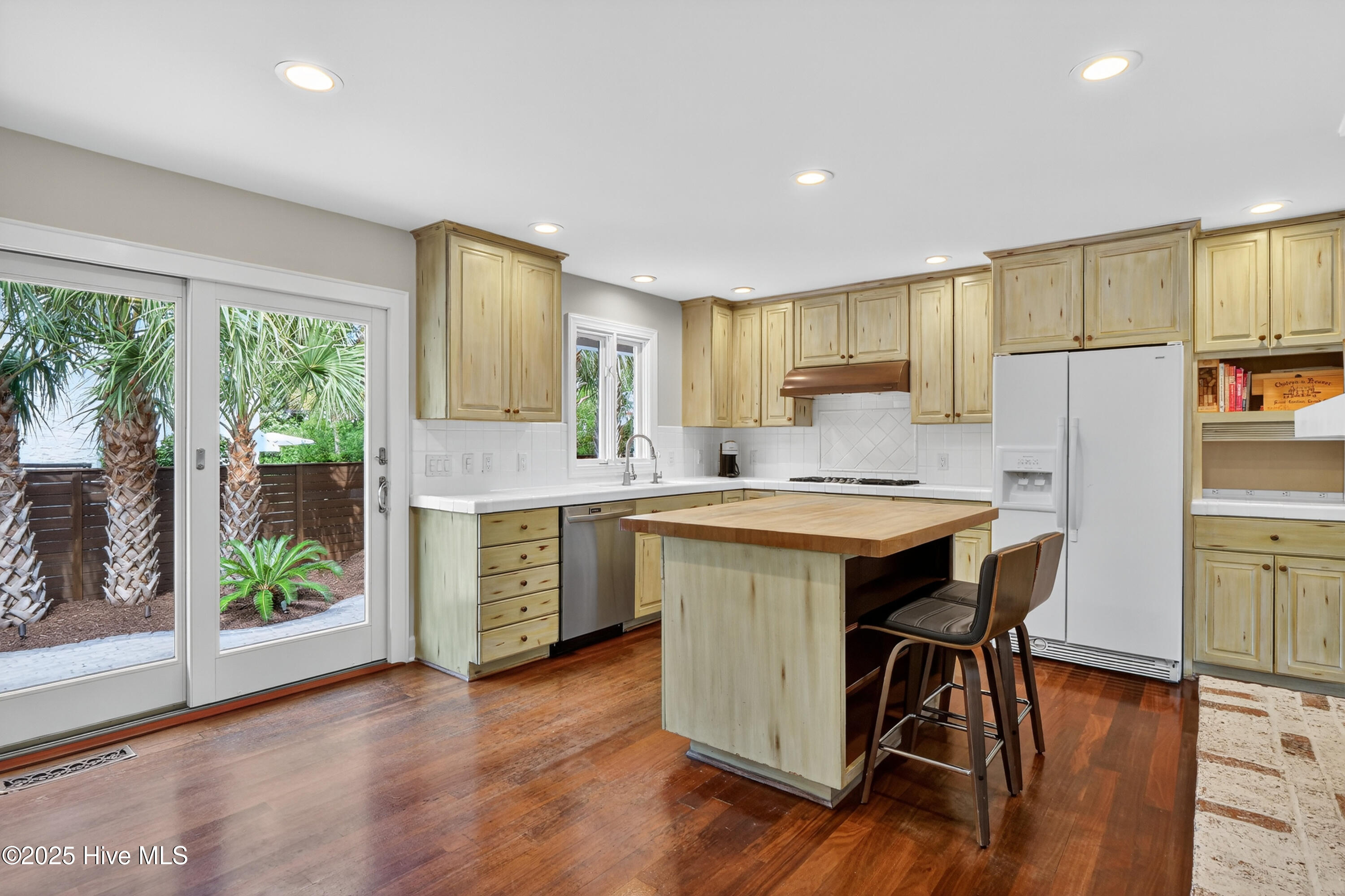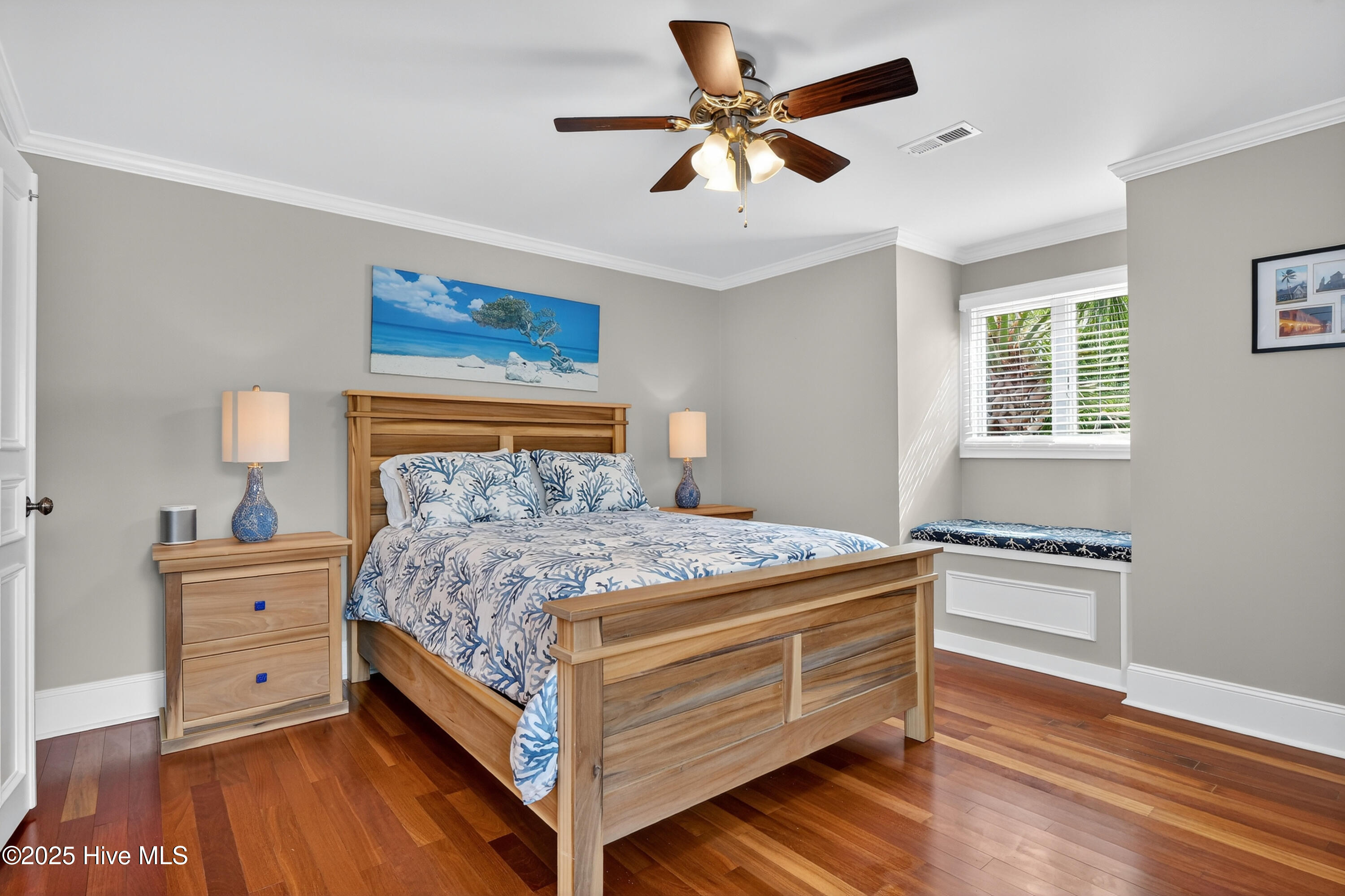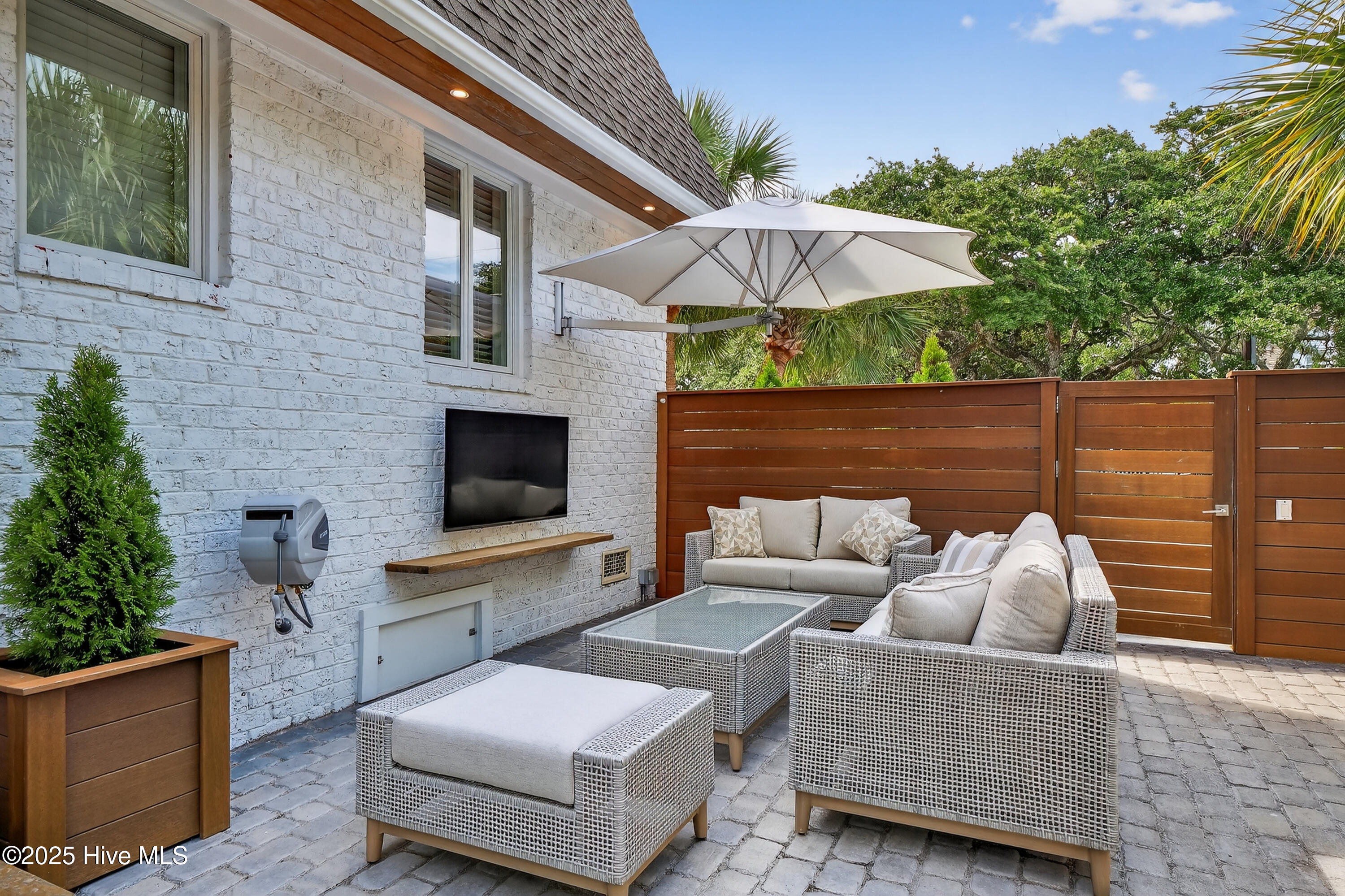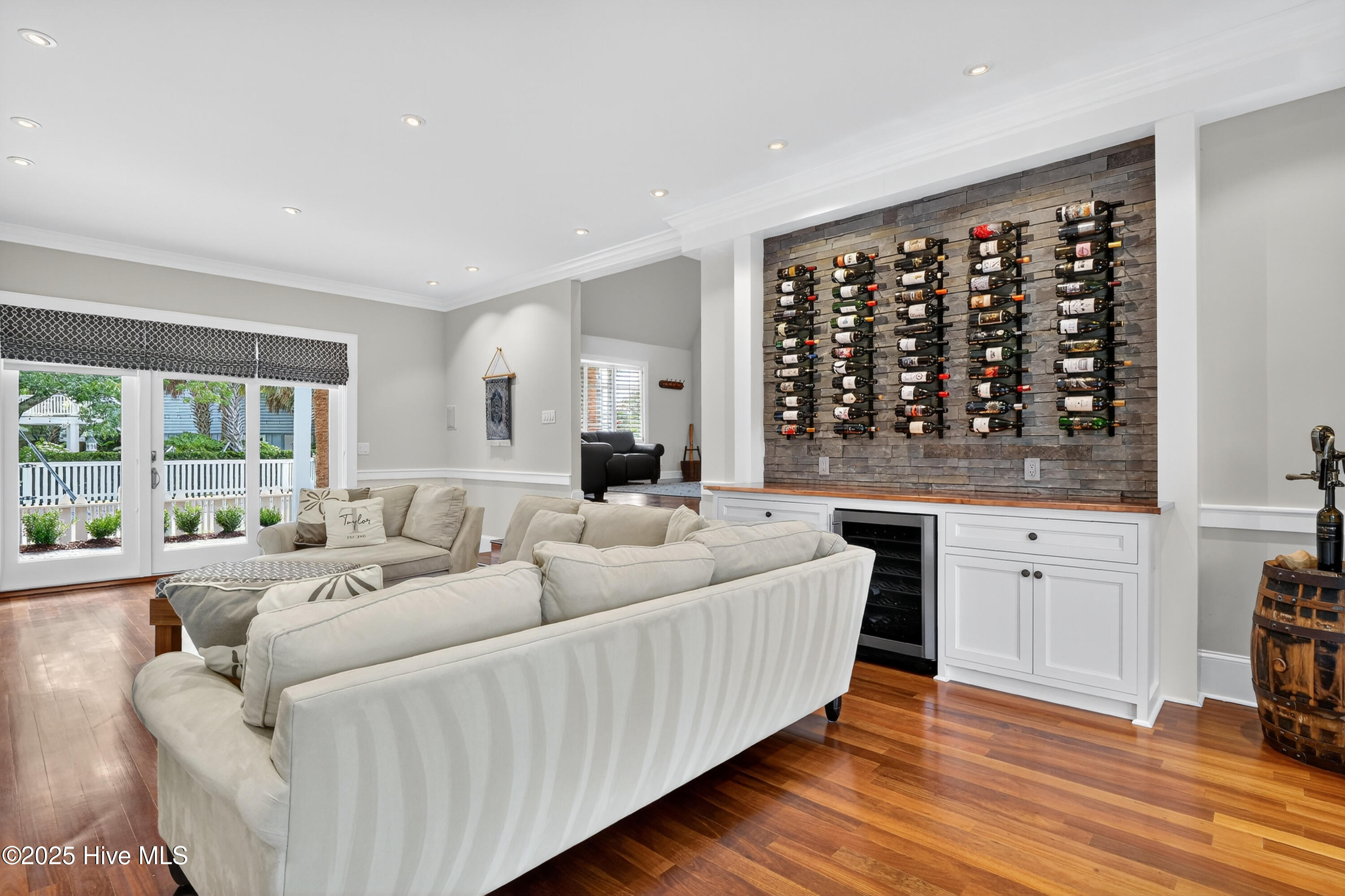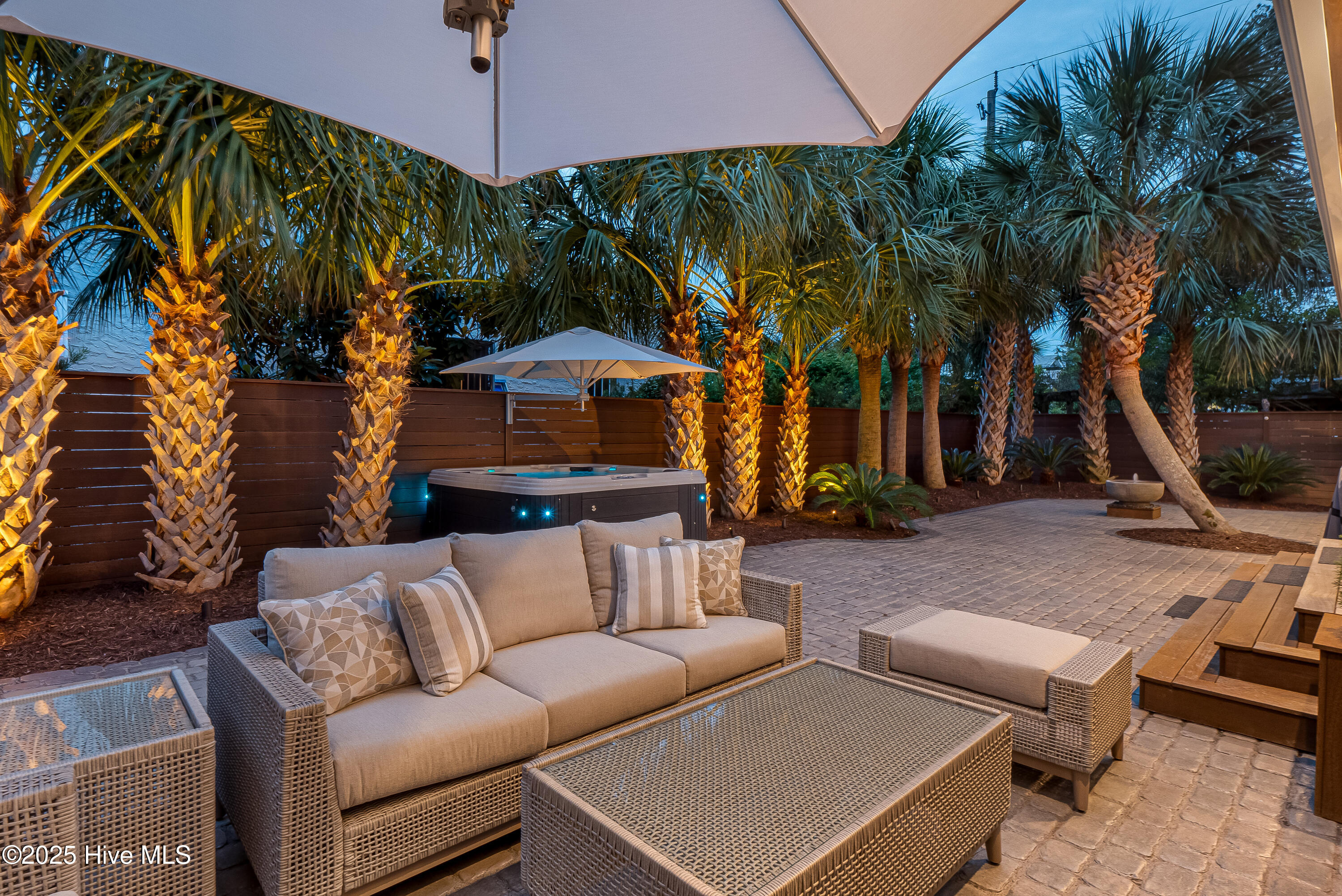 Situated on a corner lot at the quiet curve of Lindy Ln and Live Oak Dr, this exceptional home offers a rare opportunity to own in one of Wrightsville Beach's most tightly held neighborhoods. South Harbor Island is known for its peaceful streets, walkable lifestyle, and close-knit community—with only a handful of homes hitting the market each year. Step outside and you're a short walk from the soft sands and clear blue waters of Wrightsville Beach, or out on the iconic Nesbitt Loop, a 2.45-mile path circling the heart of the island where locals jog, bike, and greet neighbors with a wave. The home blends timeless Cape Cod-style architecture with curated outdoor living, featuring 23 twelve-foot palm trees, ipe fencing, and artisan hardscaping—part of over $240,000 in exterior upgrades. The private patio is perfect for morning coffee, sunset dinners, or a relaxing soak in the hot tub. Inside, the home exudes character with thoughtful, high-end touches. The main living space blends warmth and sophistication, centered around an open brick fireplace and flowing seamlessly into a striking, fully renovated TV room with a custom blue stone accent wall and integrated wine storage, a bold focal point and functional showcase for your collection. Two first-floor bedrooms offer flexibility for guests, a home office, or creative use. Upstairs includes two fully remodeled bedrooms, including a primary suite with an open-concept ensuite and a mini split unit for added comfort. Behind the charm is solid infrastructure: a fully encapsulated crawl space with dehumidifier, two HVAC units, updated attic insulation and exhaust fans, a 2-year-old water heater, and new attic access. In the evenings, underground lighting casts a soft glow over the palm-lined yard, enhancing the home's ambiance. At 101 Lindy Ln, you're not just buying a home—you're embracing a lifestyle in a neighborhood where time seems to move just a bit slower