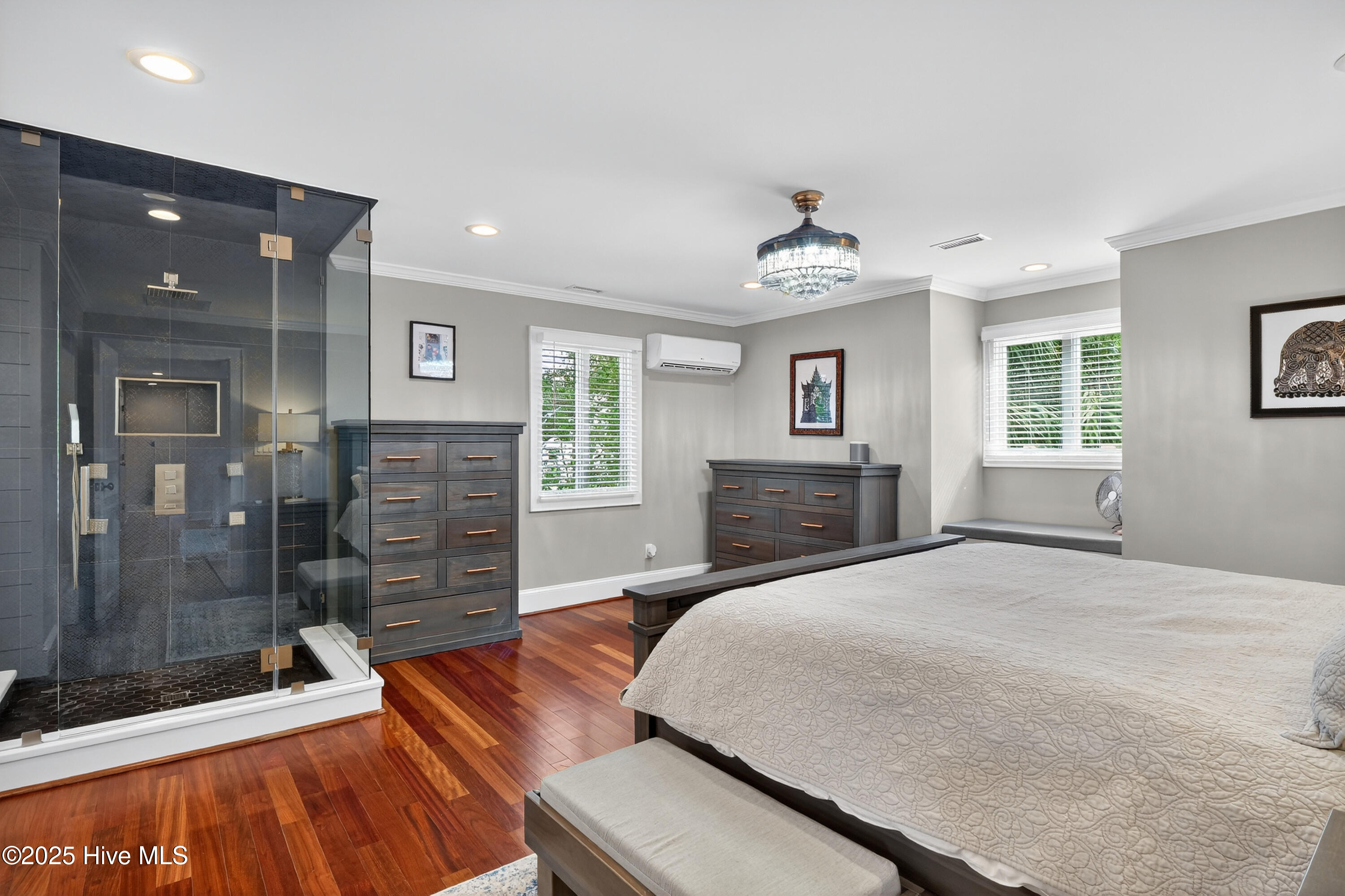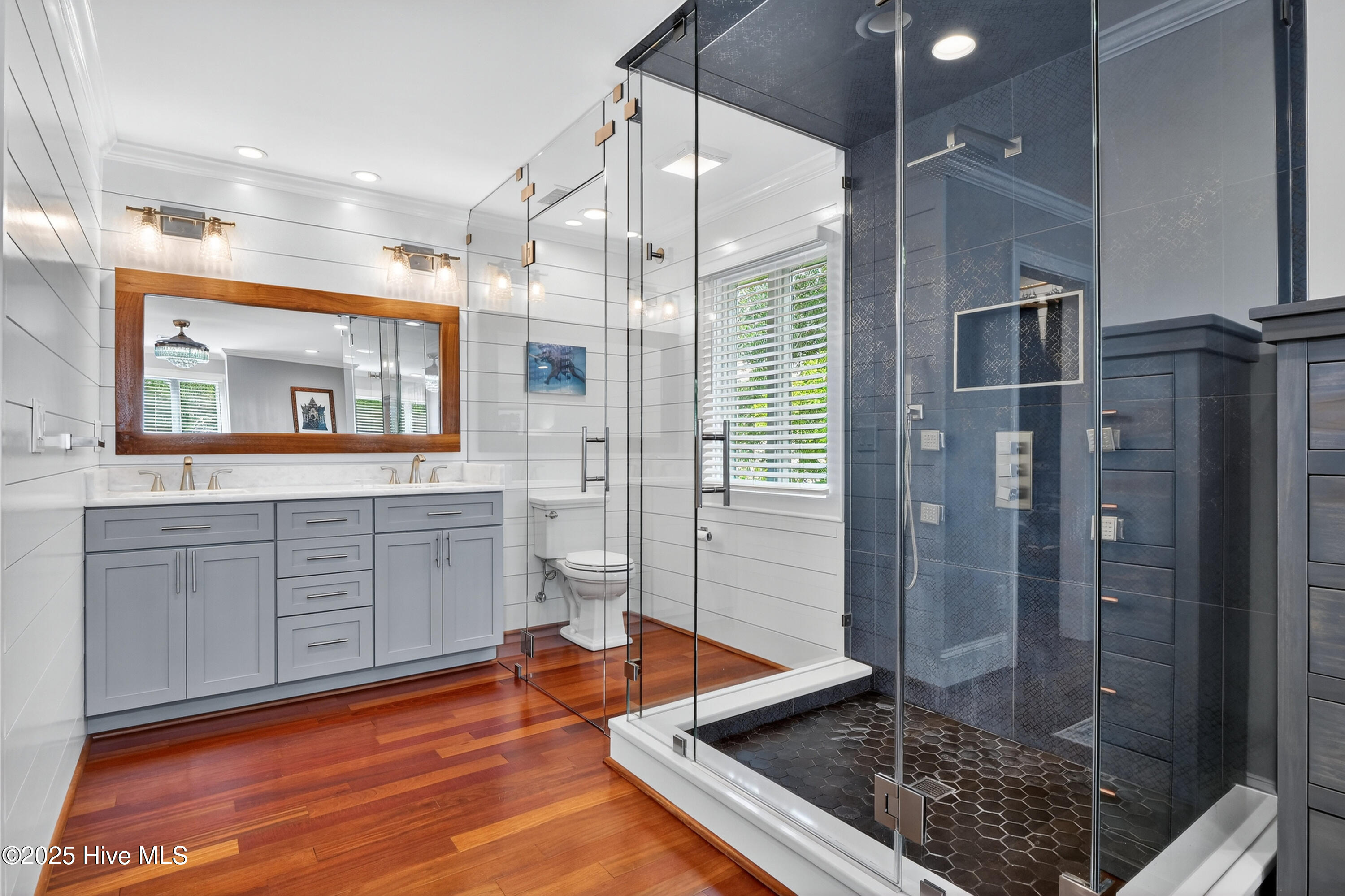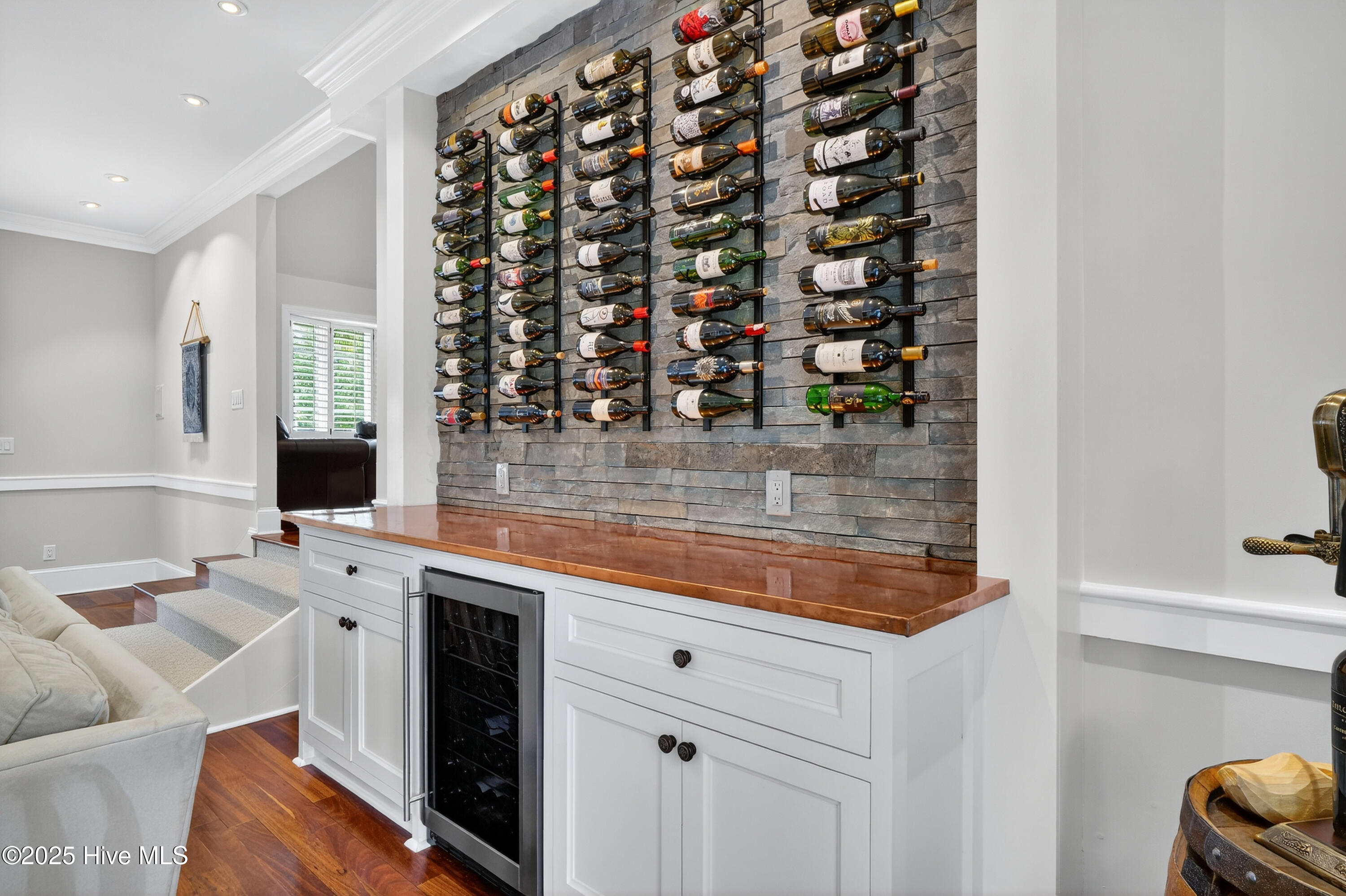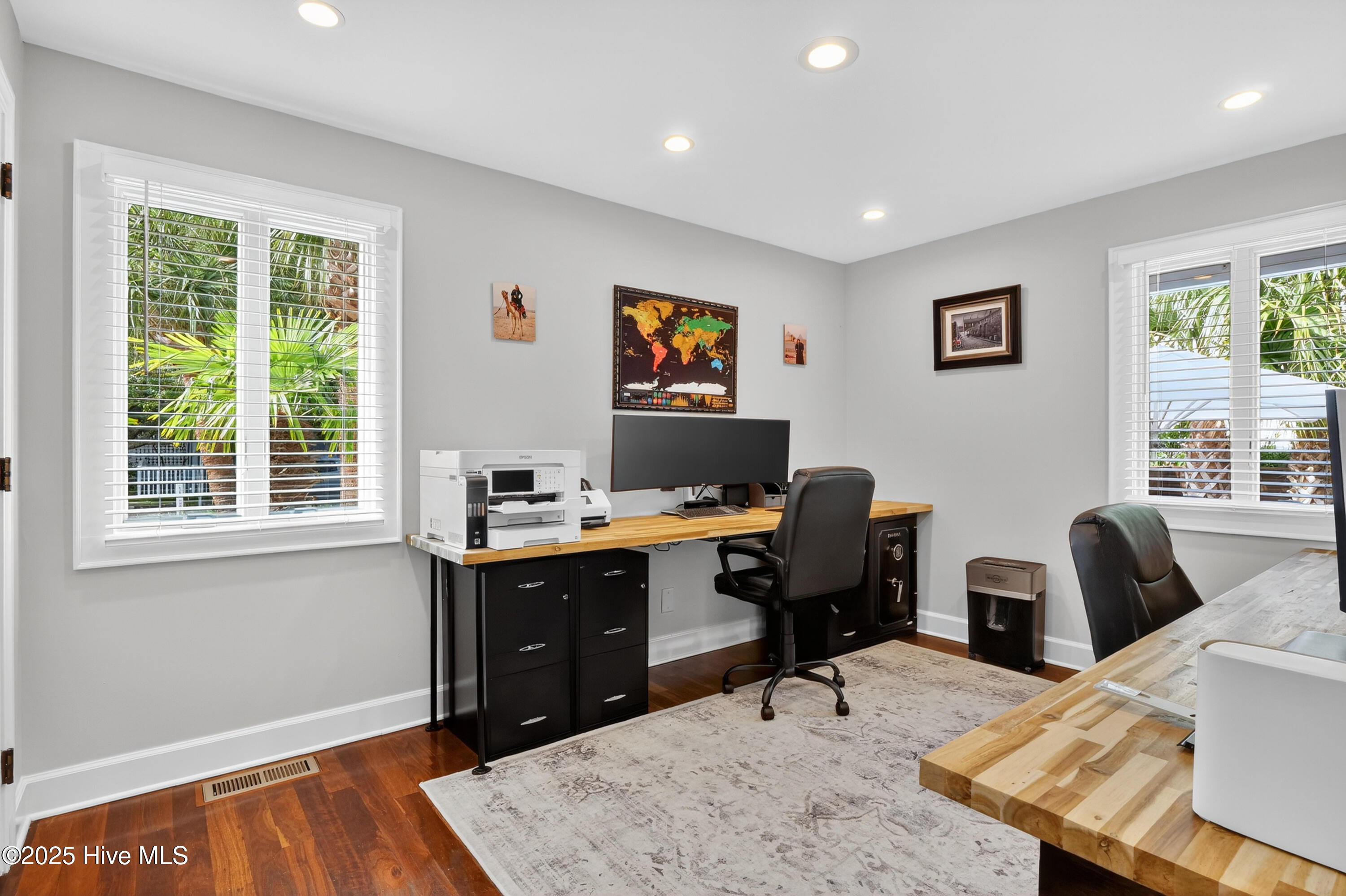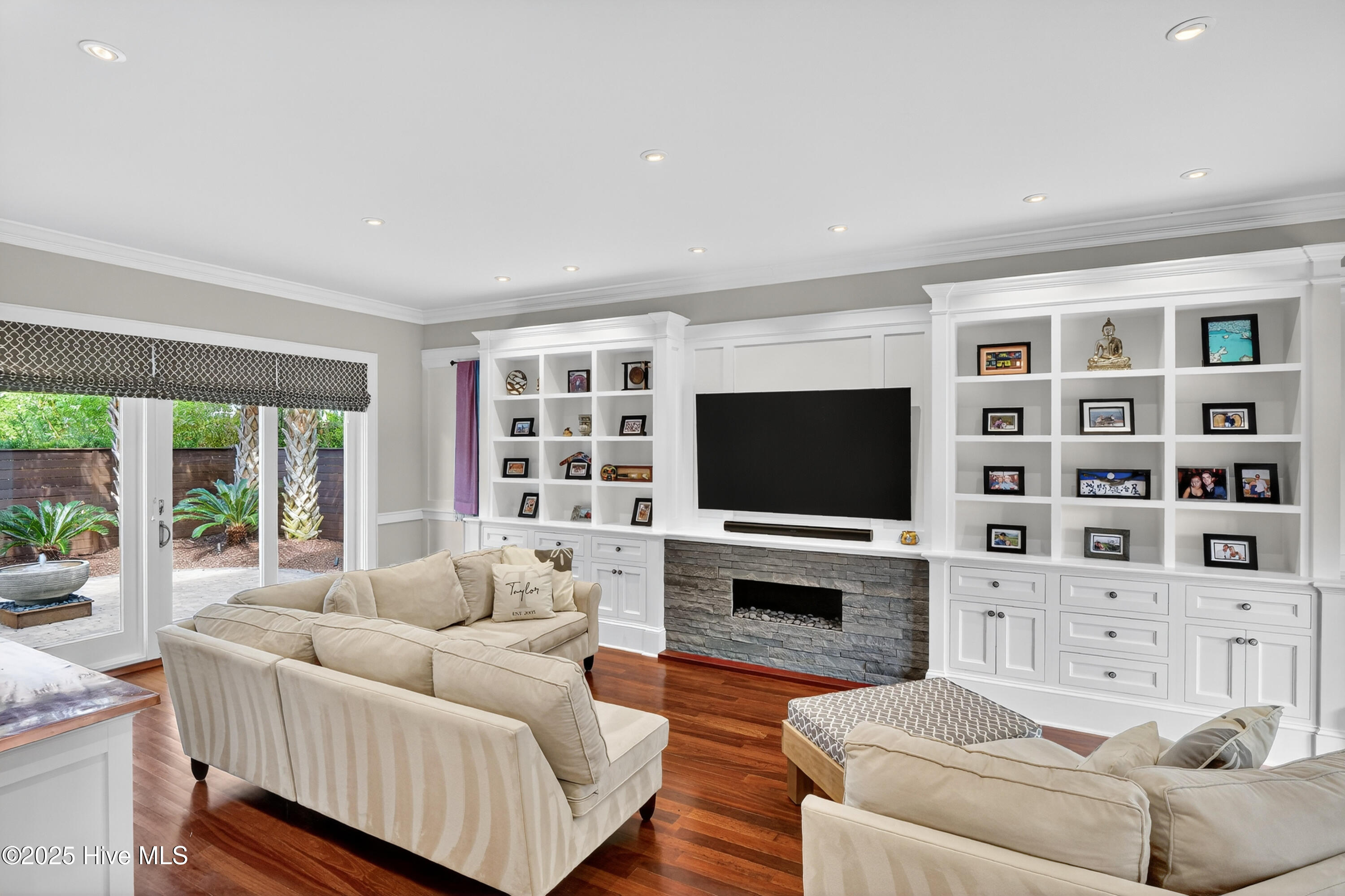 Situated on a corner lot at the quiet curve of Lindy Ln and Live Oak Dr, this exceptional home offers a rare opportunity to own in one of Wrightsville Beach's most tightly held neighborhoods. South Harbor Island is known for its peaceful streets, walkable lifestyle, and close-knit community—with only a handful of homes hitting the market each year. Step outside and you're a short walk from the soft sands and clear blue waters of Wrightsville Beach, or out on the iconic Nesbitt Loop, a 2.45-mile path circling the heart of the island where locals jog, bike, and greet neighbors with a wave. The home blends timeless Cape Cod-style architecture with curated outdoor living, featuring 23 twelve-foot palm trees, ipe fencing, and artisan hardscaping—part of over $240,000 in exterior upgrades. The private patio is perfect for morning coffee, sunset dinners, or a relaxing soak in the hot tub. Inside, the home exudes character with thoughtful, high-end touches. The main living space blends warmth and sophistication, centered around an open brick fireplace and flowing seamlessly into a striking, fully renovated TV room with a custom blue stone accent wall and integrated wine storage, a bold focal point and functional showcase for your collection. Two first-floor bedrooms offer flexibility for guests, a home office, or creative use. Upstairs includes two fully remodeled bedrooms, including a primary suite with an open-concept ensuite and a mini split unit for added comfort. Behind the charm is solid infrastructure: a fully encapsulated crawl space with dehumidifier, two HVAC units, updated attic insulation and exhaust fans, a 2-year-old water heater, and new attic access. In the evenings, underground lighting casts a soft glow over the palm-lined yard, enhancing the home's ambiance. At 101 Lindy Ln, you're not just buying a home—you're embracing a lifestyle in a neighborhood where time seems to move just a bit slower