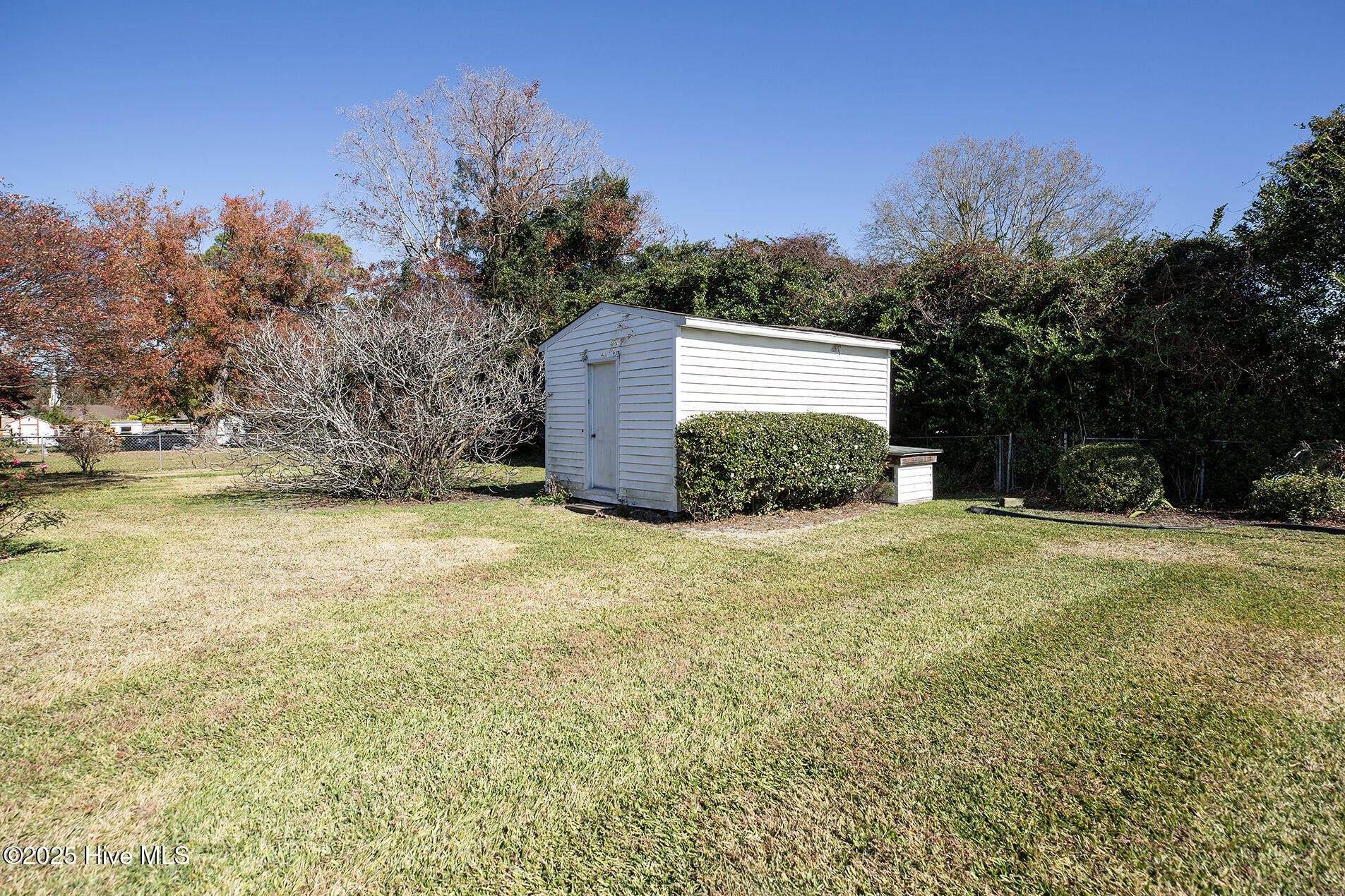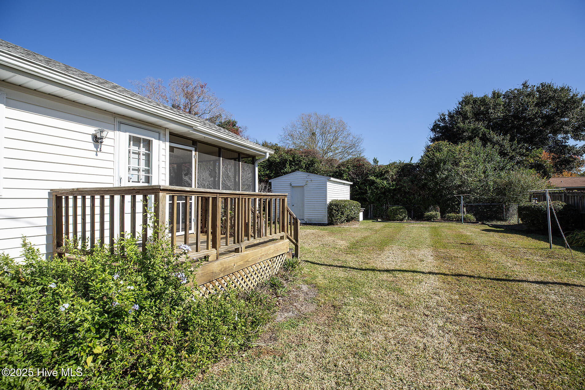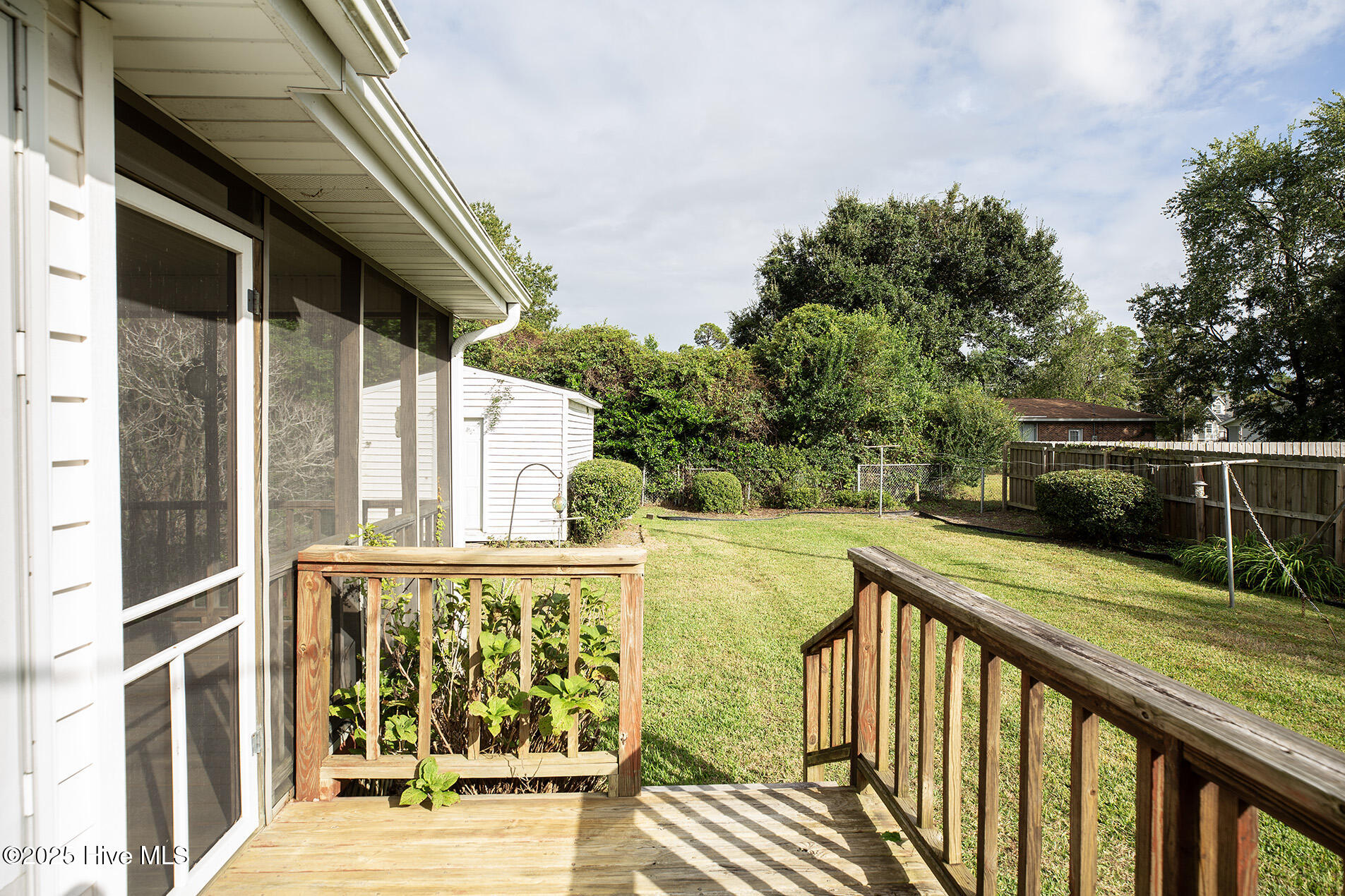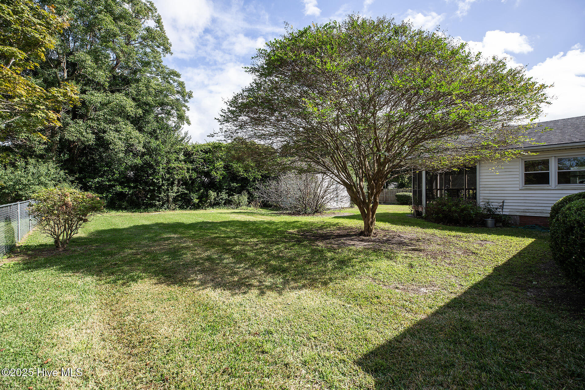You will love this well-maintained, 3 bedroom and 1.5 bath - ranch style home in sought-after Crestwood. The curb appeal is enhanced by its manicured landscape and mature oaks. The interior is warm and inviting - accentuated by its muted color palette, wide door openings and vintage characteristics. The spacious kitchen boasts ample countertops, authentic wood cabinetry, original paneling, and an eat-in kitchen. One of the prominent features is the cheerful den overlooking the large fenced backyard. The primary bedroom has ample closet space and is adjoined to its primary half bath. The second and third bedrooms are both generously proportioned and also have adequate closets. Other features of this home include formal areas, plank flooring, a single car garage, screened porch, spacious deck, and a storage shed. The location is near I-40, ILM airport, shopping, and an array of dining options. Welcome home!