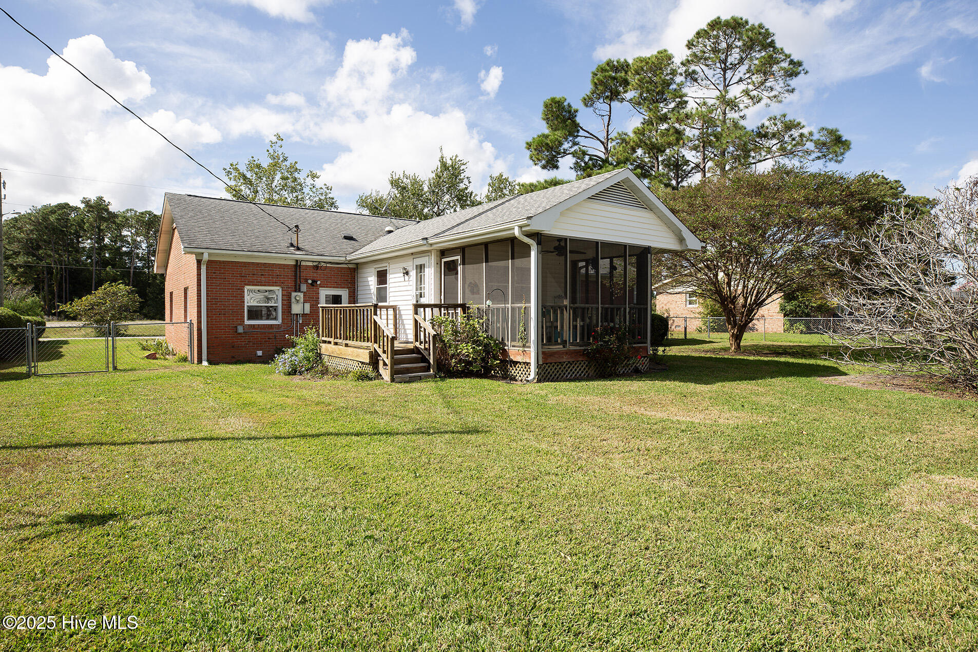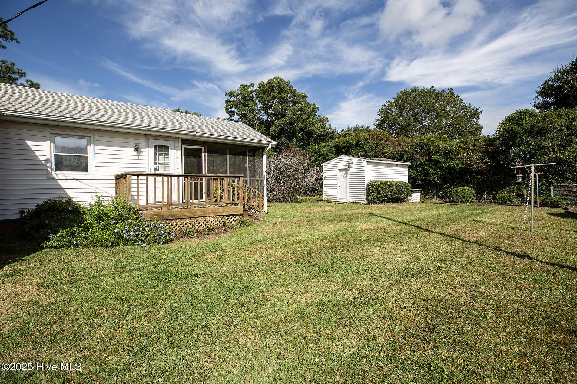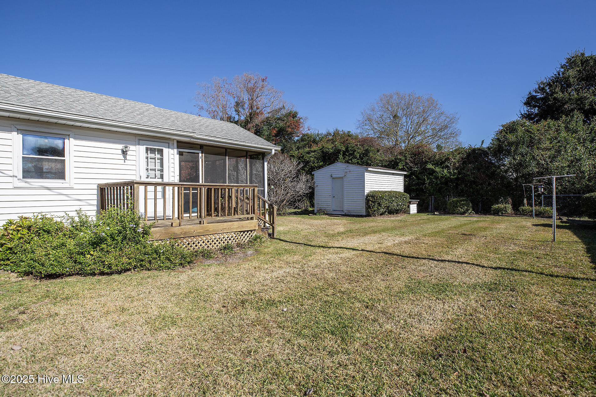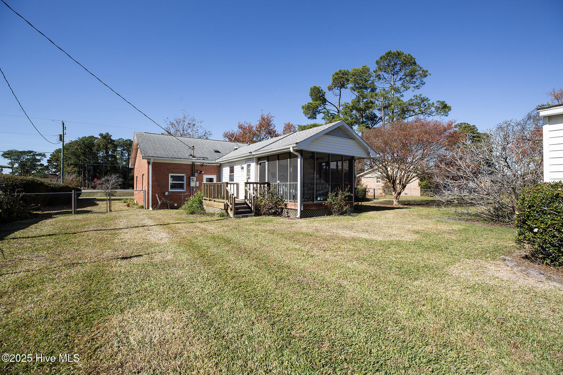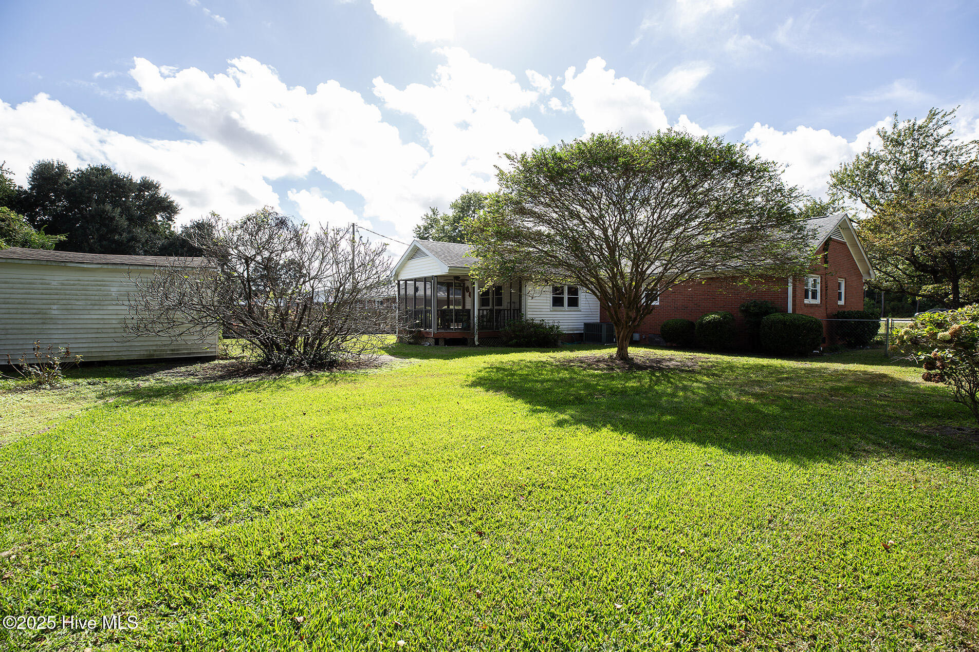You will love this well-maintained, 3 bedroom and 1.5 bath - ranch style home in sought-after Crestwood. The curb appeal is enhanced by its manicured landscape and mature oaks. The interior is warm and inviting - accentuated by its muted color palette, wide door openings and vintage characteristics. The spacious kitchen boasts ample countertops, authentic wood cabinetry, original paneling, and an eat-in kitchen. One of the prominent features is the cheerful den overlooking the large fenced backyard. The primary bedroom has ample closet space and is adjoined to its primary half bath. The second and third bedrooms are both generously proportioned and also have adequate closets. Other features of this home include formal areas, plank flooring, a single car garage, screened porch, spacious deck, and a storage shed. The location is near I-40, ILM airport, shopping, and an array of dining options. Welcome home!