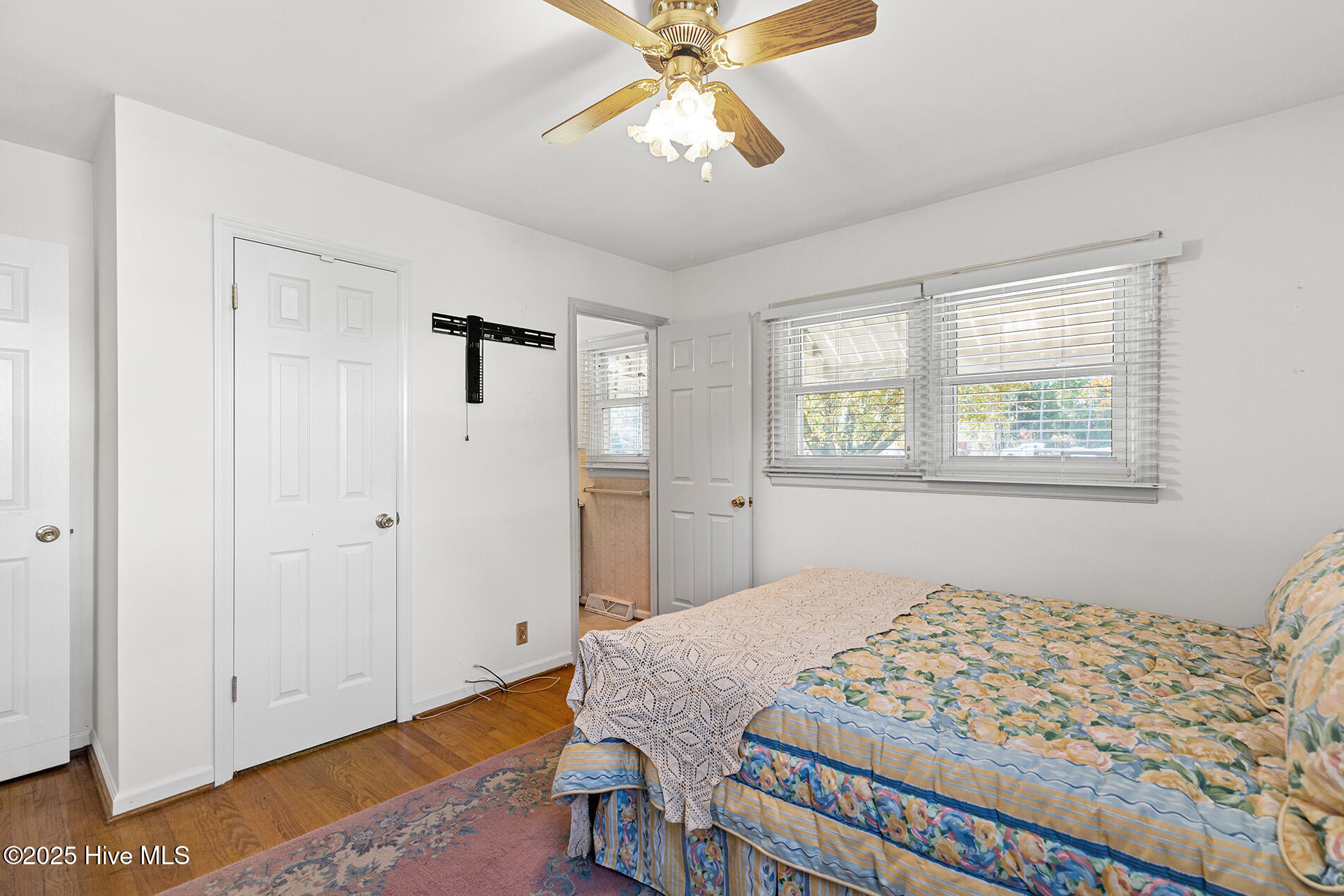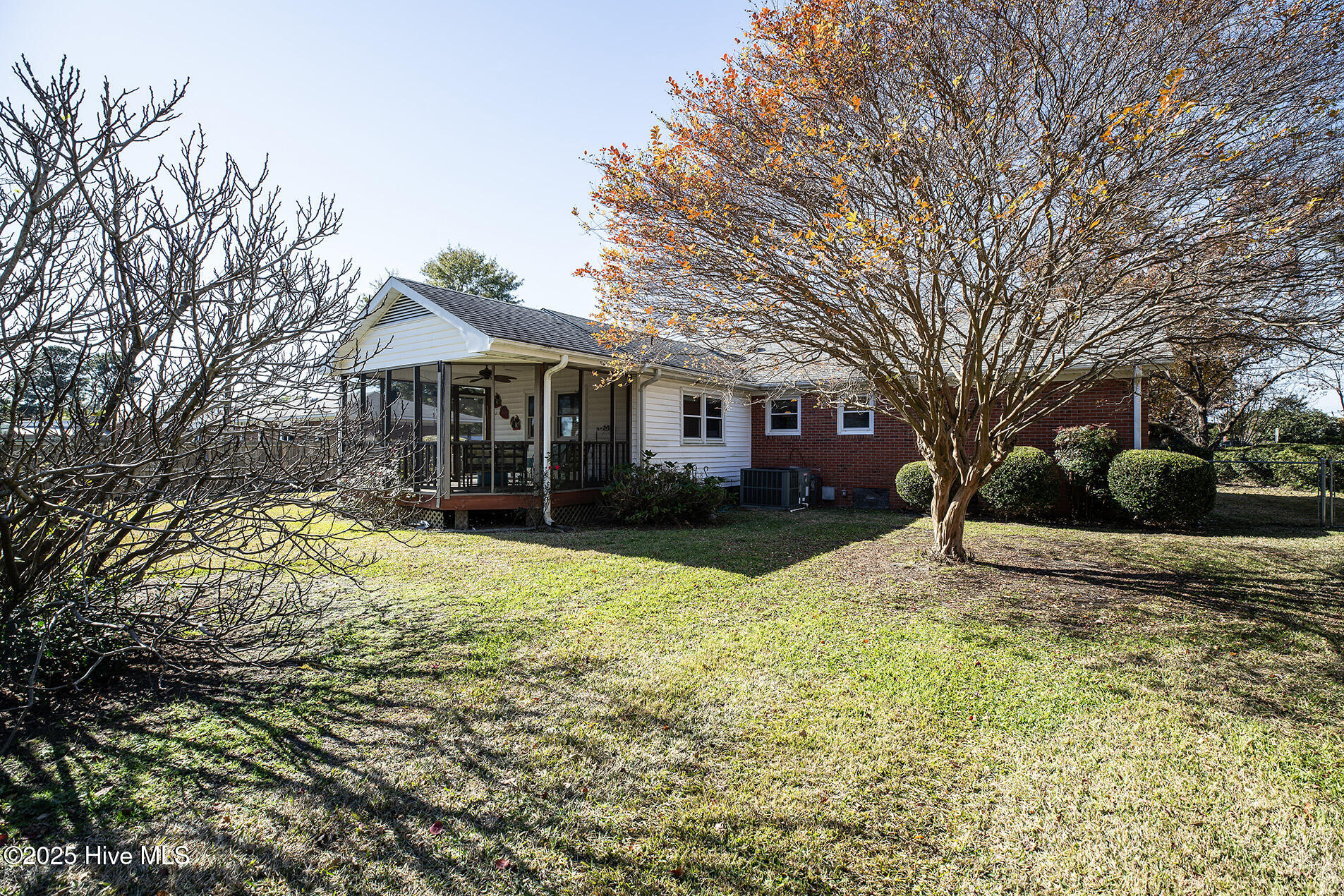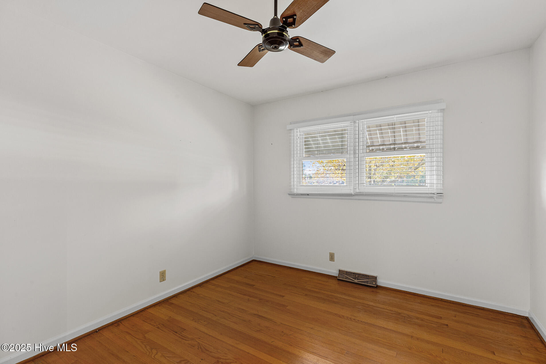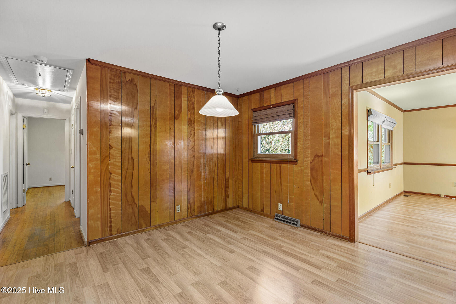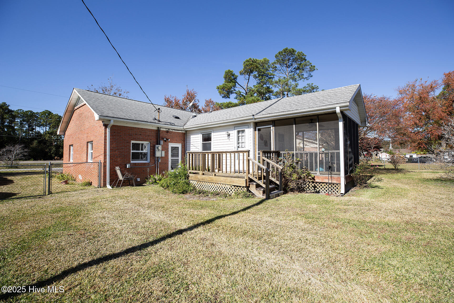 You will love this well-maintained, 3 bedroom and 1.5 bath - ranch style home in sought-after Crestwood. The curb appeal is enhanced by its manicured landscape and mature oaks. The interior is warm and inviting - accentuated by its muted color palette, wide door openings and vintage characteristics. The spacious kitchen boasts ample countertops, authentic wood cabinetry, original paneling, and an eat-in kitchen. One of the prominent features is the cheerful den overlooking the large fenced backyard. The primary bedroom has ample closet space and is adjoined to its primary half bath. The second and third bedrooms are both generously proportioned and also have adequate closets. Other features of this home include formal areas, plank flooring, a single car garage, screened porch, spacious deck, and a storage shed. The location is near I-40, ILM airport, shopping, and an array of dining options. Welcome home!