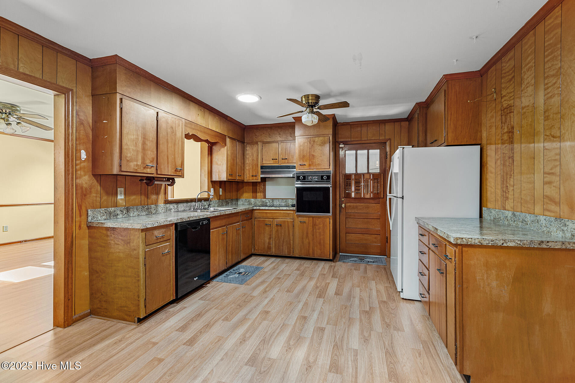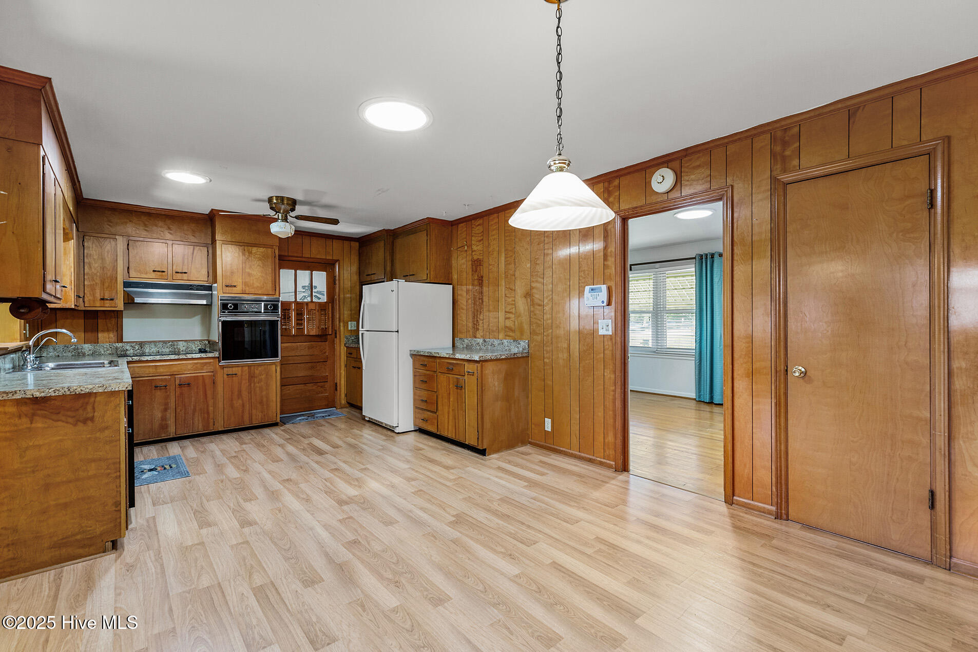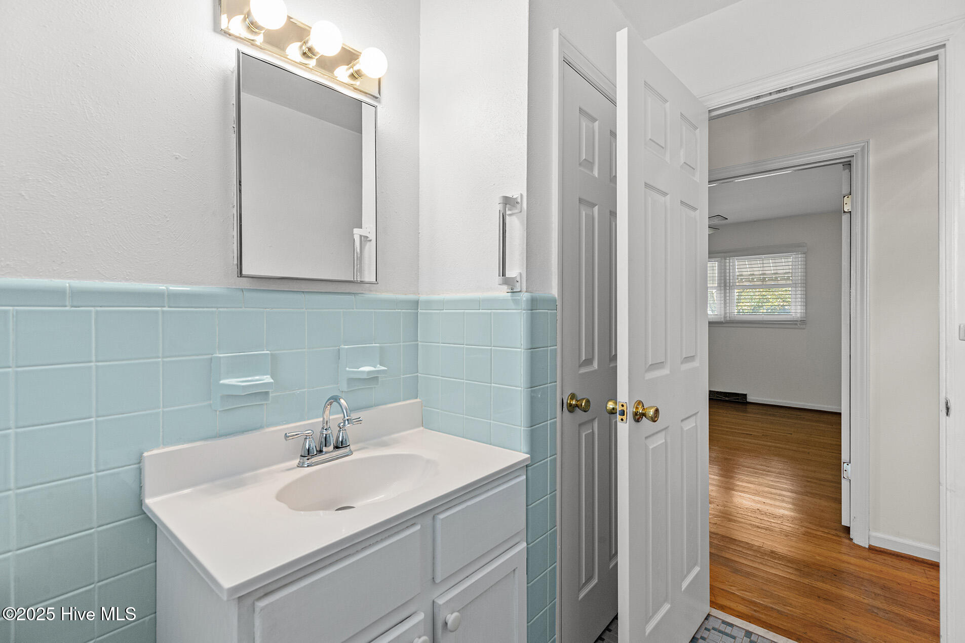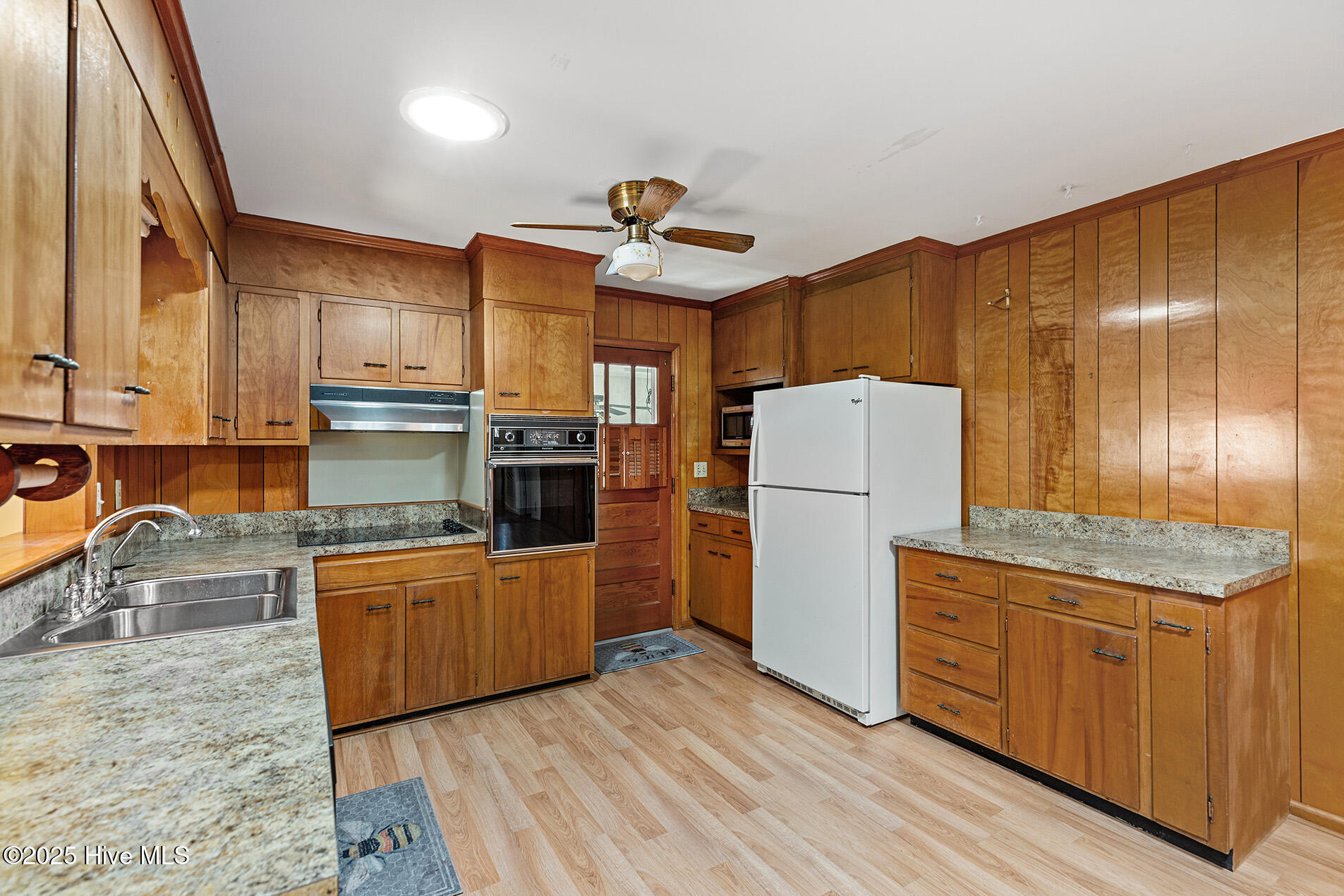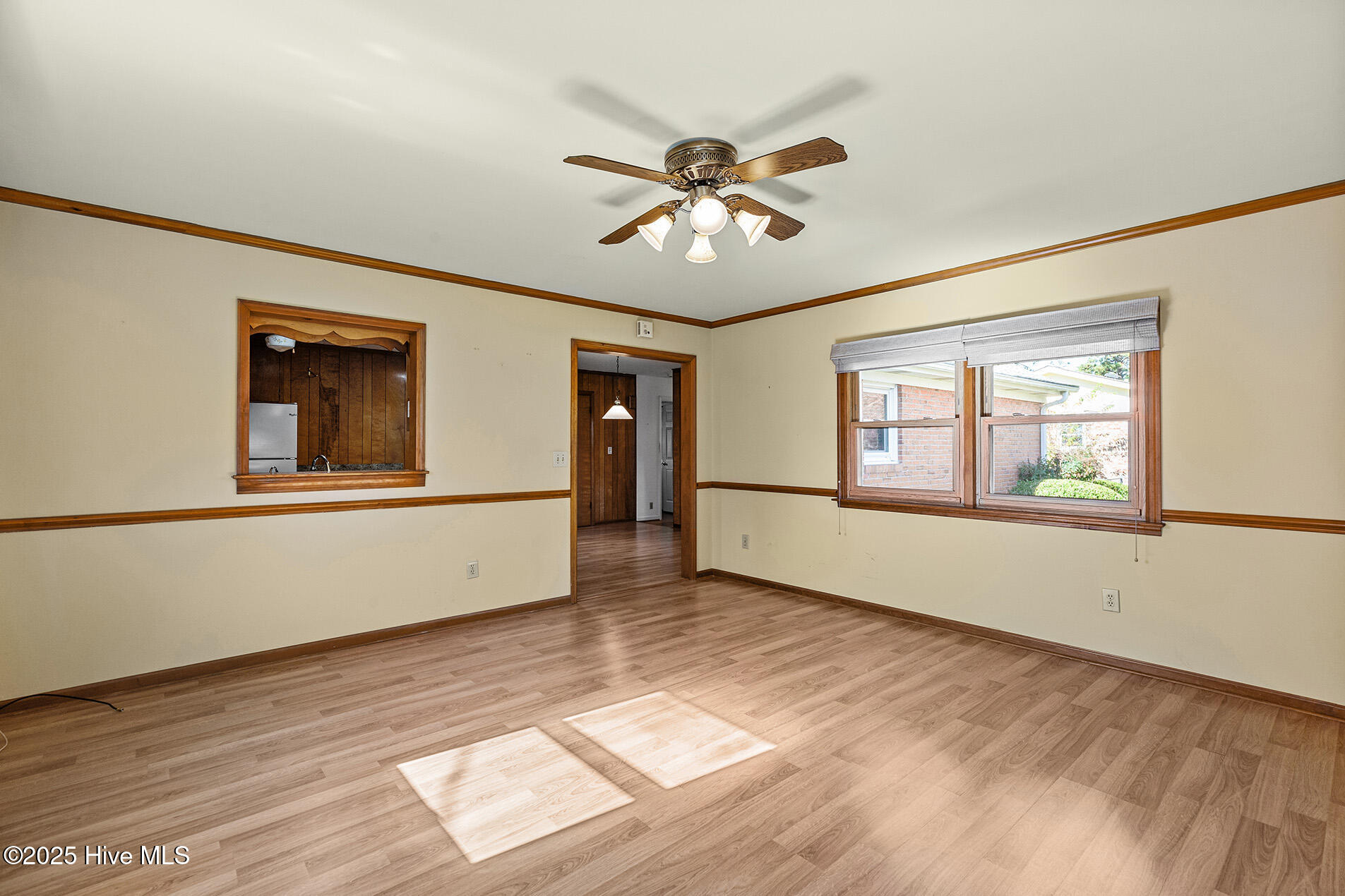 You will love this well-maintained, 3 bedroom and 1.5 bath - ranch style home in sought-after Crestwood. The curb appeal is enhanced by its manicured landscape and mature oaks. The interior is warm and inviting - accentuated by its muted color palette, wide door openings and vintage characteristics. The spacious kitchen boasts ample countertops, authentic wood cabinetry, original paneling, and an eat-in kitchen. One of the prominent features is the cheerful den overlooking the large fenced backyard. The primary bedroom has ample closet space and is adjoined to its primary half bath. The second and third bedrooms are both generously proportioned and also have adequate closets. Other features of this home include formal areas, plank flooring, a single car garage, screened porch, spacious deck, and a storage shed. The location is near I-40, ILM airport, shopping, and an array of dining options. Welcome home!