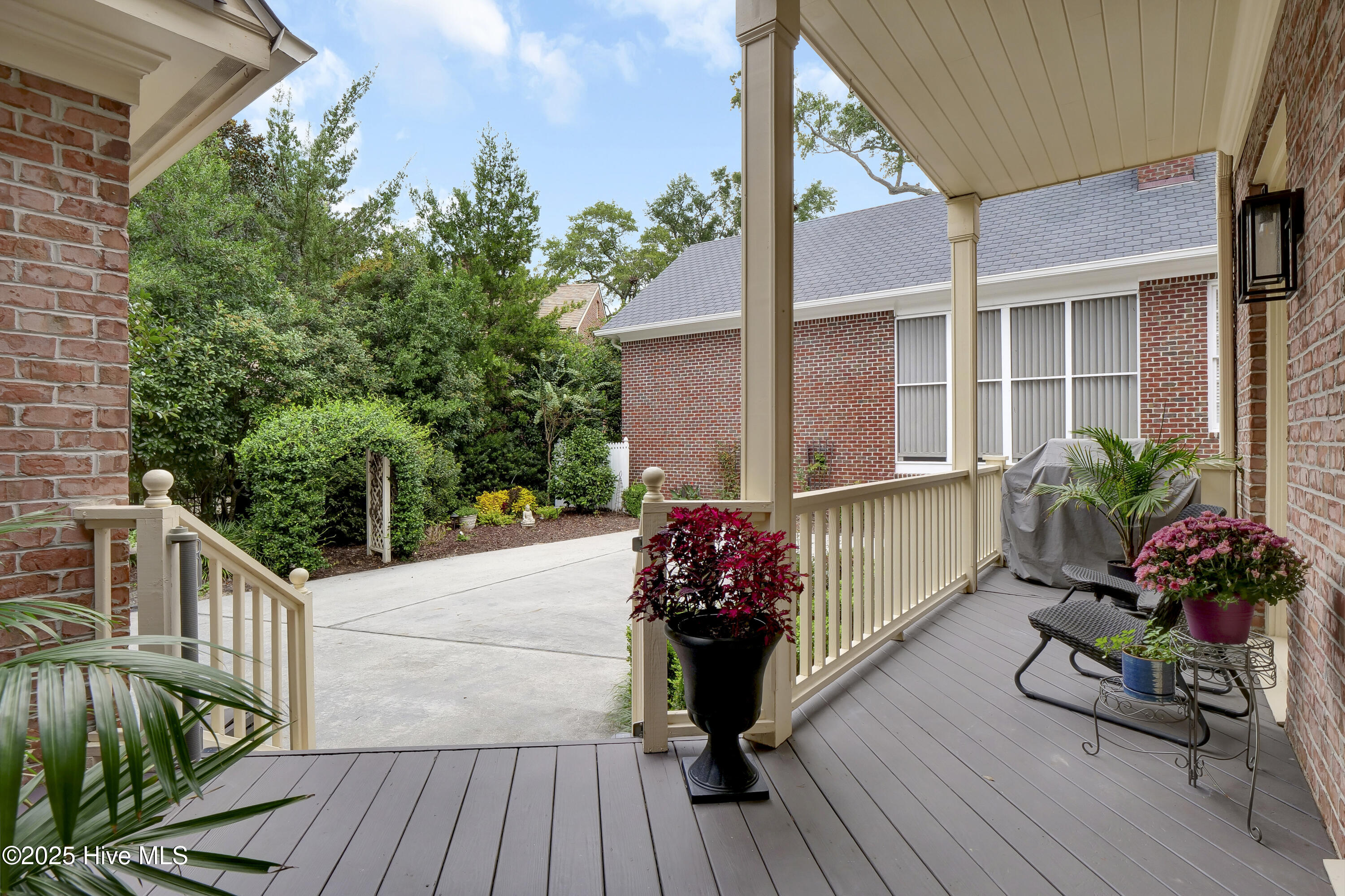 Nothing Could Be Finer... experience the most prestigious drive to your exceptional home as you meander down a tree lined street with views of the ICWW and Dye Golf course. Once you arrive you will experience a well maintained, beautiful Georgian style home located on a peaceful cul de sac street in the Villas of Landfall. This amazing home is in a perfect location to walk to the updated Dye clubhouse or Overlook Park, where you can sit peacefully overlooking the ICWW. Not only is the lifestyle of this home extraordinary, but the home is as well, boasting a craftsman style with soaring high ceilings, 9-foot door openings and attention to detail with extensive crown moldings, chair rail, built ins, butler's pantry, hardwood floors, and so much more! The floor plan is light and airy and offers space for any occasion. Enjoy a white kitchen with all stainless Kitchen Aide appliances, quartz counter tops, marble backsplash, paneled dishwasher and paneled subzero refrigerator. You may retreat to the great room after dinner to enjoy the warmth of the gas fireplace or the entertainment of a movie on your large built in 70'' HDTV, while having a cocktail from the wet bar. Built-in-cabinets and shelves are ideal for showcasing books and family photos. Entertaining is a snap with large dining room flowing into the keeping room with adjoining Butlers Pantry. Then, if you need to get away from everyone, you may escape to the peaceful screened porch, or one of the balconies, or upper sunning deck. The primary suite is spacious featuring dual closets, sitting area and opens to a cozy balcony. Then there is a detached suite over the garage with full bath that is ideal for guests, office or 4th bedroom. There is an abundance of storage in the 700 sq ft unfinished walk-in attic and oversized 2 car garage. This home is truly a pleasure, and the yard is maintained by the HOA to allow you time to enjoy!!!! Stones throw to Wrightsville Beach, Restaurants and Mayfaire.
